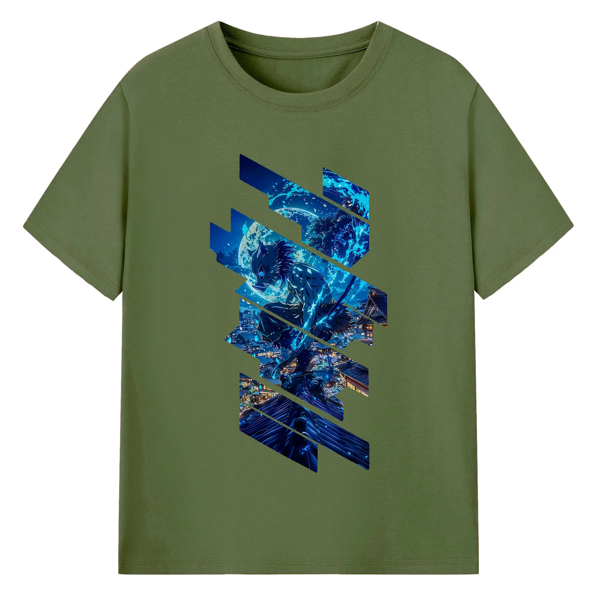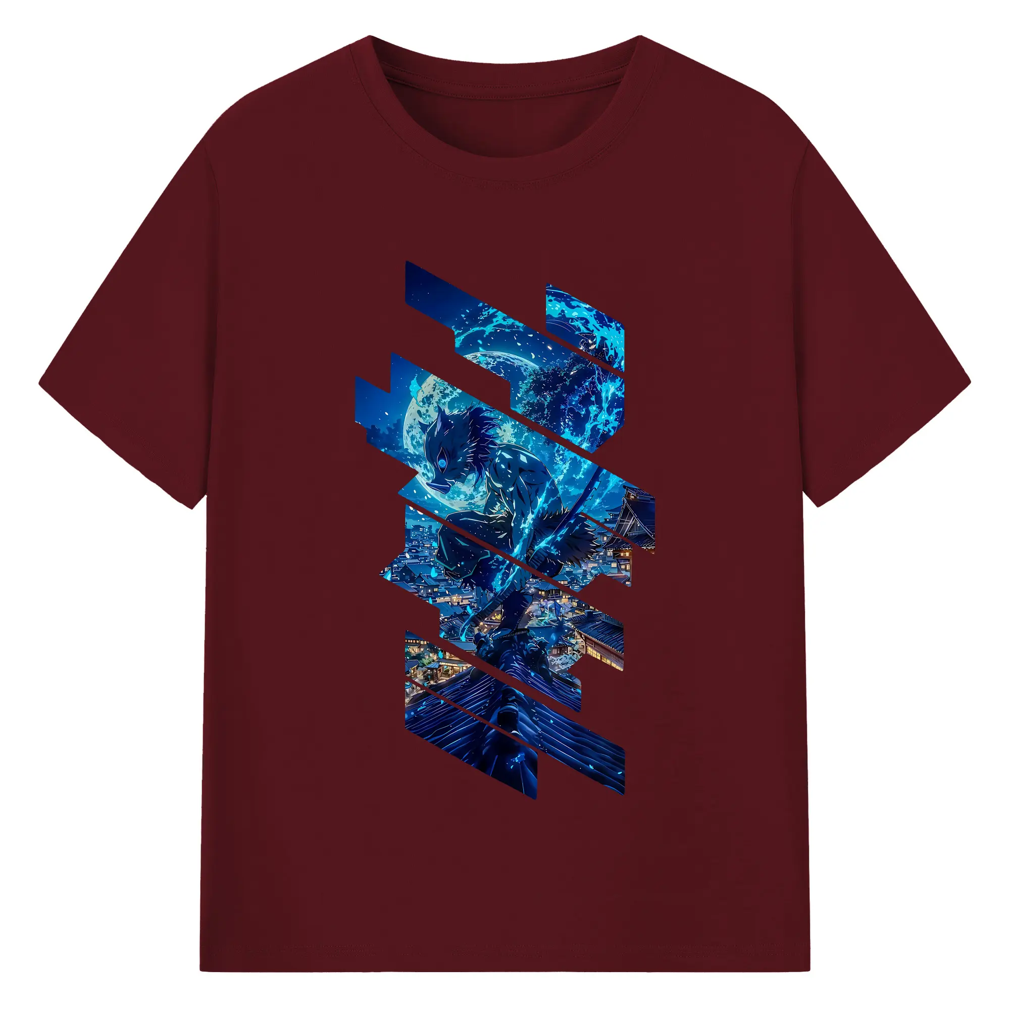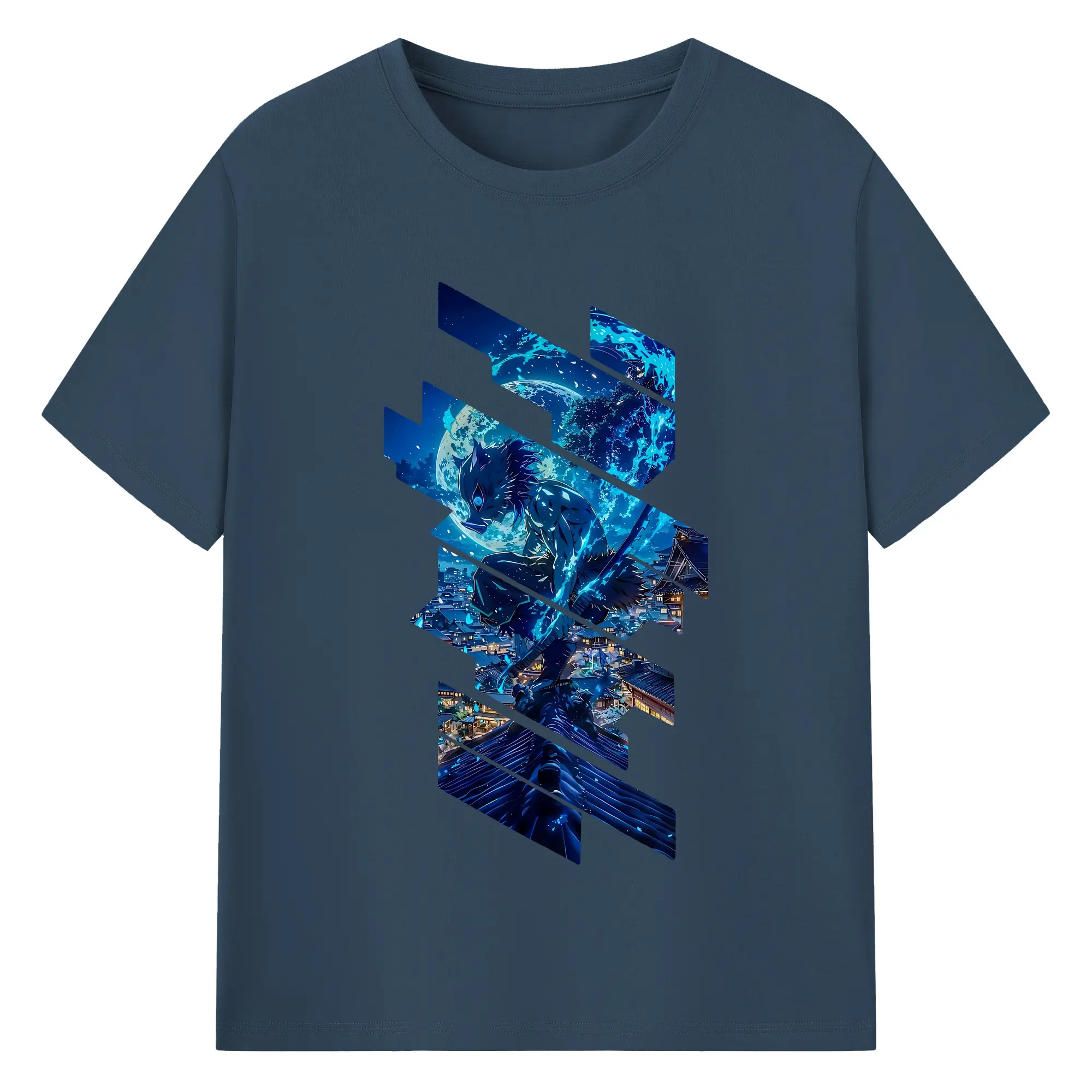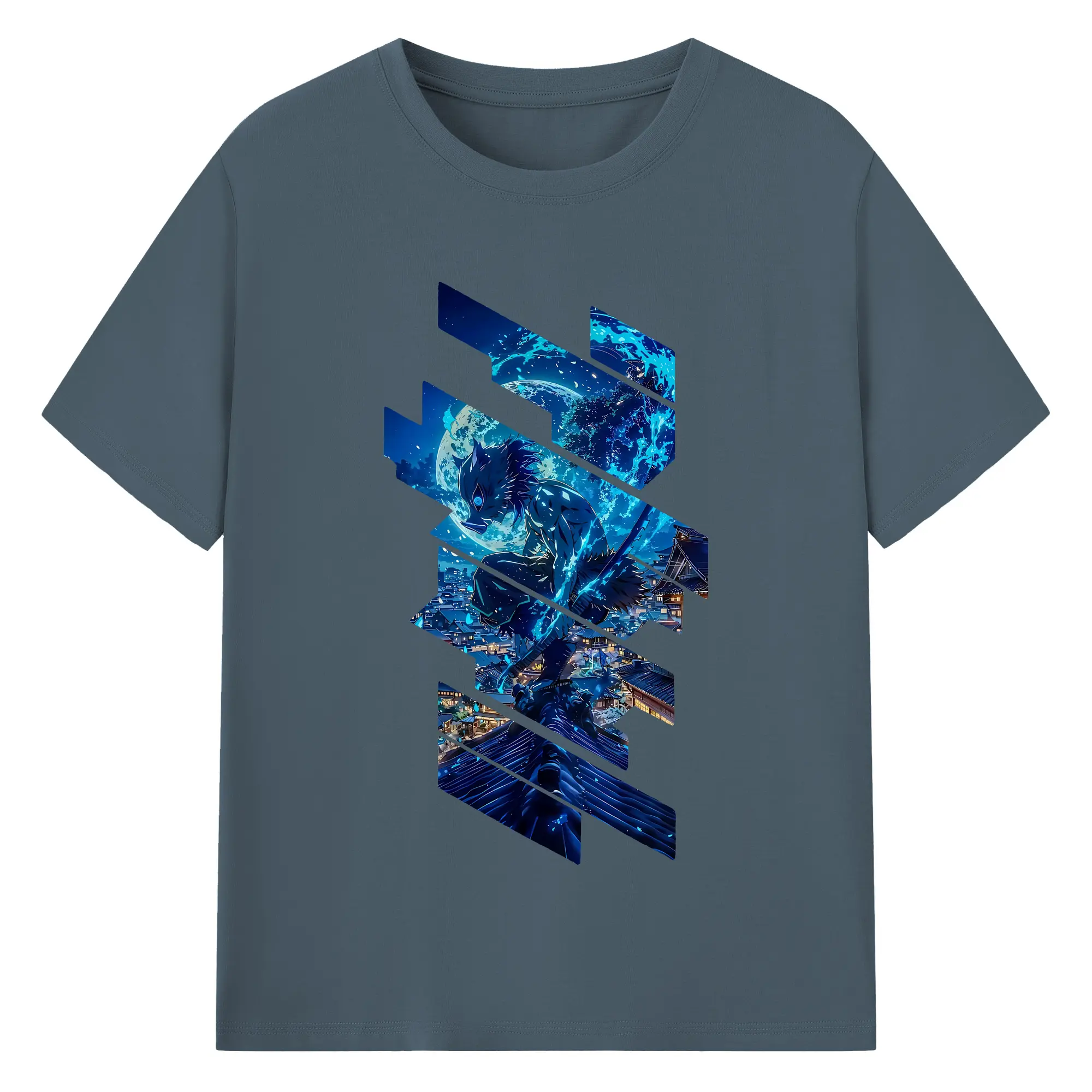 鬼滅の刃 グッズ,嘴平 伊之助 - 綿100% 半袖Tシャツ ・ バックプリント ・ 快適 通気性 ・ 日常使い 散歩 スポーツ用