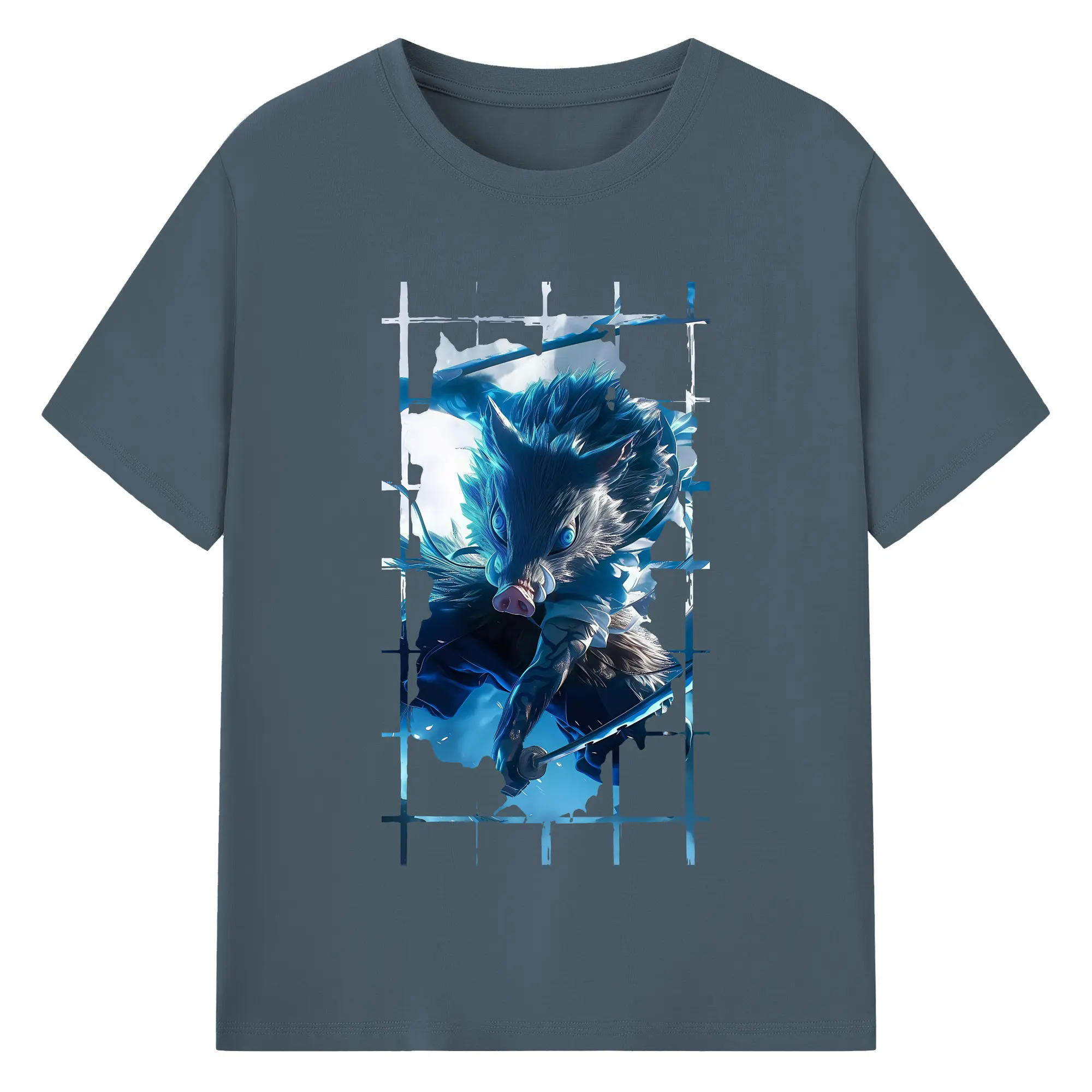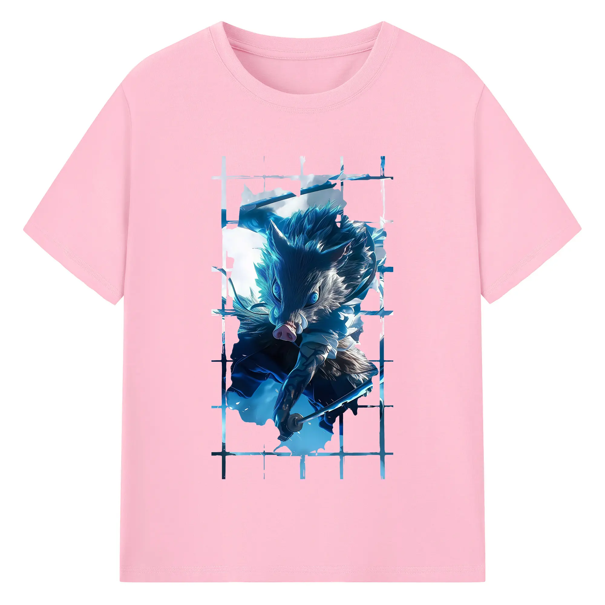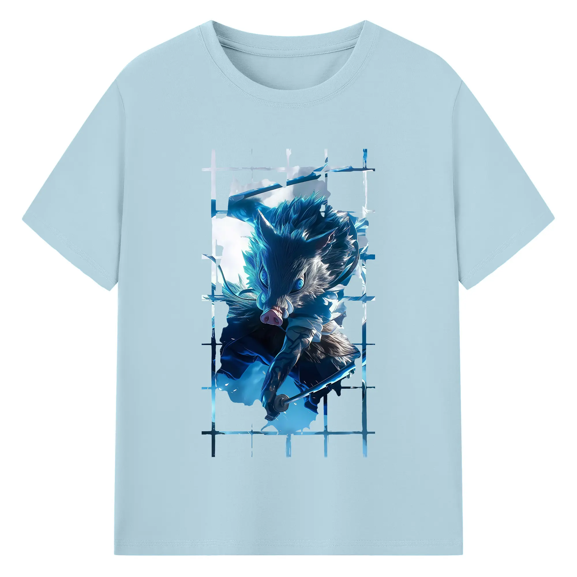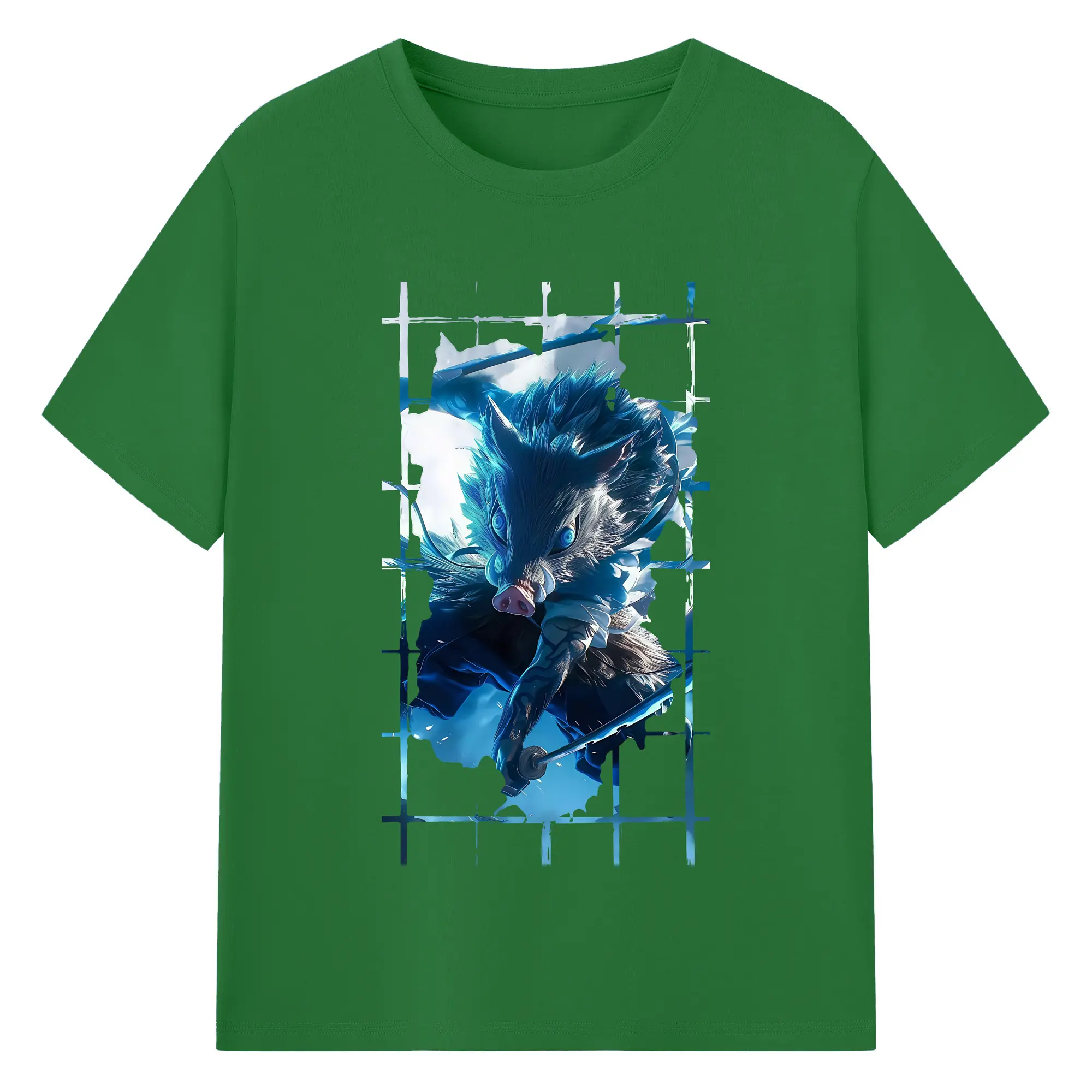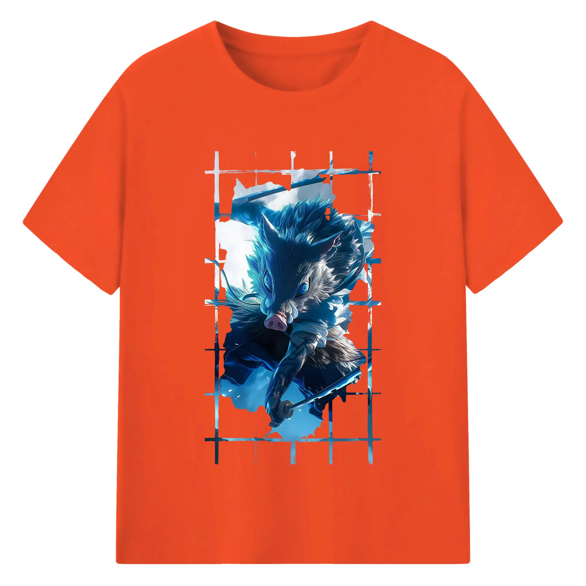 鬼滅の刃 グッズ,嘴平 伊之助 - 綿100% 半袖Tシャツ ・ バックプリント ・ 快適 通気性 ・ 日常使い 散歩 スポーツ用