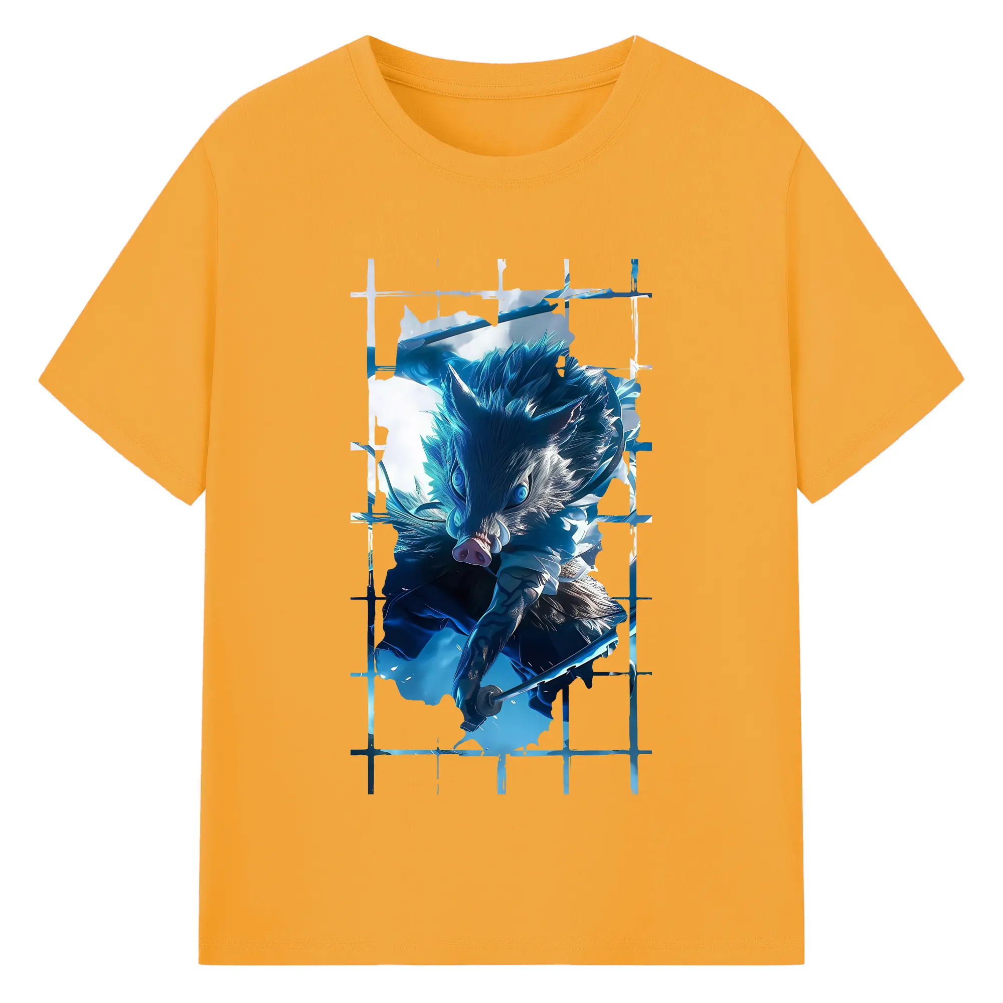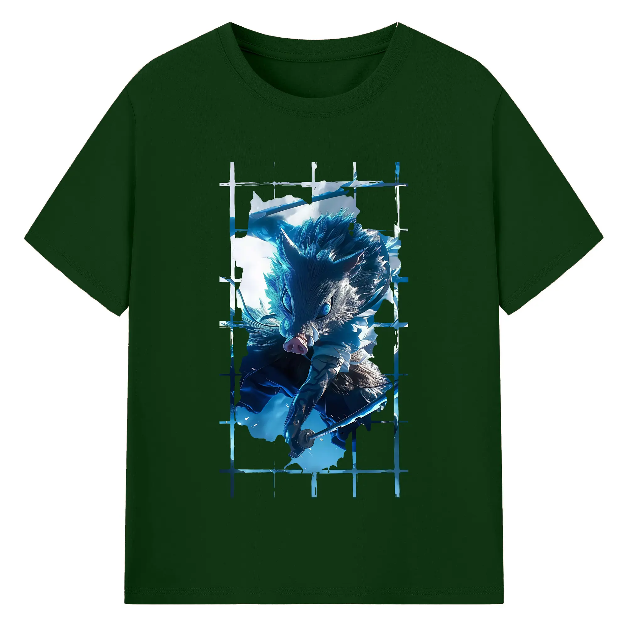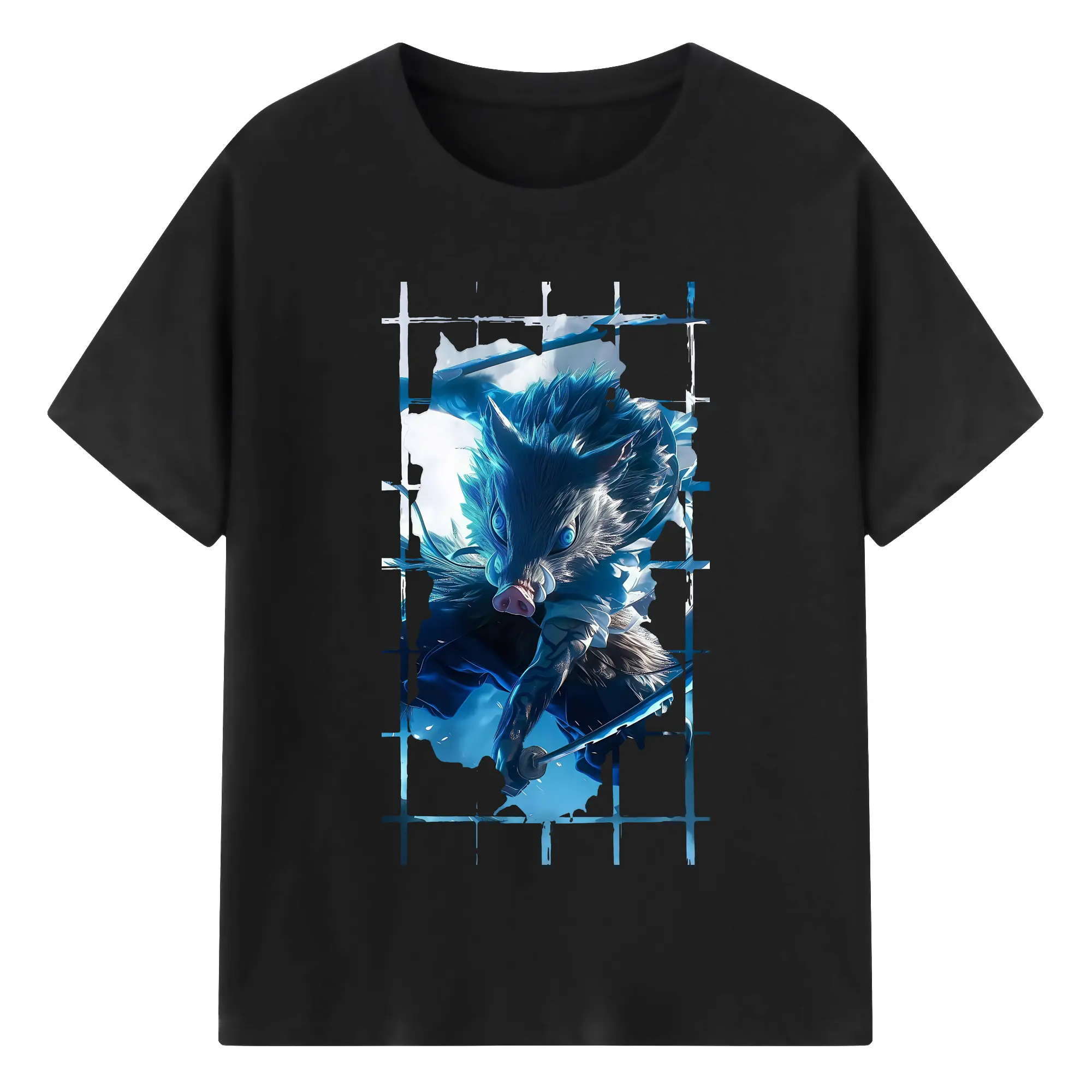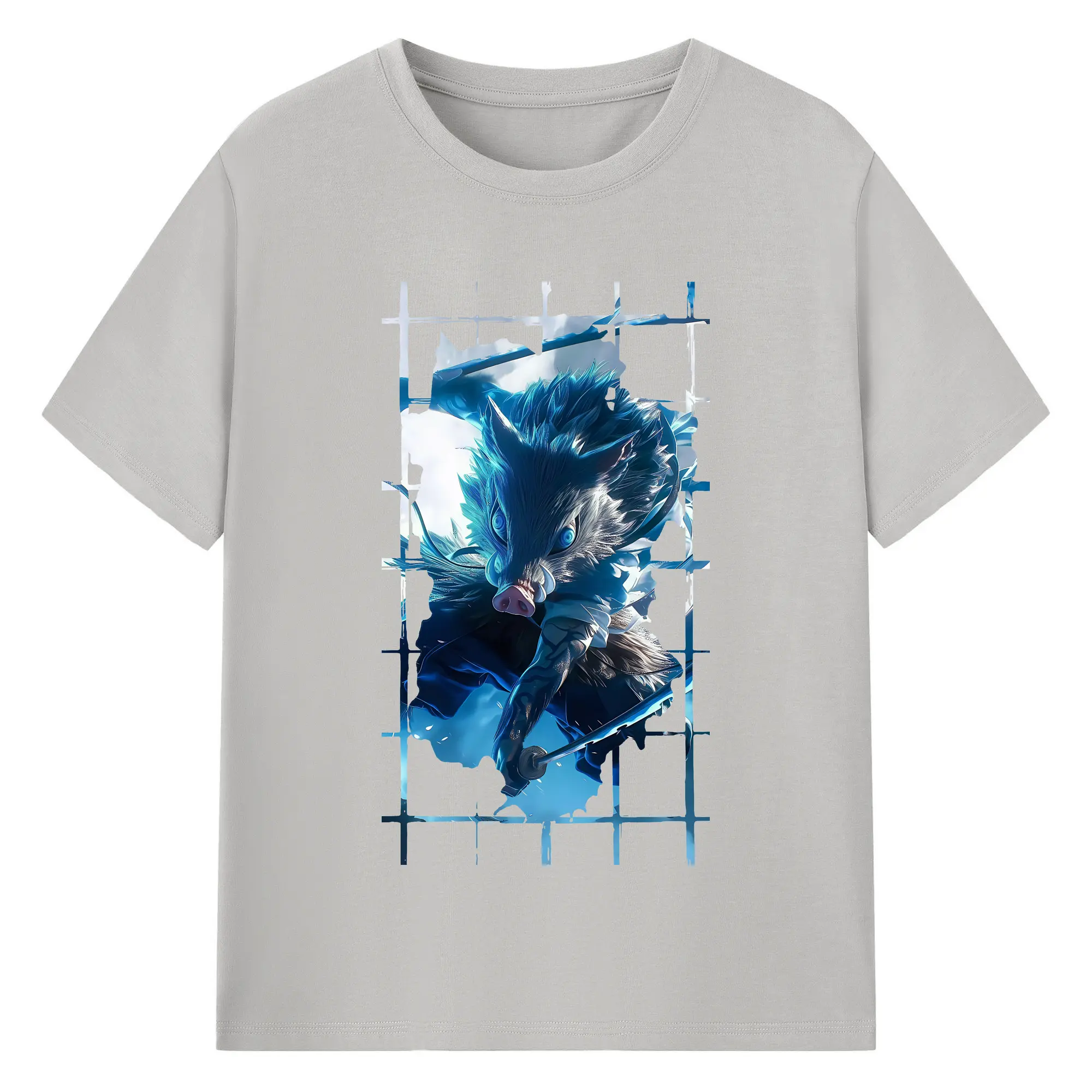 鬼滅の刃 グッズ,嘴平 伊之助 - 綿100% 半袖Tシャツ ・ バックプリント ・ 快適 通気性 ・ 日常使い 散歩 スポーツ用