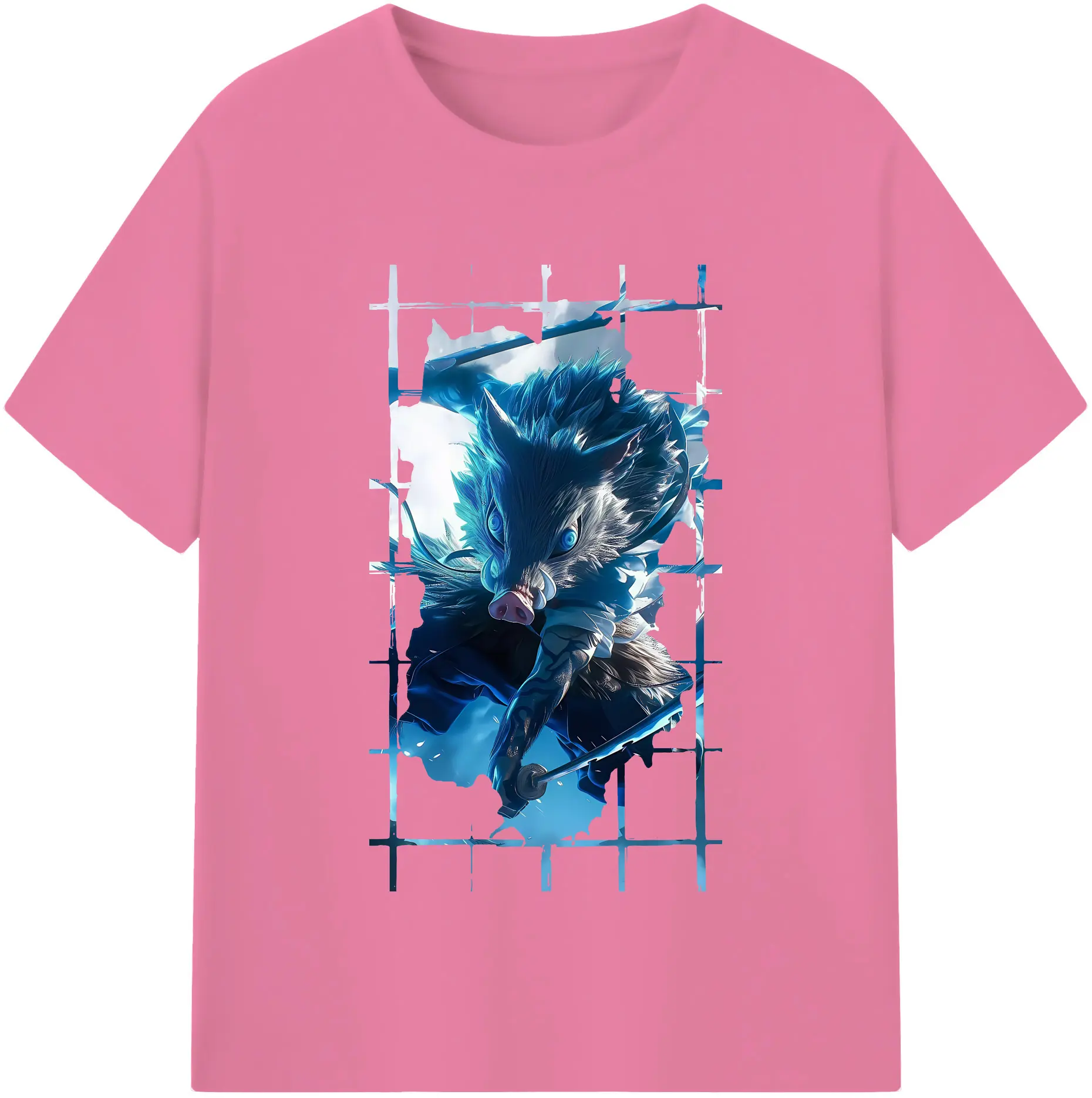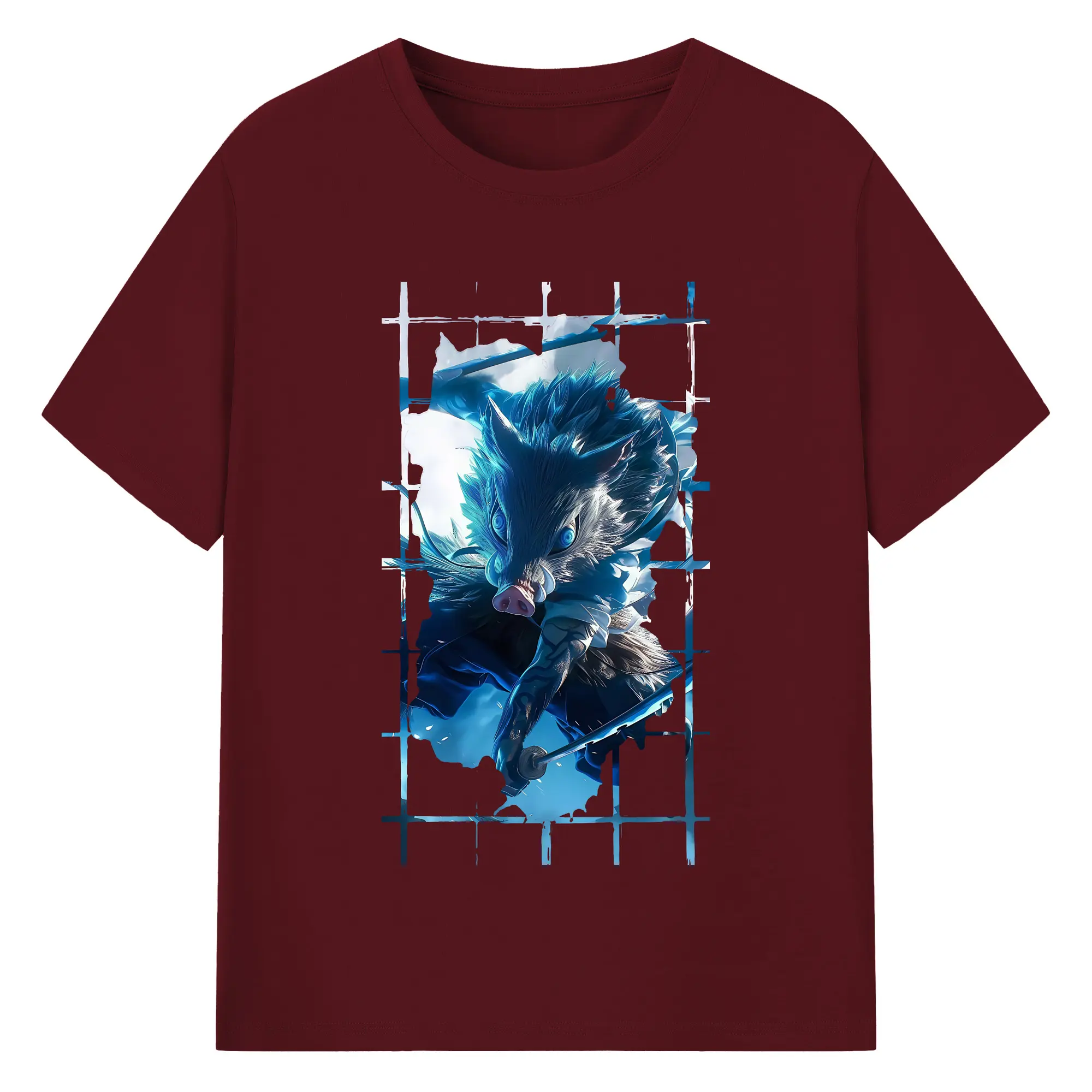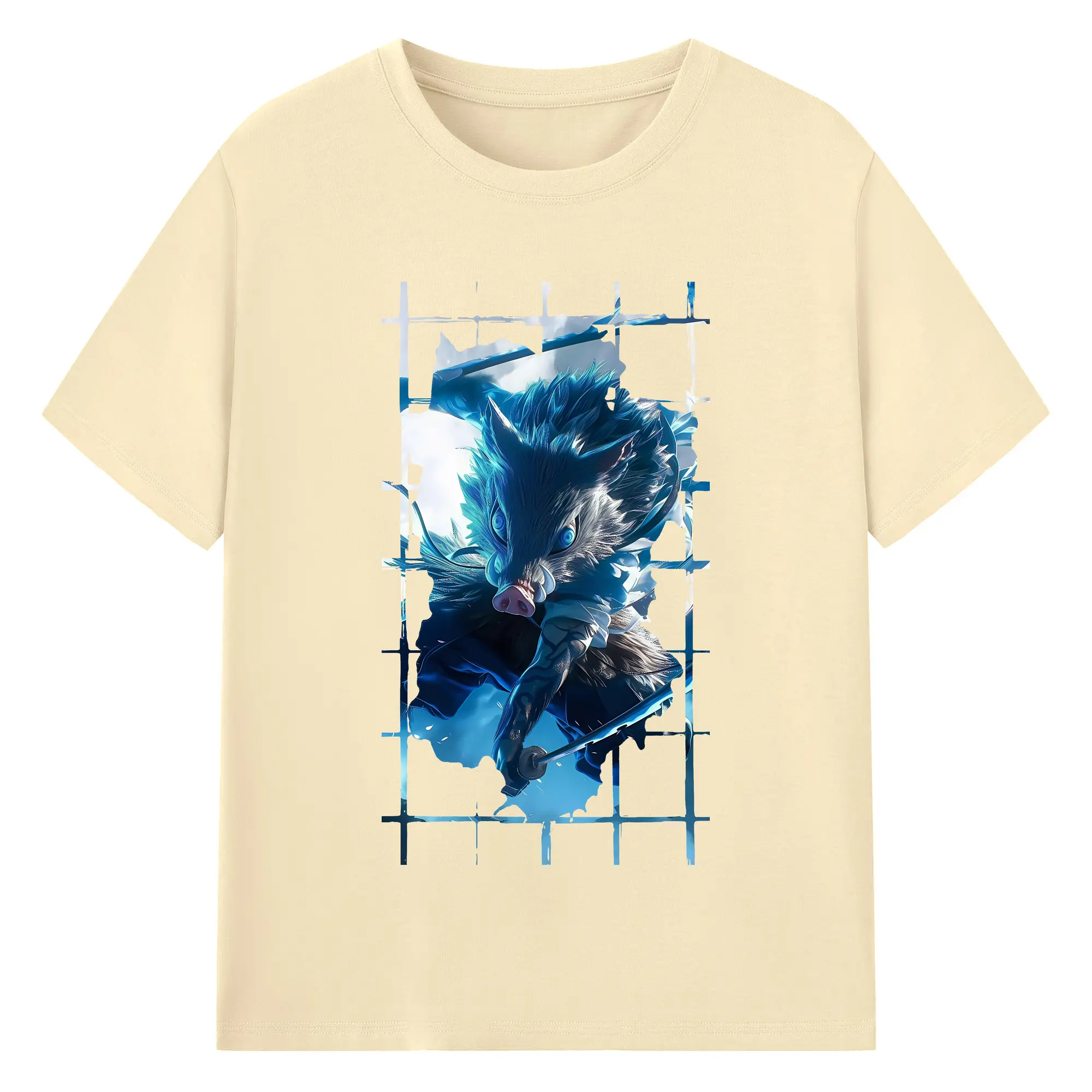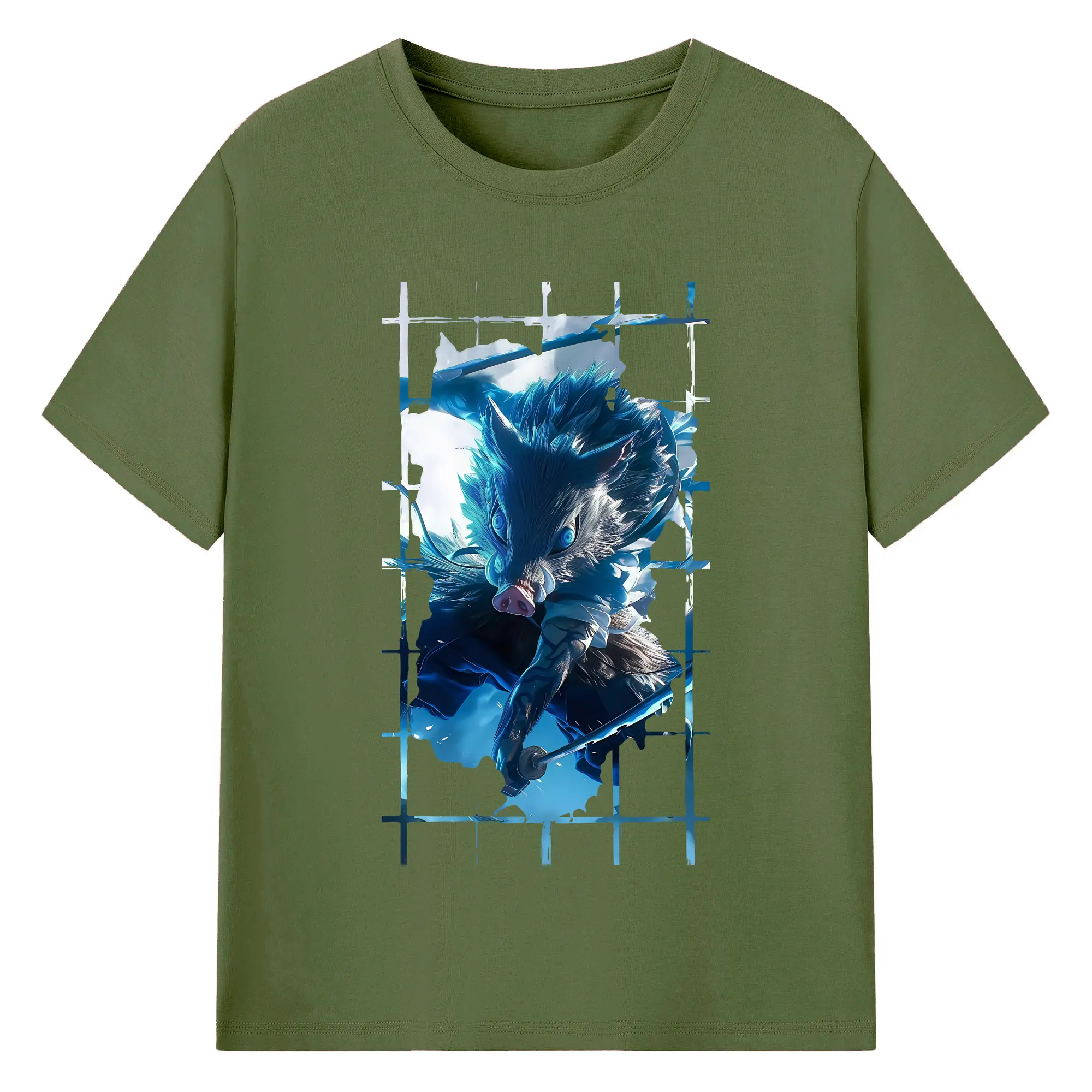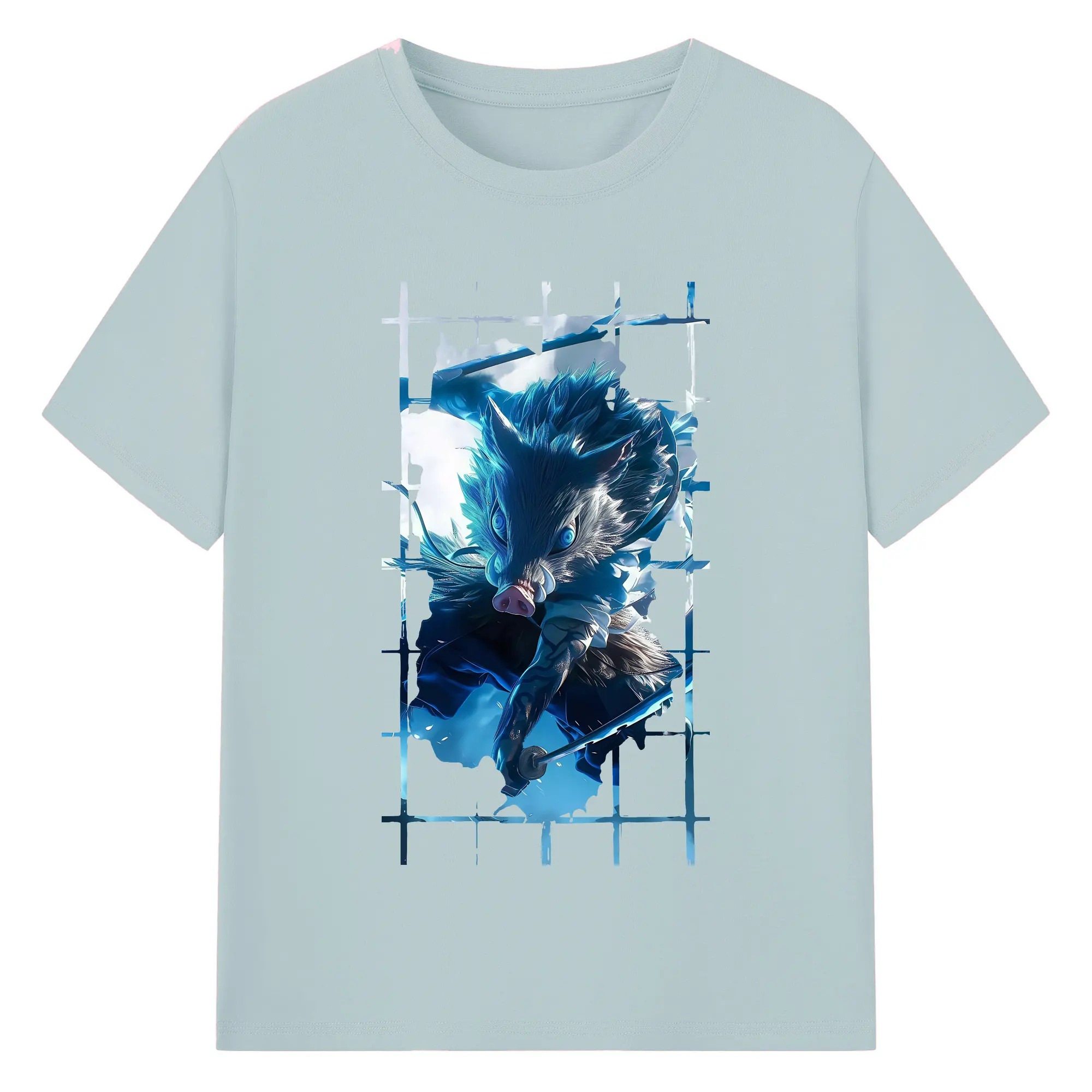 鬼滅の刃 グッズ,嘴平 伊之助 - 綿100% 半袖Tシャツ ・ バックプリント ・ 快適 通気性 ・ 日常使い 散歩 スポーツ用