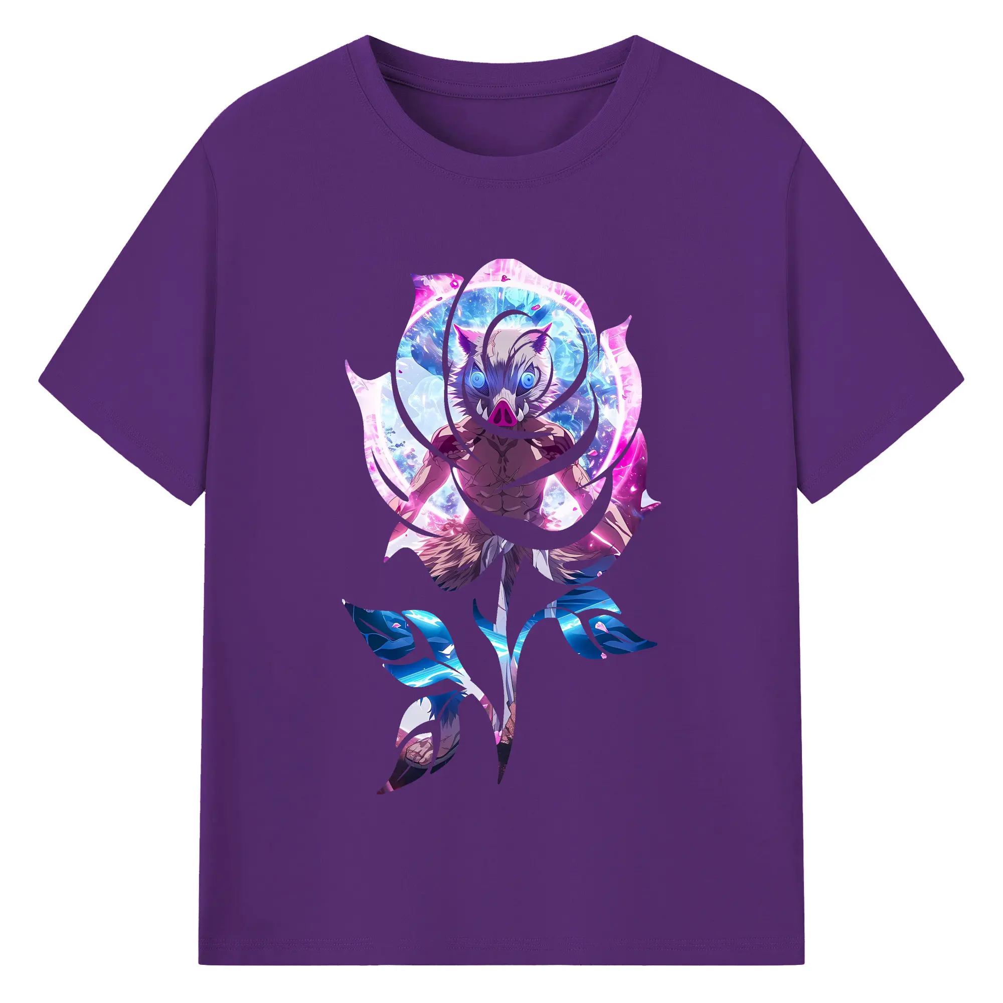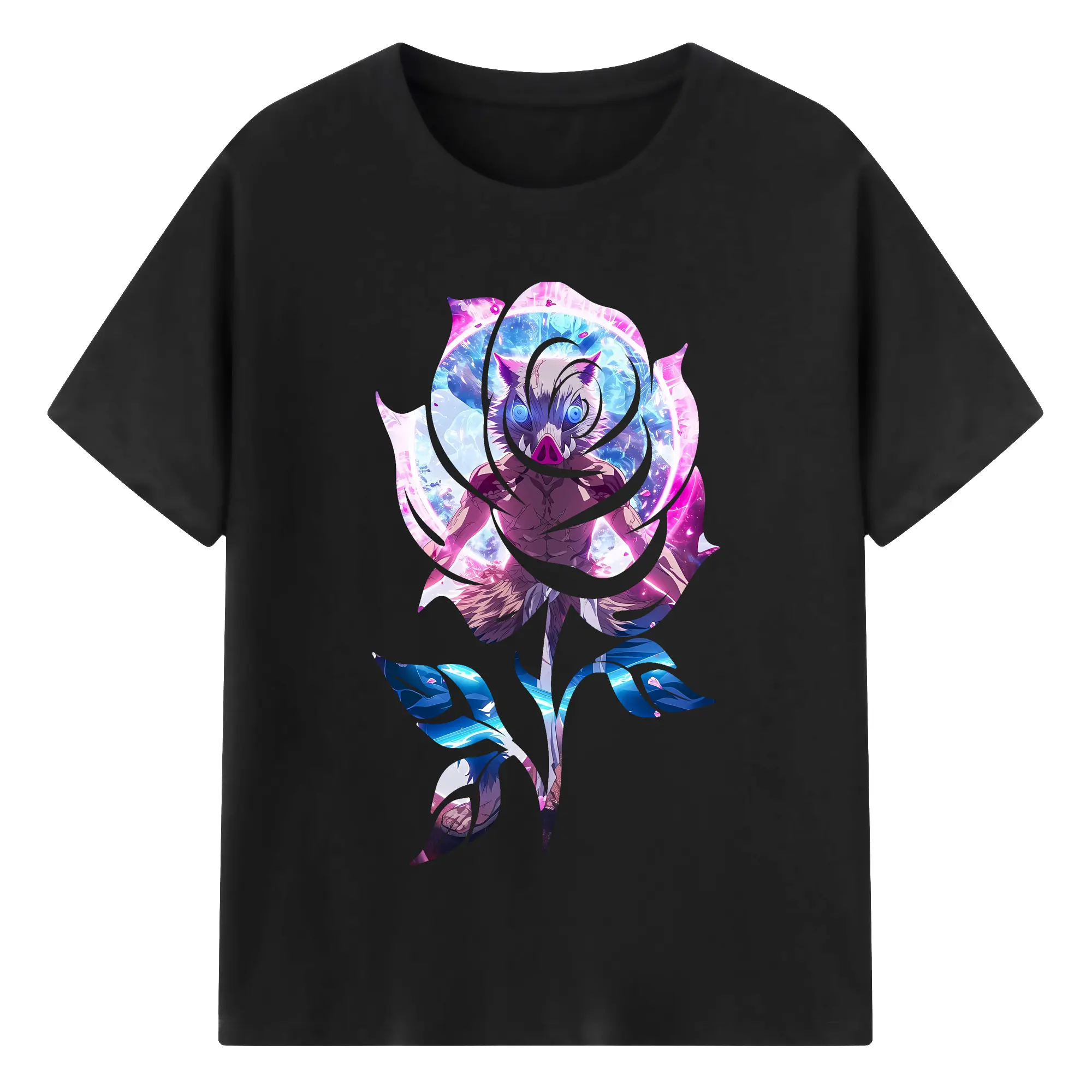 鬼滅の刃 グッズ,嘴平 伊之助 - 綿100% 半袖Tシャツ ・ バックプリント ・ 快適 通気性 ・ 日常使い 散歩 スポーツ用