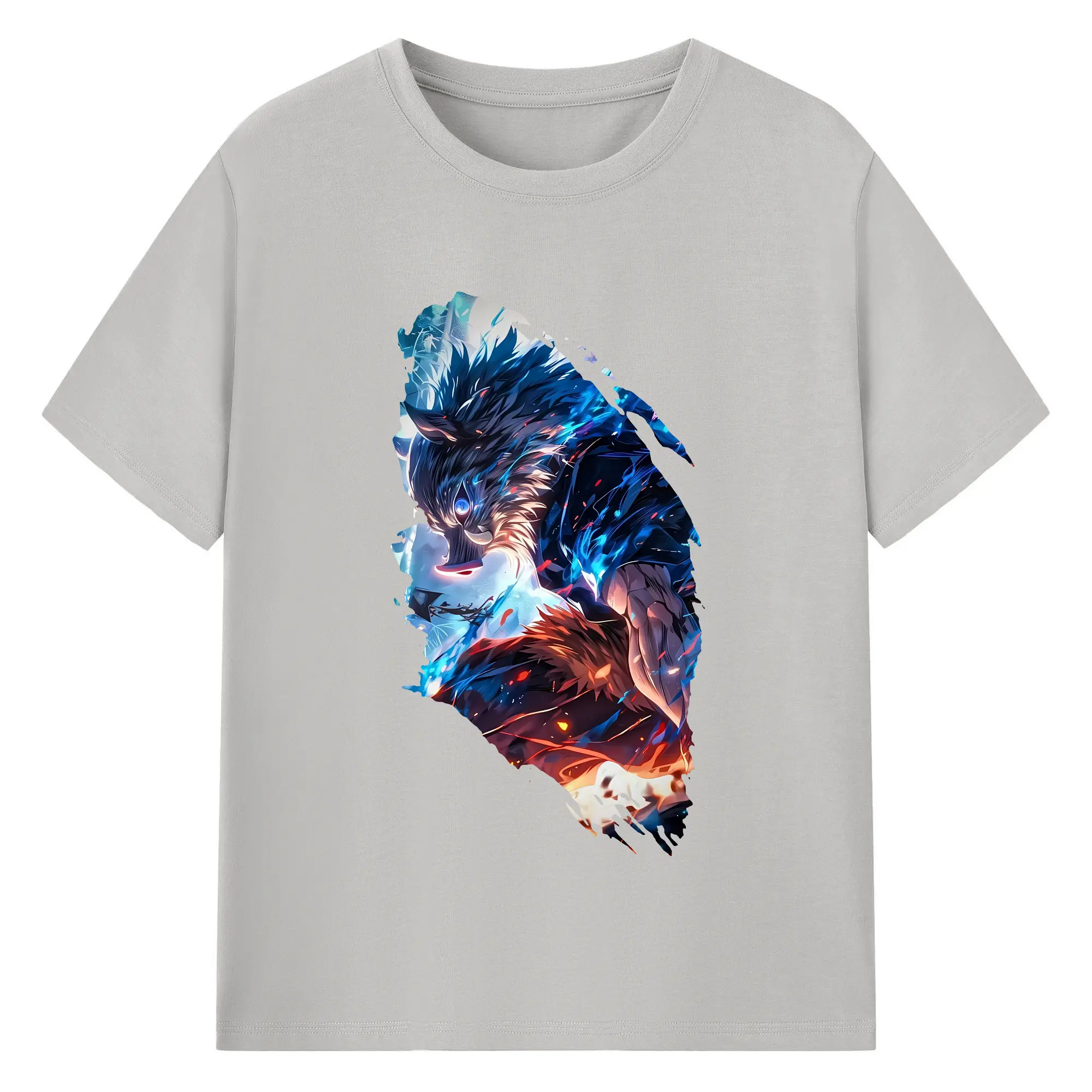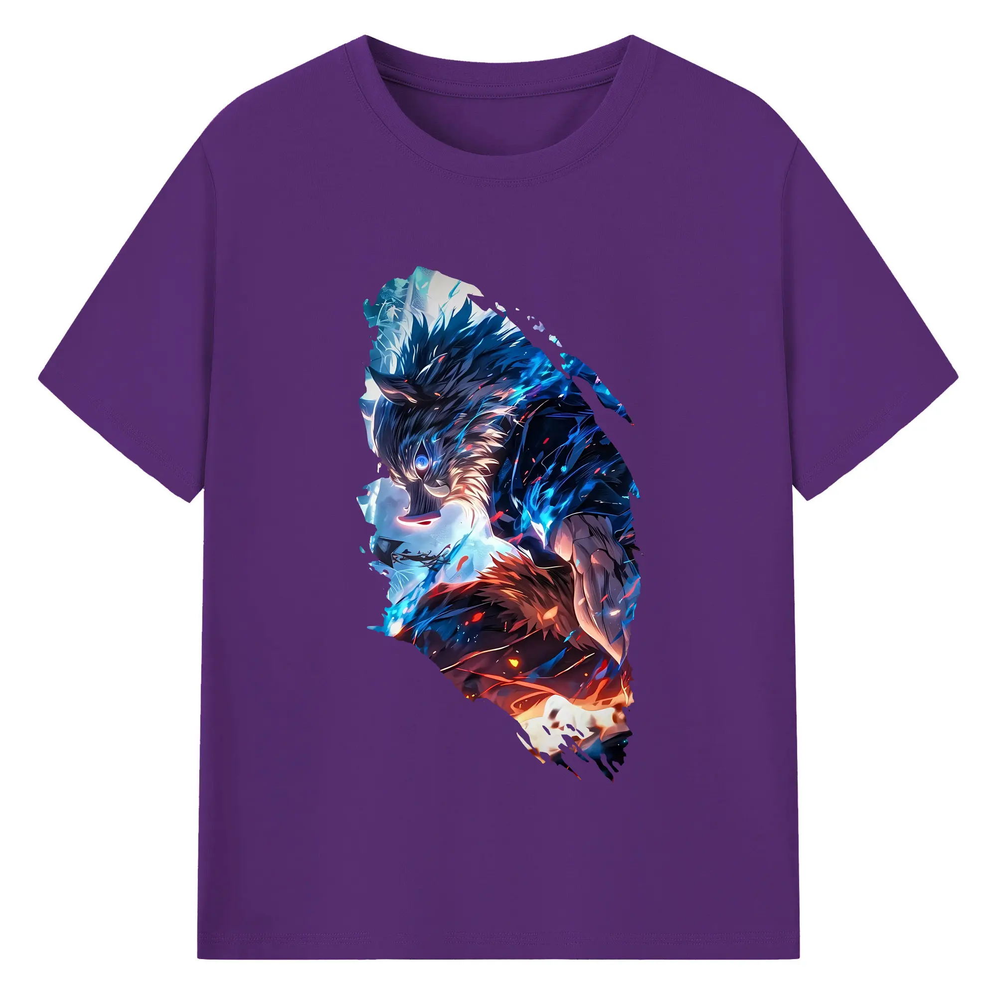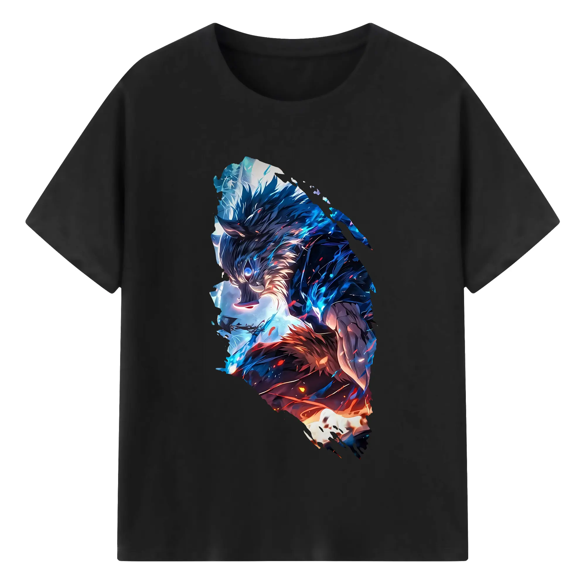 鬼滅の刃 グッズ,嘴平 伊之助 - 綿100% 半袖Tシャツ ・ バックプリント ・ 快適 通気性 ・ 日常使い 散歩 スポーツ用
