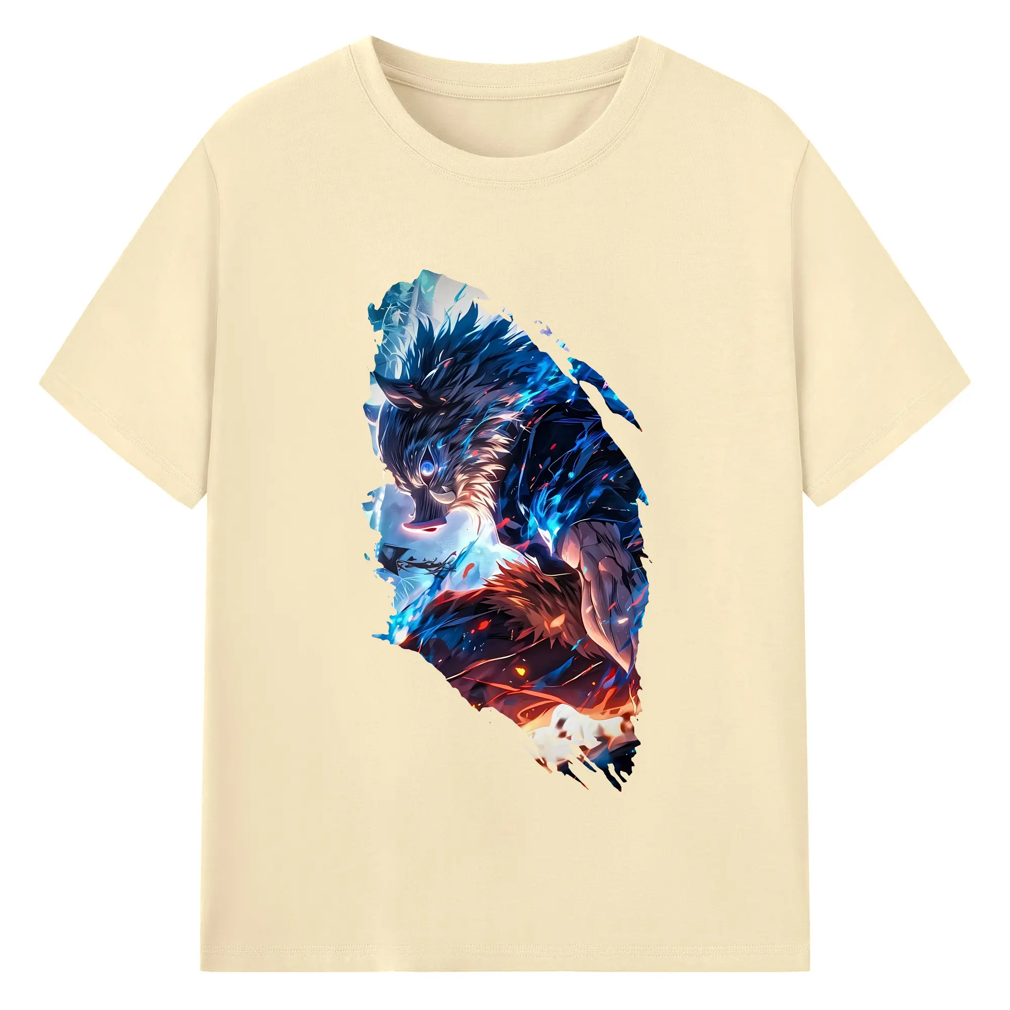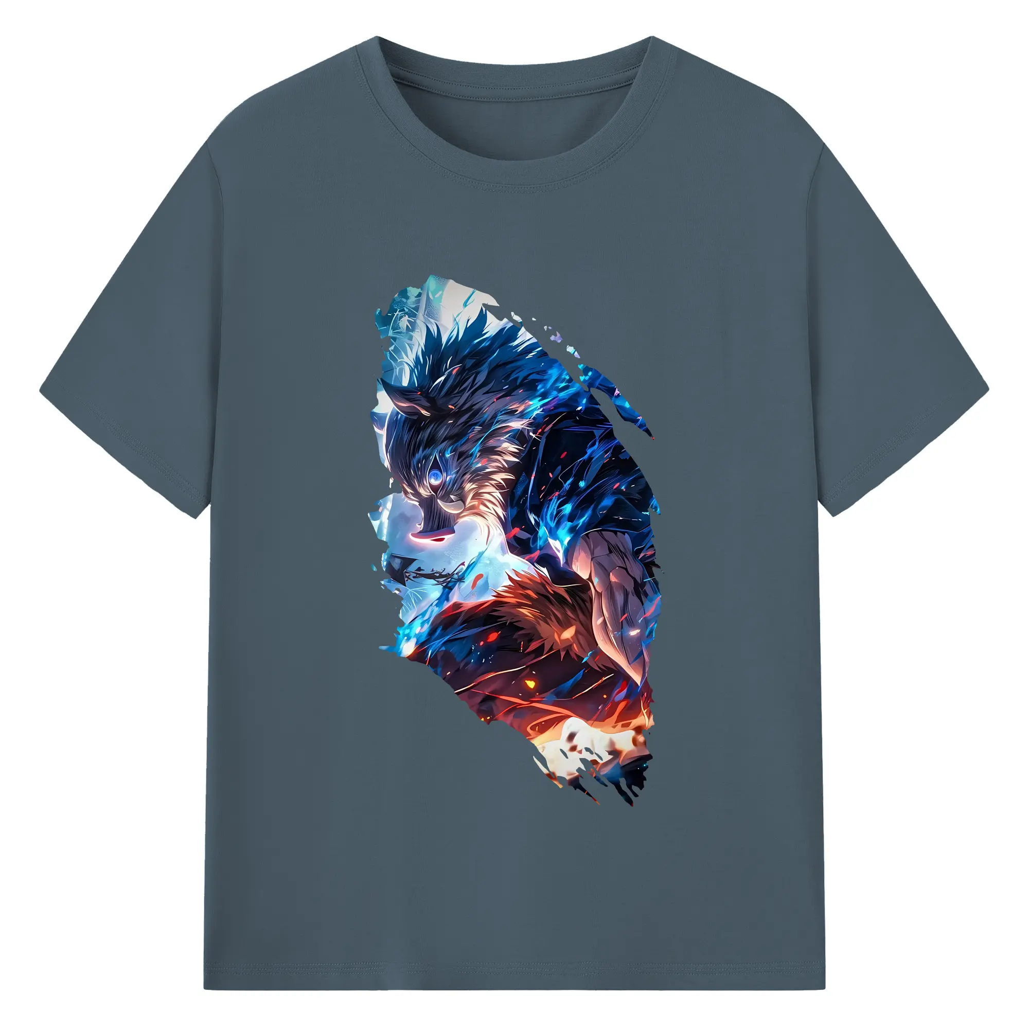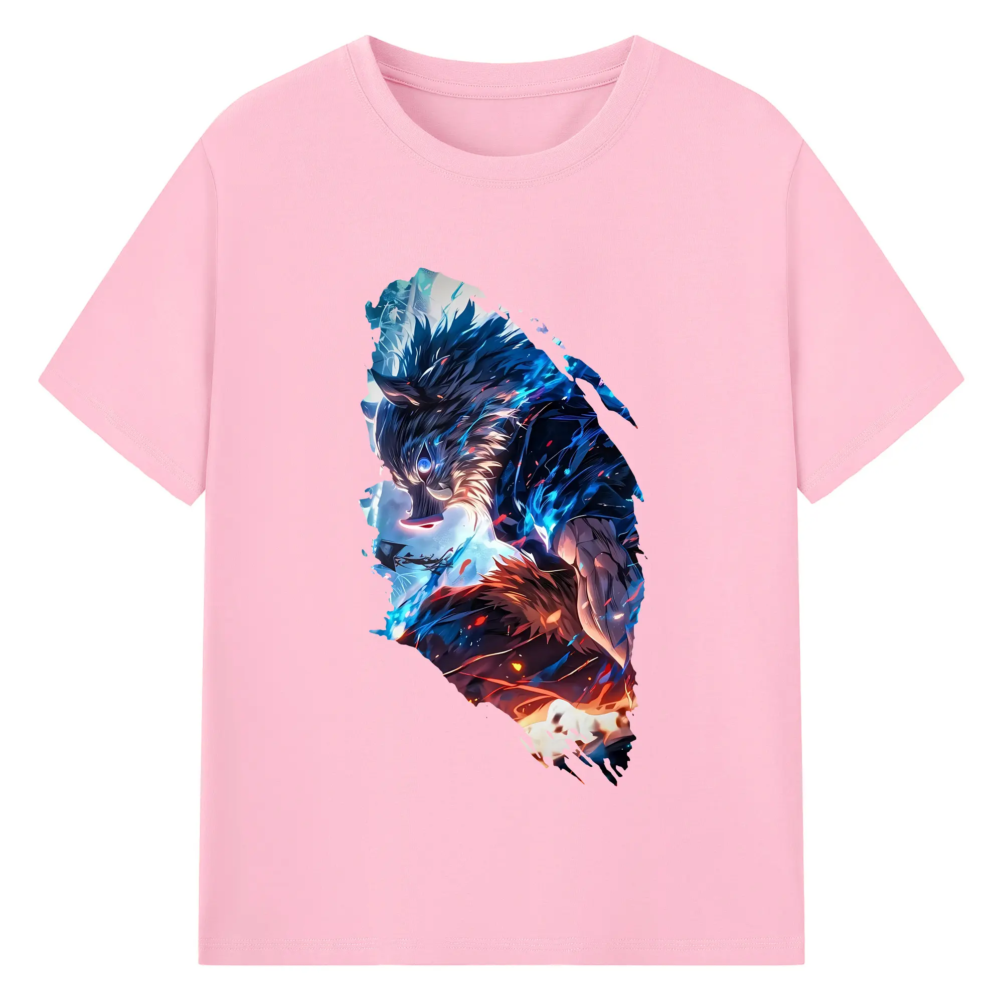 鬼滅の刃 グッズ,嘴平 伊之助 - 綿100% 半袖Tシャツ ・ バックプリント ・ 快適 通気性 ・ 日常使い 散歩 スポーツ用