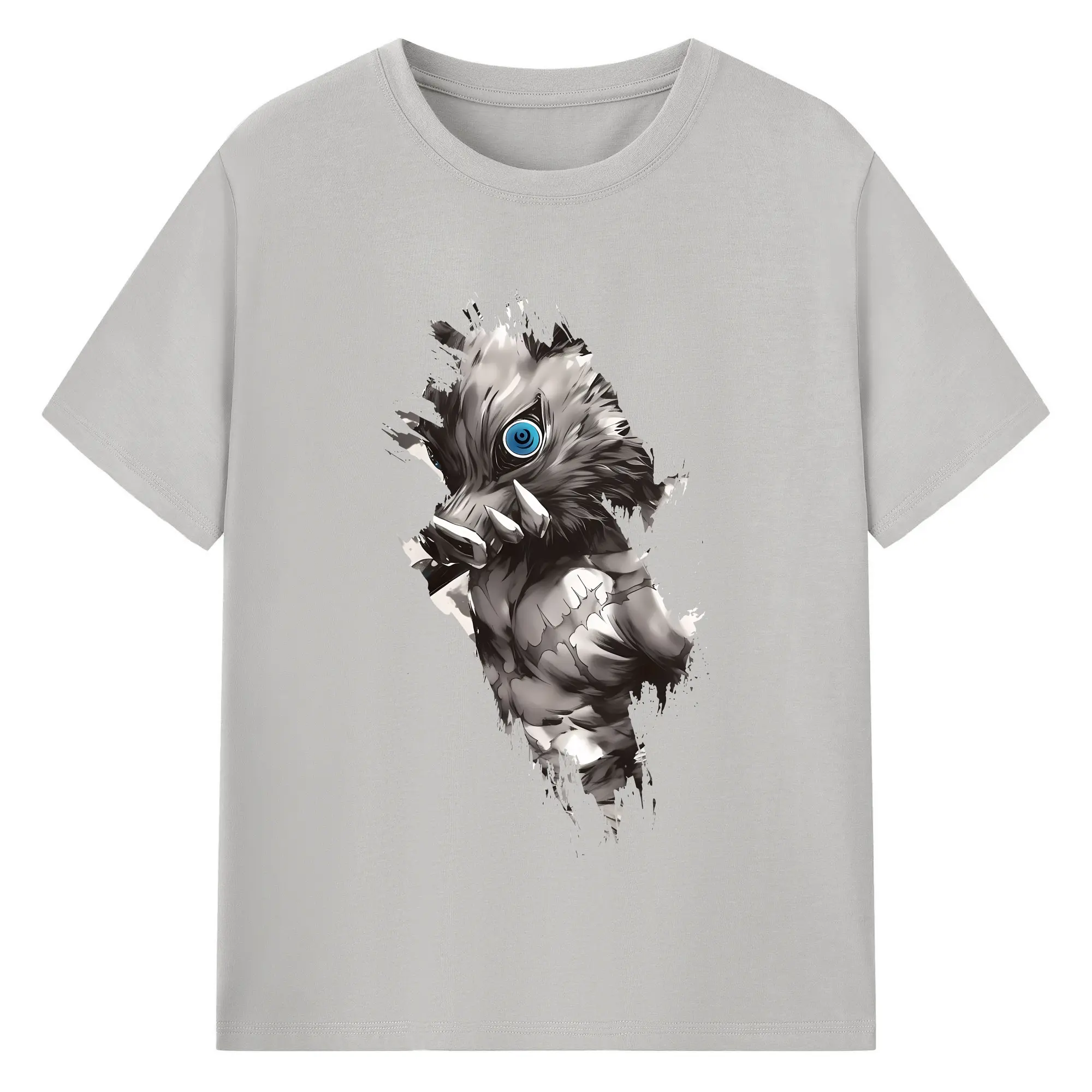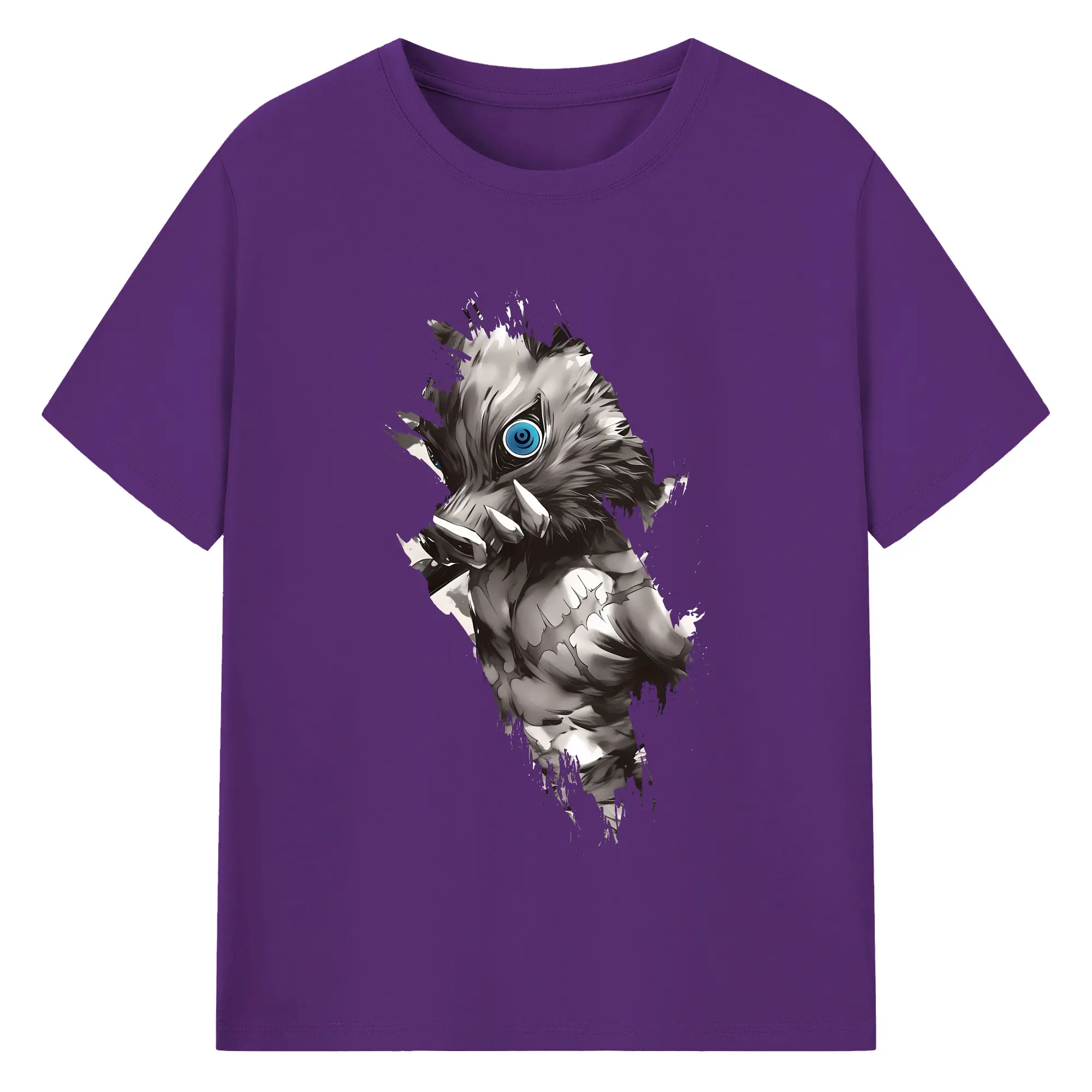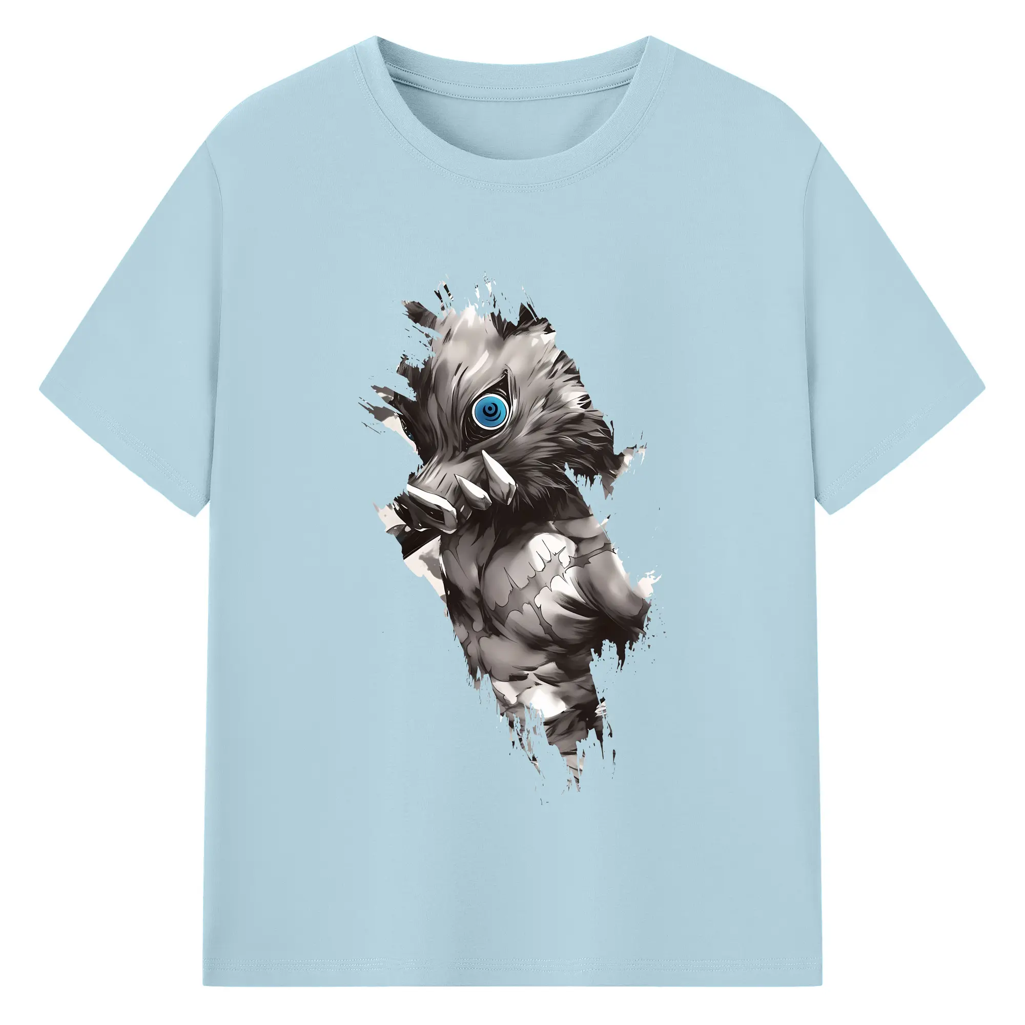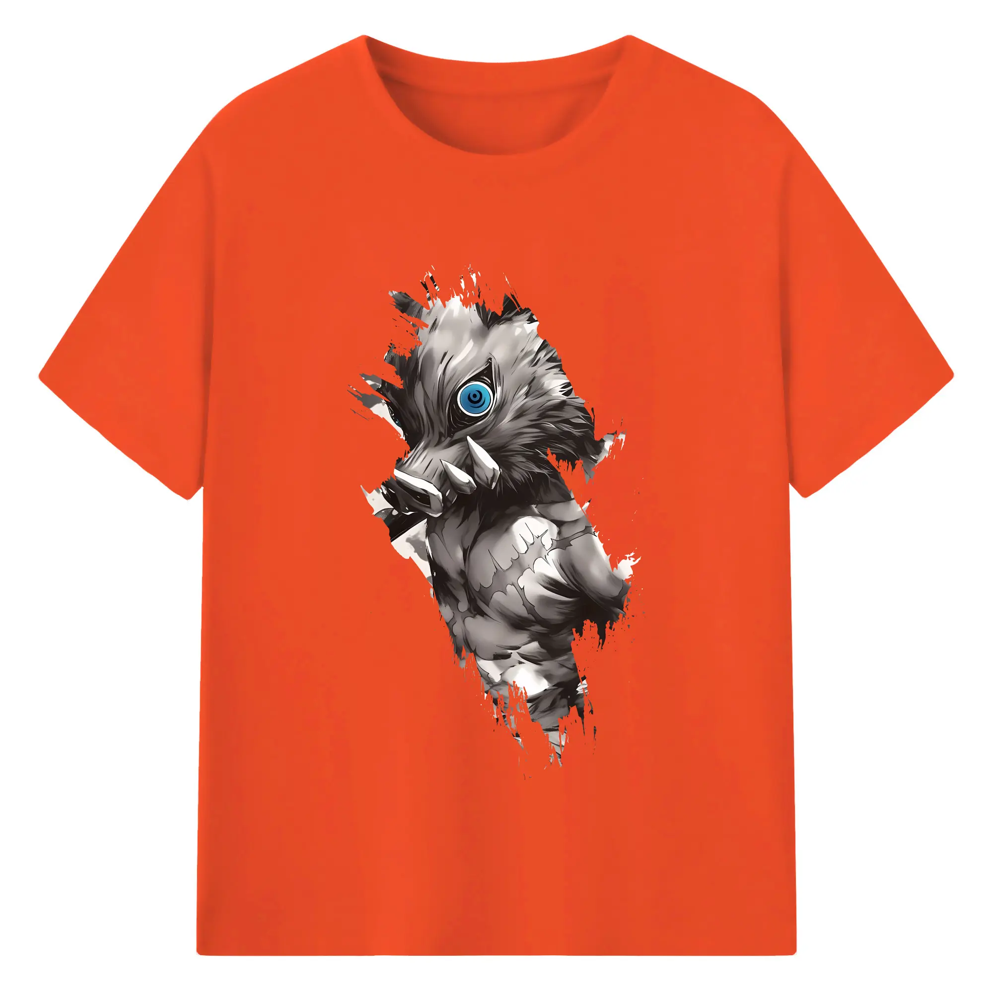鬼滅の刃 グッズ,嘴平 伊之助 - 綿100% 半袖Tシャツ ・ バックプリント ・ 快適 通気性 ・ 日常使い 散歩 スポーツ用
