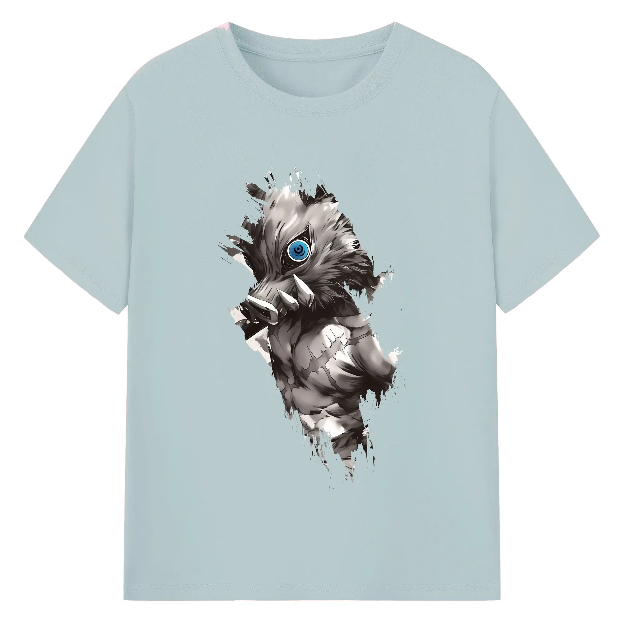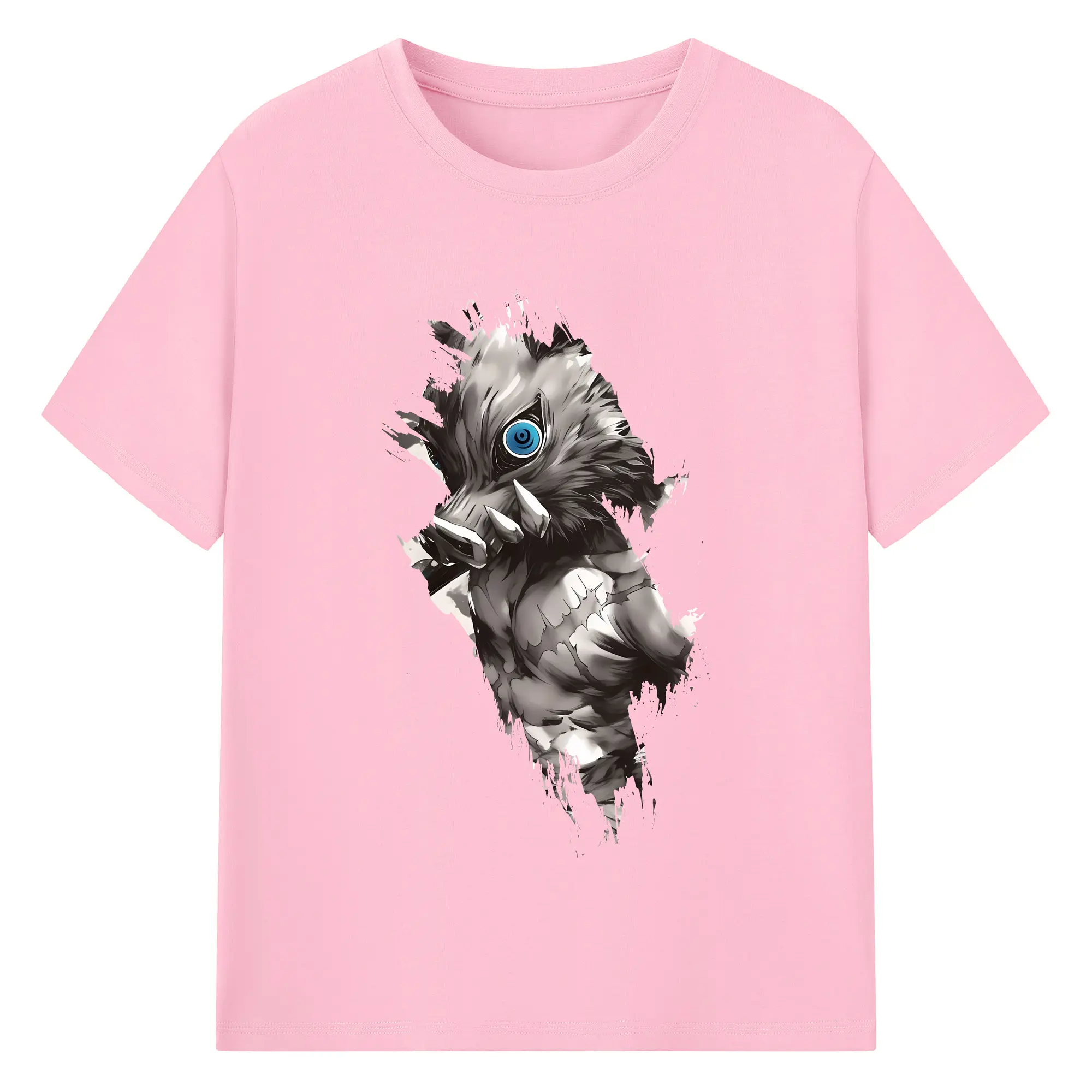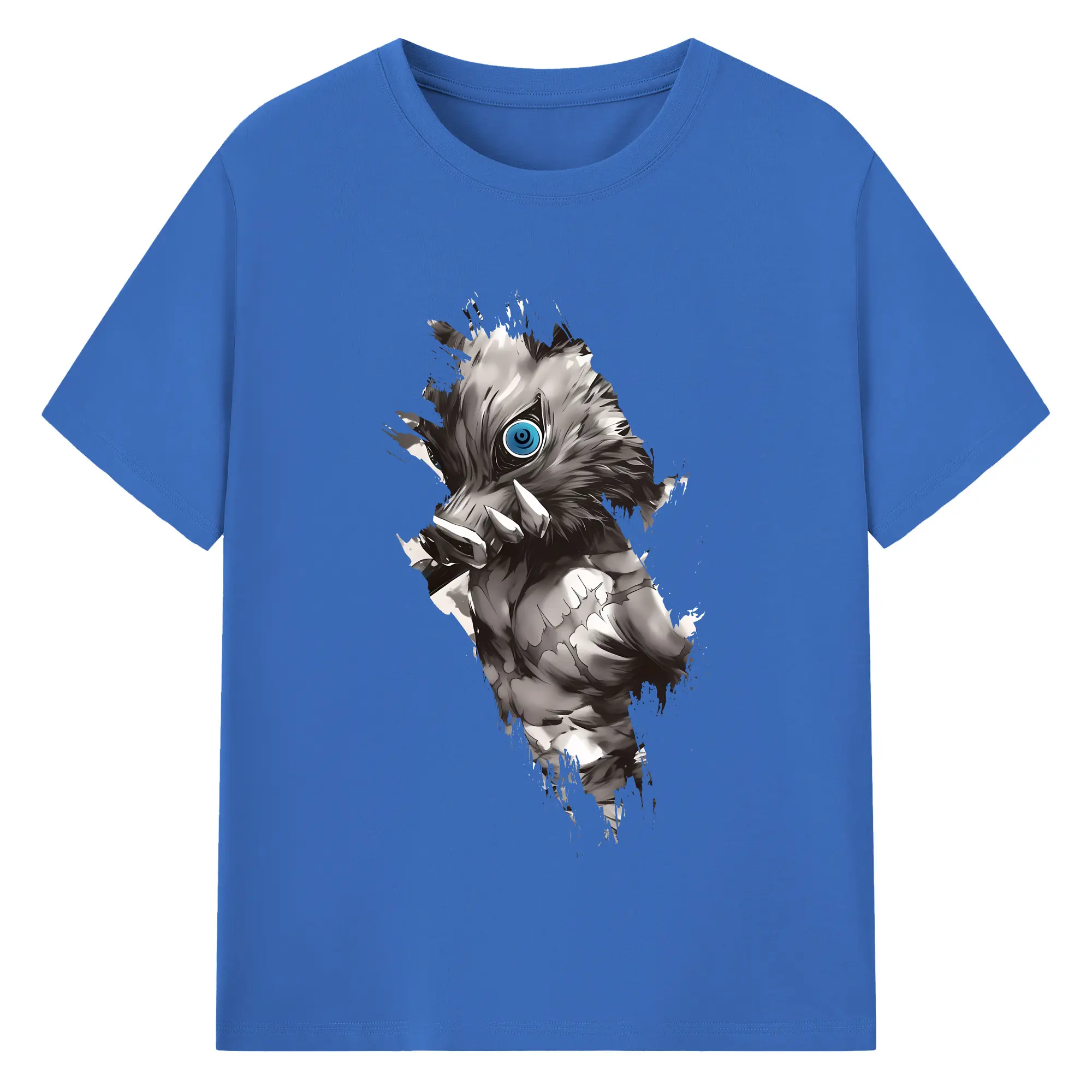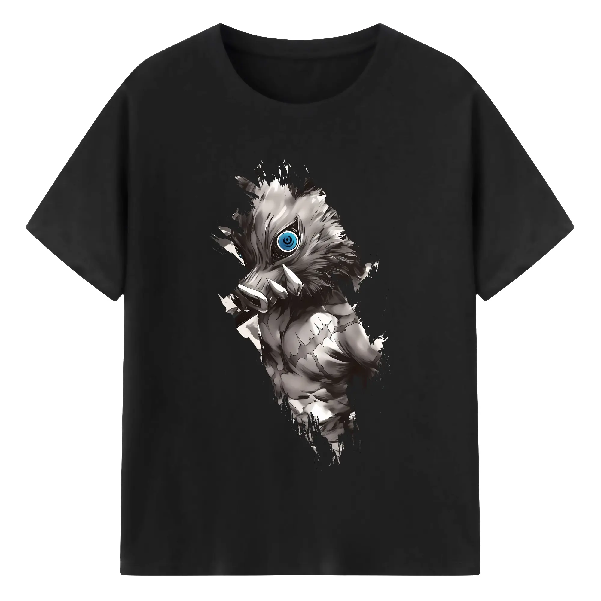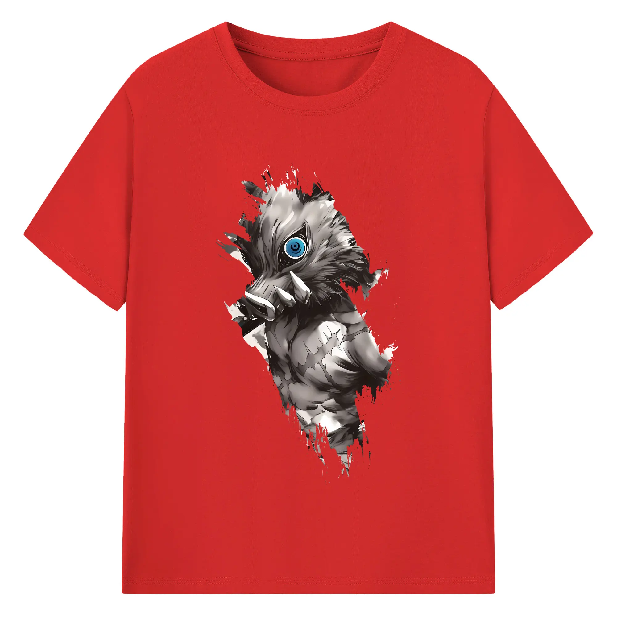 鬼滅の刃 グッズ,嘴平 伊之助 - 綿100% 半袖Tシャツ ・ バックプリント ・ 快適 通気性 ・ 日常使い 散歩 スポーツ用