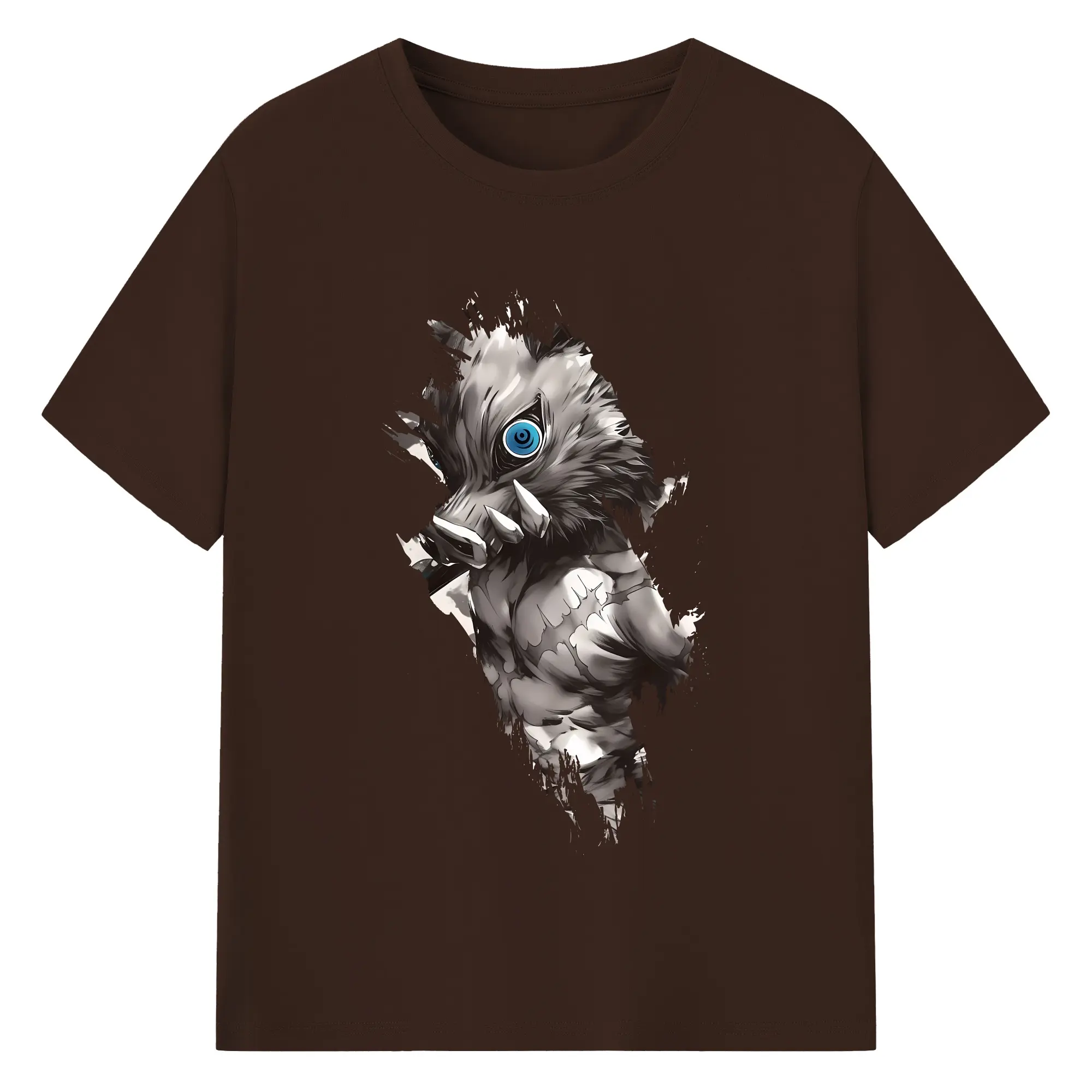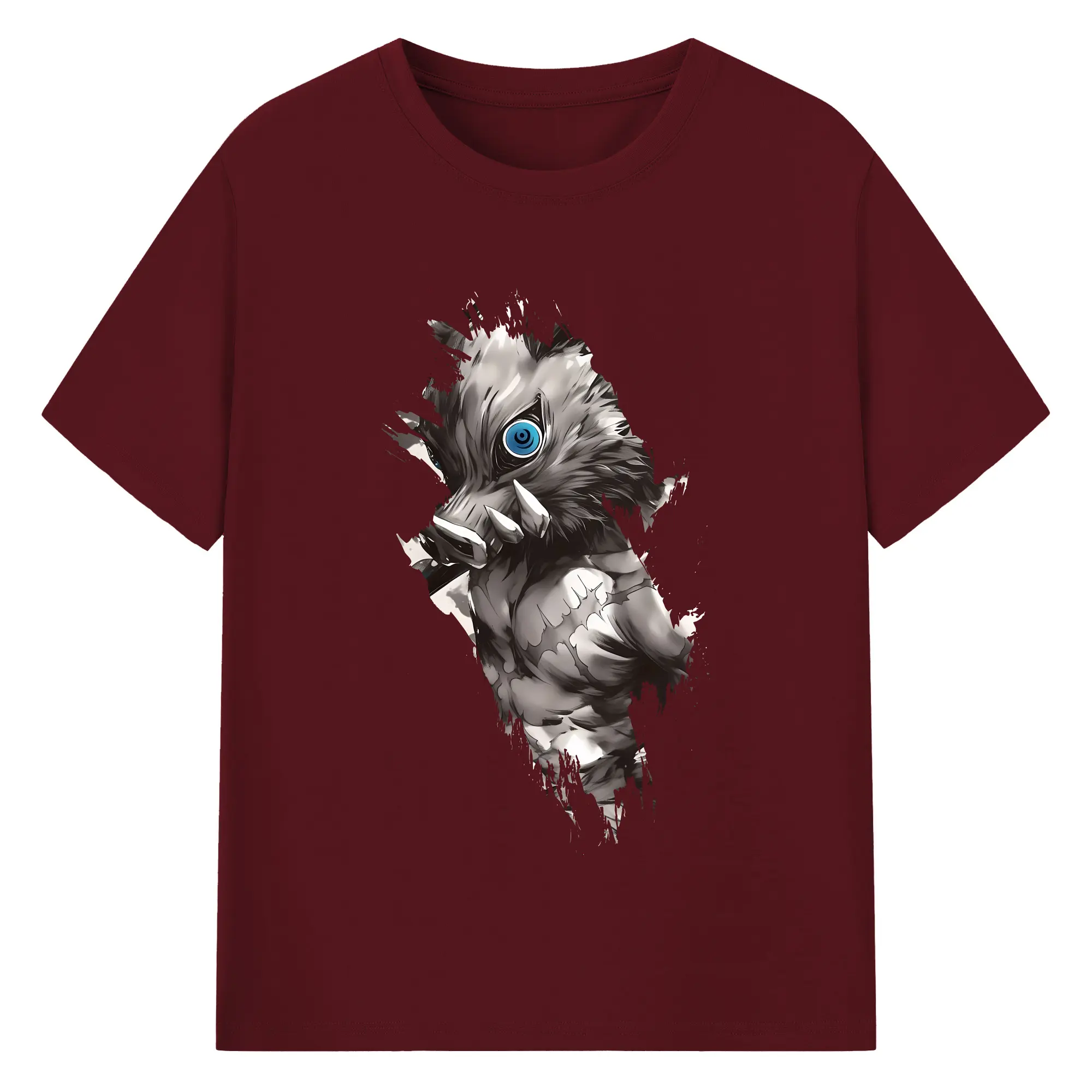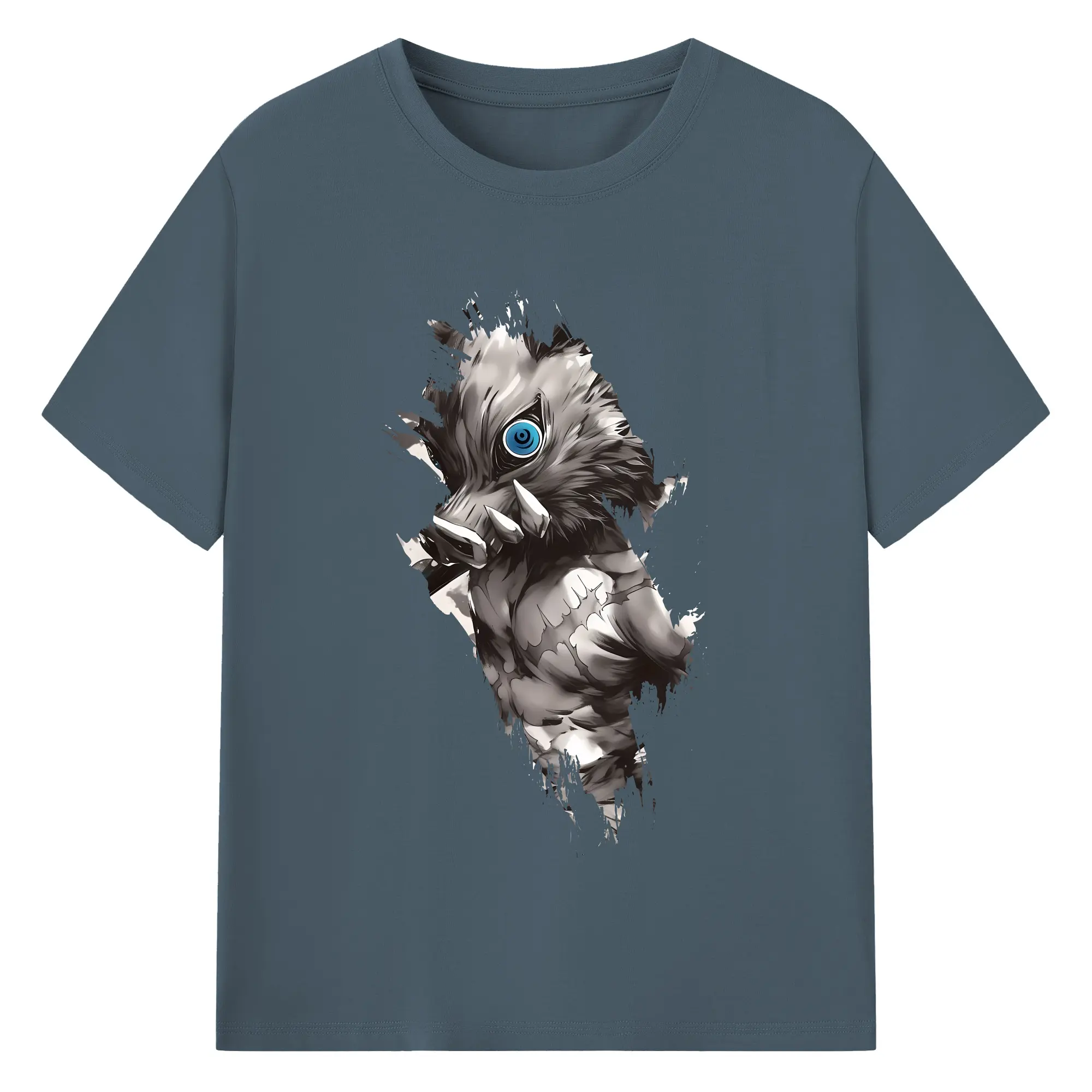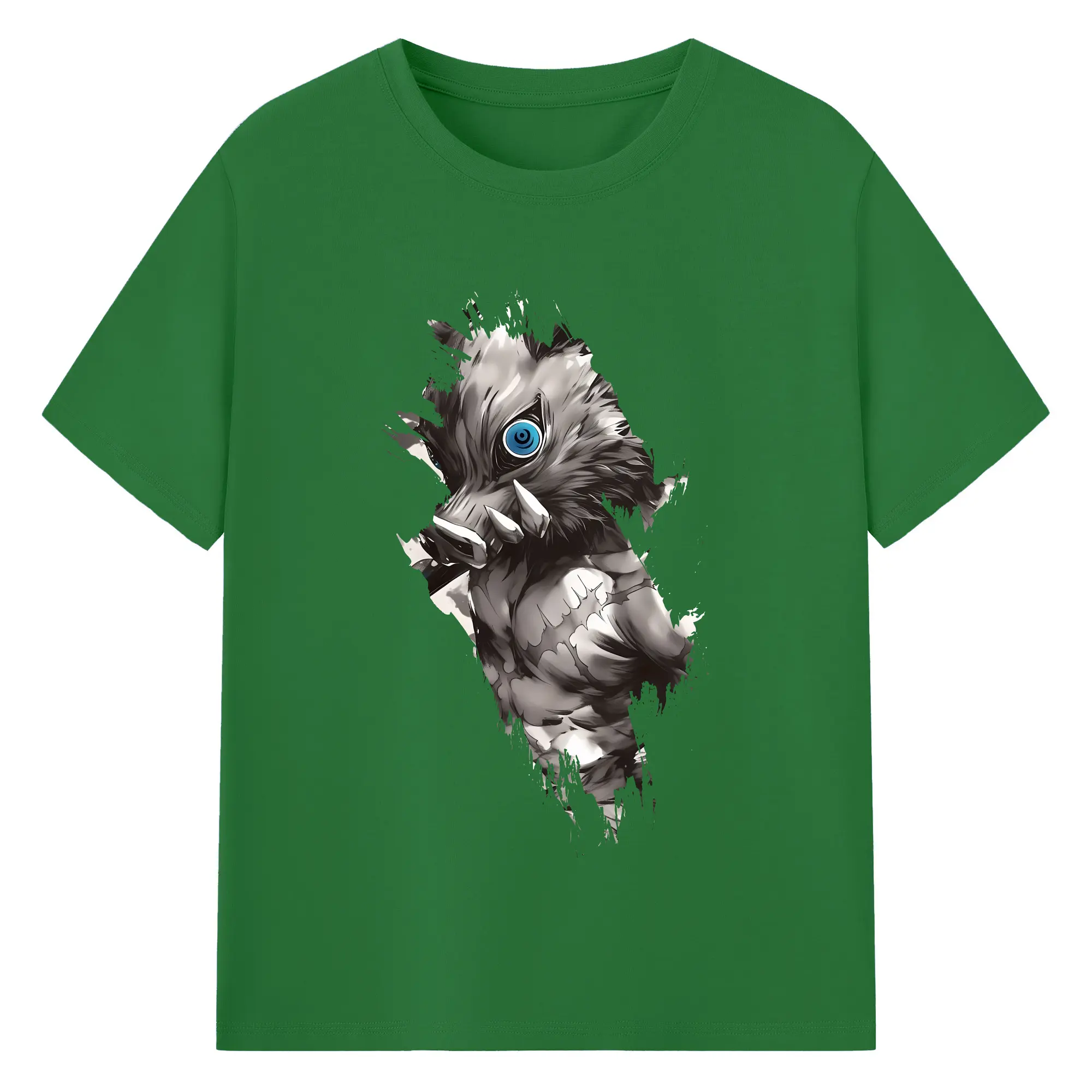鬼滅の刃 グッズ,嘴平 伊之助 - 綿100% 半袖Tシャツ ・ バックプリント ・ 快適 通気性 ・ 日常使い 散歩 スポーツ用