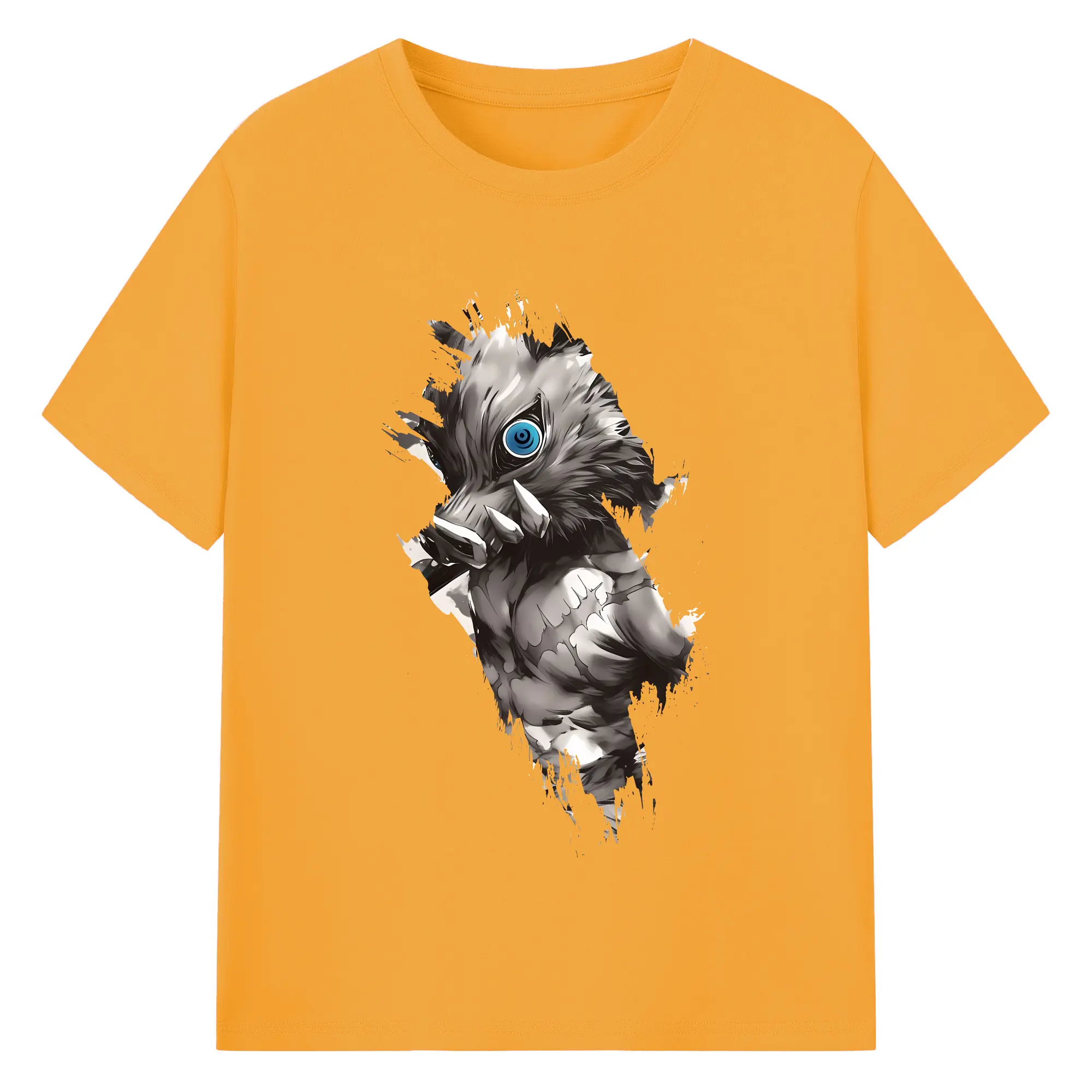 鬼滅の刃 グッズ,嘴平 伊之助 - 綿100% キッズTシャツ ・ フロントプリント ・ 快適 通気性 ・ スポーツ カジュアル 散歩用
