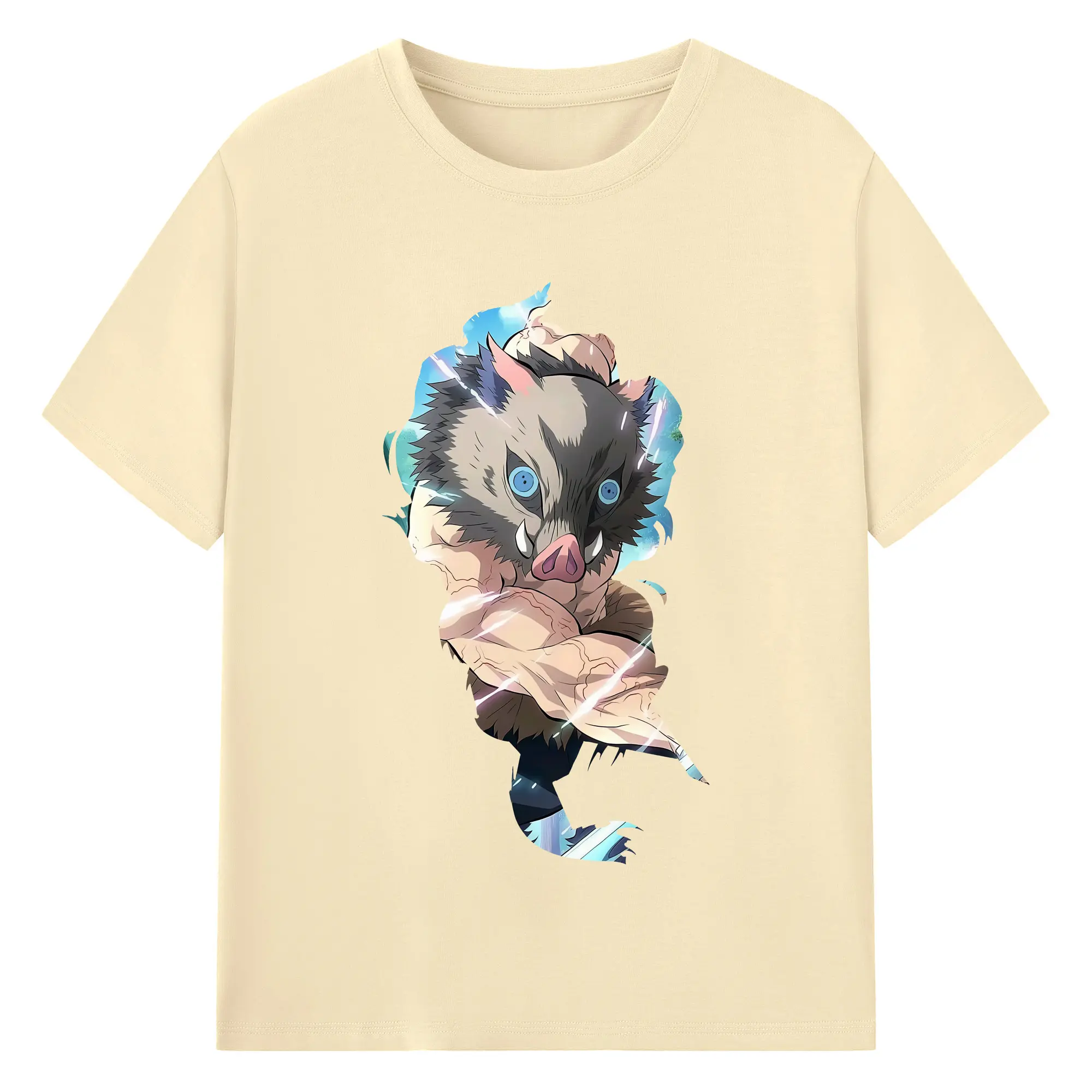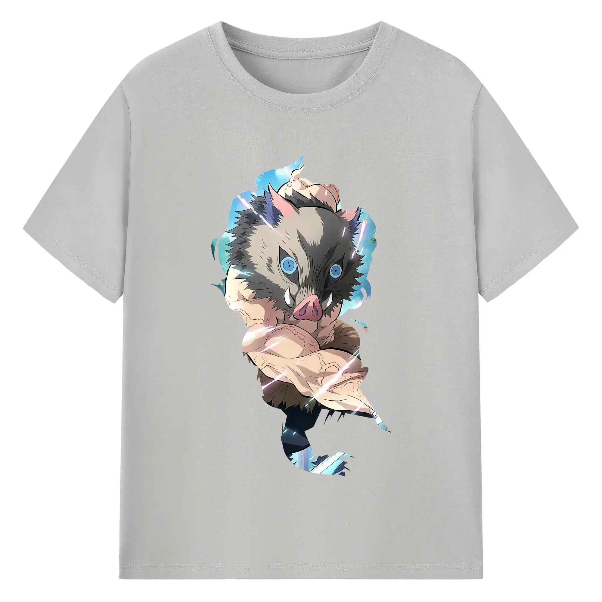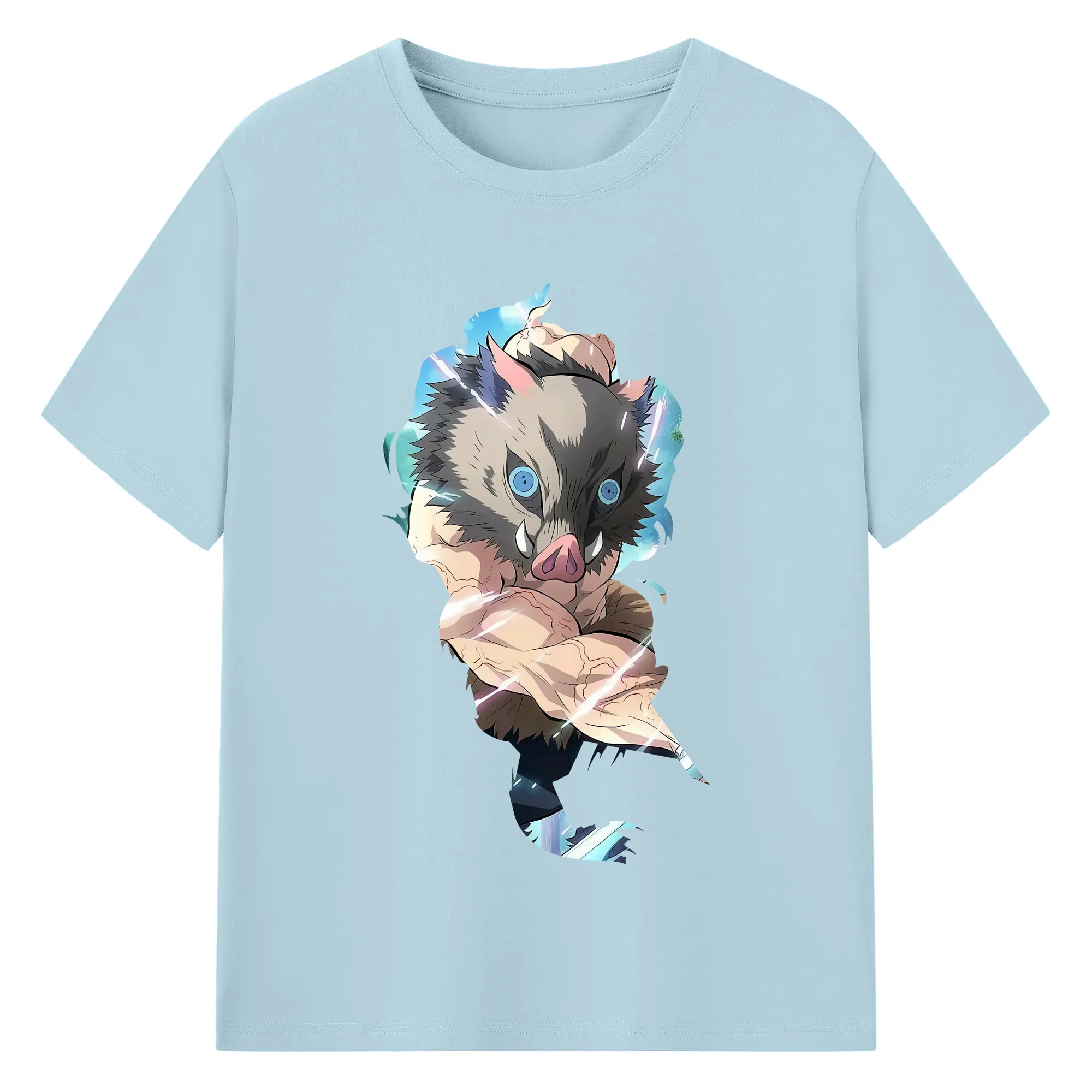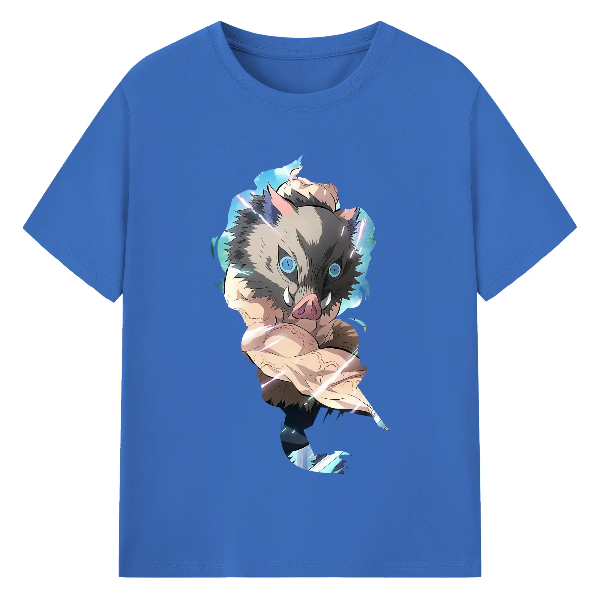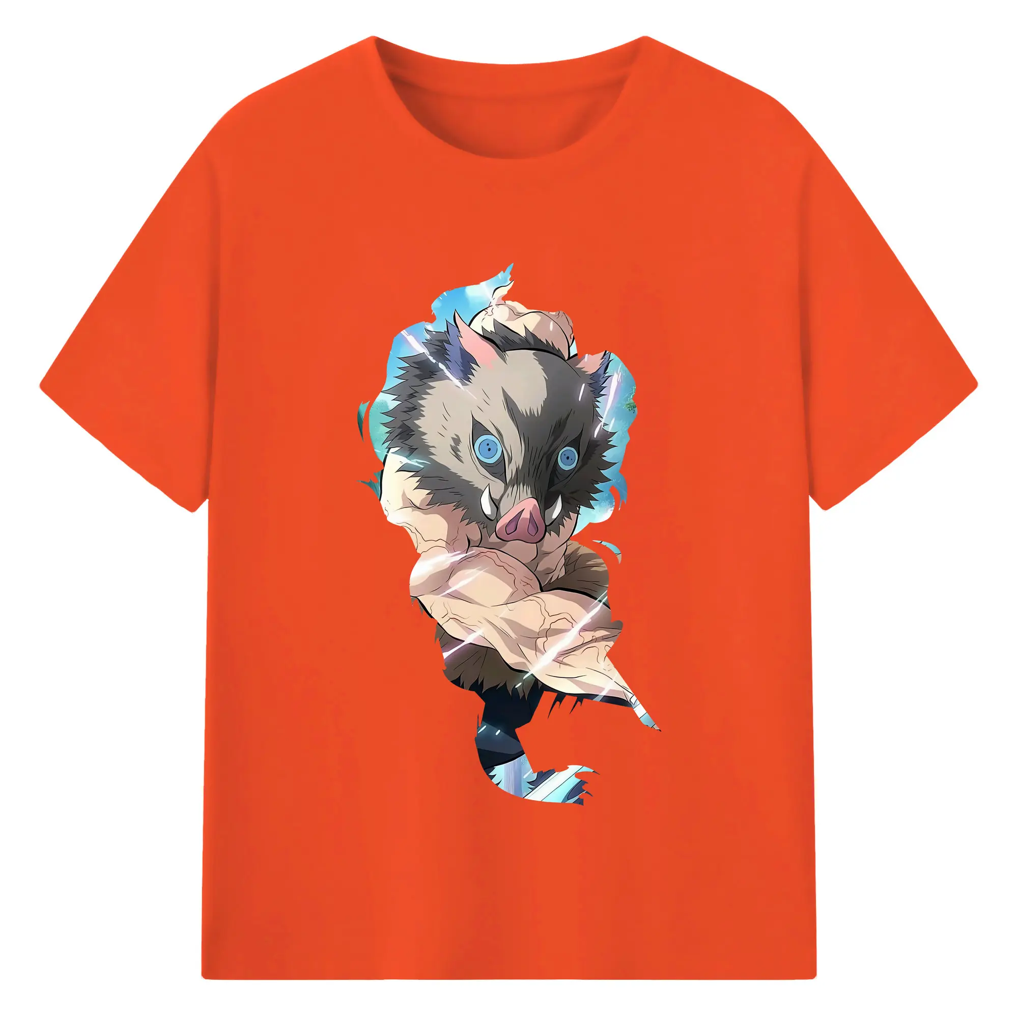 鬼滅の刃 グッズ,嘴平 伊之助 - 綿100% 半袖Tシャツ ・ バックプリント ・ 快適 通気性 ・ 日常使い 散歩 スポーツ用