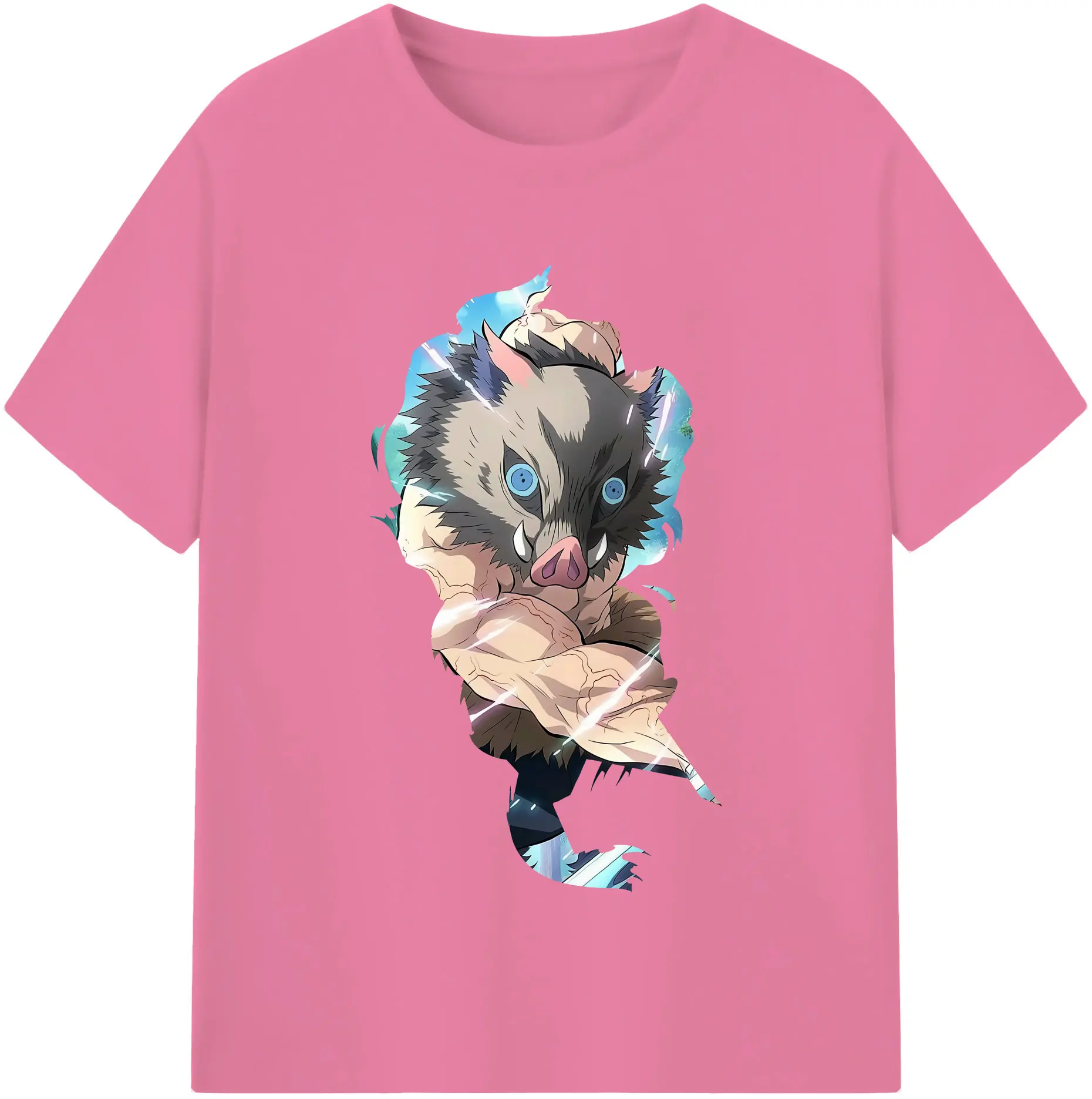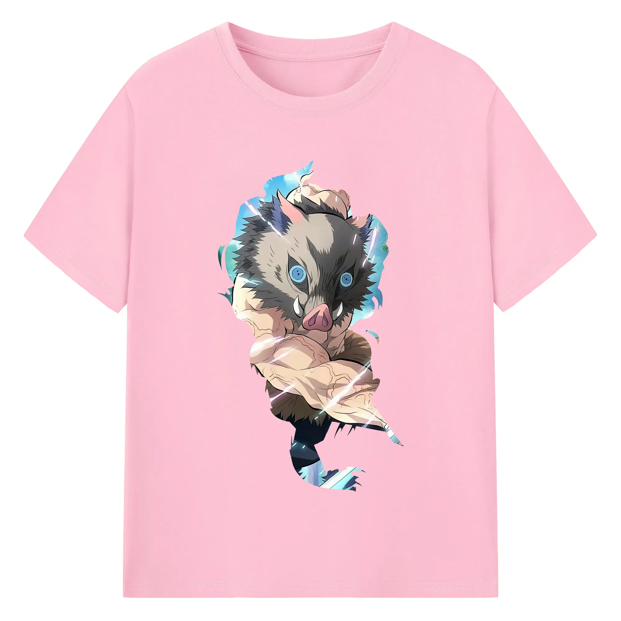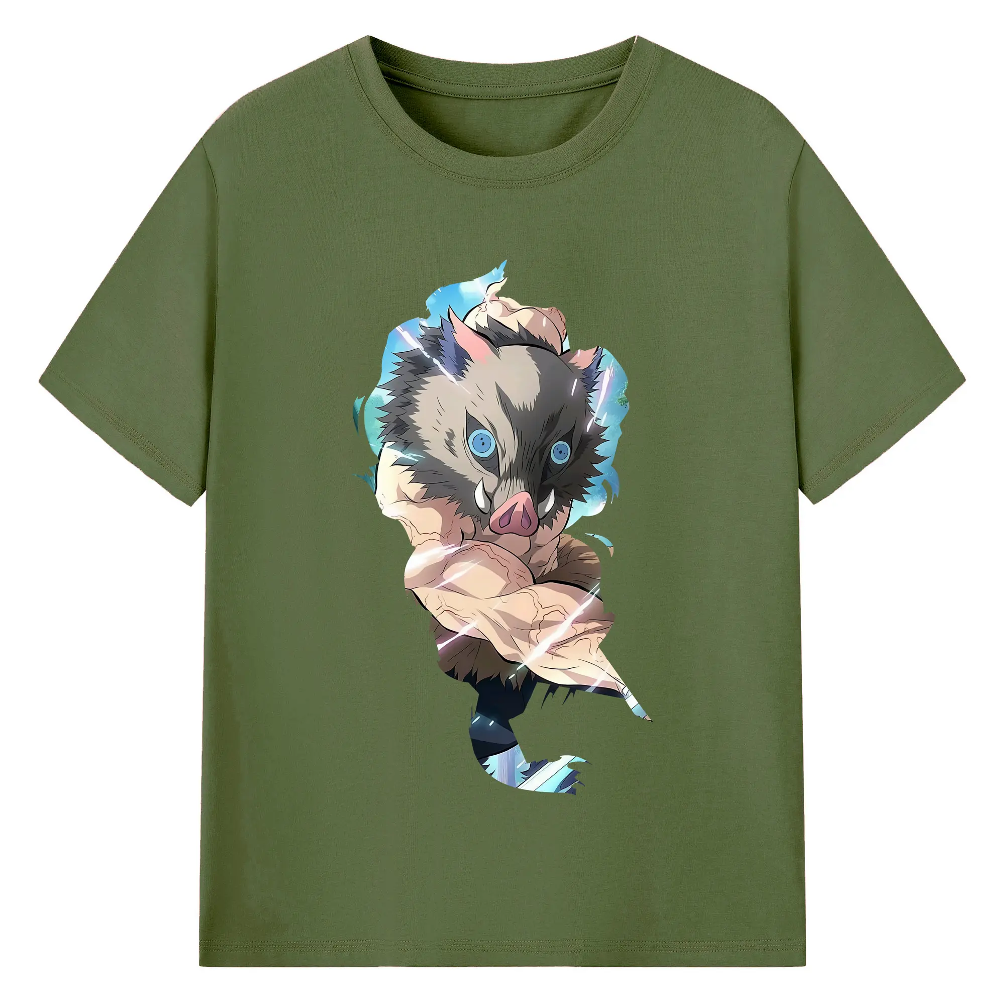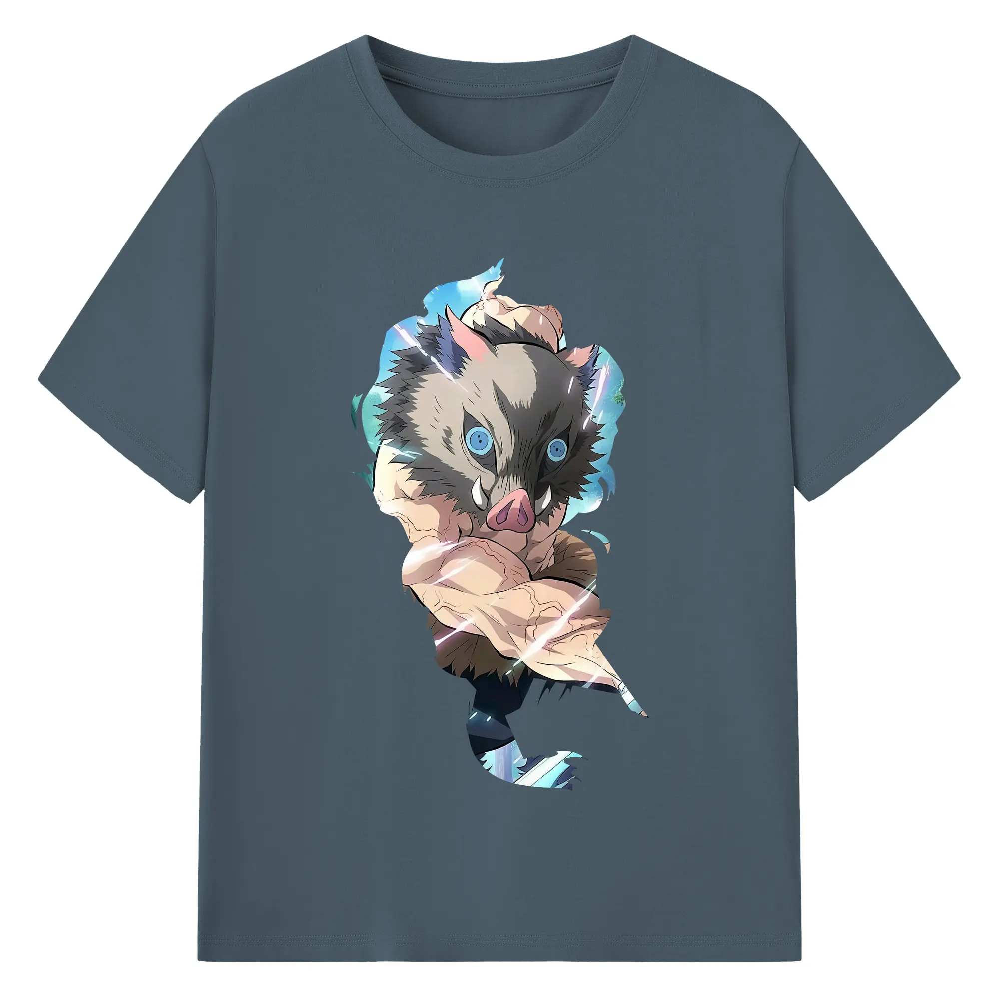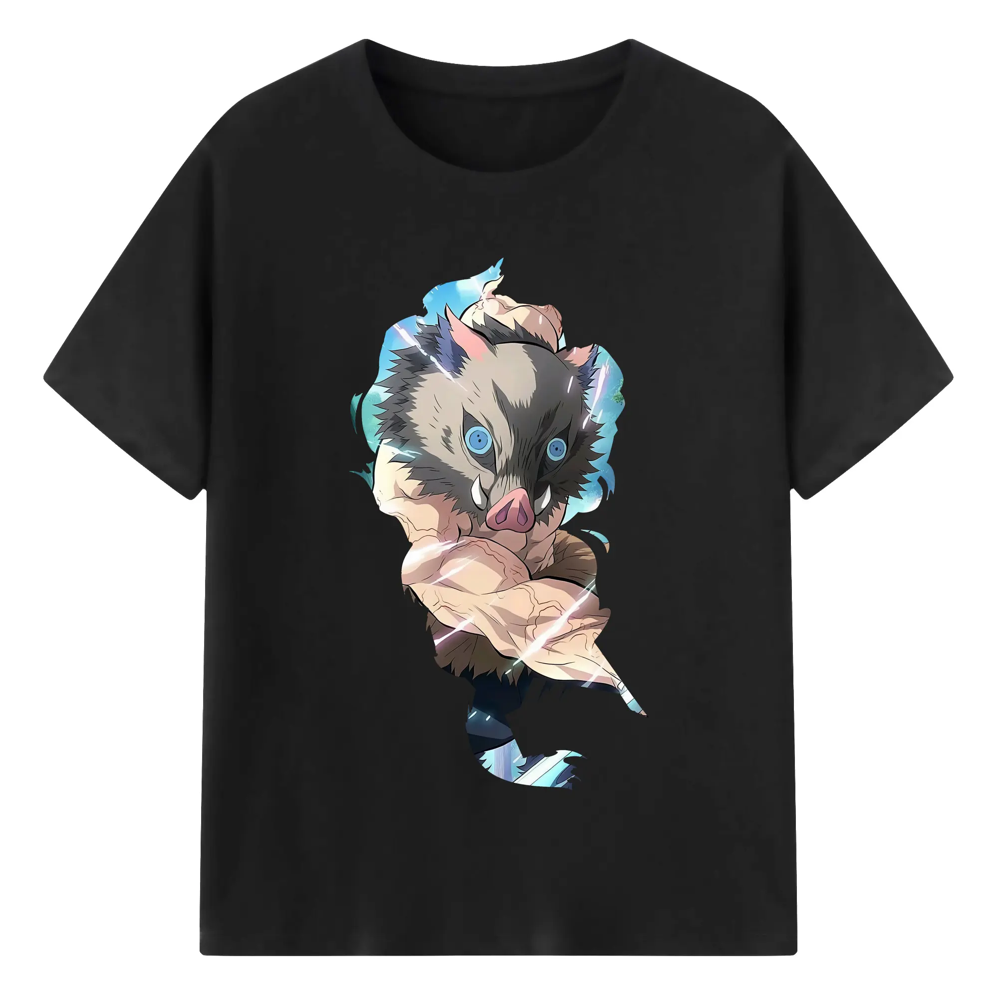 鬼滅の刃 グッズ,嘴平 伊之助 - 綿100% 半袖Tシャツ ・ バックプリント ・ 快適 通気性 ・ 日常使い 散歩 スポーツ用