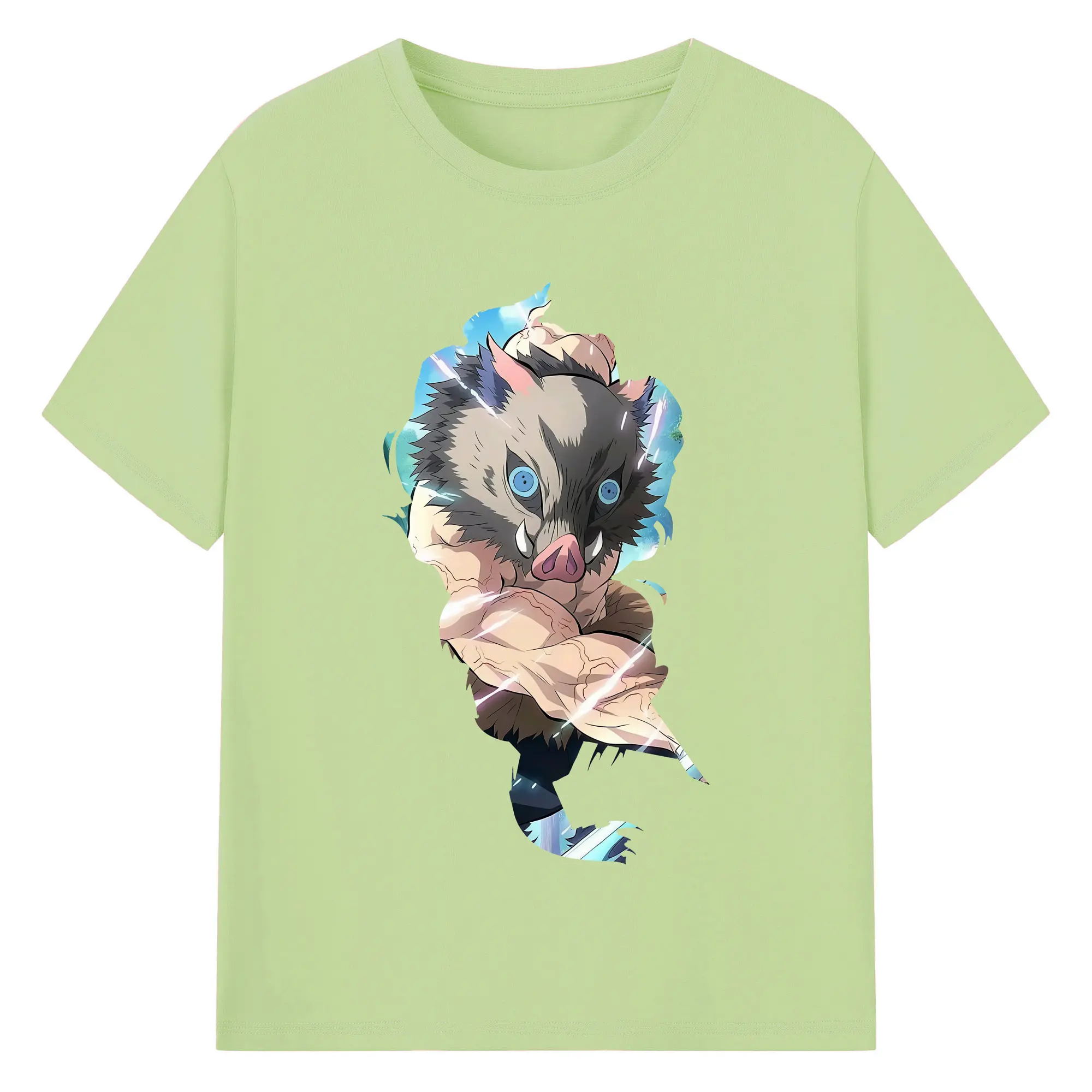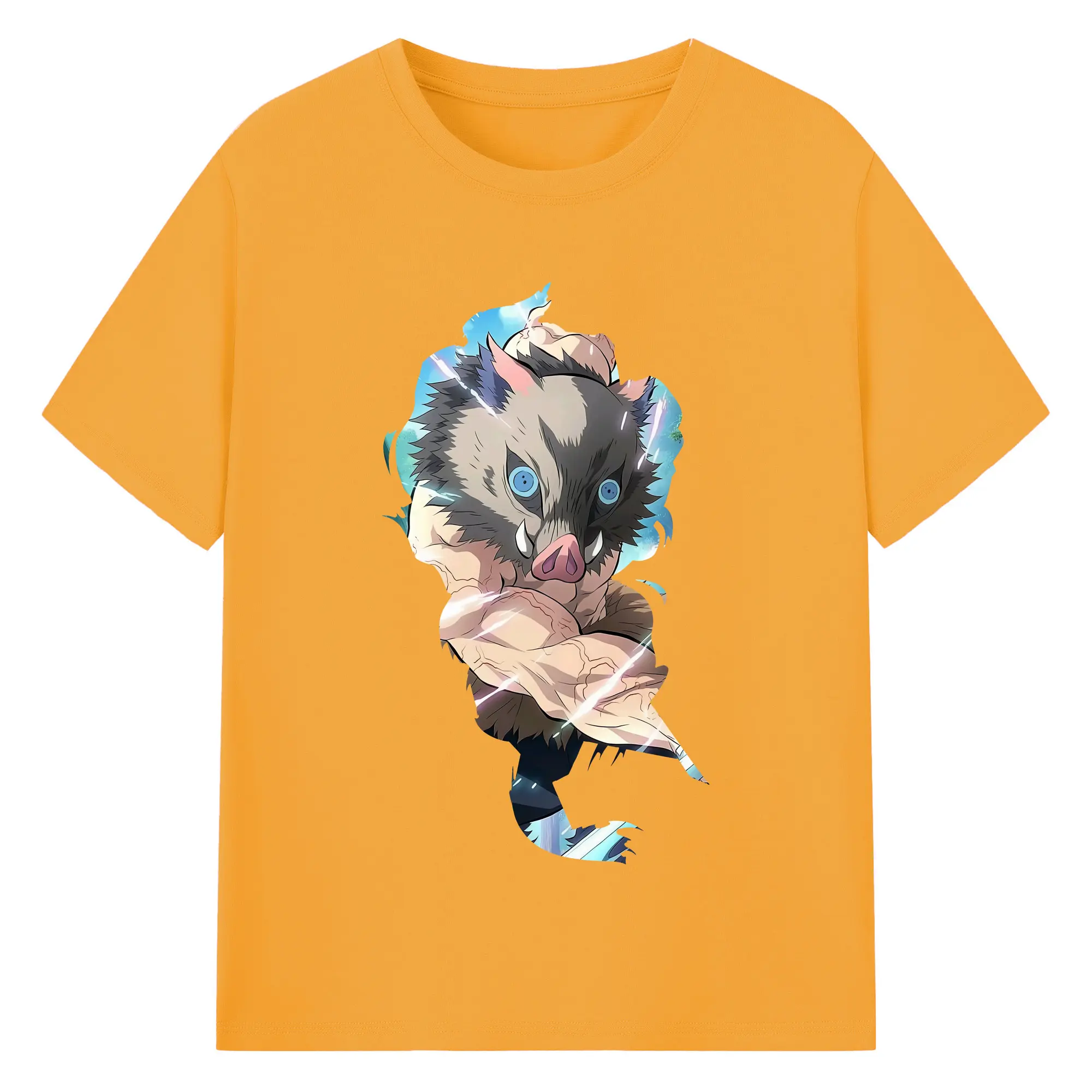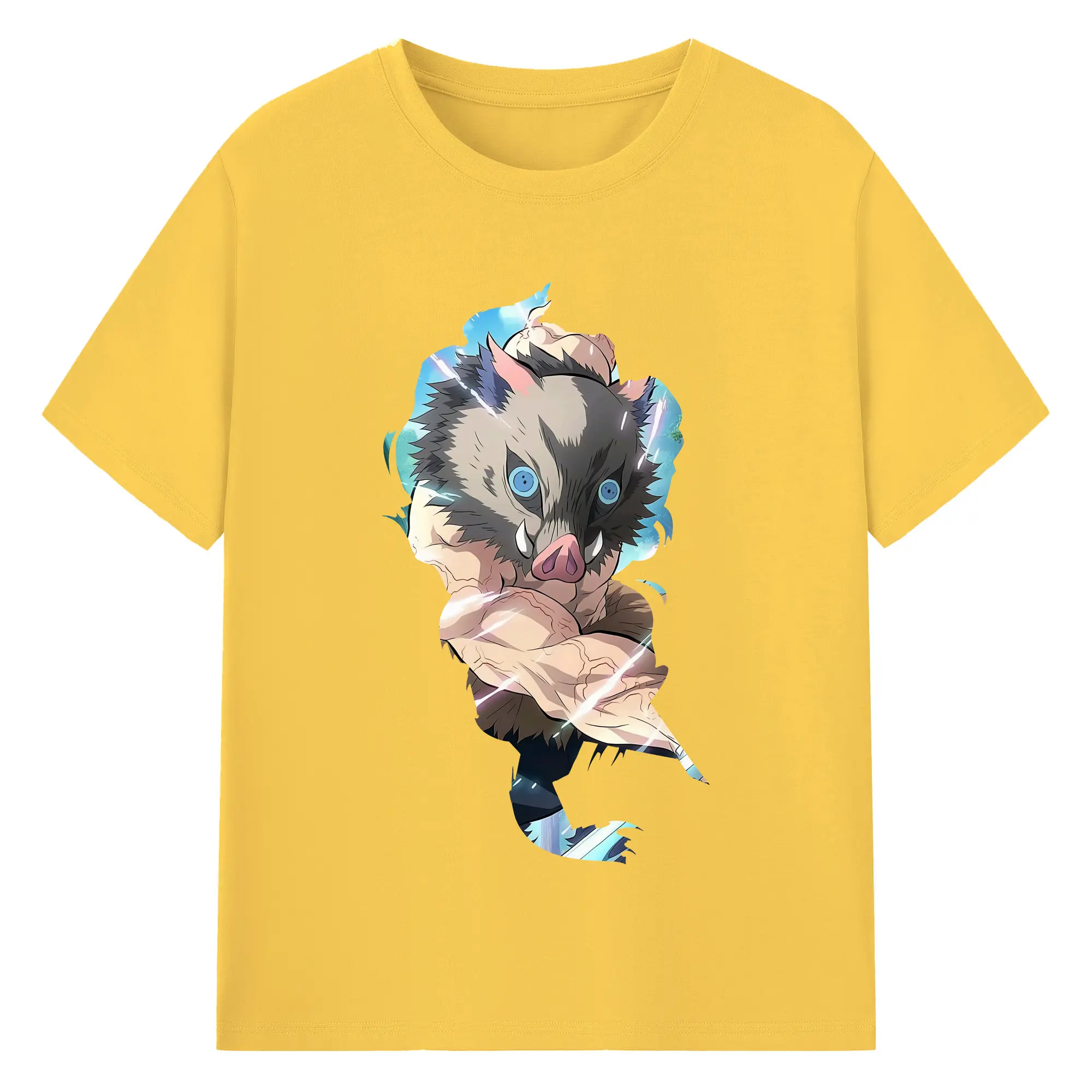 鬼滅の刃 グッズ,嘴平 伊之助 - 綿100% キッズTシャツ ・ フロントプリント ・ 快適 通気性 ・ スポーツ カジュアル 散歩用