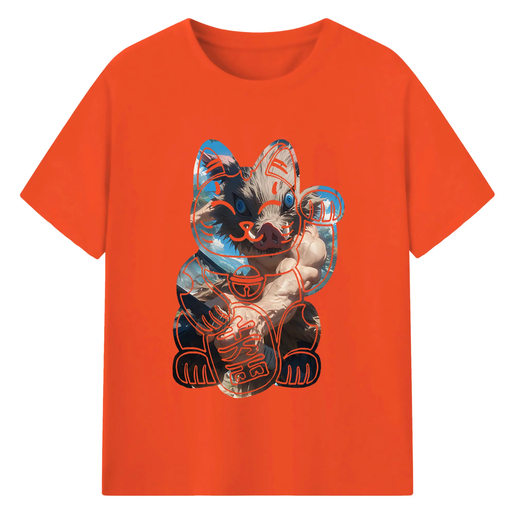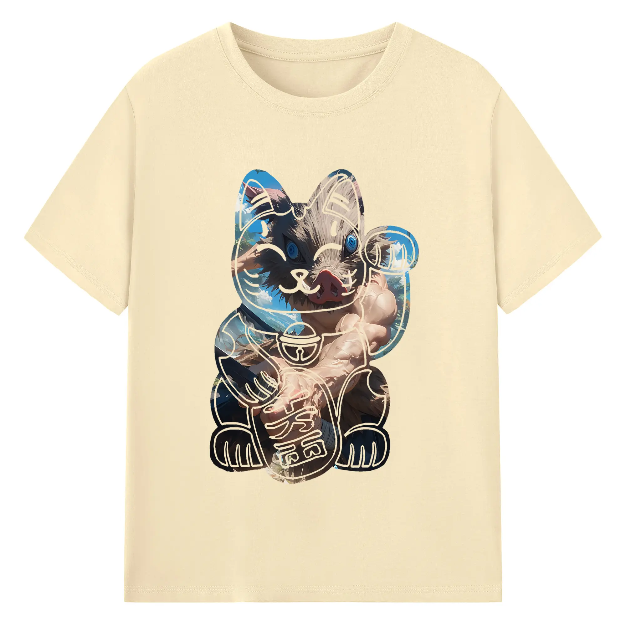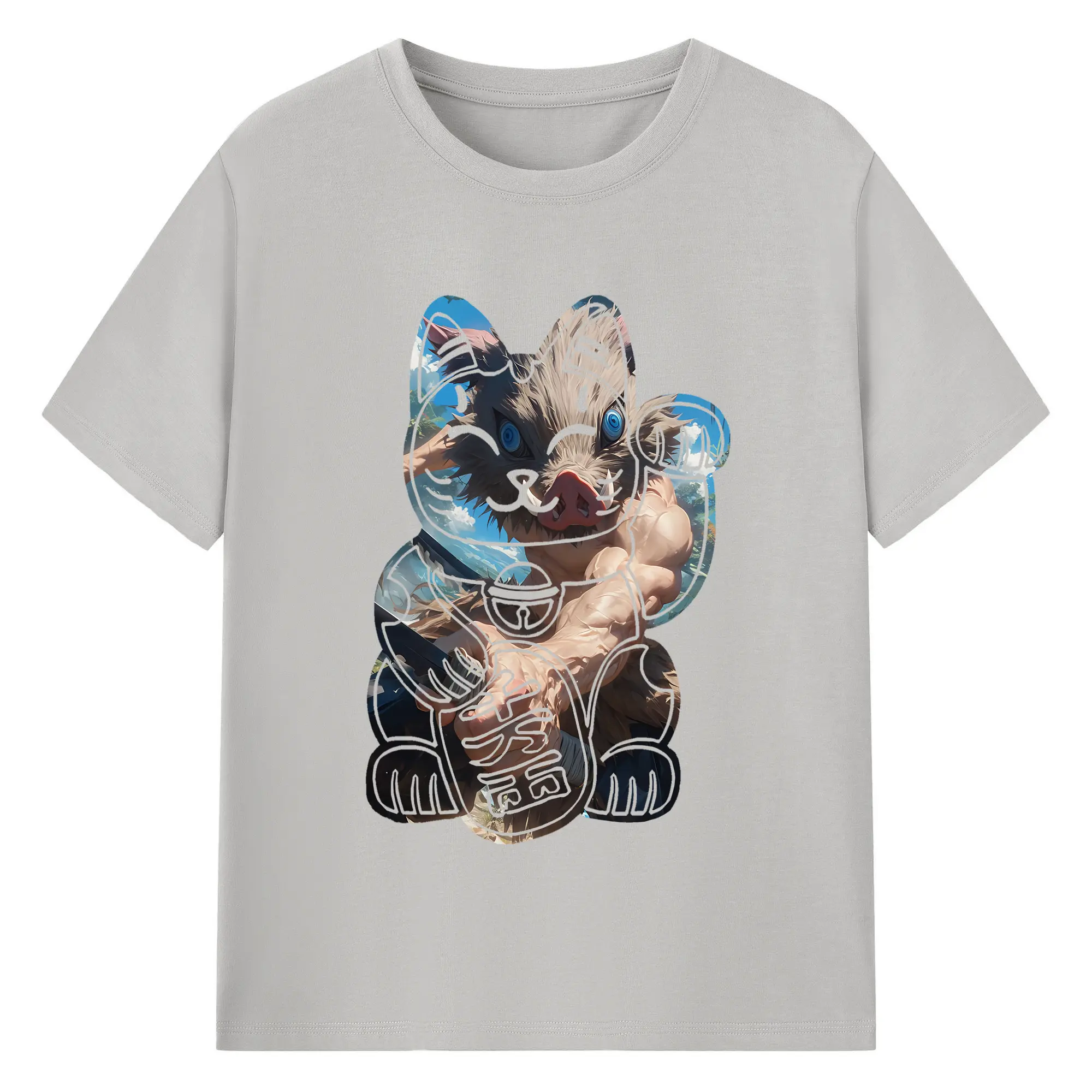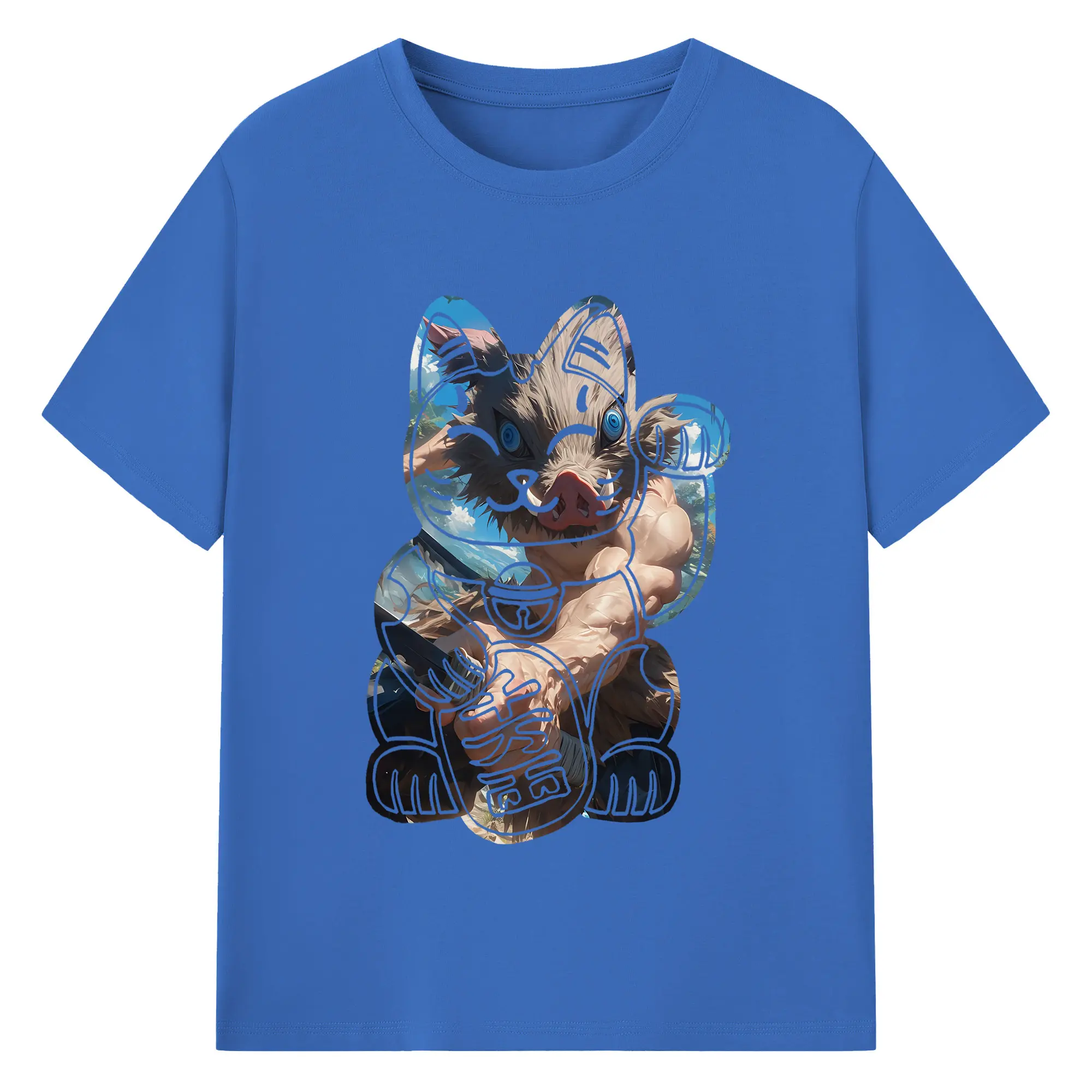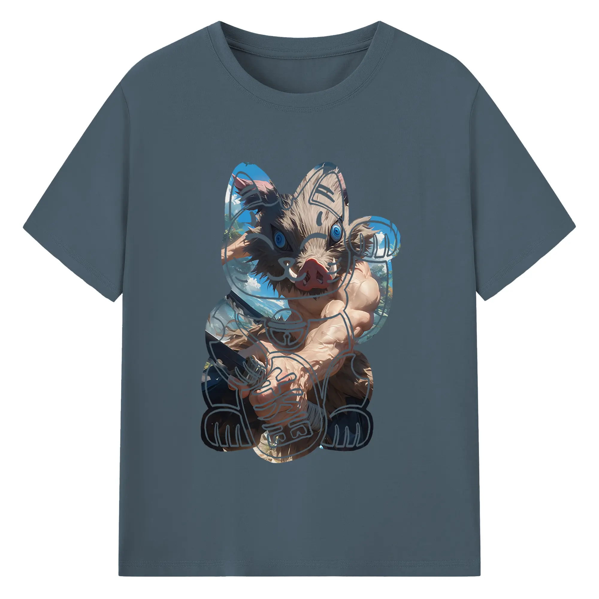 鬼滅の刃 グッズ,嘴平 伊之助 - 綿100% 半袖Tシャツ ・ バックプリント ・ 快適 通気性 ・ 日常使い 散歩 スポーツ用