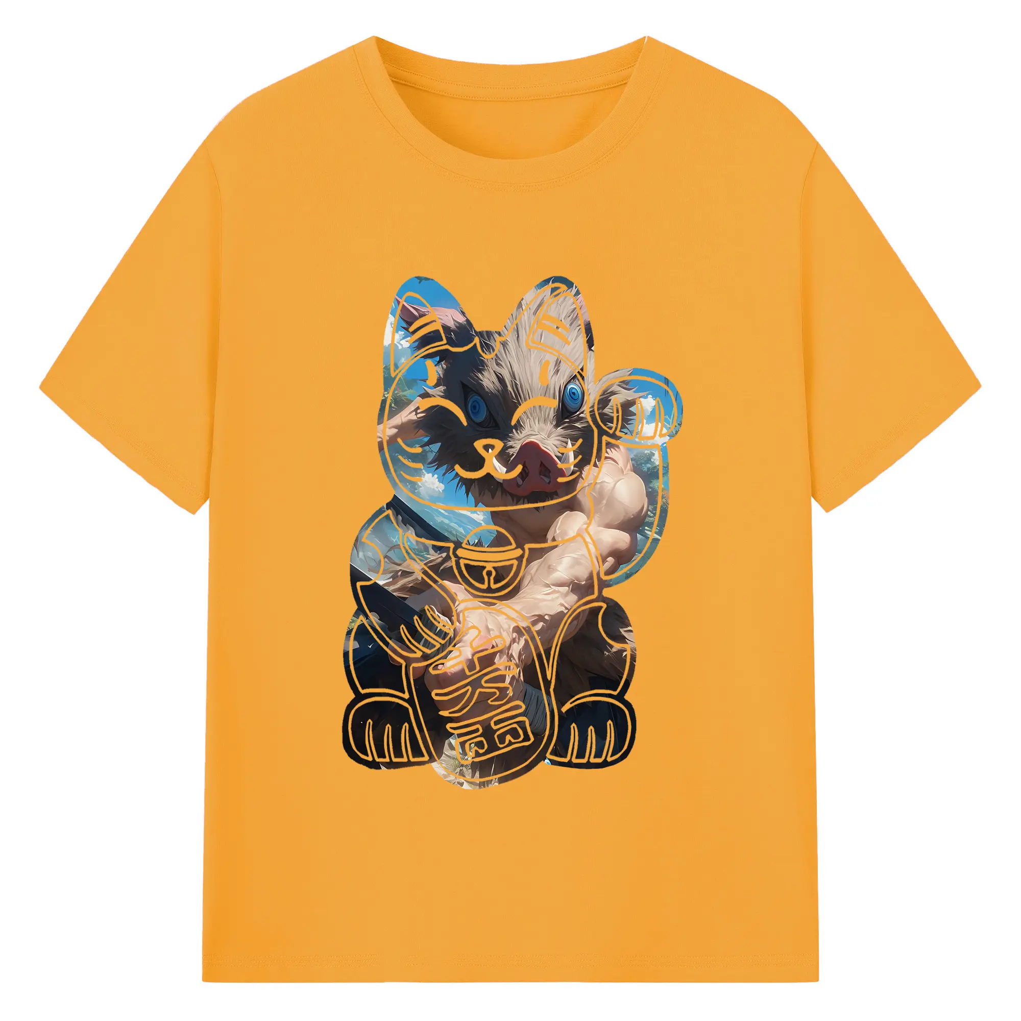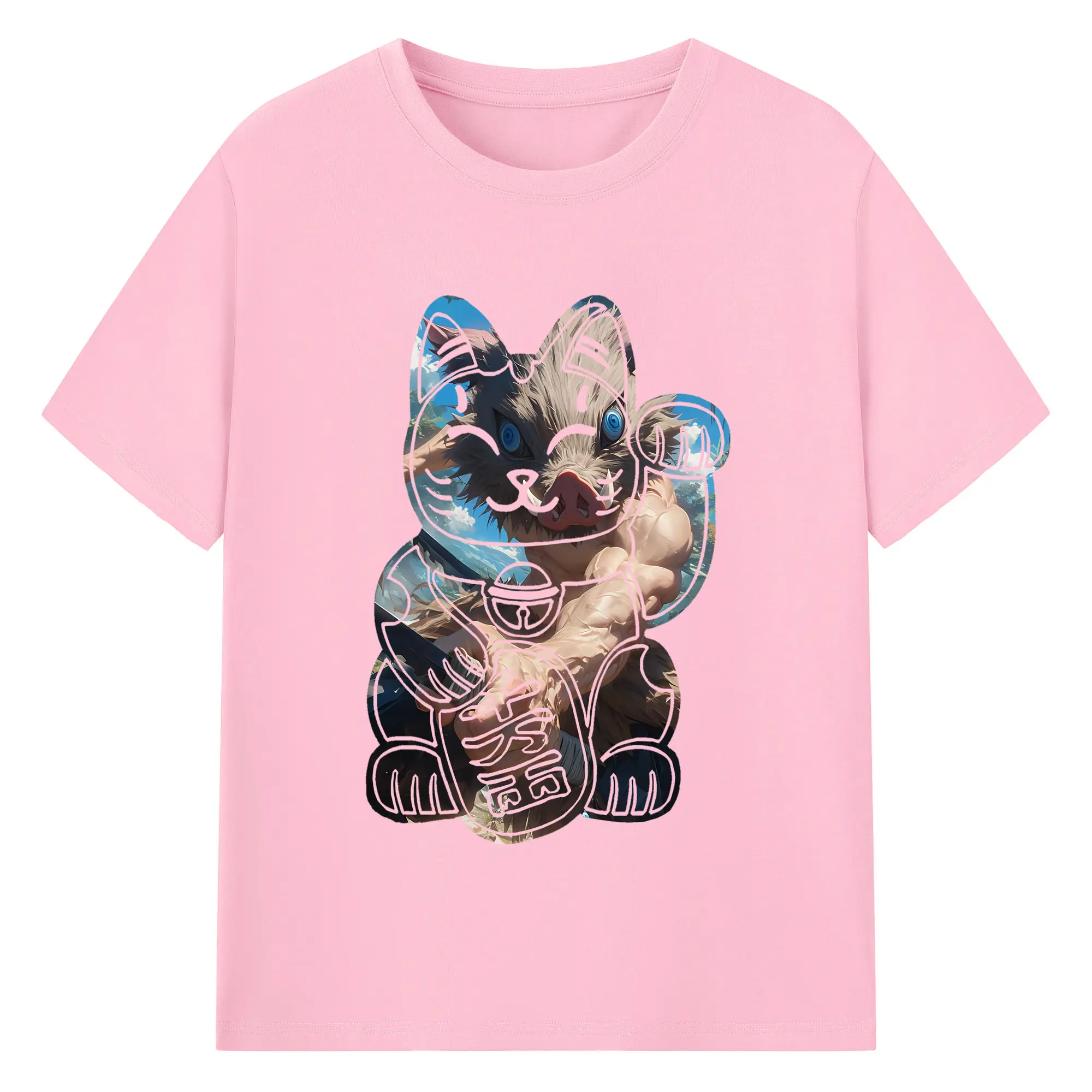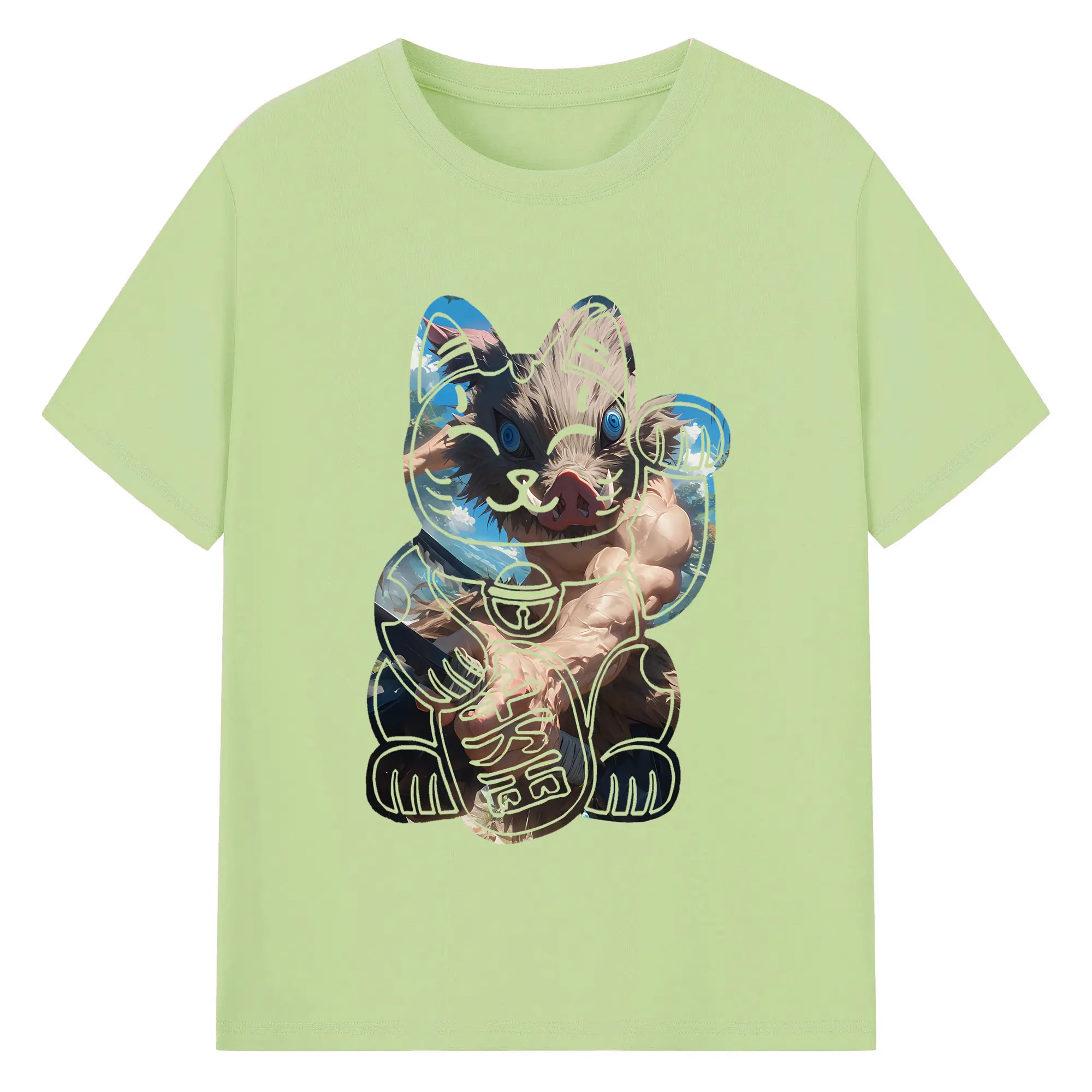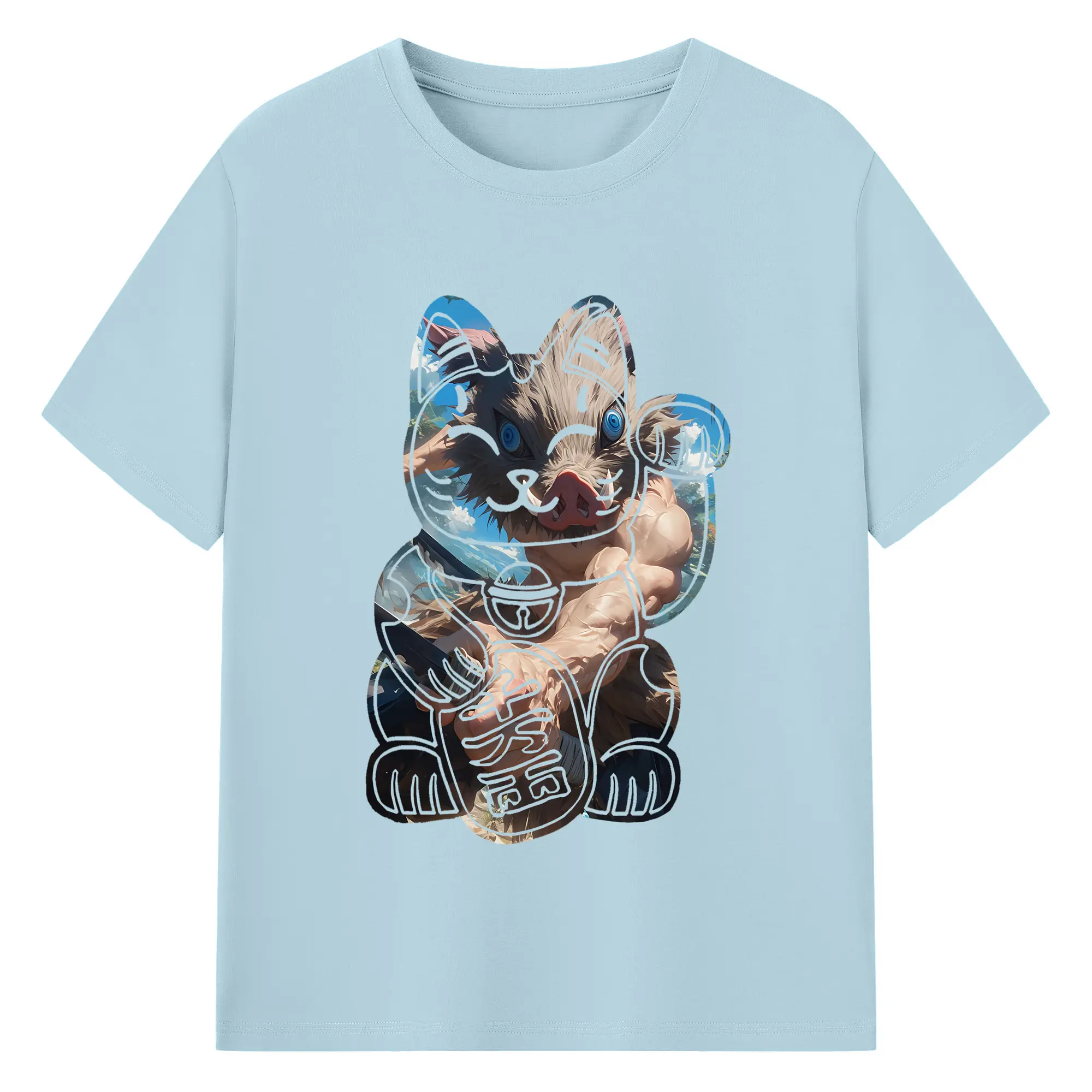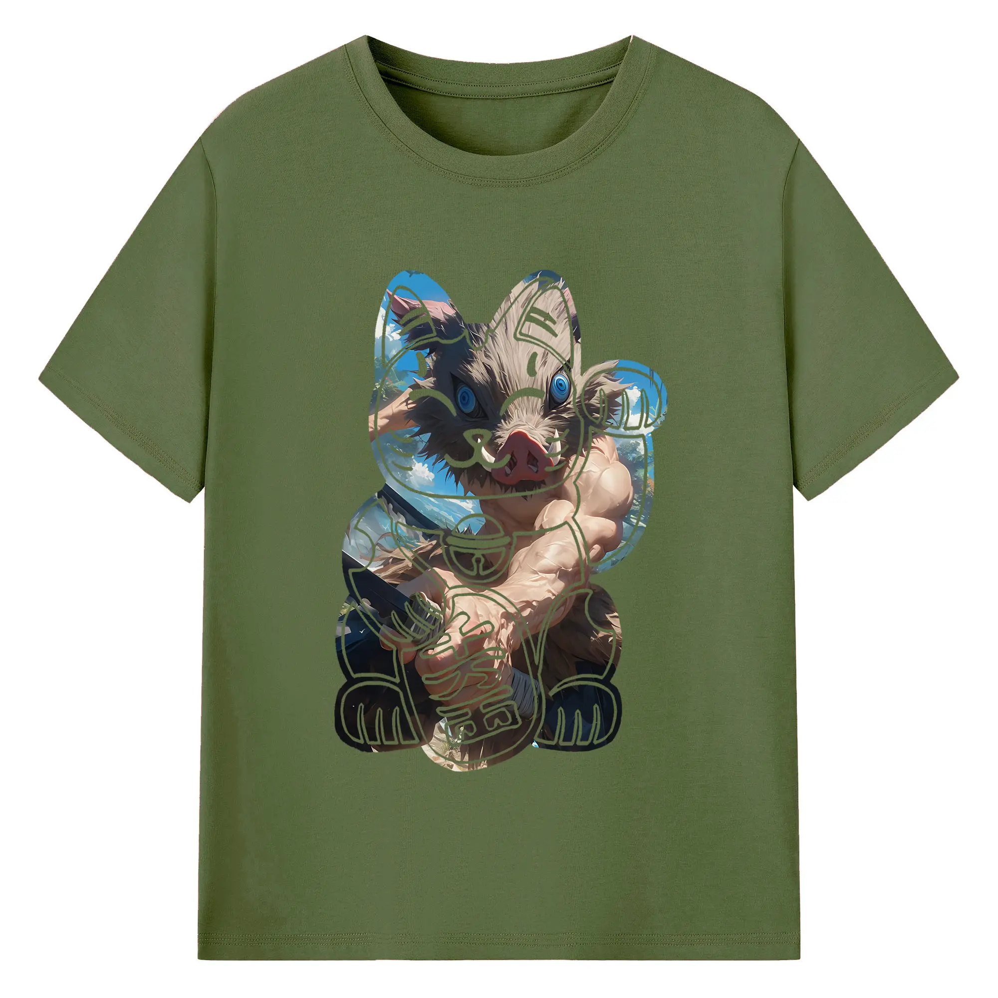 鬼滅の刃 グッズ,嘴平 伊之助 - 綿100% 半袖Tシャツ ・ バックプリント ・ 快適 通気性 ・ 日常使い 散歩 スポーツ用
