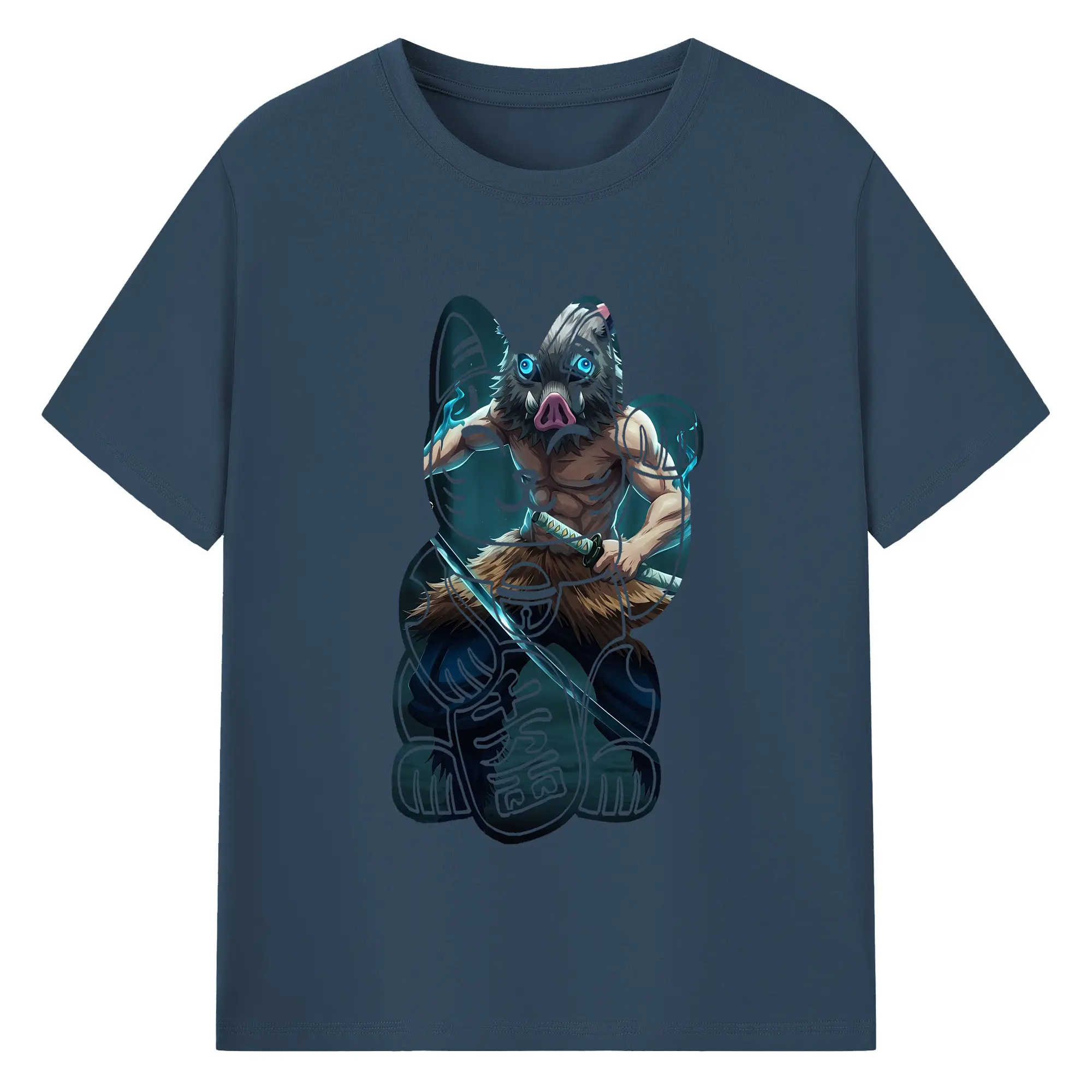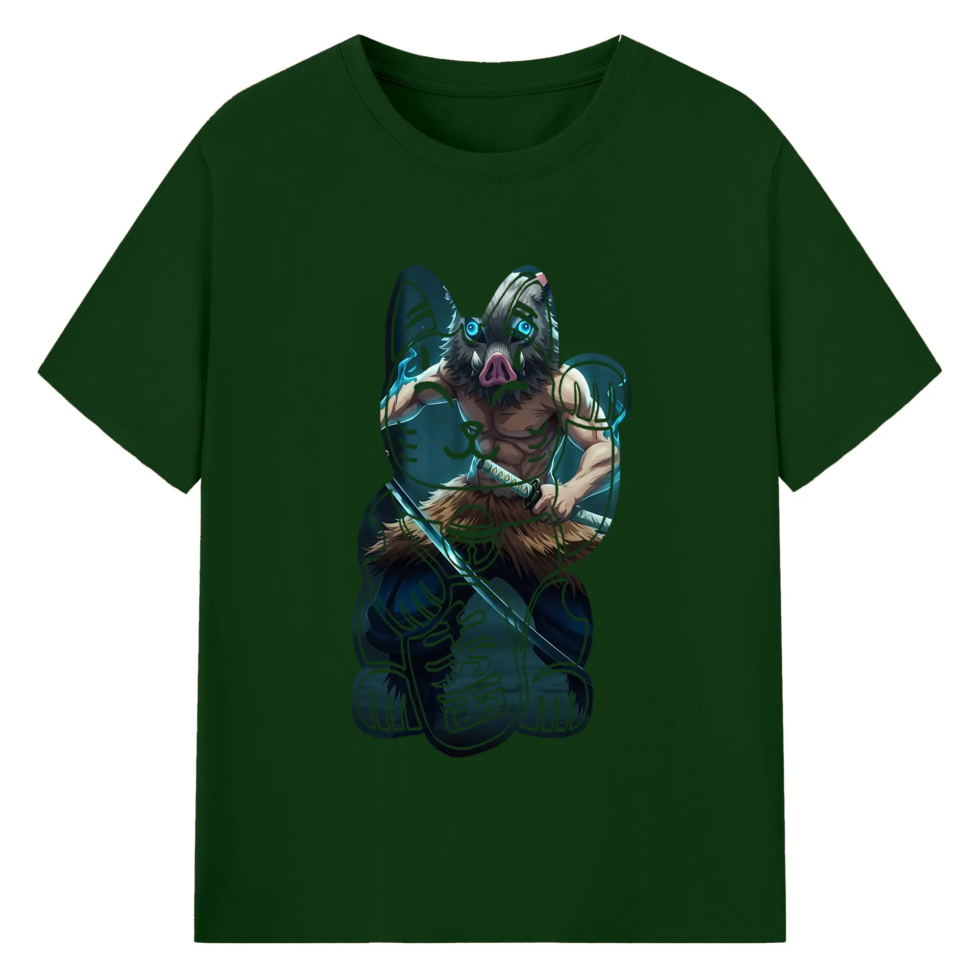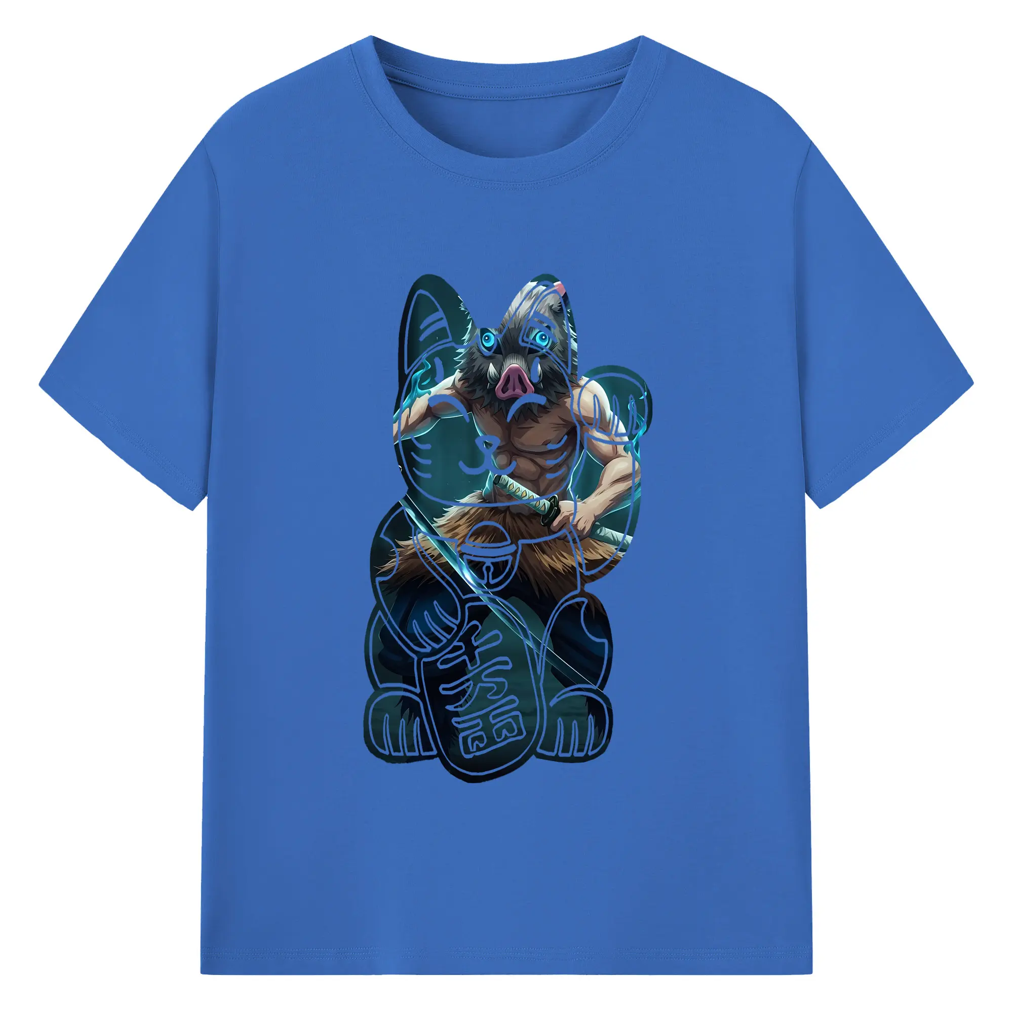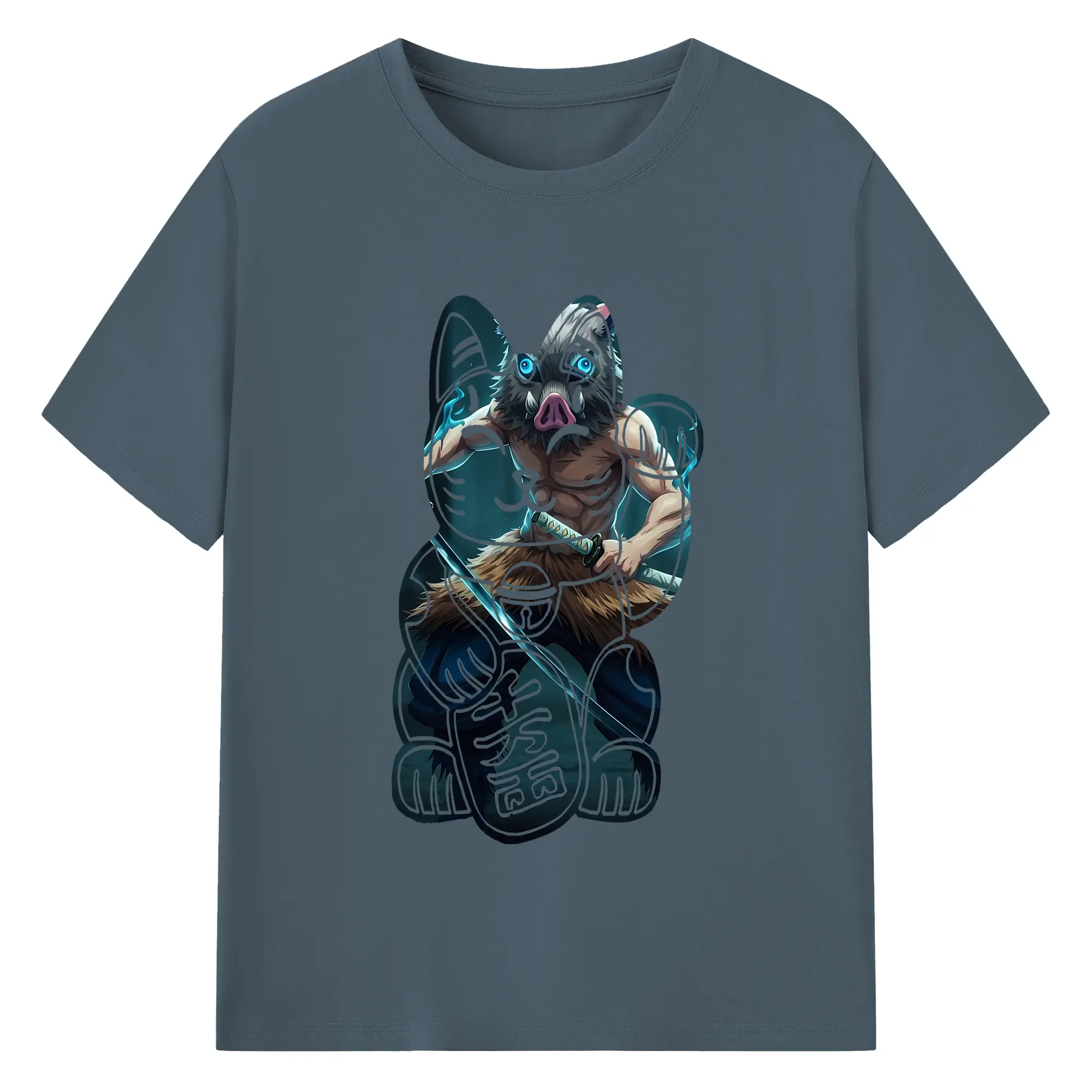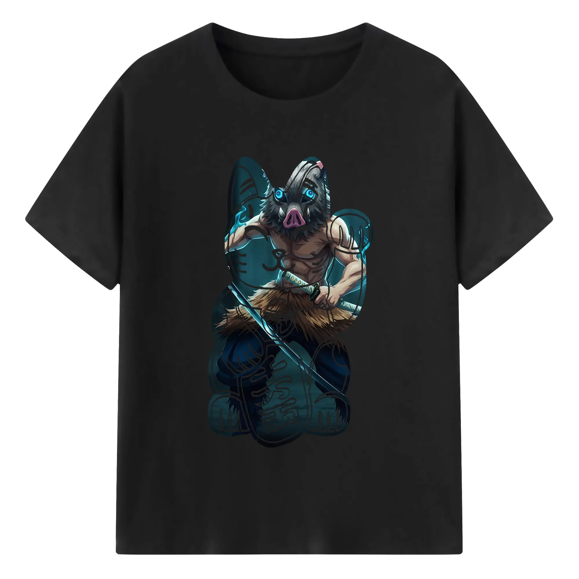 鬼滅の刃 グッズ,嘴平 伊之助 - 綿100% 半袖Tシャツ ・ バックプリント ・ 快適 通気性 ・ 日常使い 散歩 スポーツ用