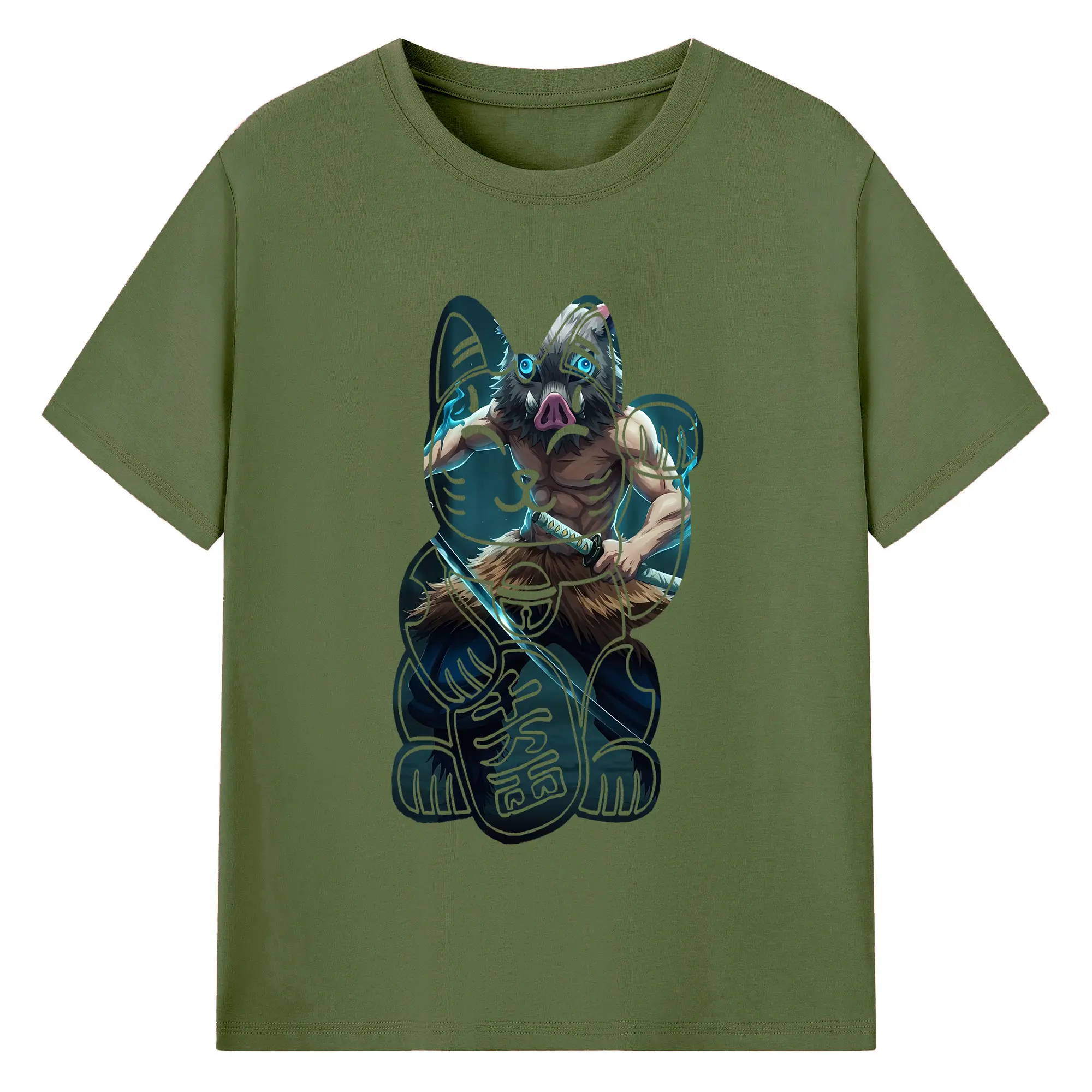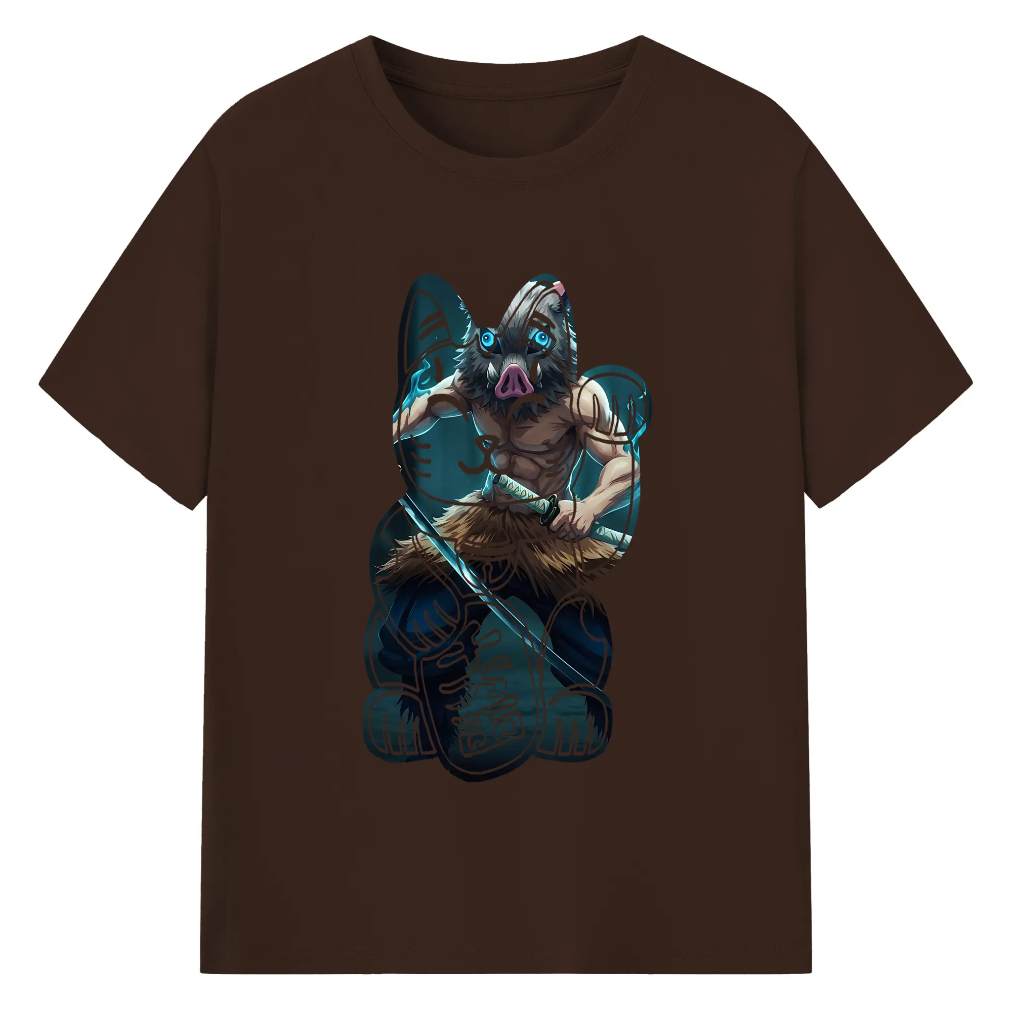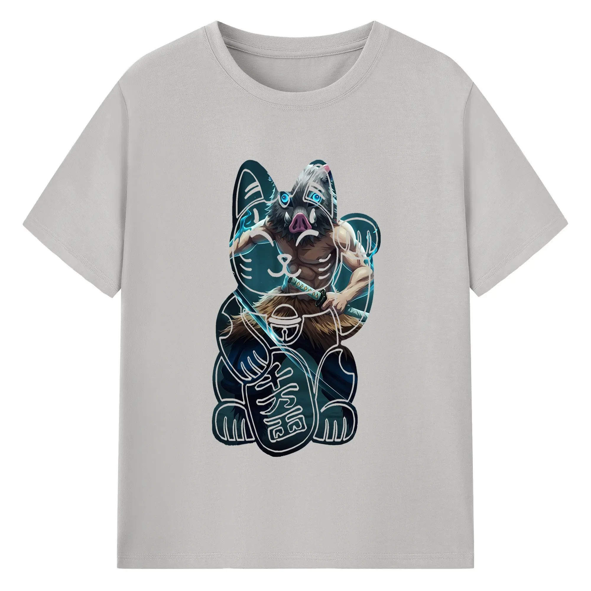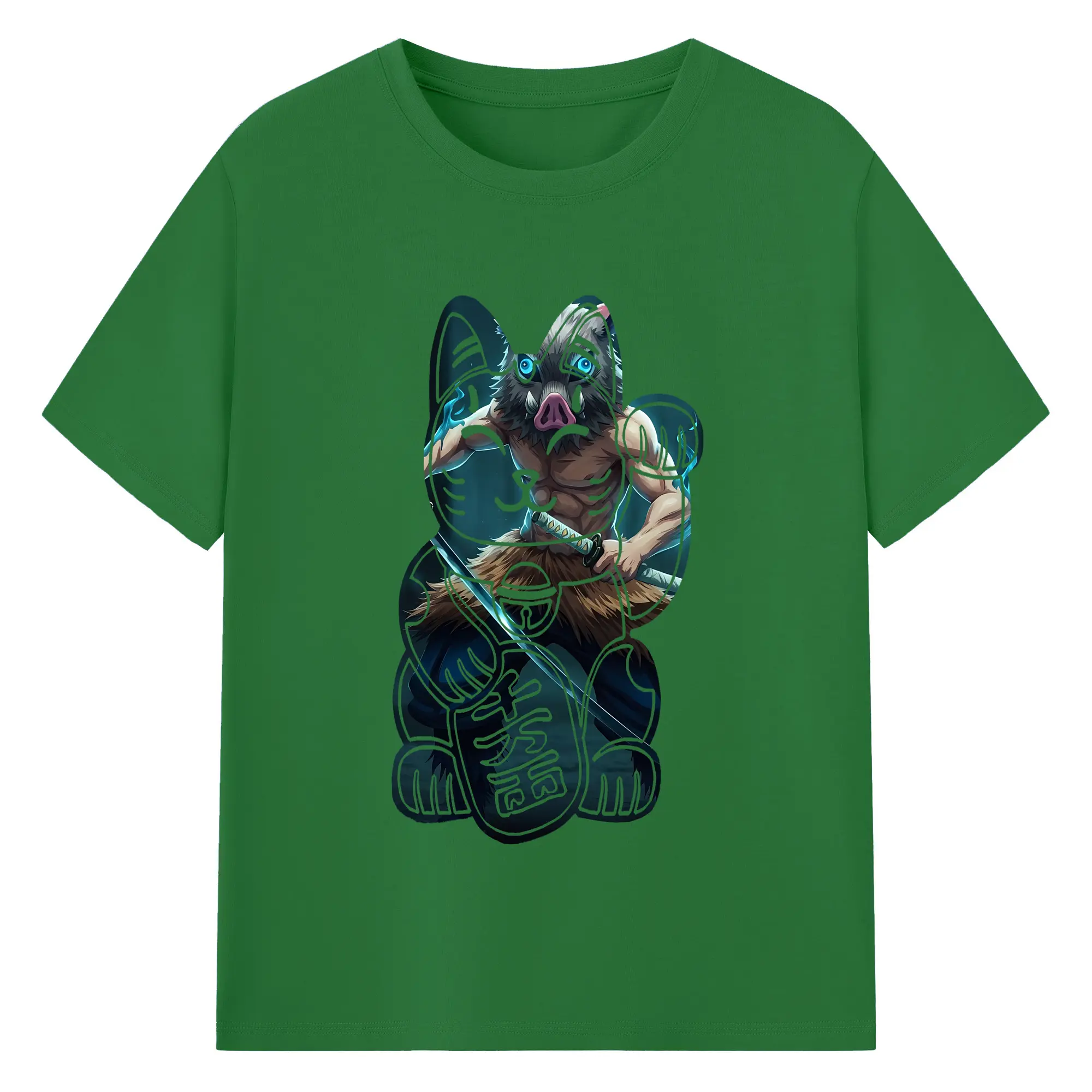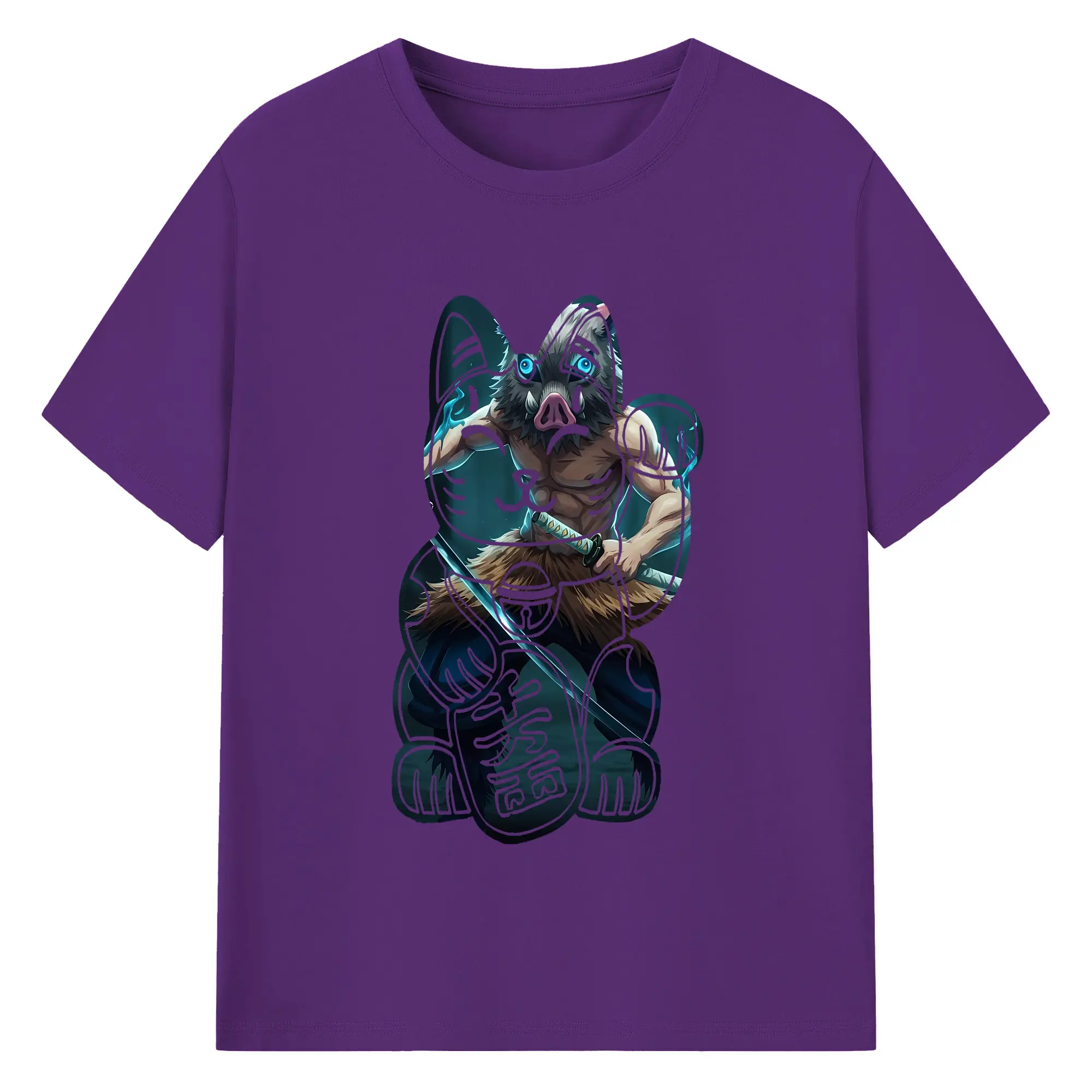 鬼滅の刃 グッズ,嘴平 伊之助 - 綿100% 半袖Tシャツ ・ バックプリント ・ 快適 通気性 ・ 日常使い 散歩 スポーツ用