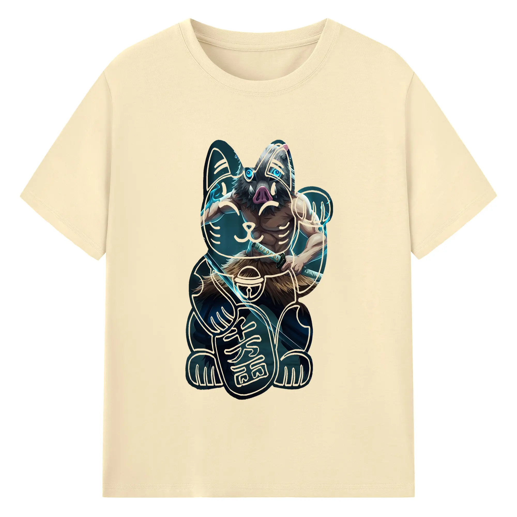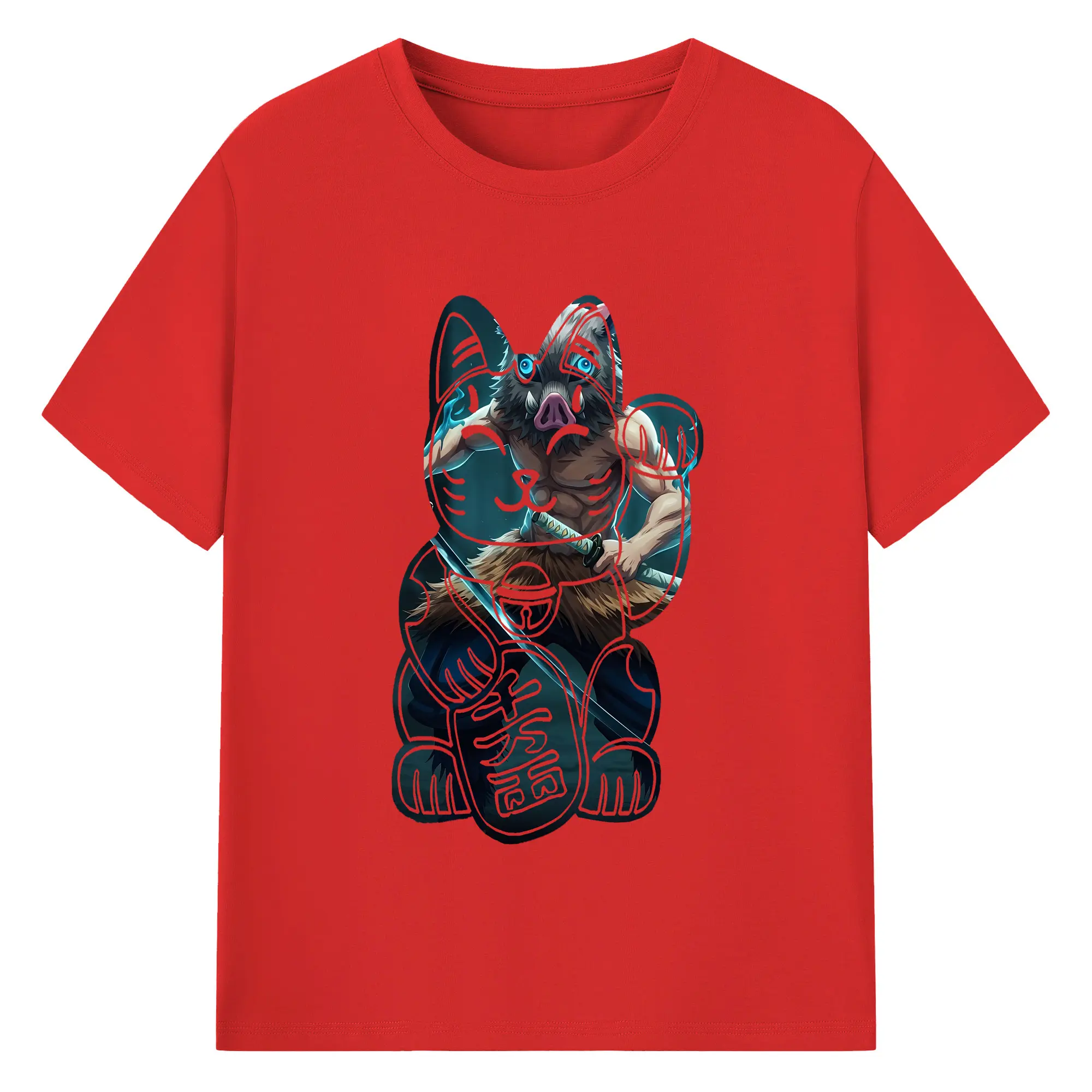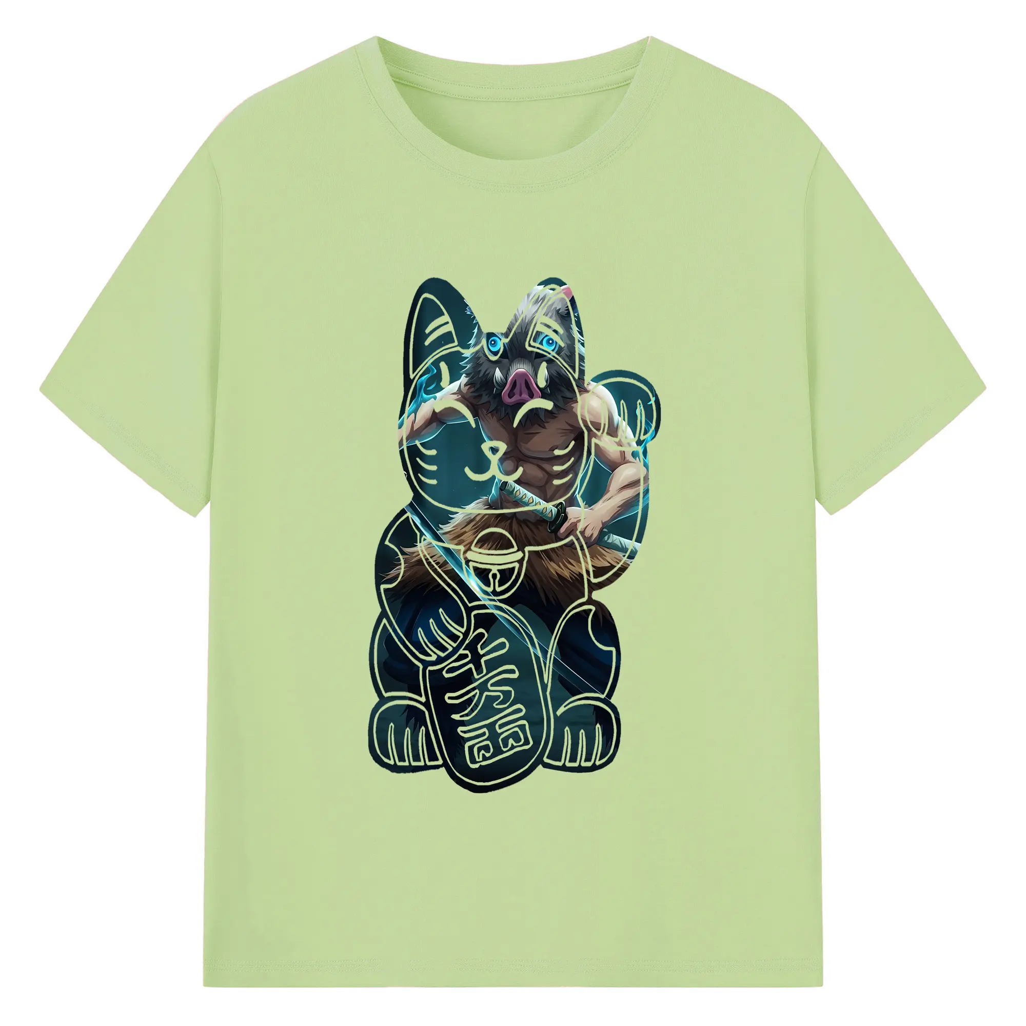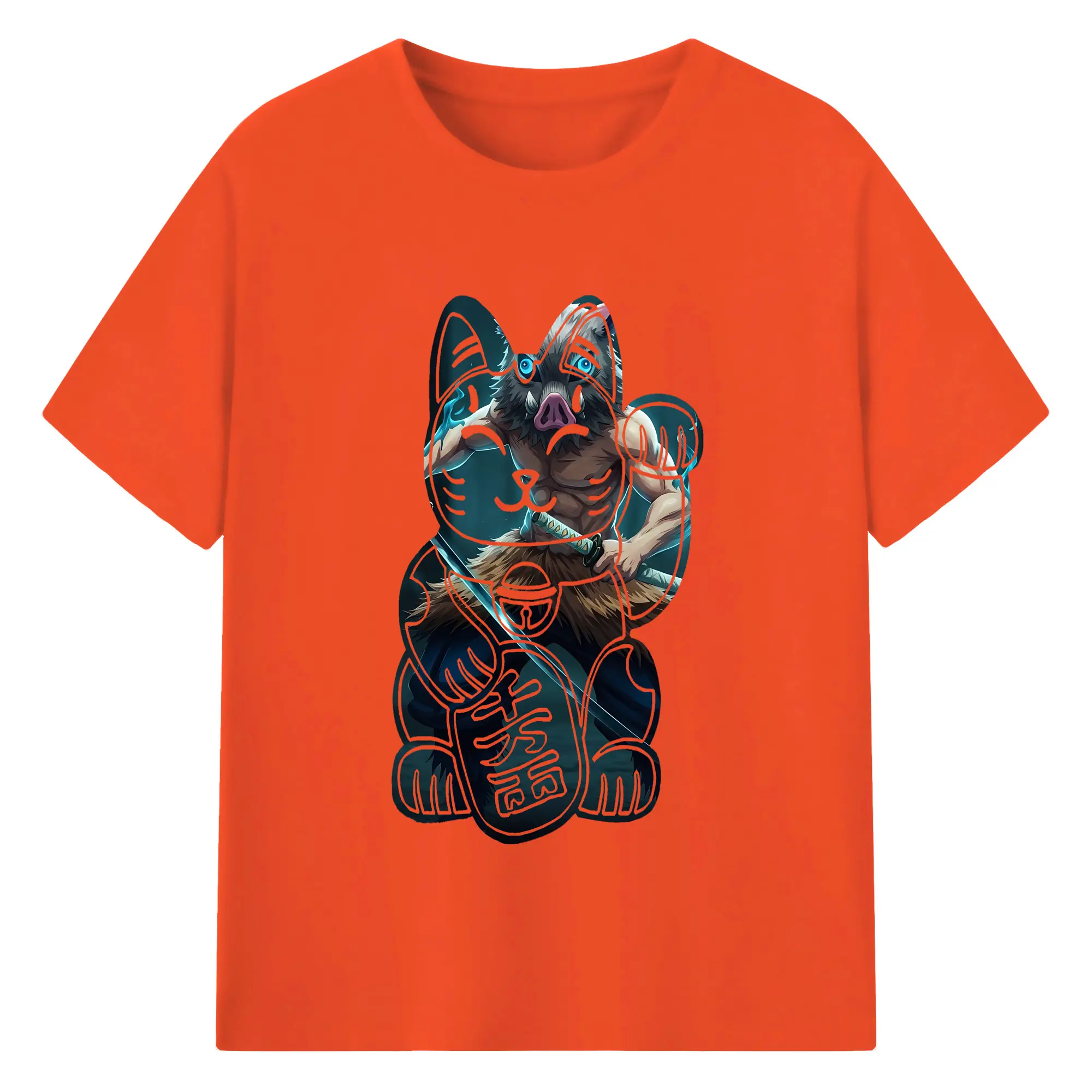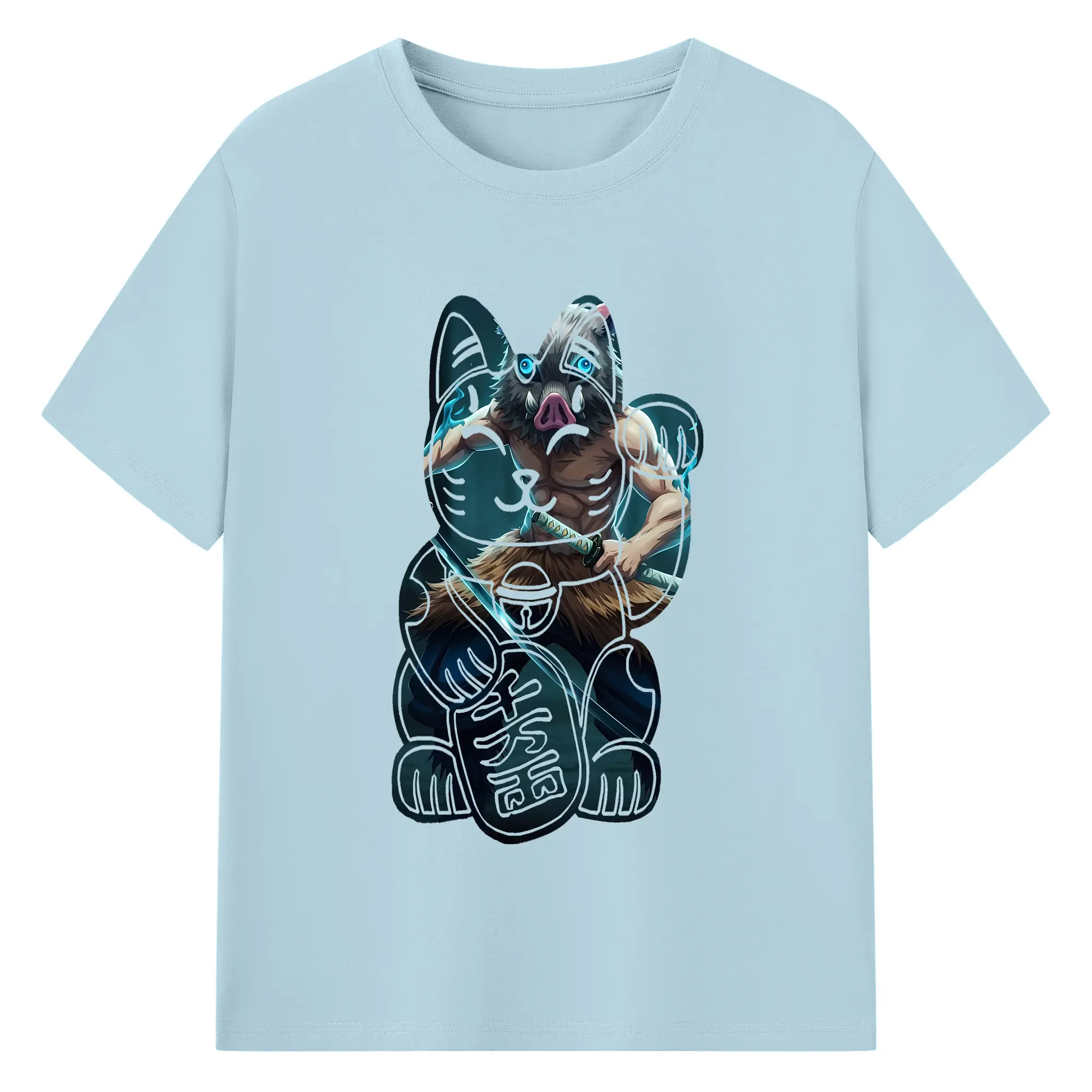 鬼滅の刃 グッズ,嘴平 伊之助 - 綿100% 半袖Tシャツ ・ バックプリント ・ 快適 通気性 ・ 日常使い 散歩 スポーツ用