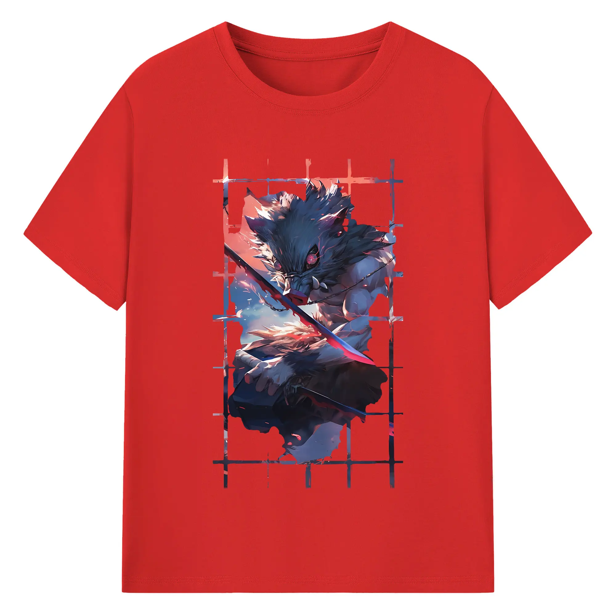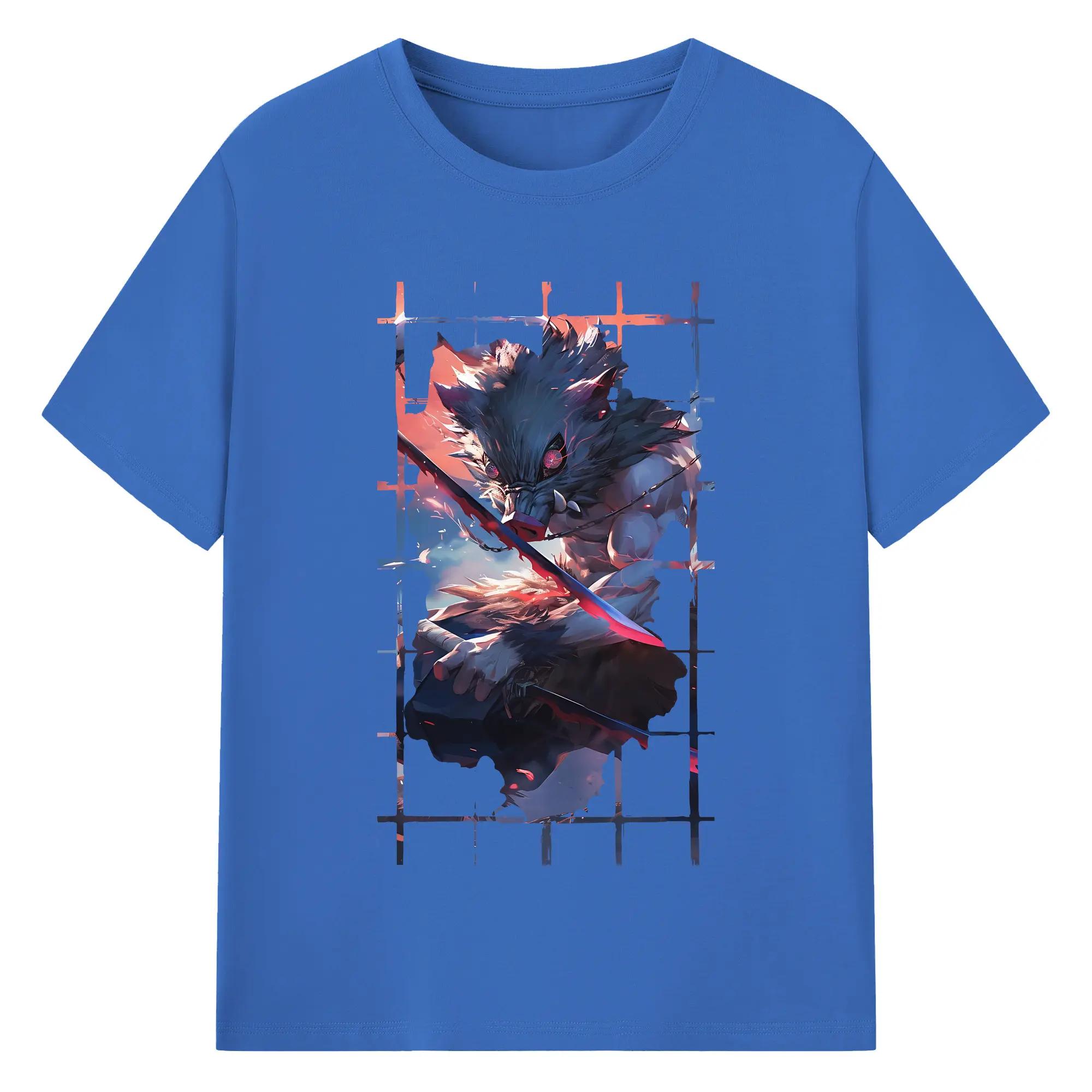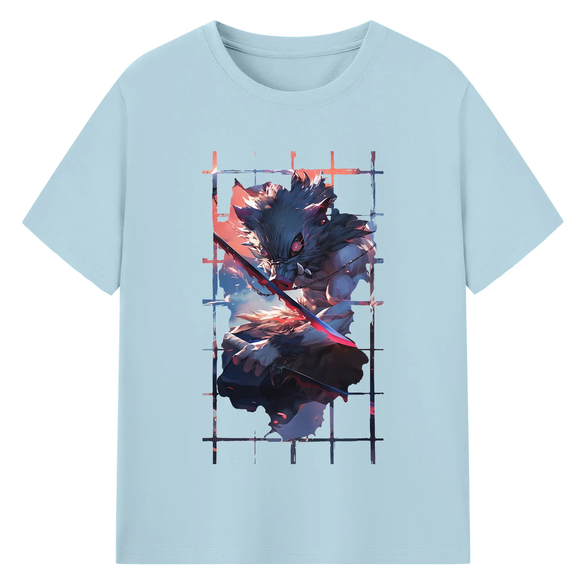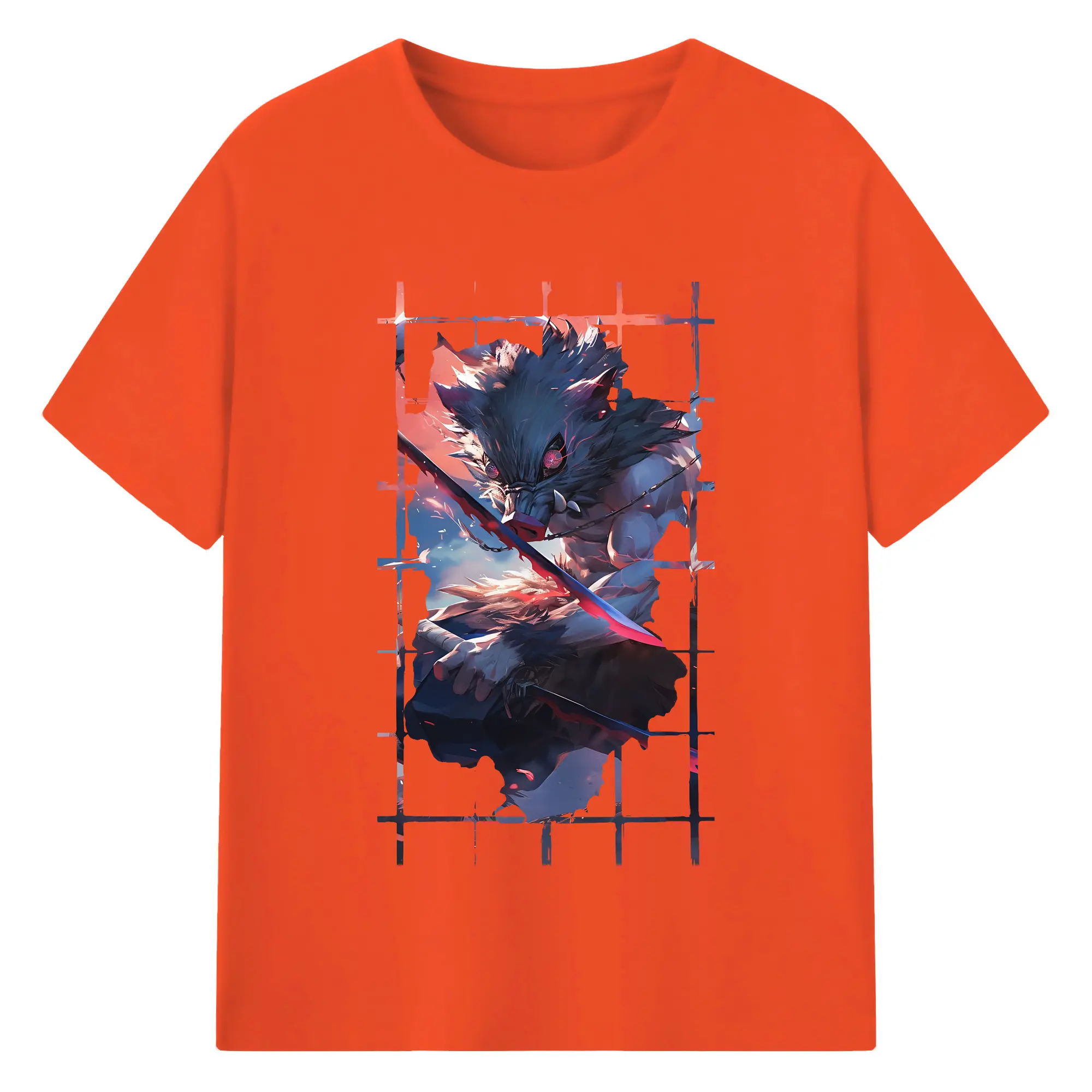 鬼滅の刃 グッズ,嘴平 伊之助 - 綿100% 半袖Tシャツ ・ バックプリント ・ 快適 通気性 ・ 日常使い 散歩 スポーツ用