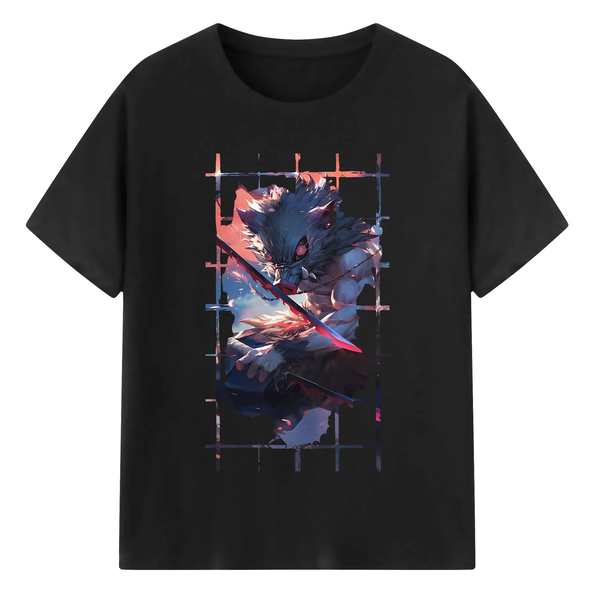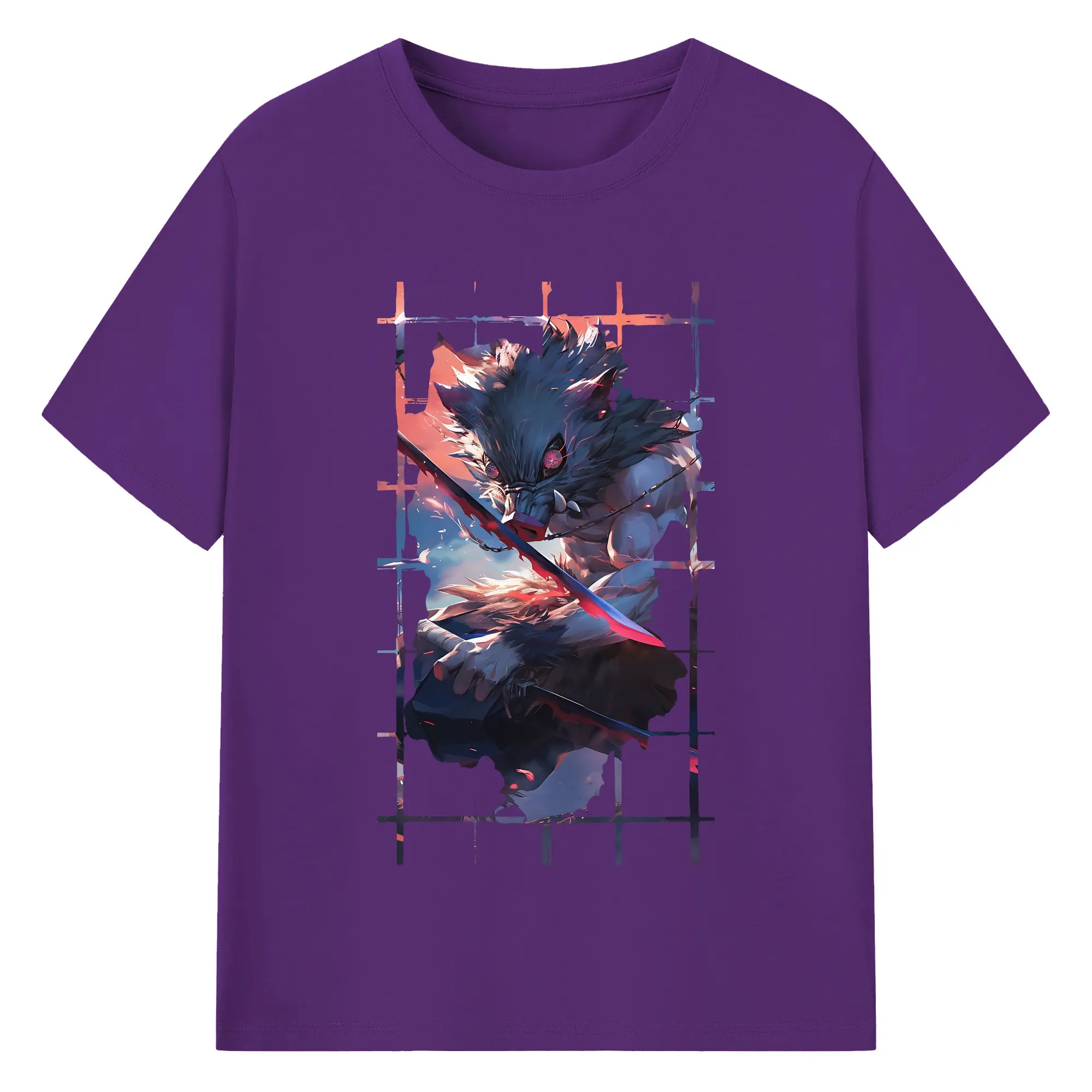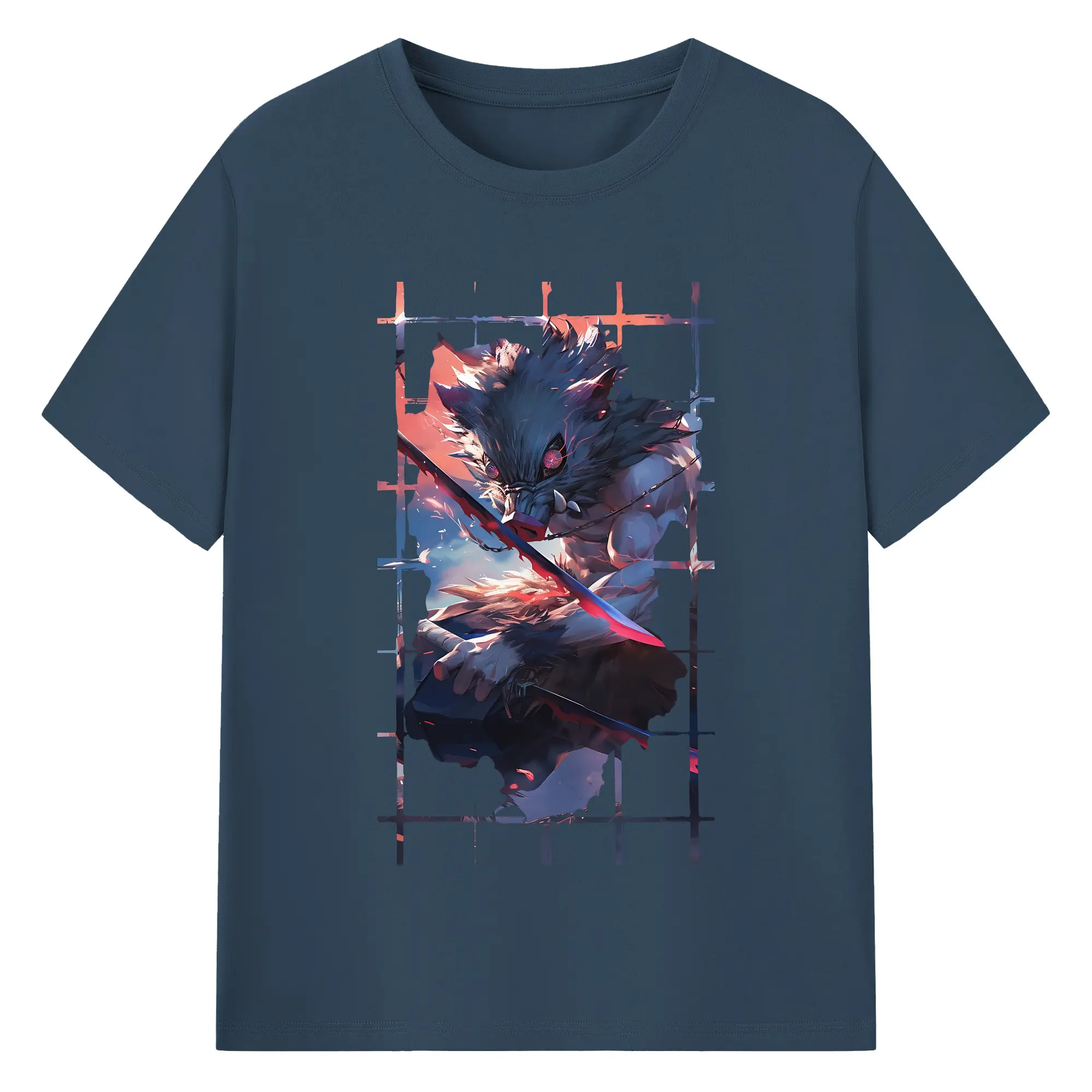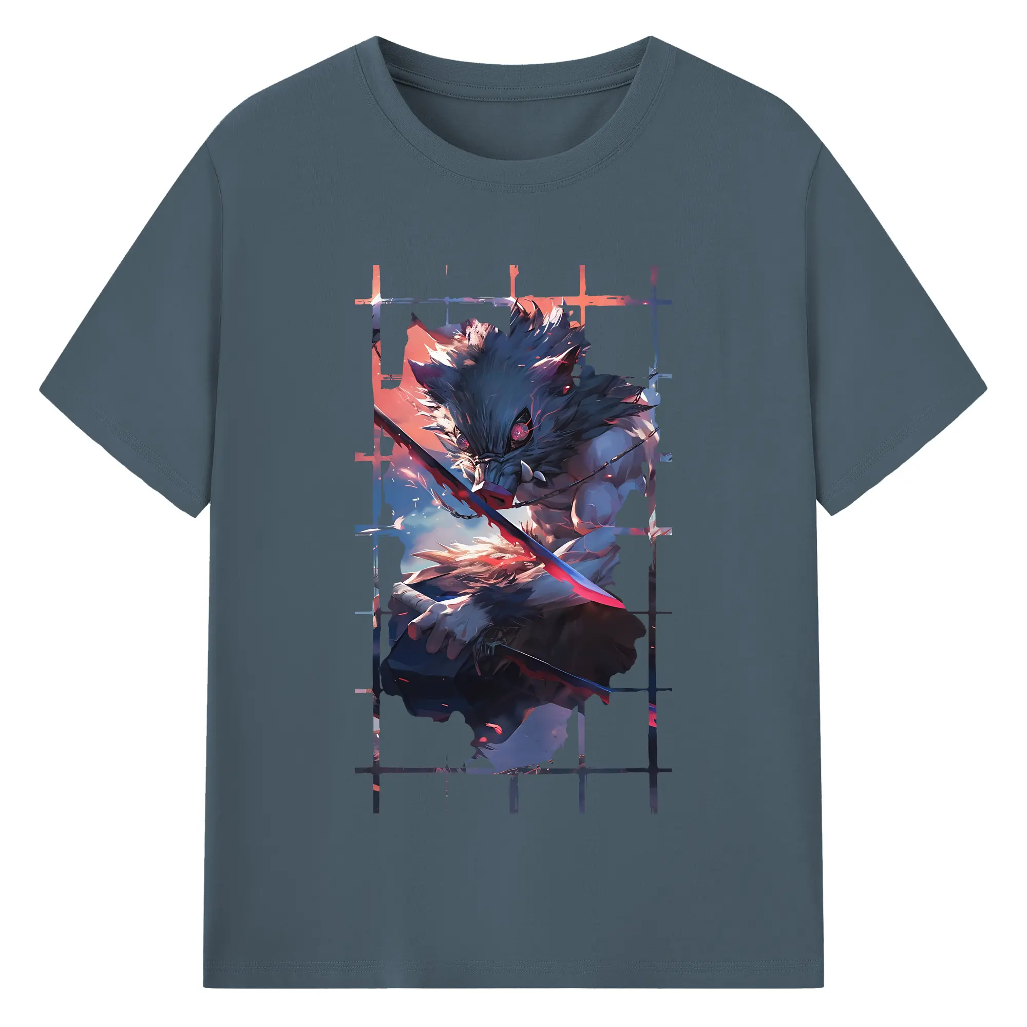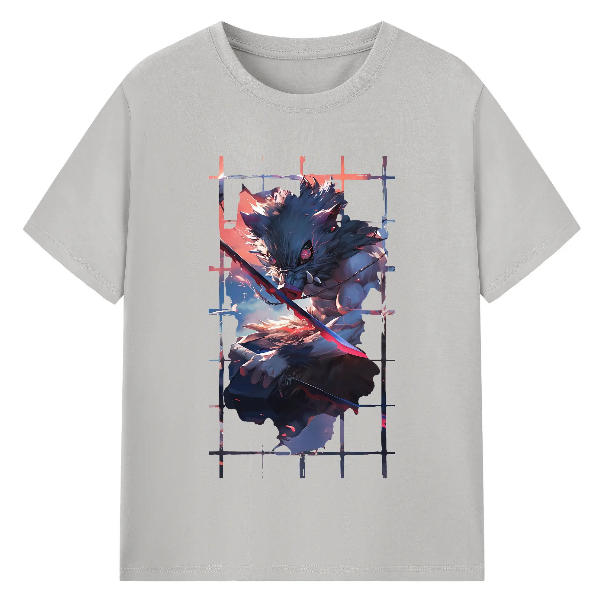 鬼滅の刃 グッズ,嘴平 伊之助 - 綿100% 半袖Tシャツ ・ バックプリント ・ 快適 通気性 ・ 日常使い 散歩 スポーツ用