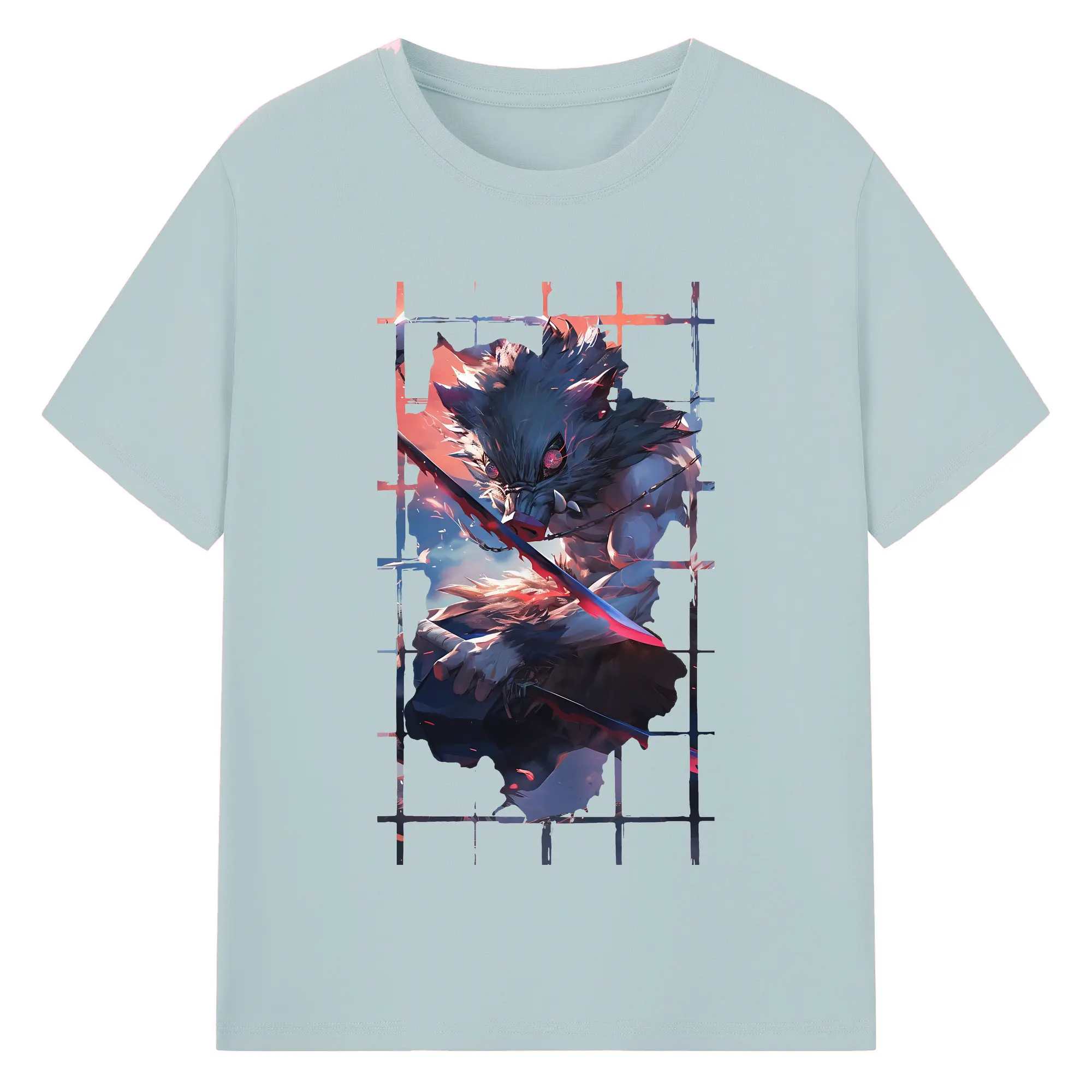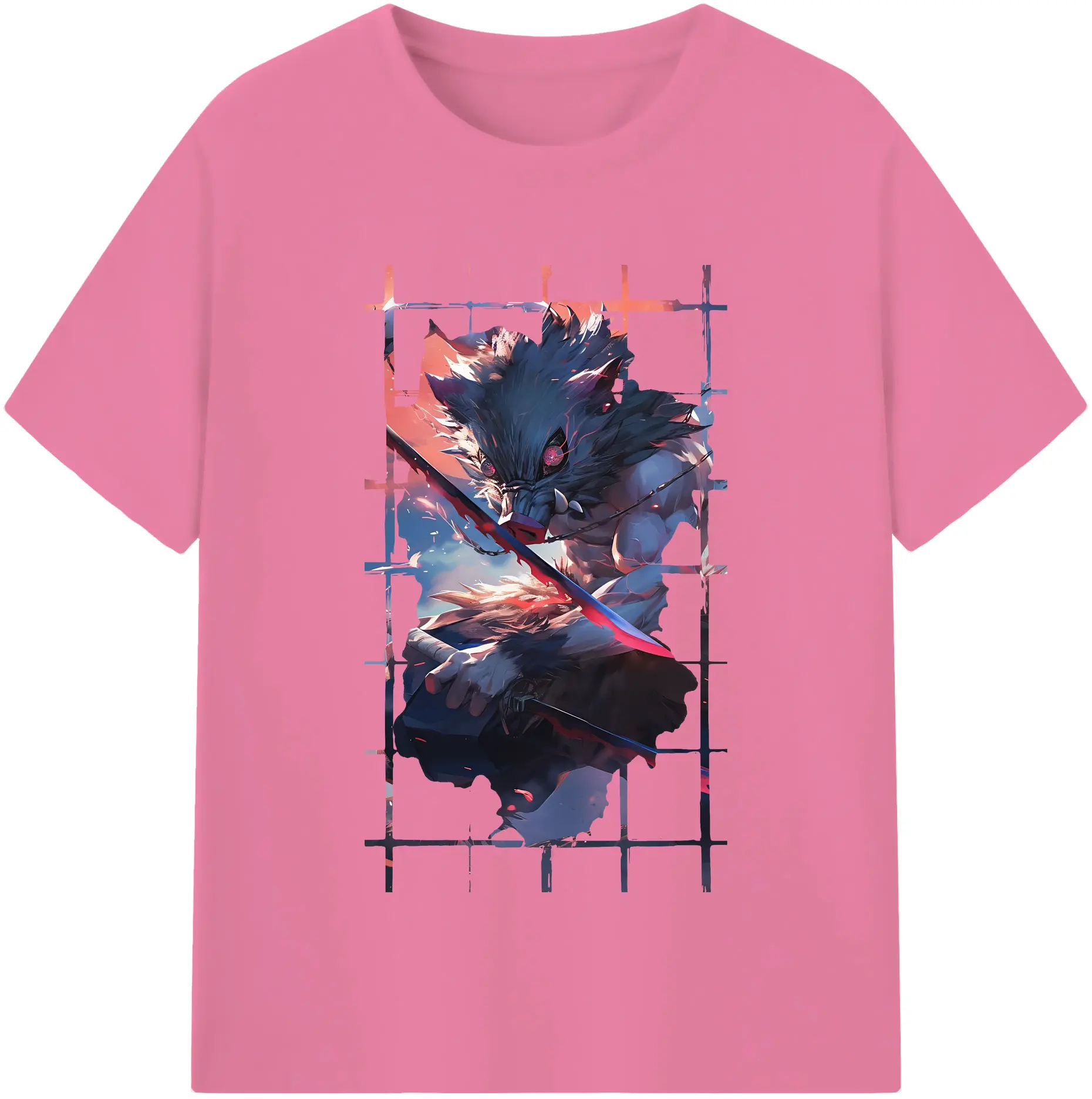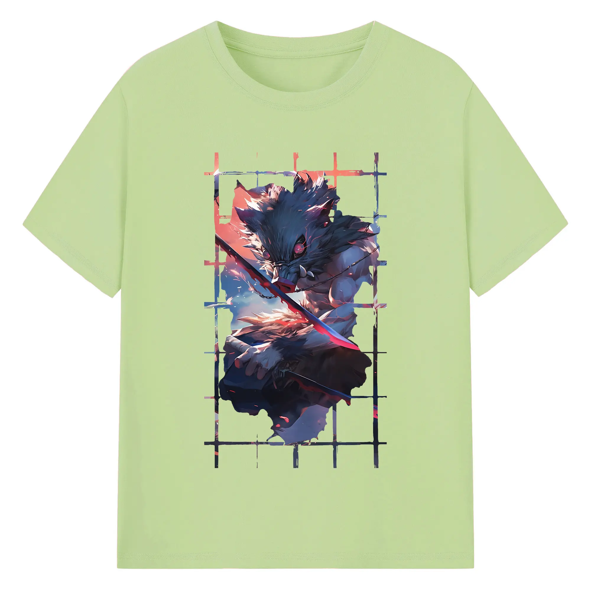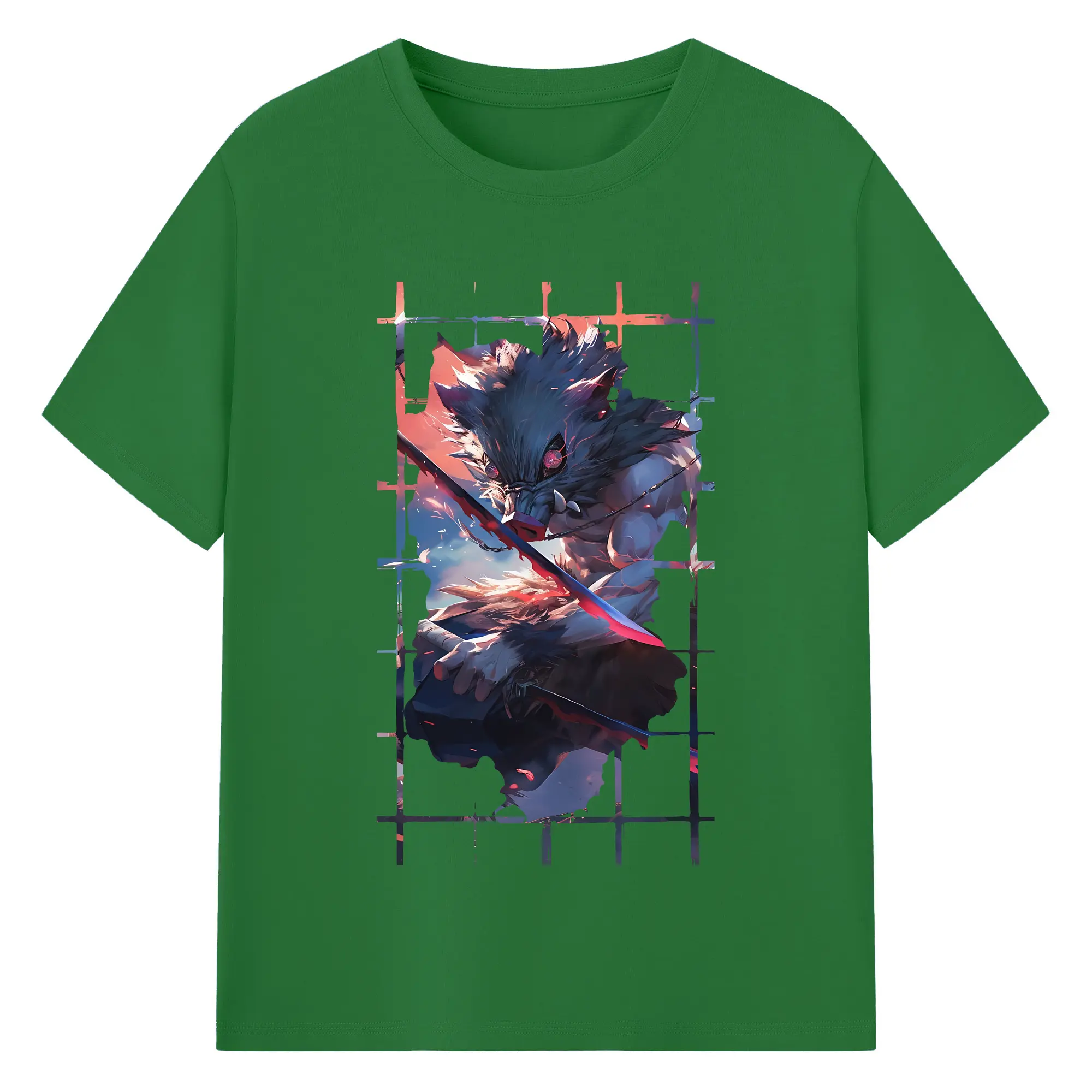 鬼滅の刃 グッズ,嘴平 伊之助 - 綿100% 半袖Tシャツ ・ バックプリント ・ 快適 通気性 ・ 日常使い 散歩 スポーツ用