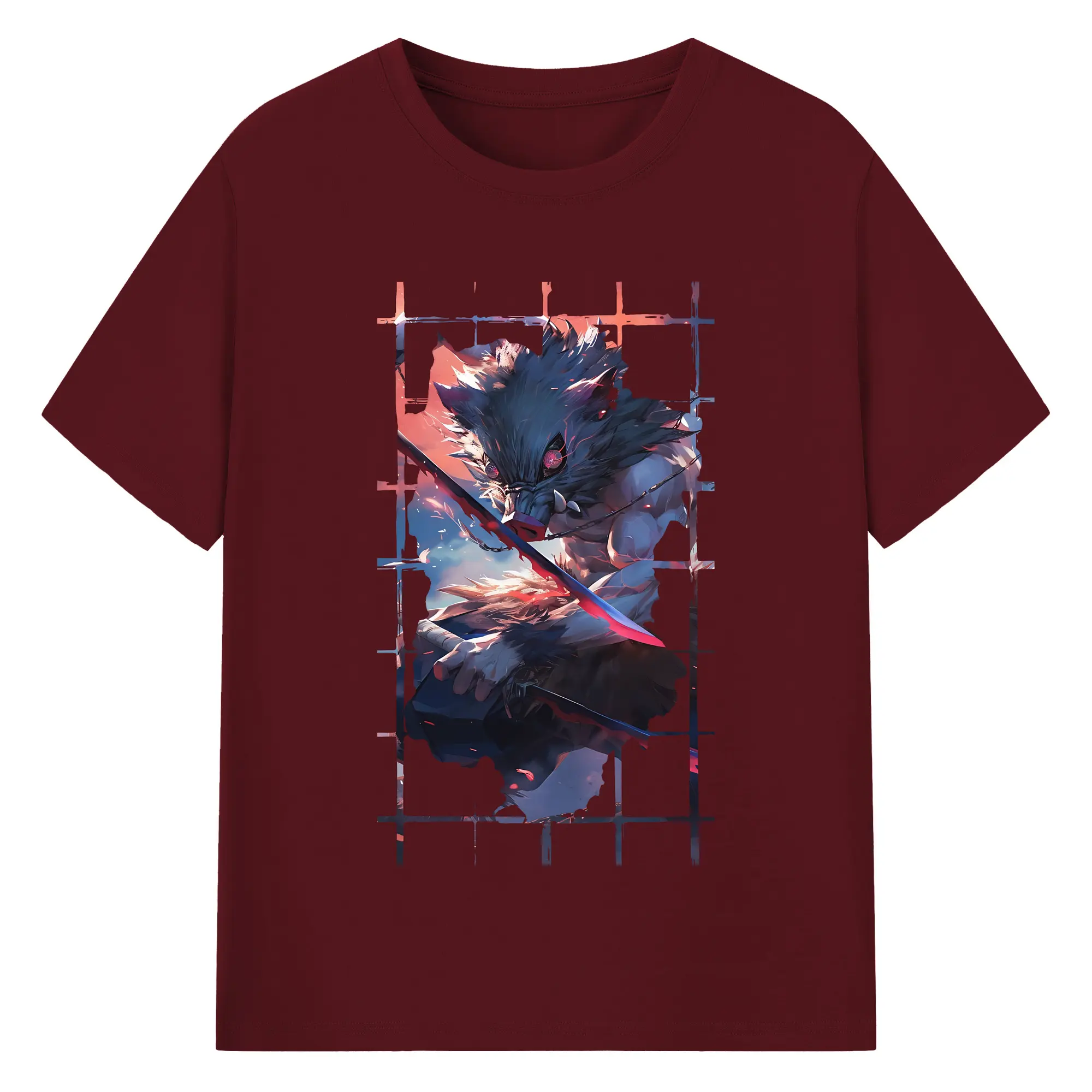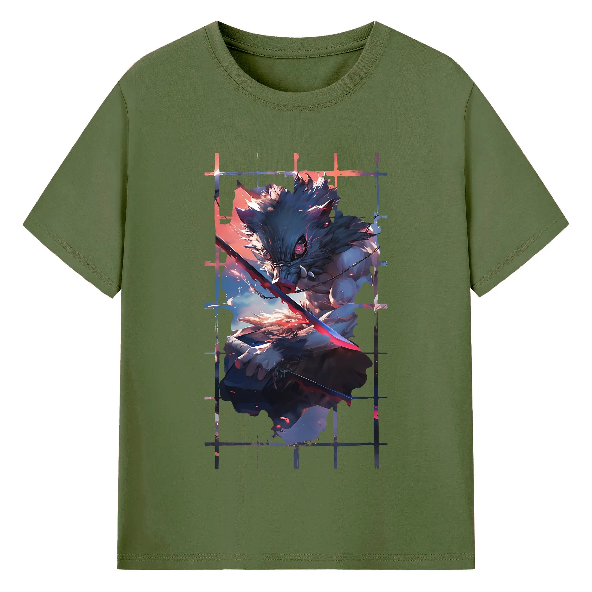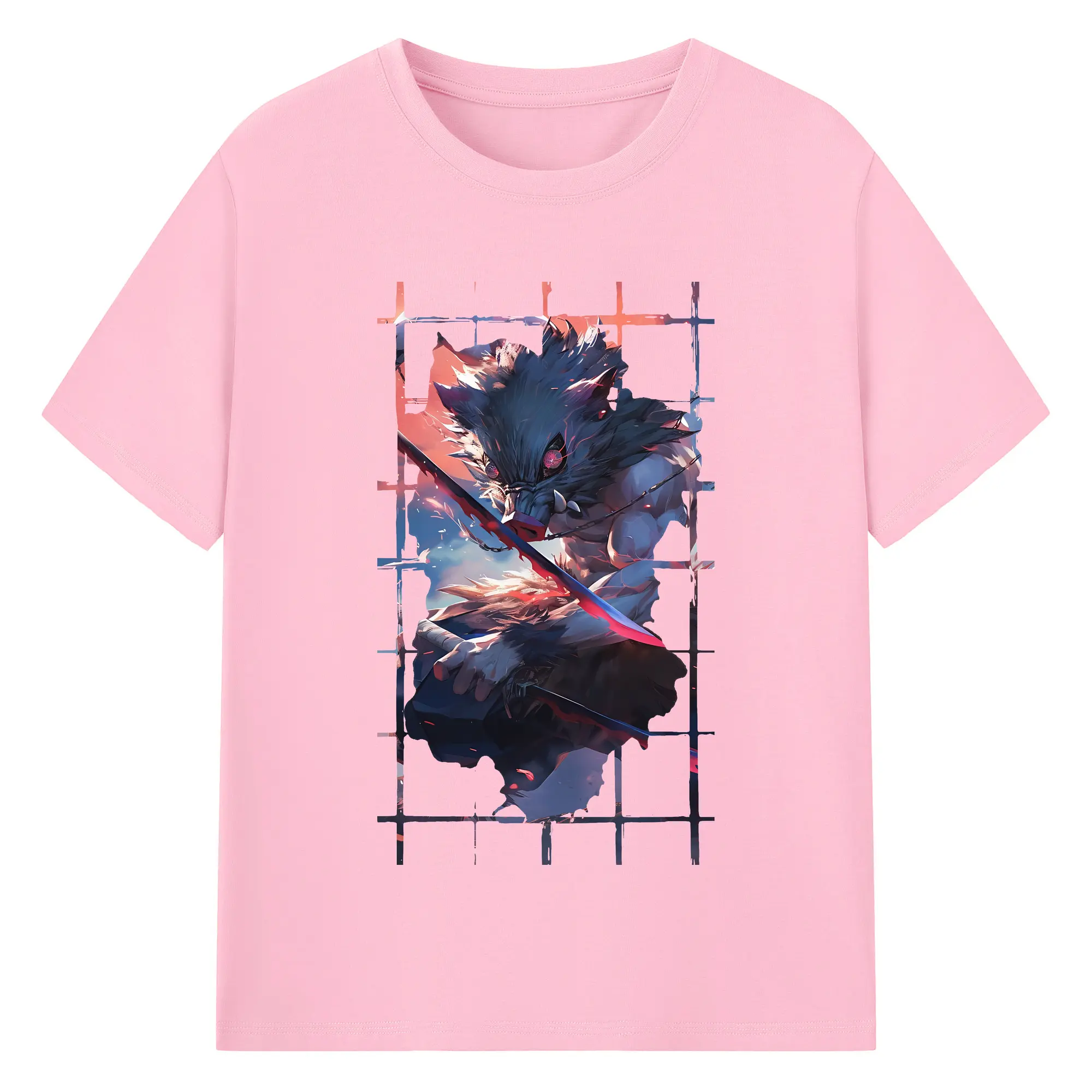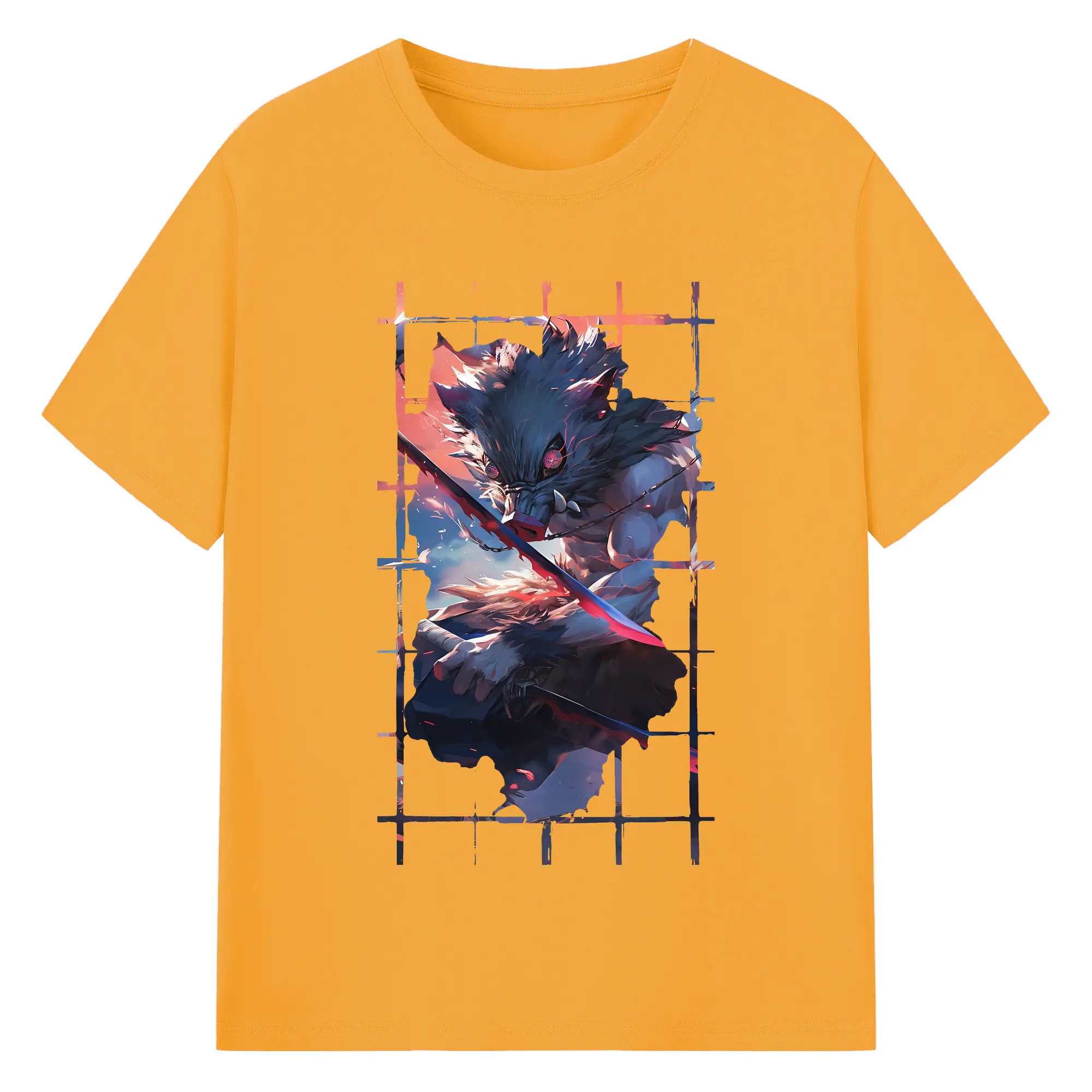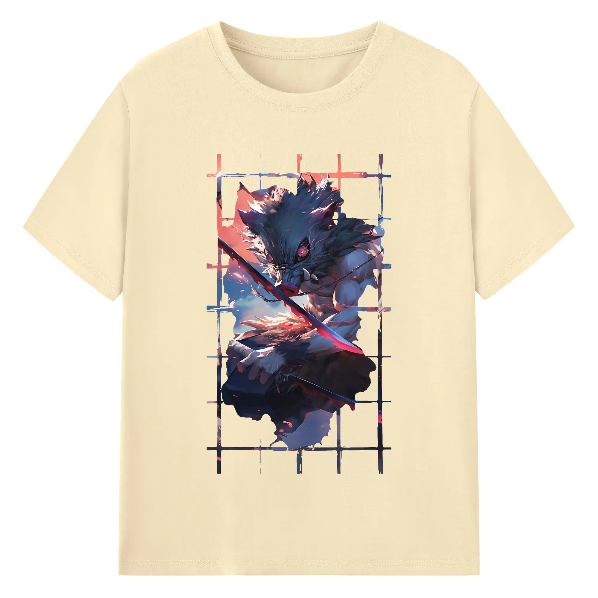 鬼滅の刃 グッズ,嘴平 伊之助 - 綿100% 半袖Tシャツ ・ バックプリント ・ 快適 通気性 ・ 日常使い 散歩 スポーツ用