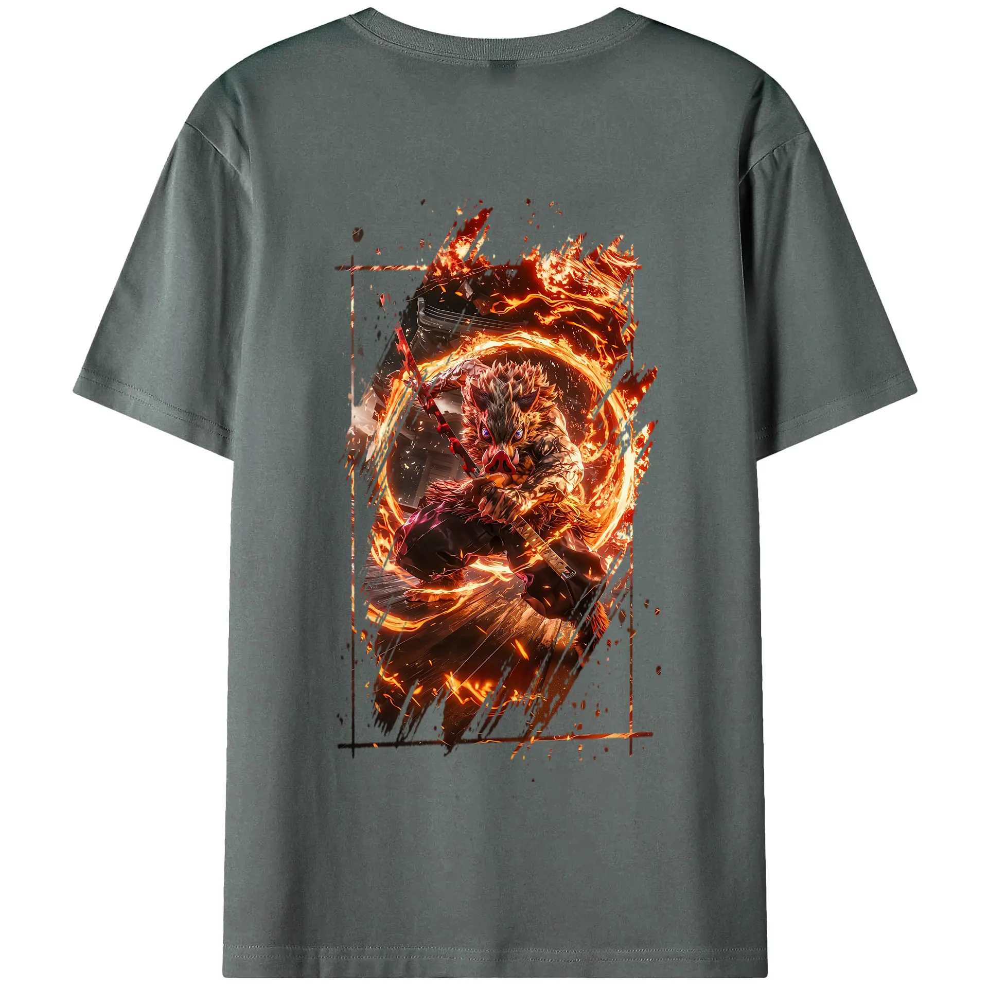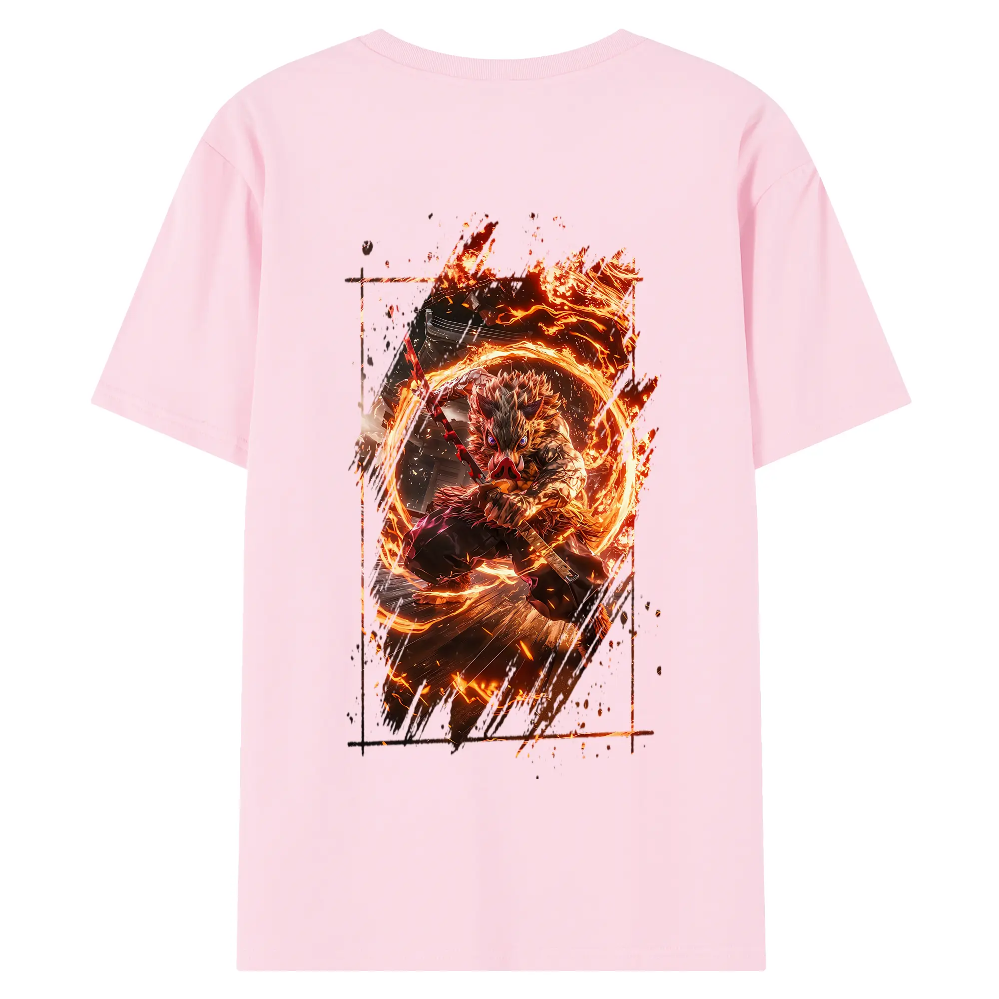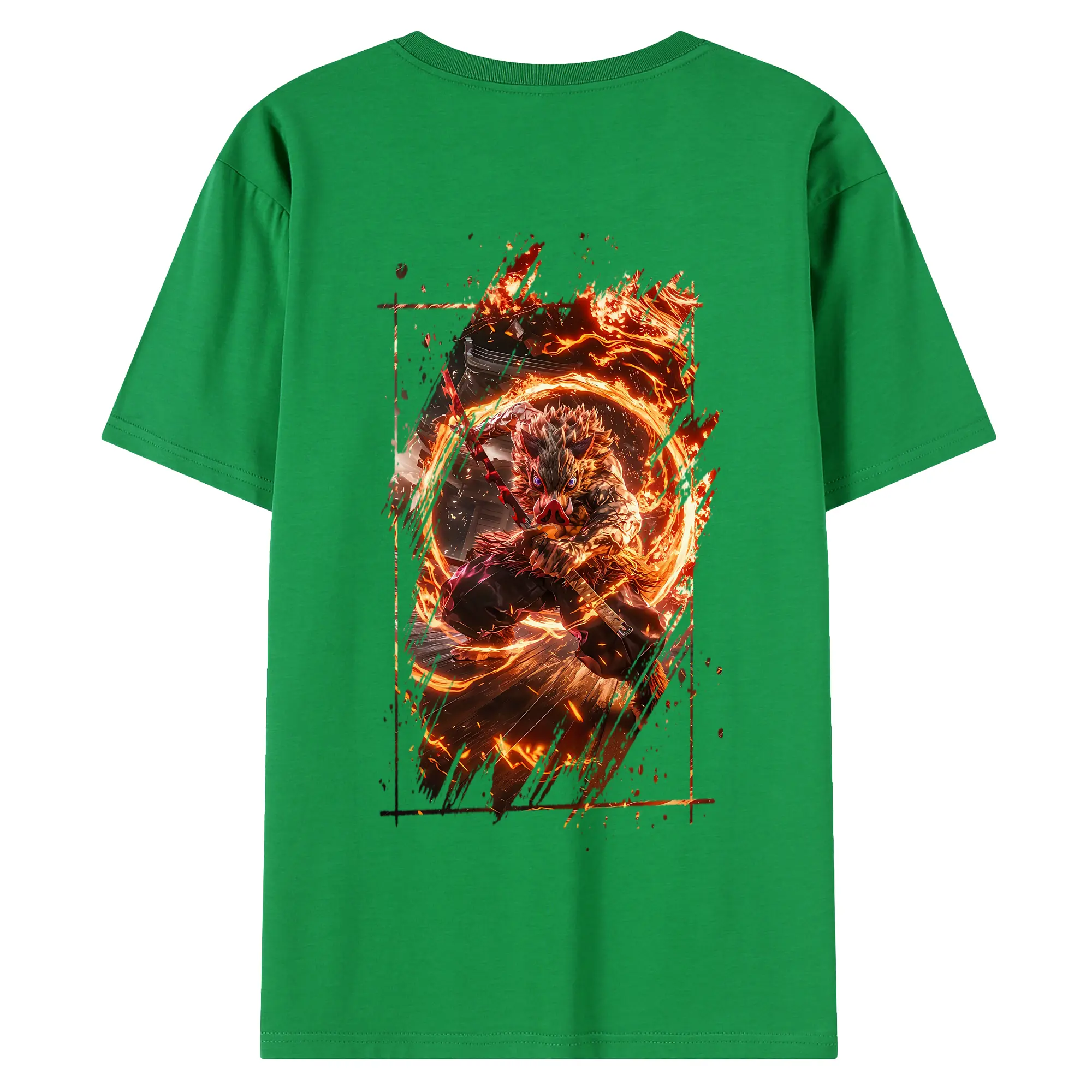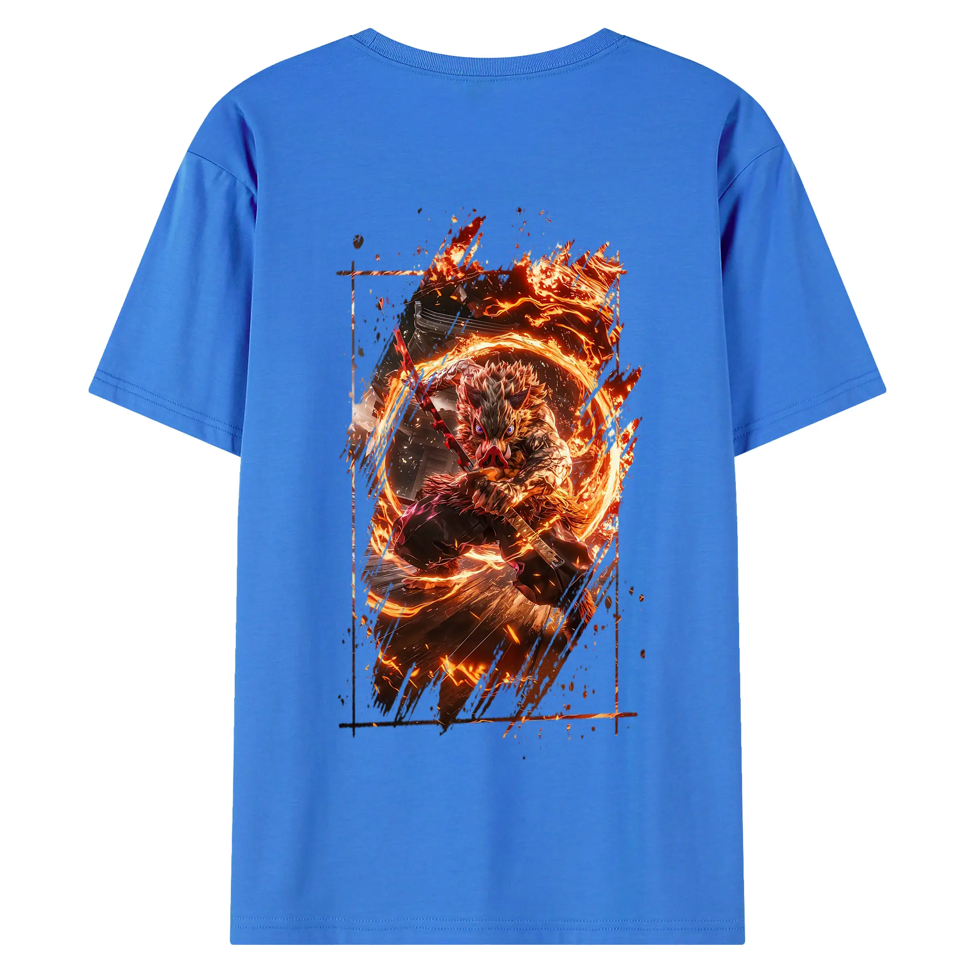 鬼滅の刃 グッズ,嘴平 伊之助 - 綿100% 半袖Tシャツ ・ フロントプリント ・ 快適 通気性 ・ 日常使い 散歩 スポーツ用