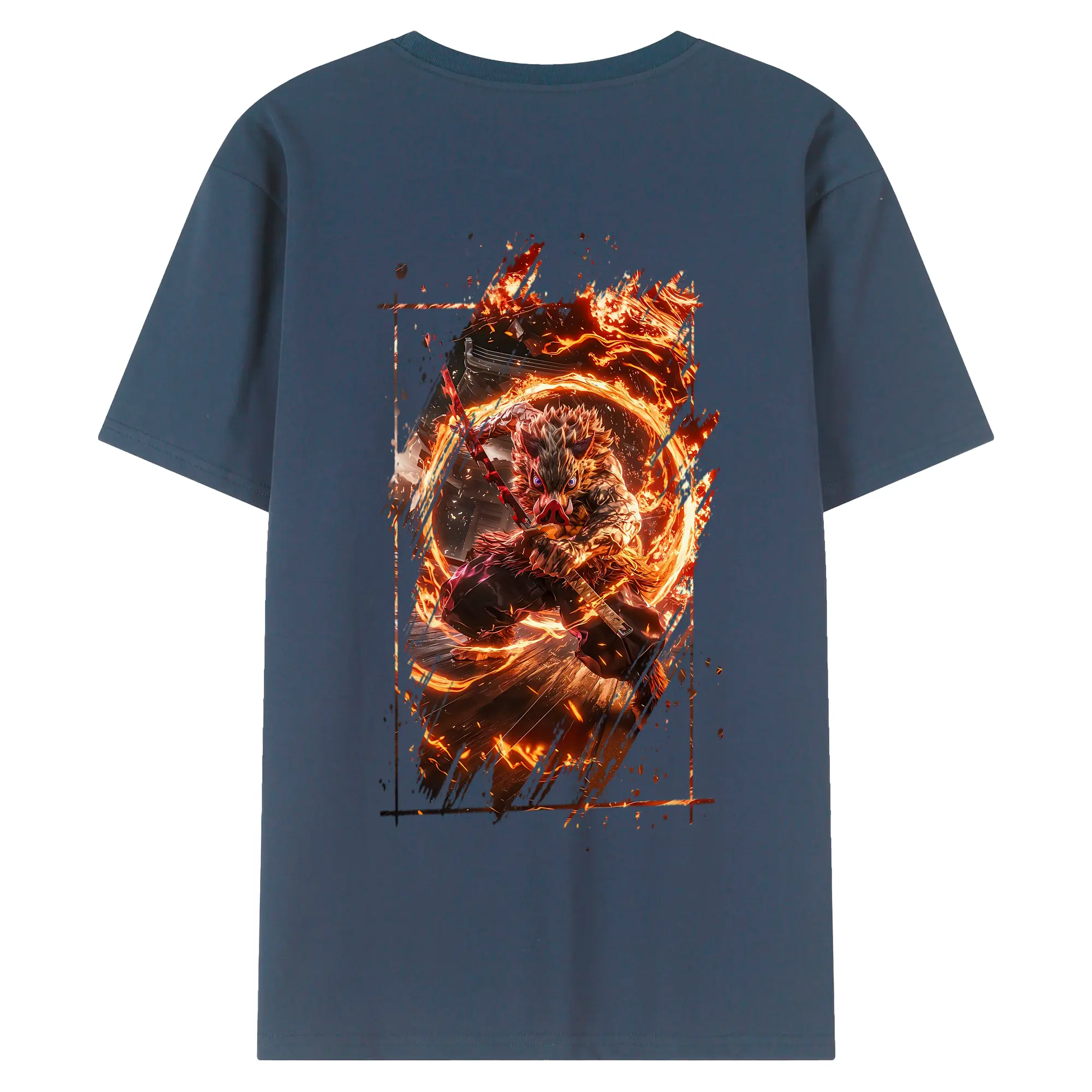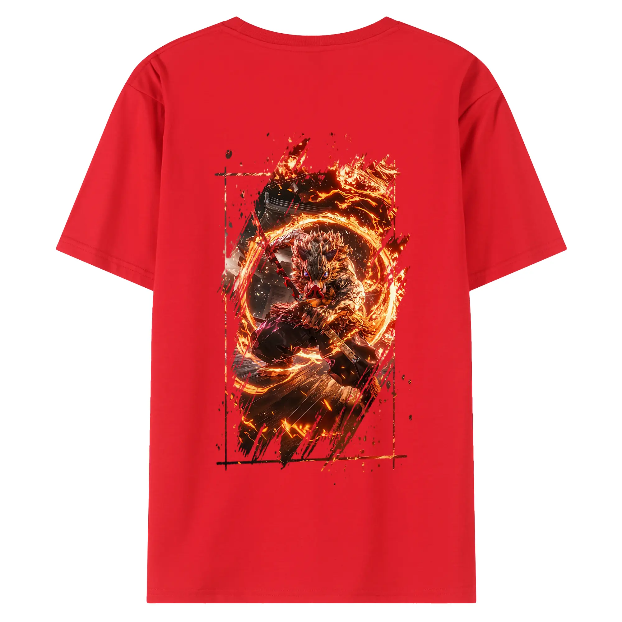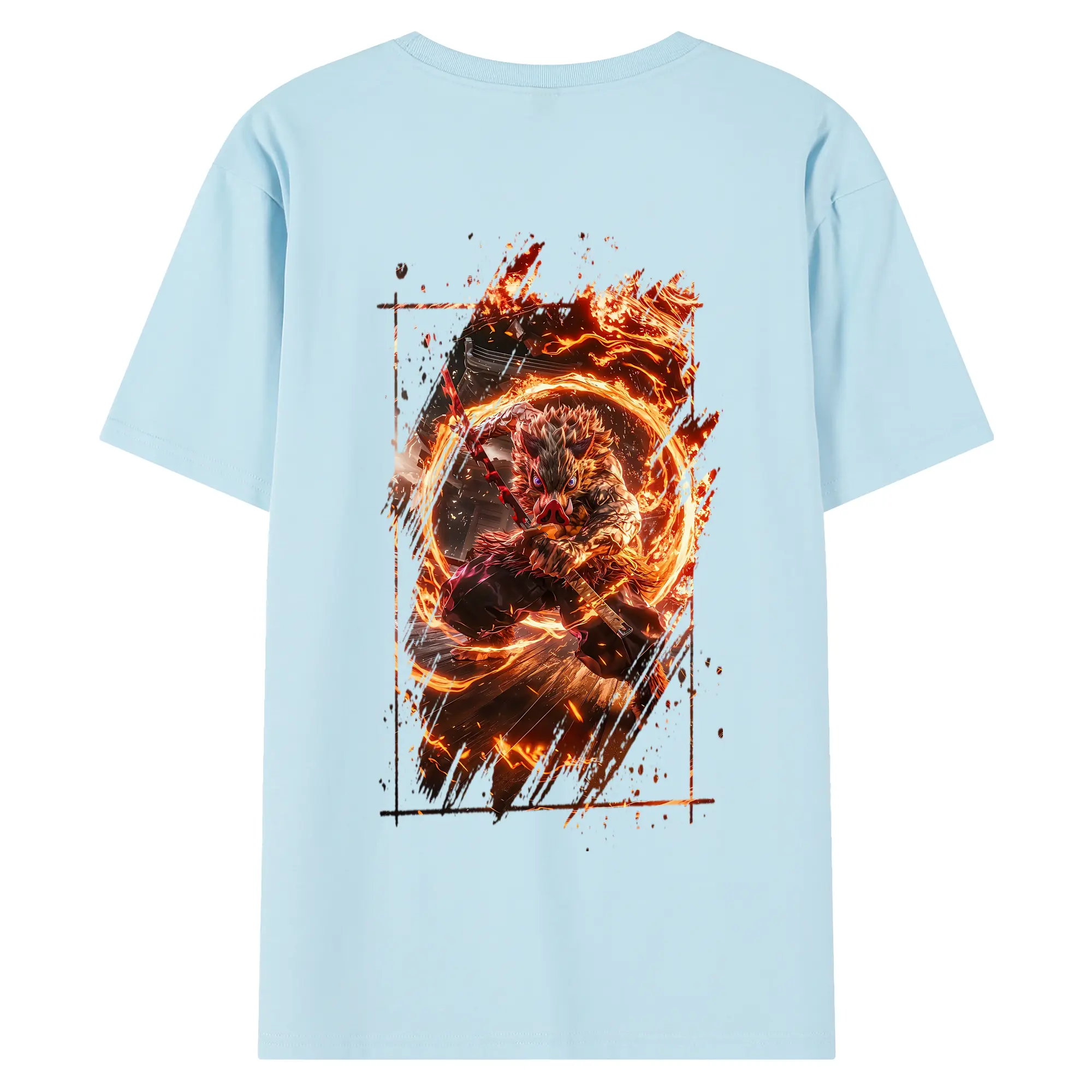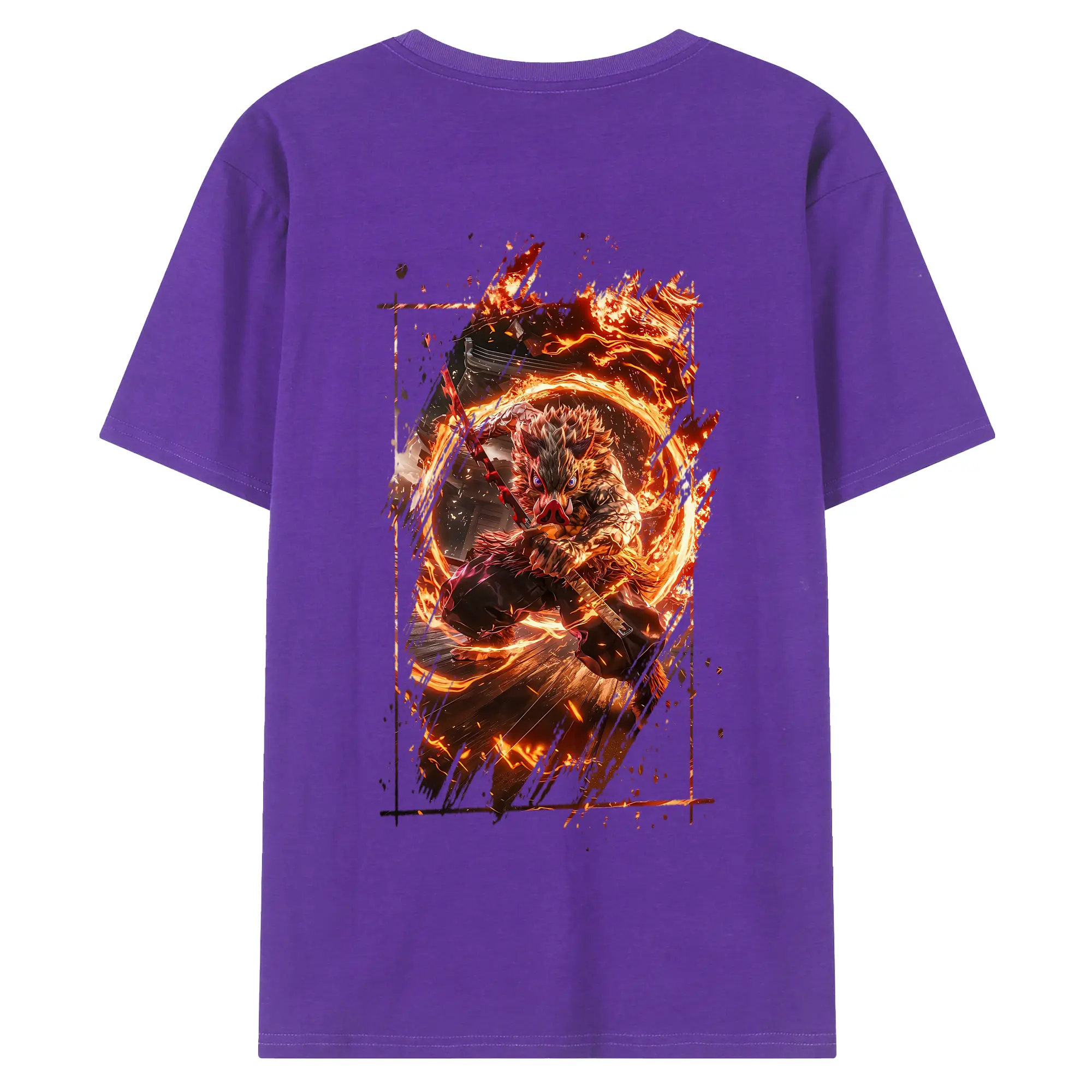 鬼滅の刃 グッズ,嘴平 伊之助 - 綿100% 半袖Tシャツ ・ フロントプリント ・ 快適 通気性 ・ 日常使い 散歩 スポーツ用