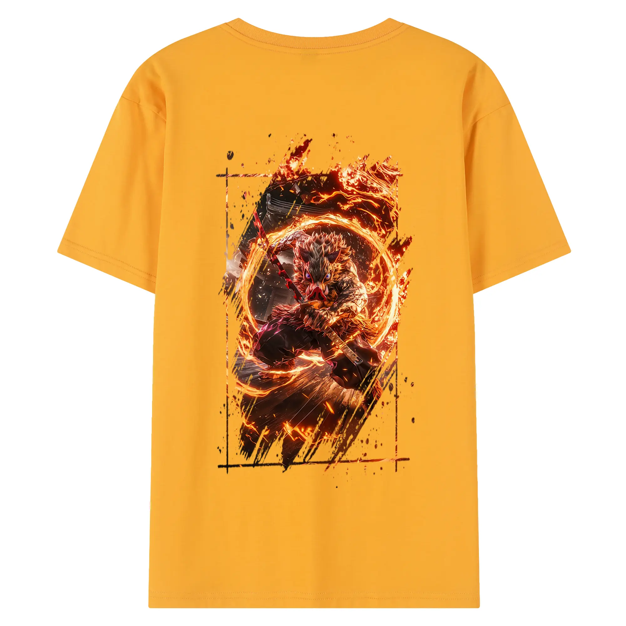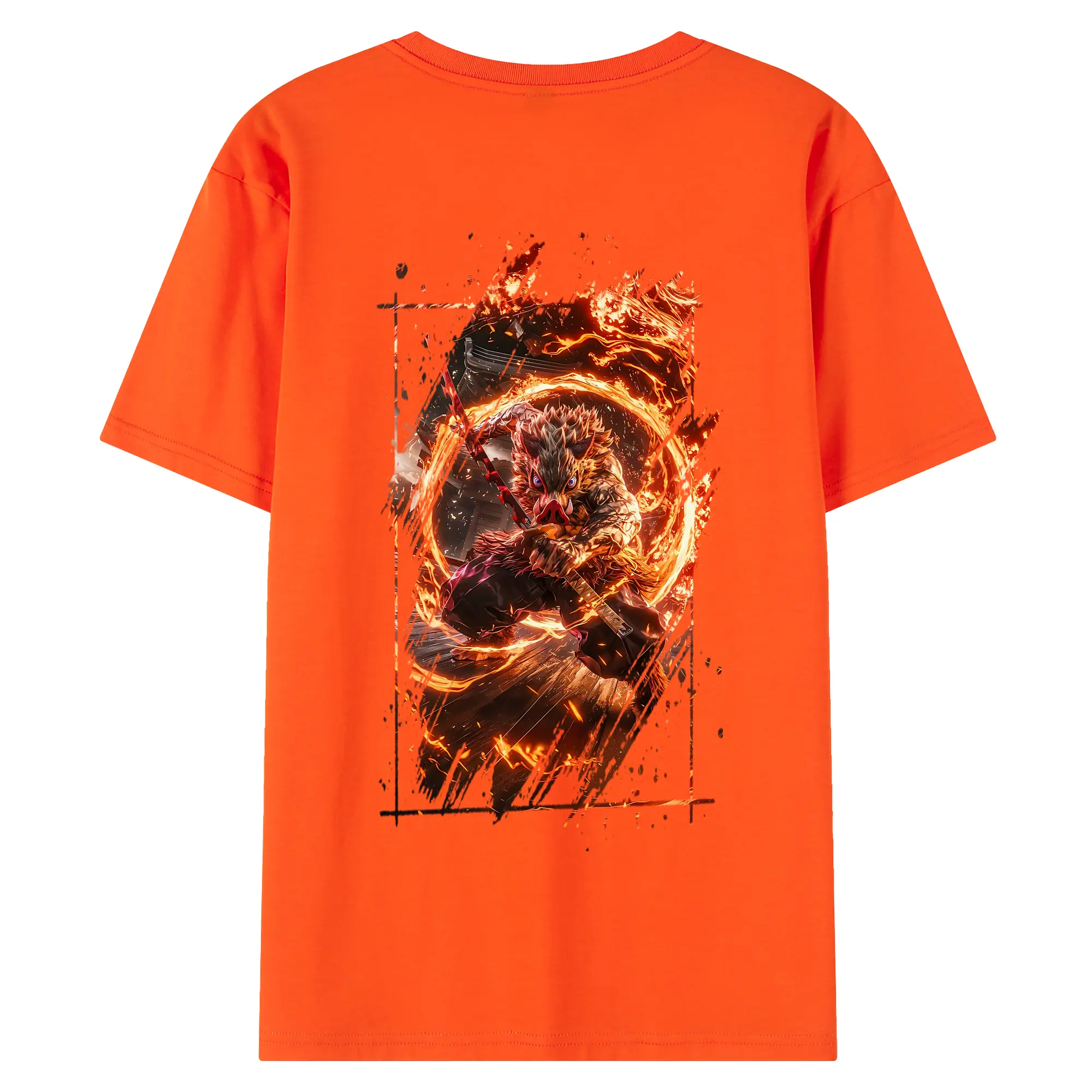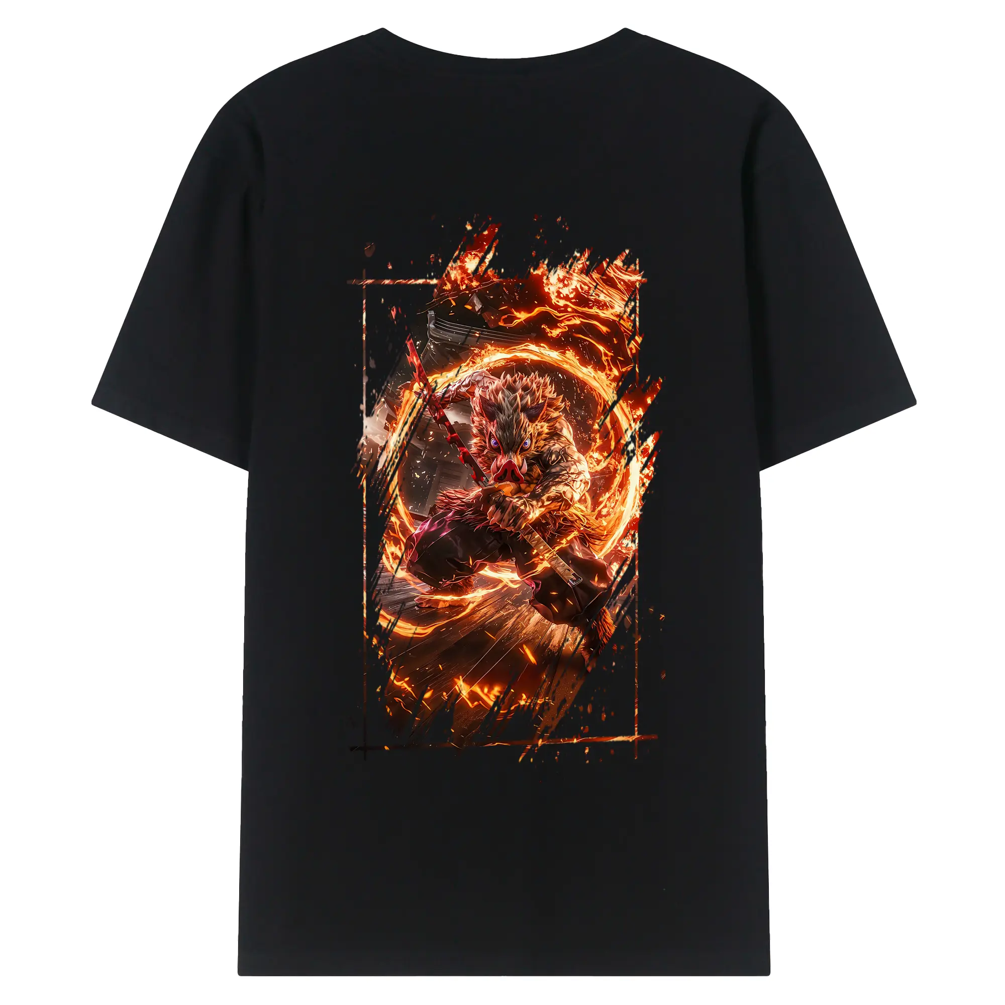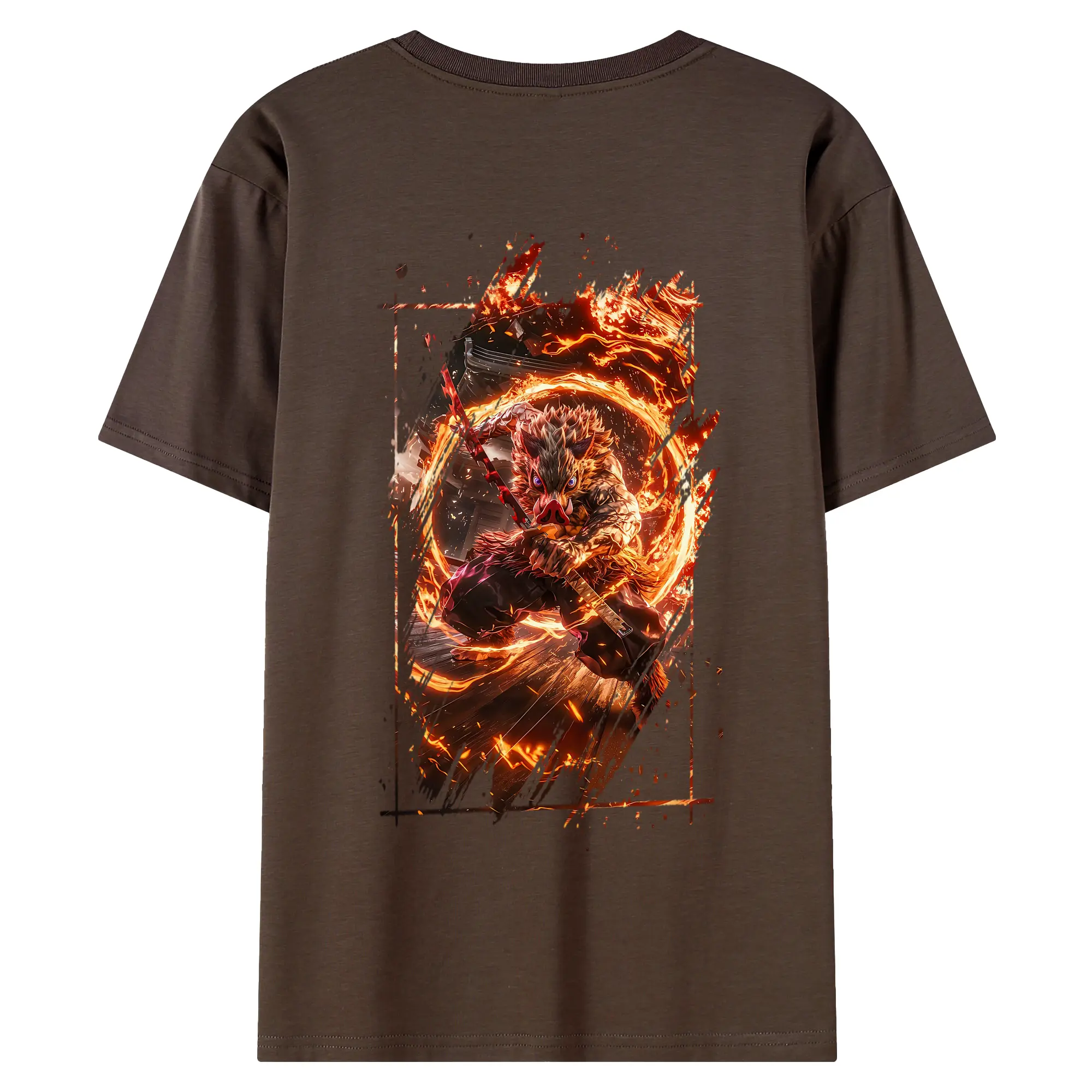鬼滅の刃 グッズ,嘴平 伊之助 - 綿100% 半袖Tシャツ ・ フロントプリント ・ 快適 通気性 ・ 日常使い 散歩 スポーツ用