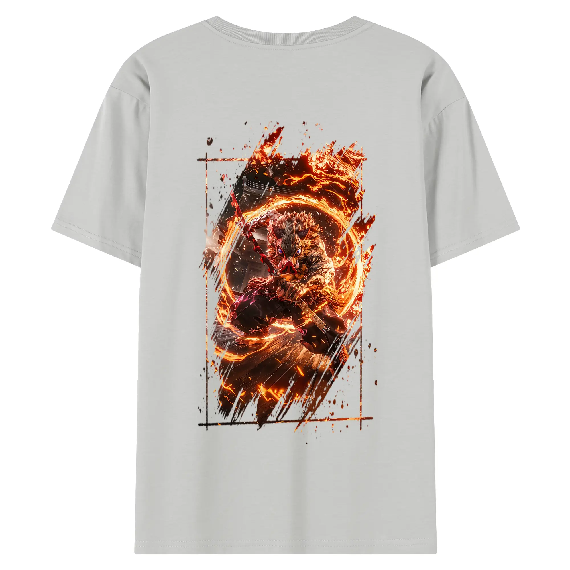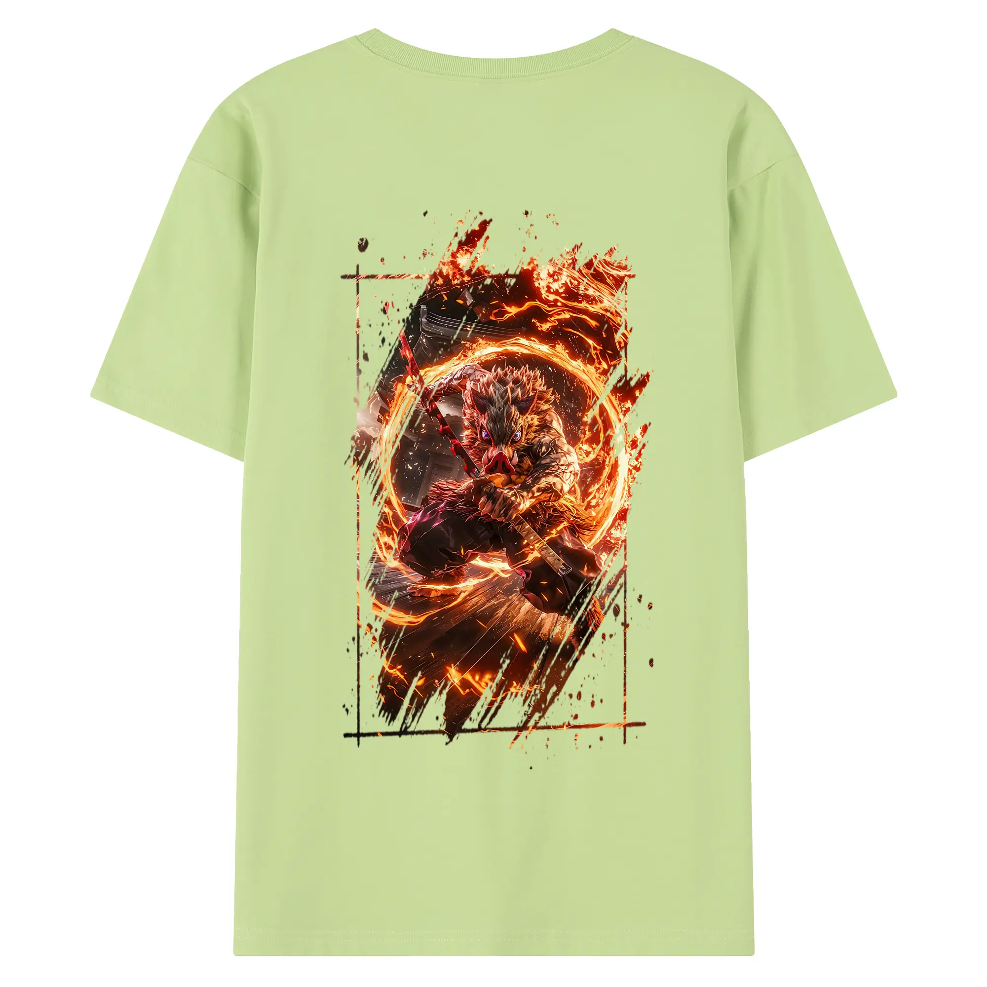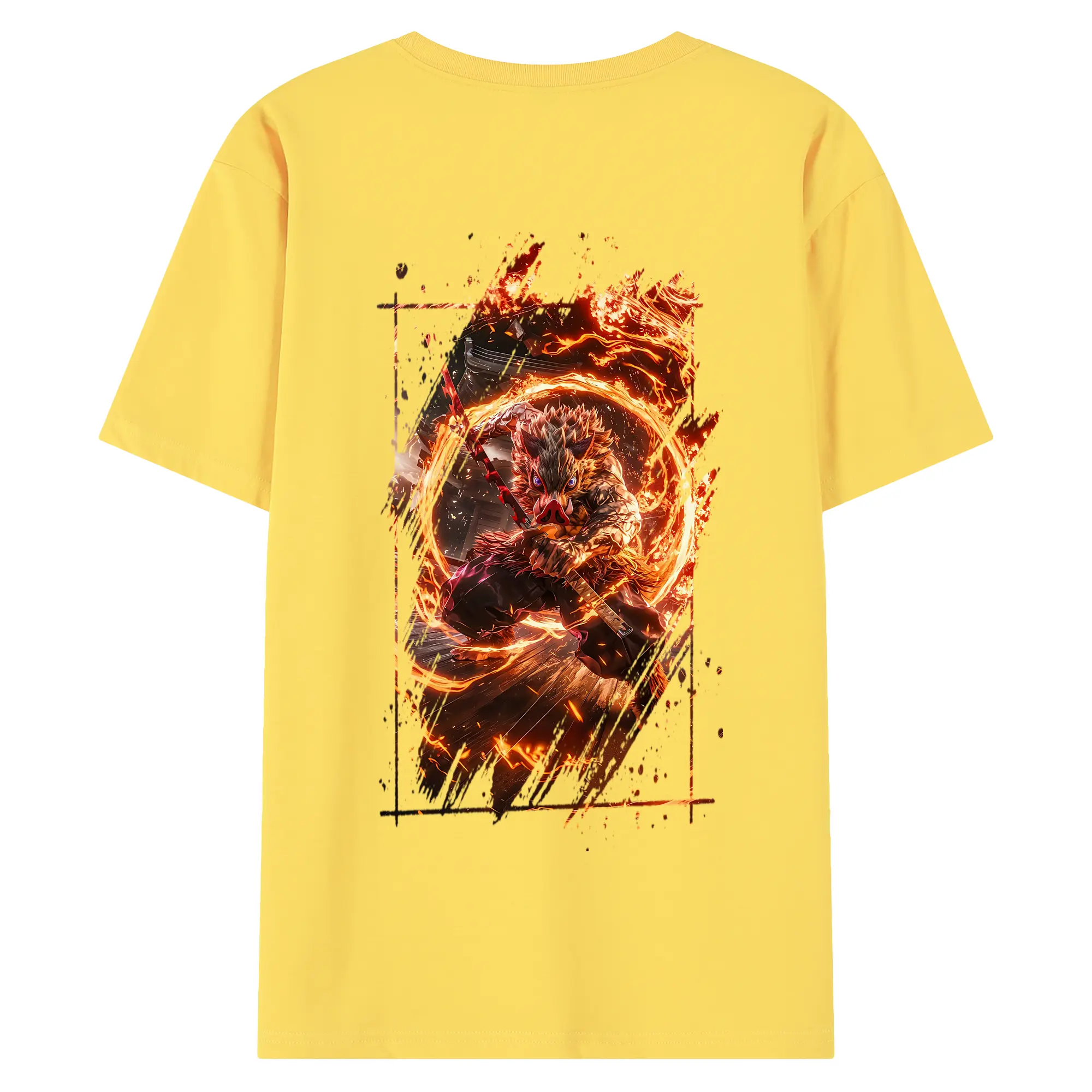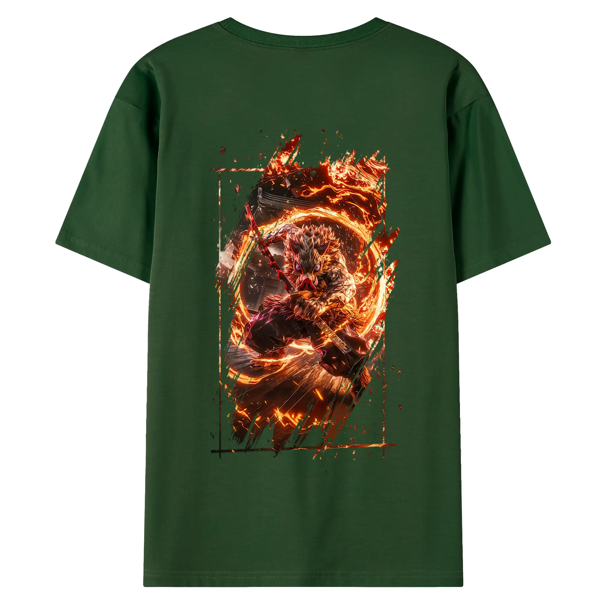 鬼滅の刃 グッズ,嘴平 伊之助 - 綿100% 半袖Tシャツ ・ フロントプリント ・ 快適 通気性 ・ 日常使い 散歩 スポーツ用