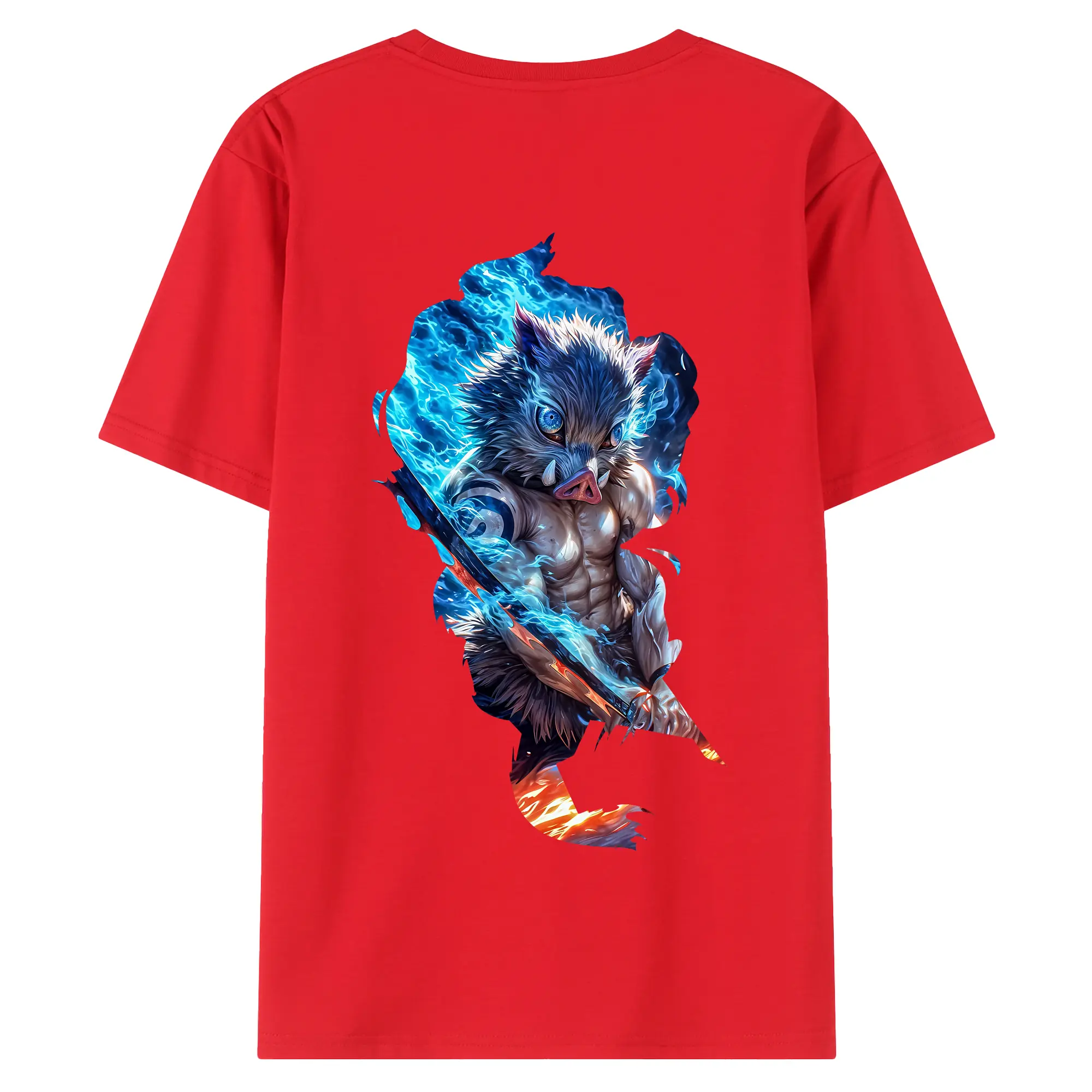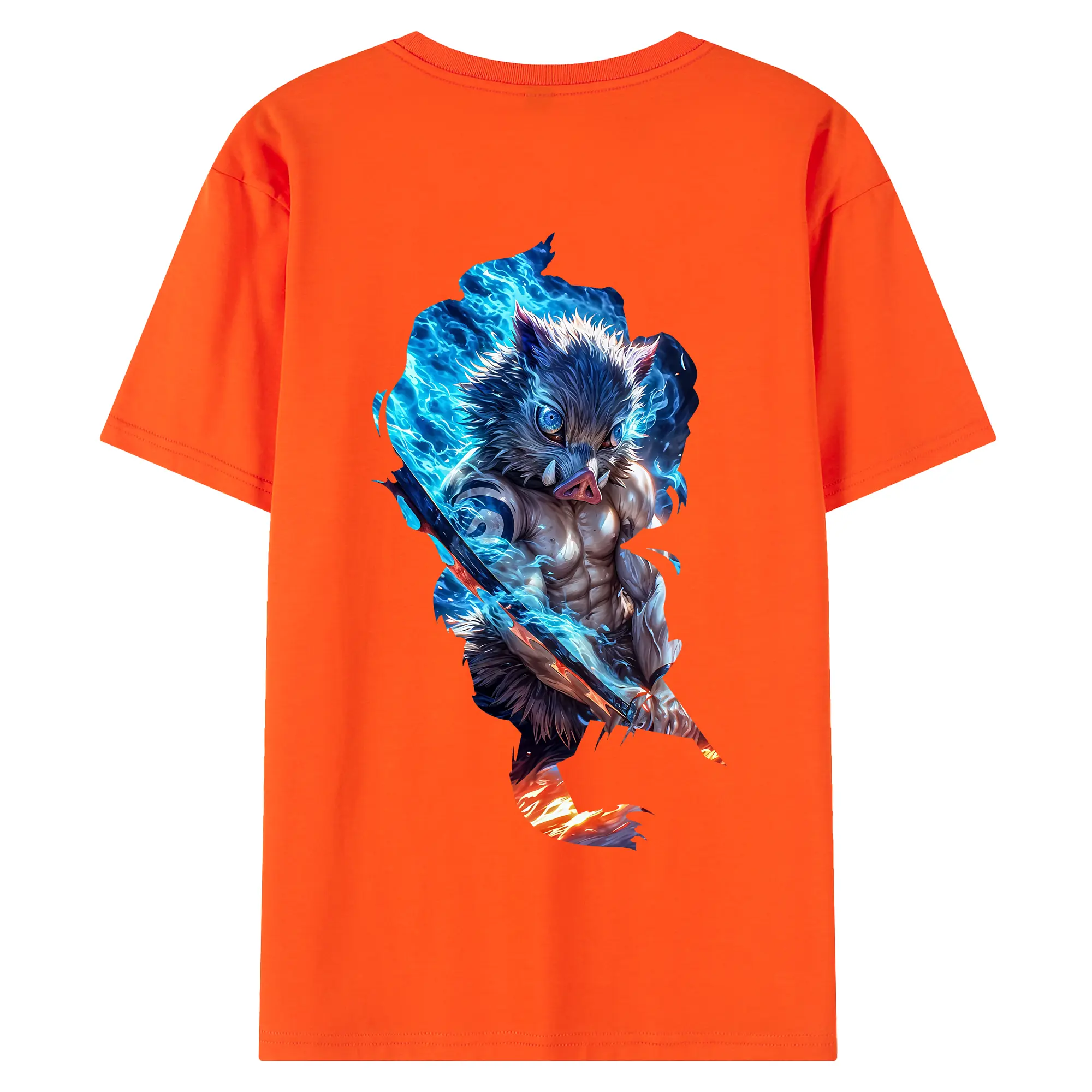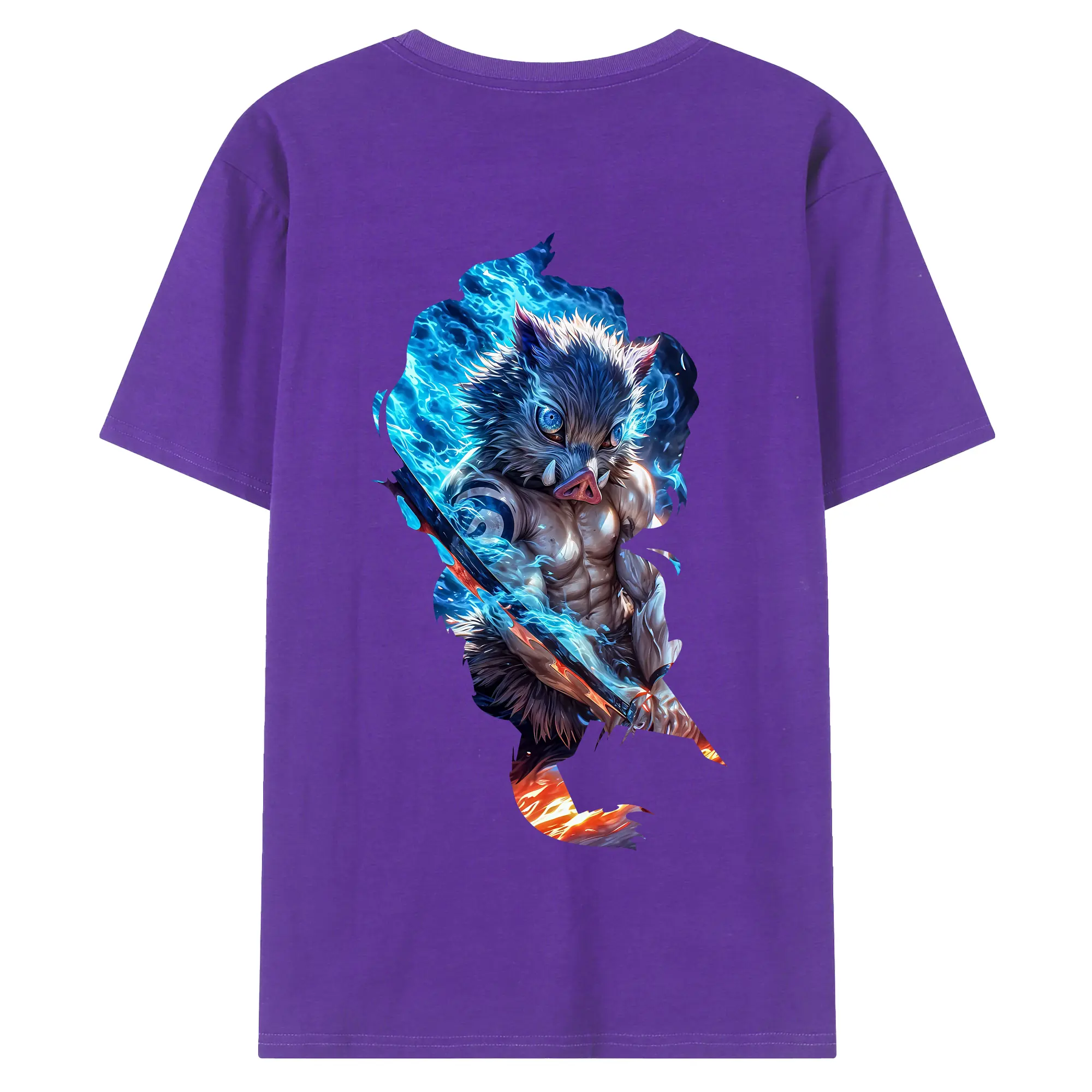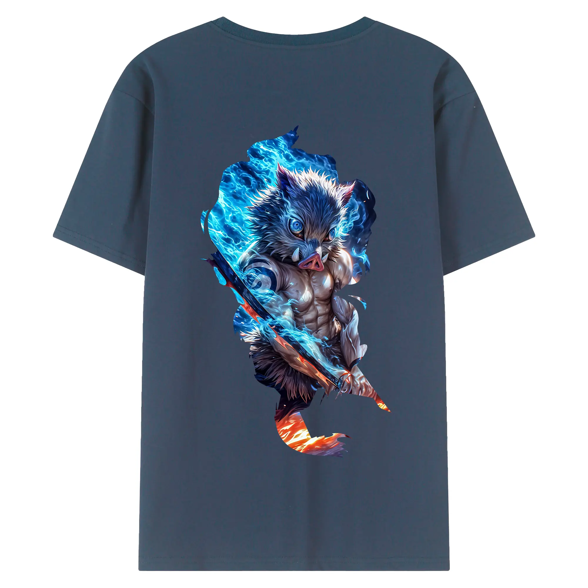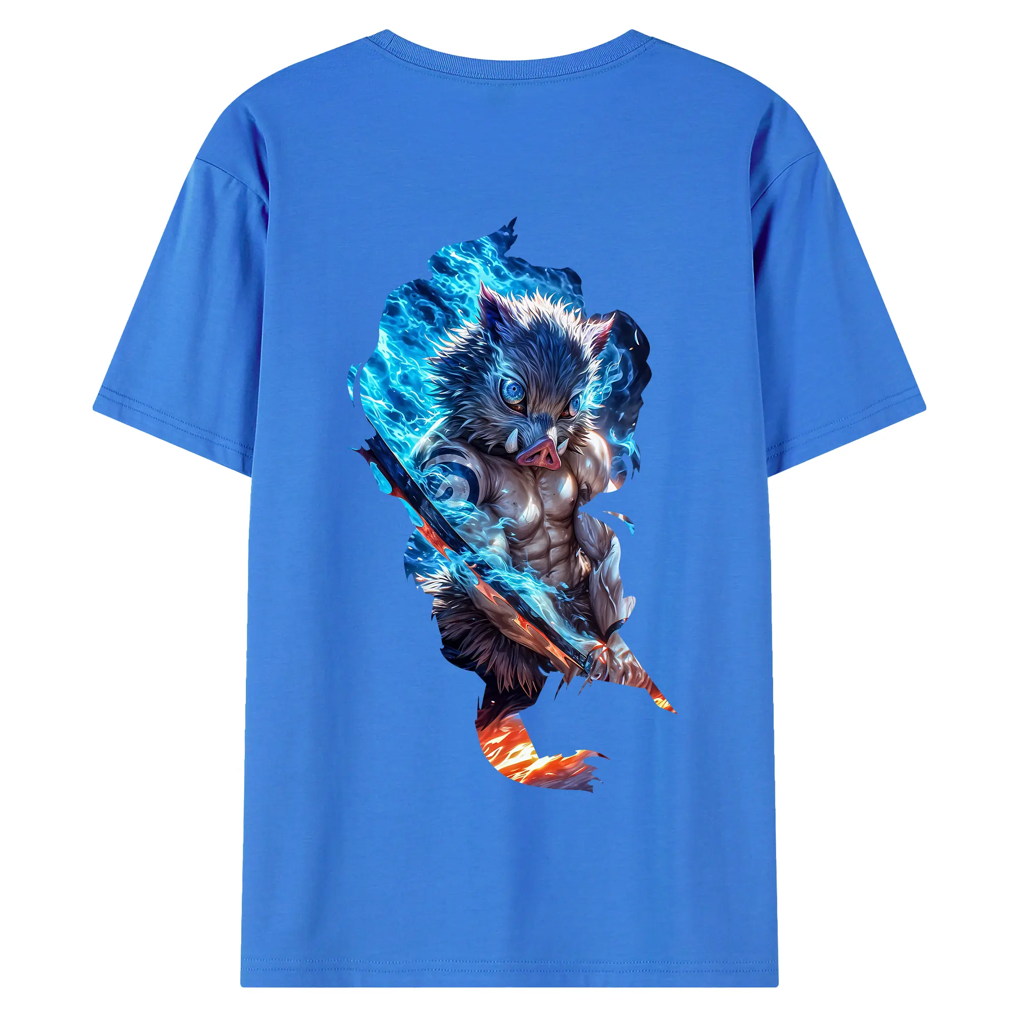 鬼滅の刃 グッズ,嘴平 伊之助 - 綿100% 半袖Tシャツ ・ フロントプリント ・ 快適 通気性 ・ 日常使い 散歩 スポーツ用