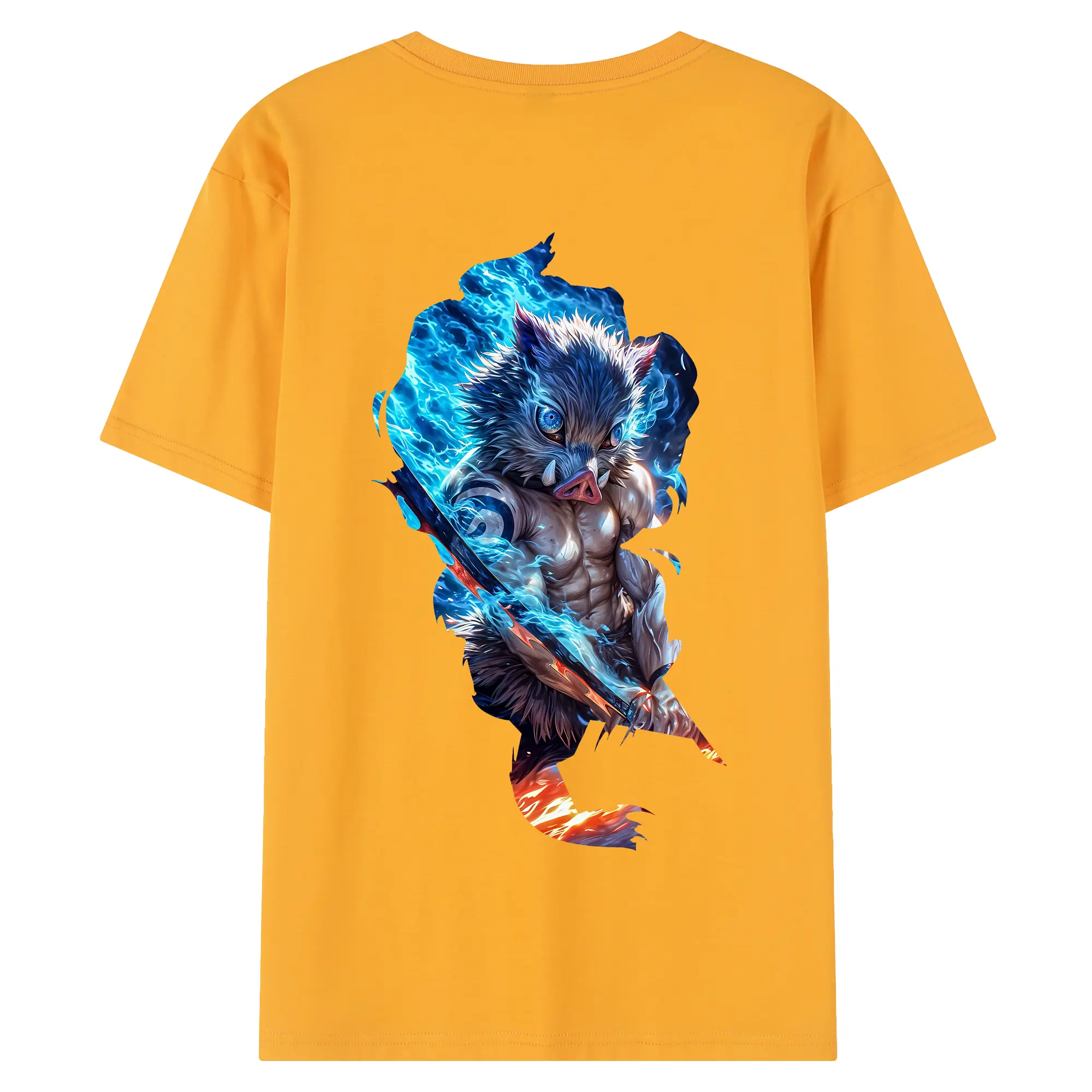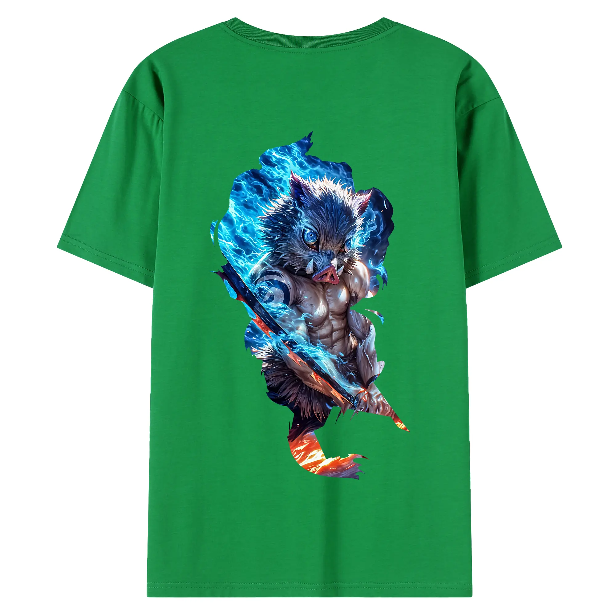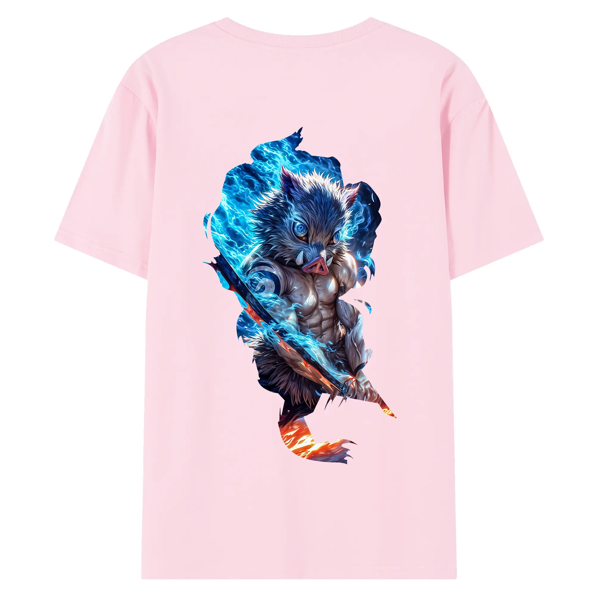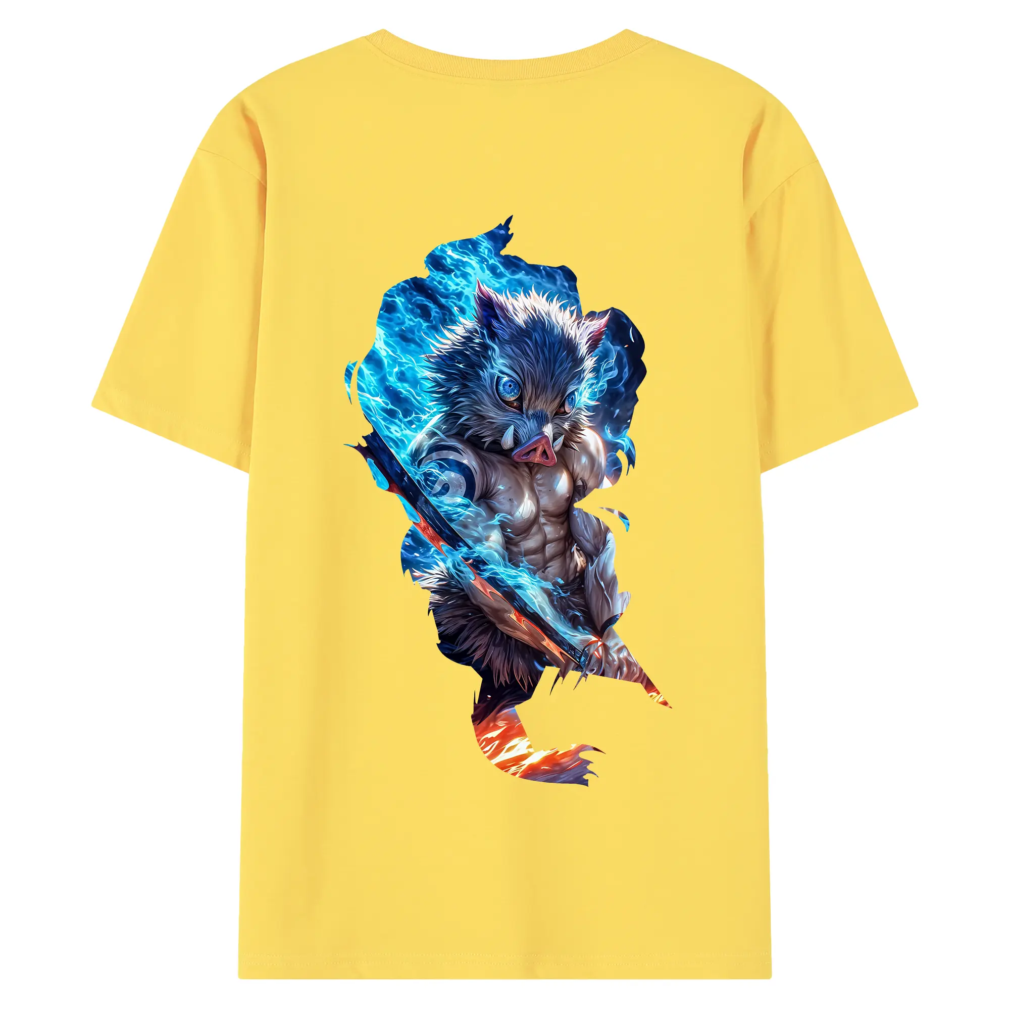 鬼滅の刃 グッズ,嘴平 伊之助 - 綿100% 半袖Tシャツ ・ フロントプリント ・ 快適 通気性 ・ 日常使い 散歩 スポーツ用
