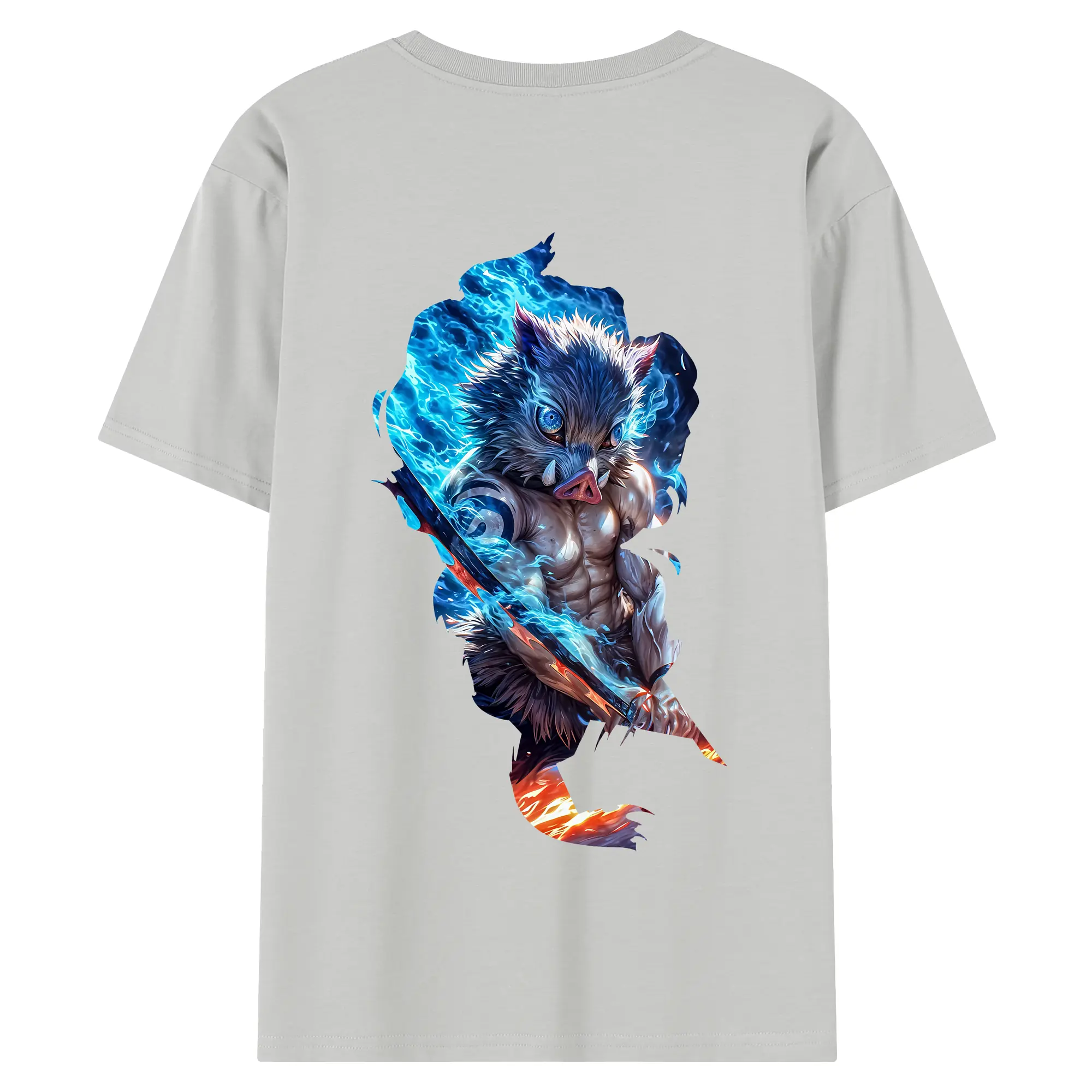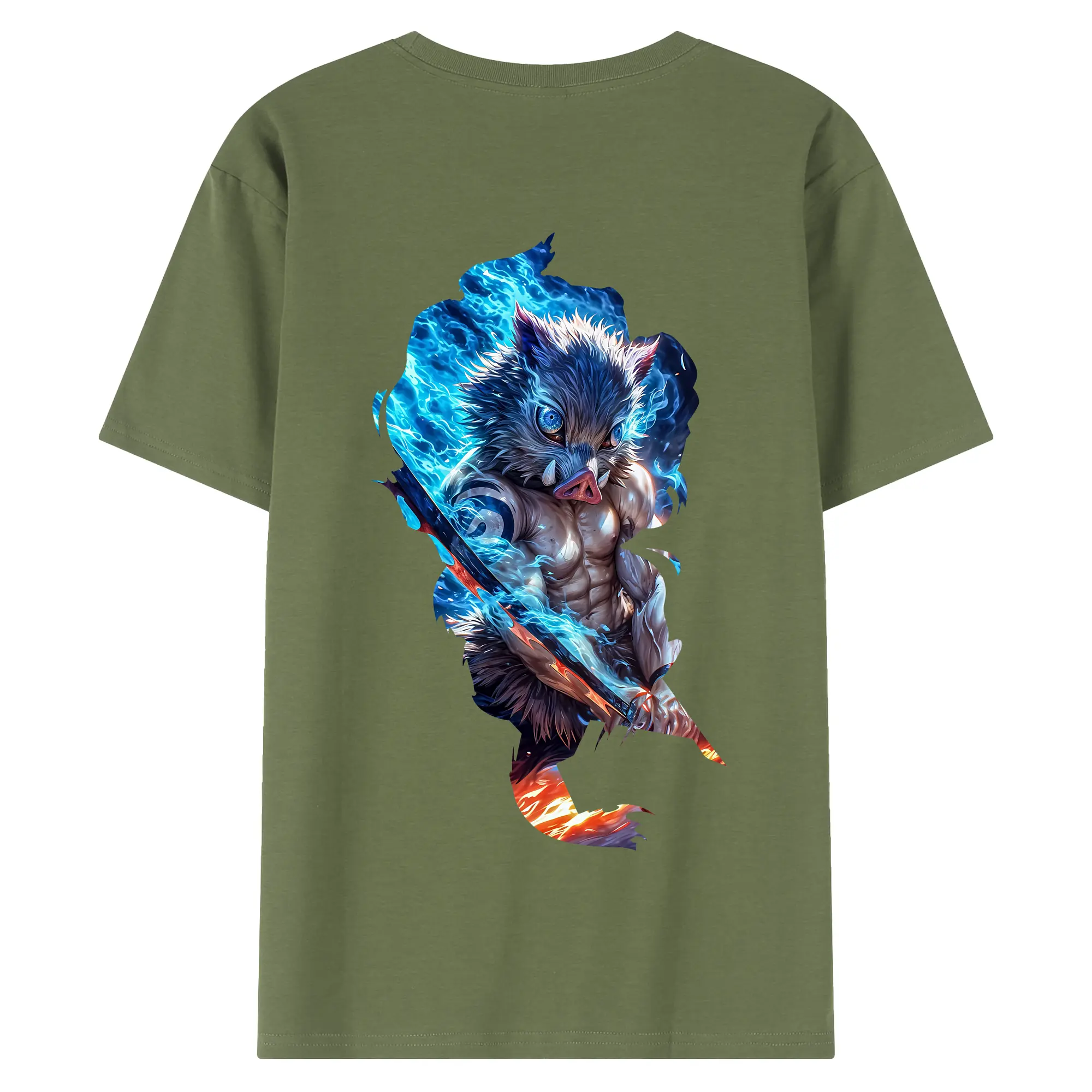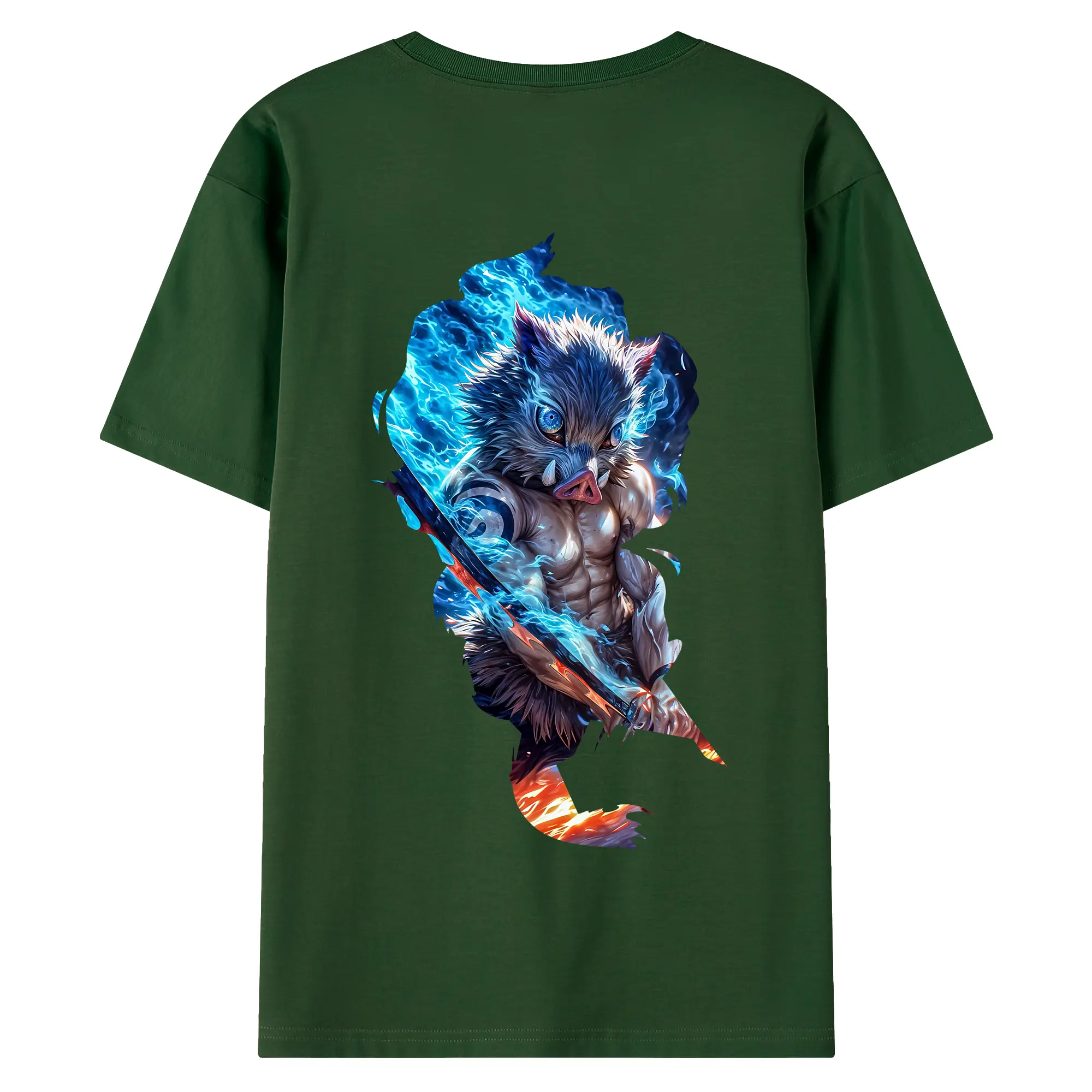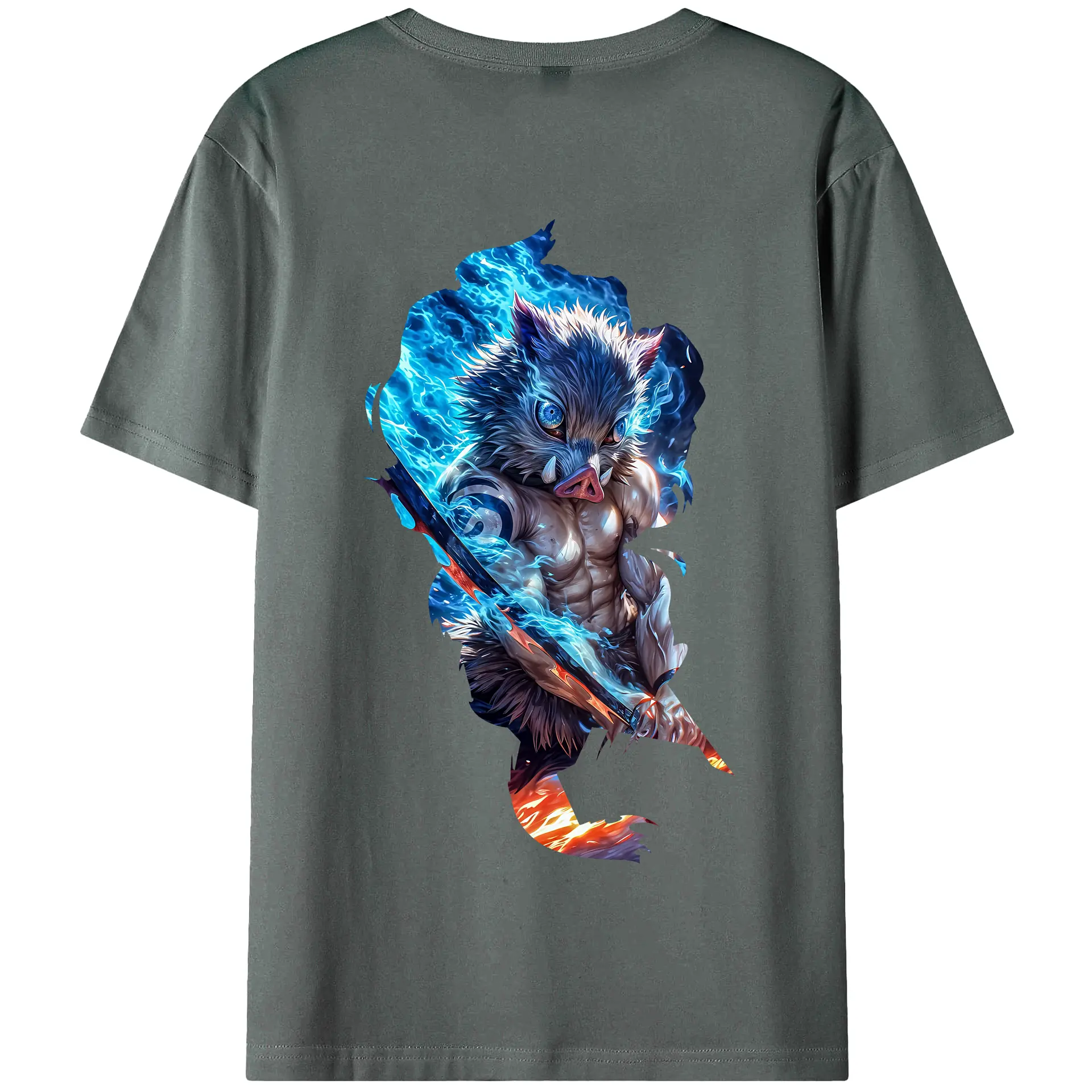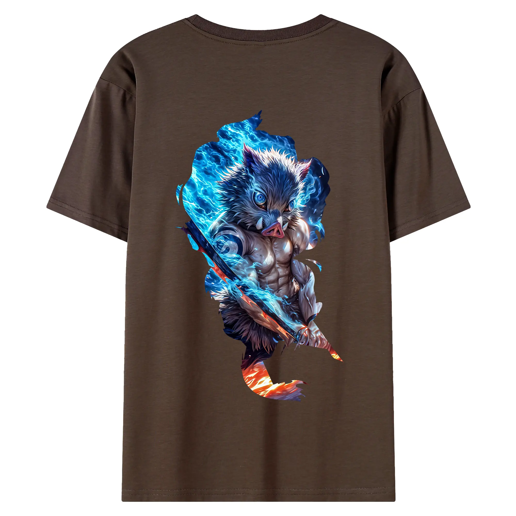 鬼滅の刃 グッズ,嘴平 伊之助 - 綿100% 半袖Tシャツ ・ フロントプリント ・ 快適 通気性 ・ 日常使い 散歩 スポーツ用