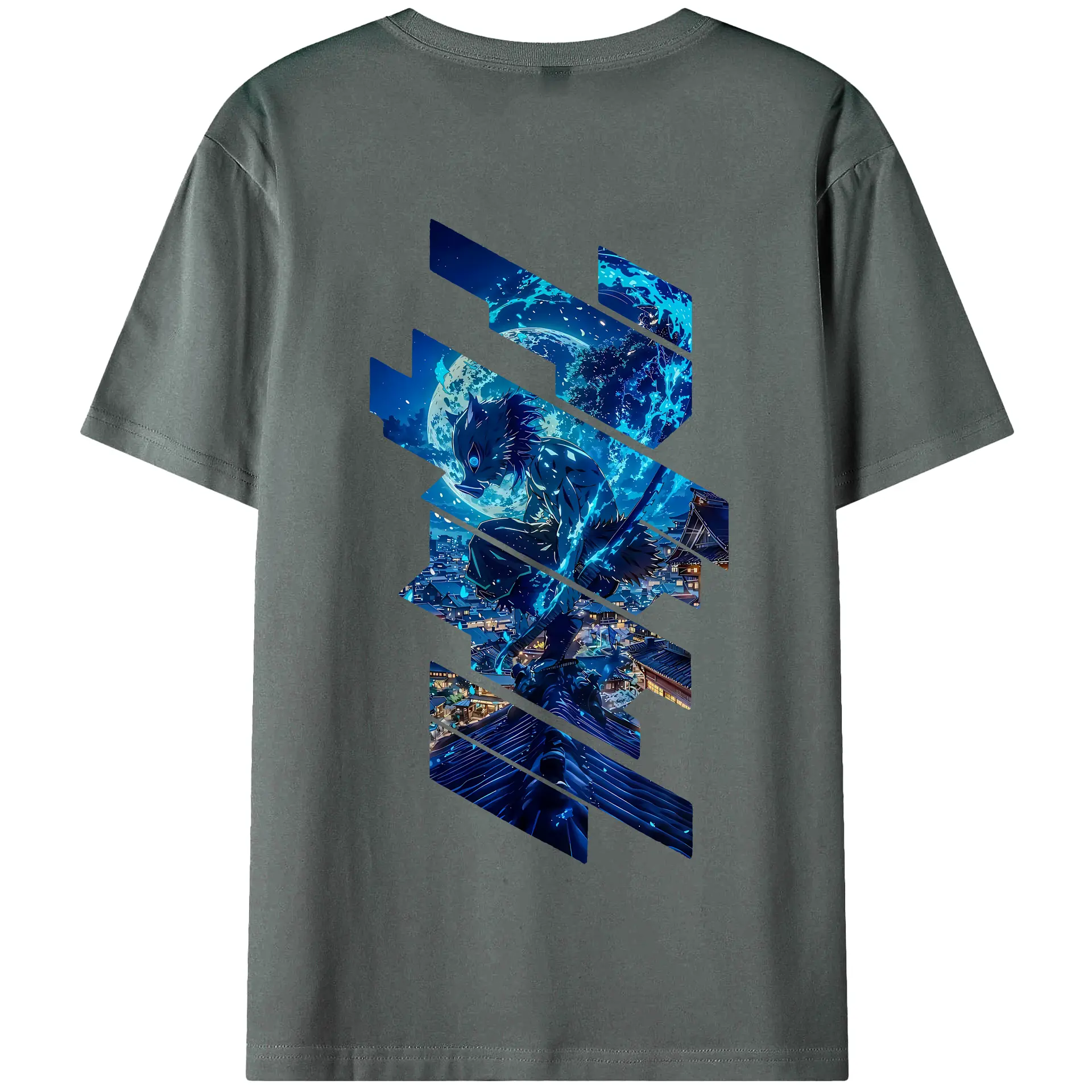 鬼滅の刃 グッズ,嘴平 伊之助 - 綿100% 半袖Tシャツ ・ フロントプリント ・ 快適 通気性 ・ 日常使い 散歩 スポーツ用