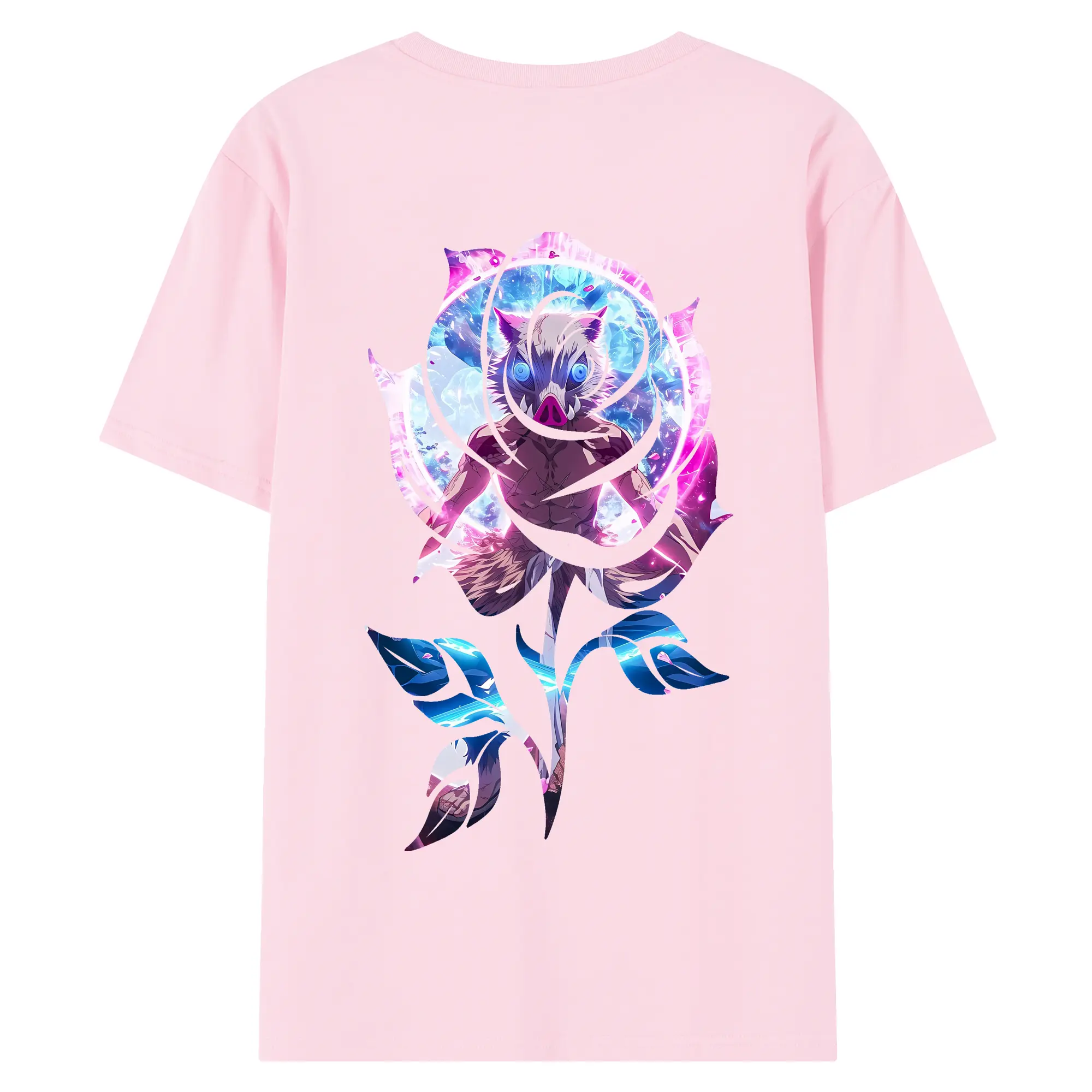 鬼滅の刃 グッズ,嘴平 伊之助 - 綿100% 半袖Tシャツ ・ フロントプリント ・ 快適 通気性 ・ 日常使い 散歩 スポーツ用