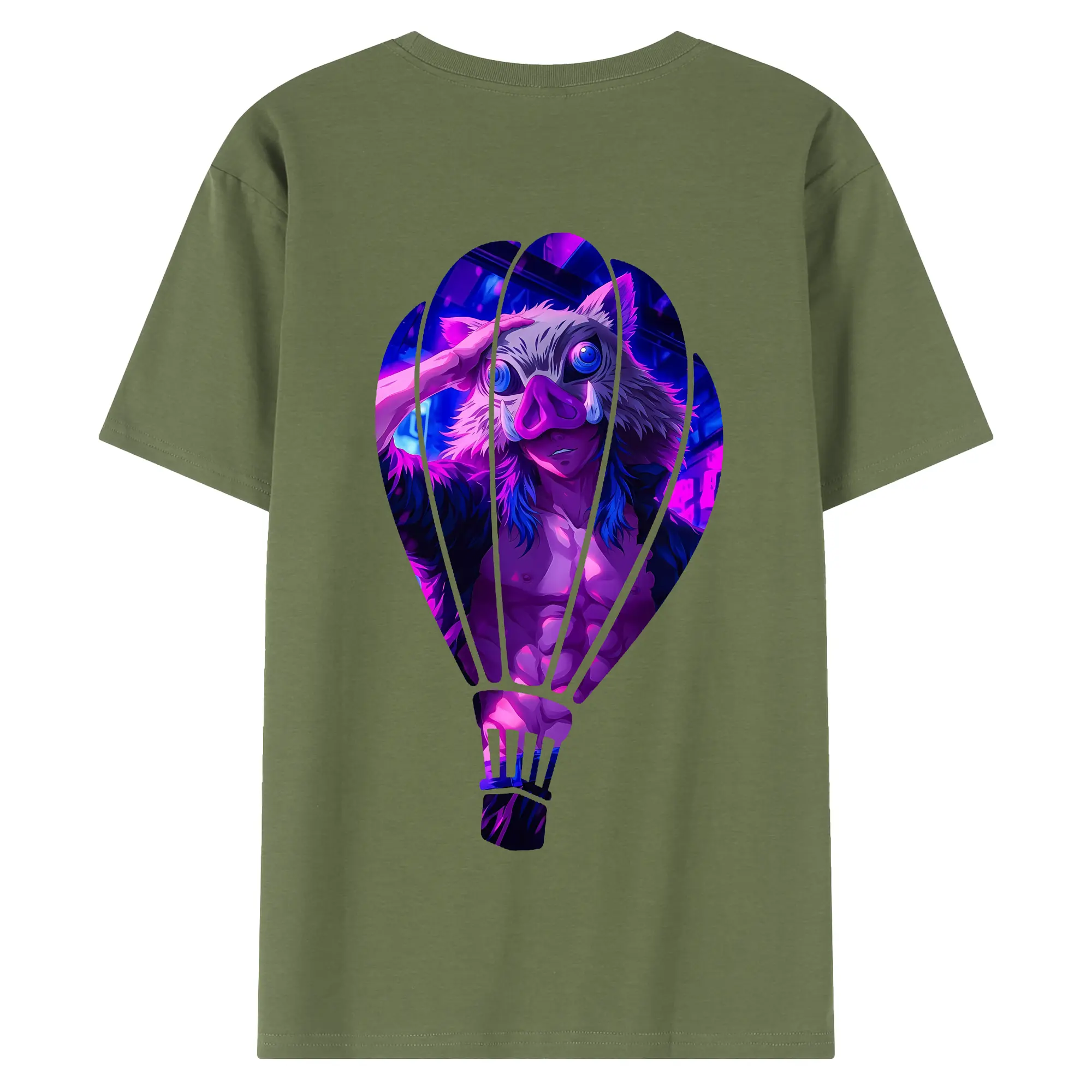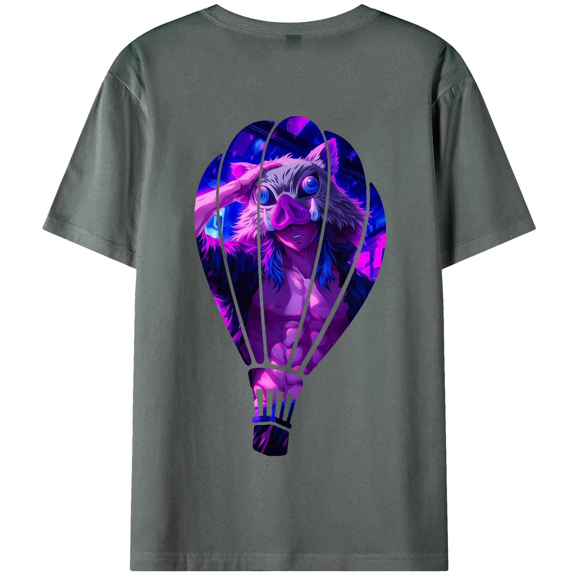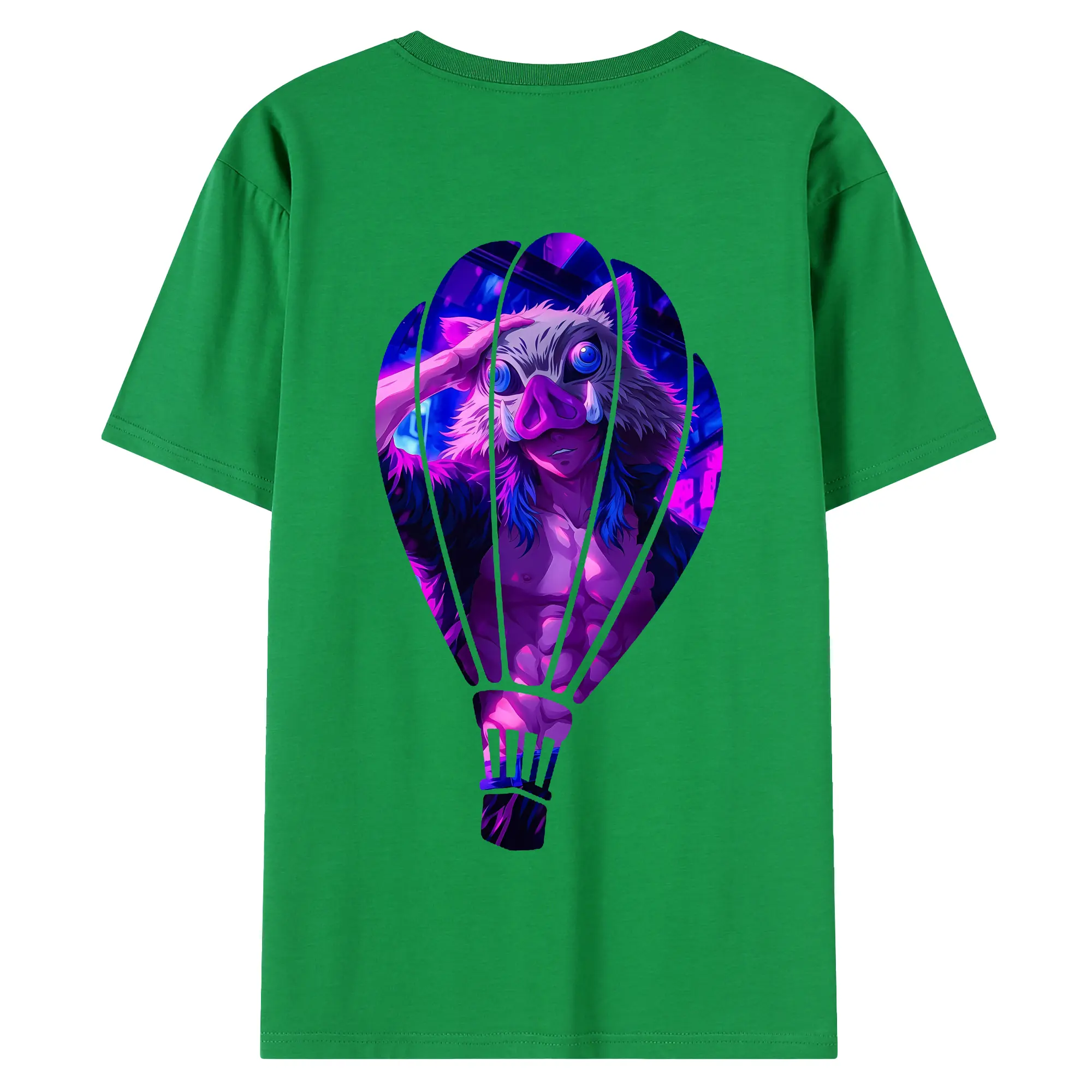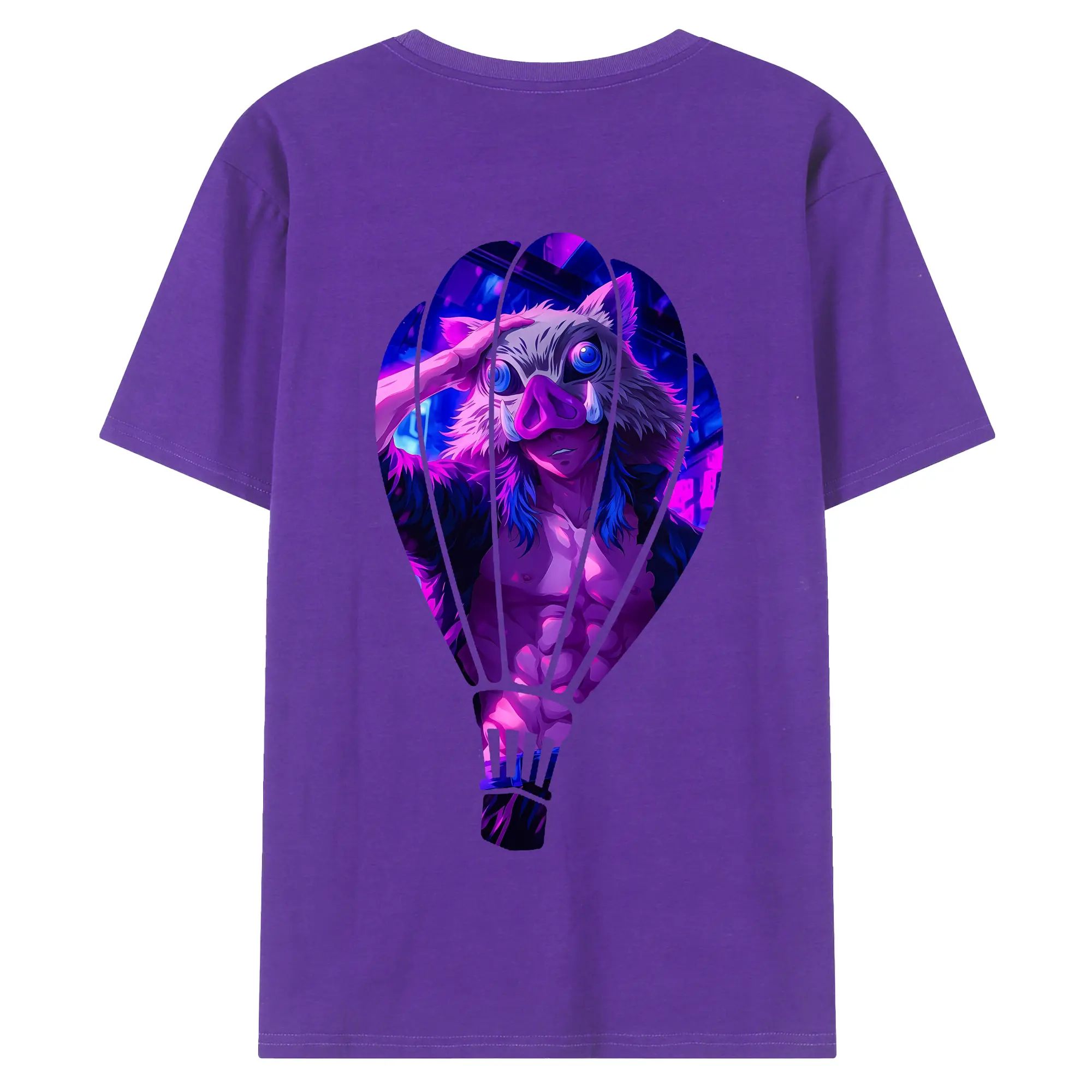 鬼滅の刃 グッズ,嘴平 伊之助 - 綿100% 半袖Tシャツ ・ フロントプリント ・ 快適 通気性 ・ 日常使い 散歩 スポーツ用