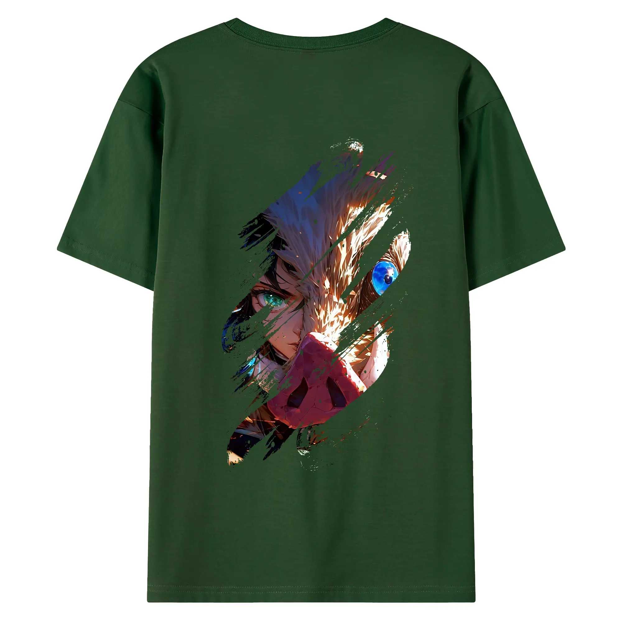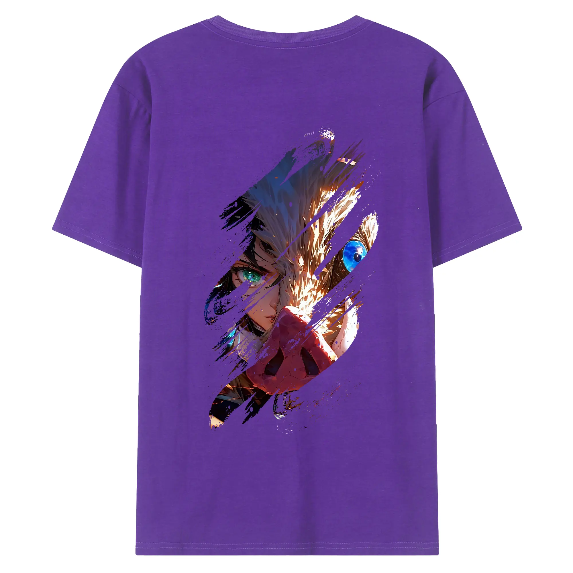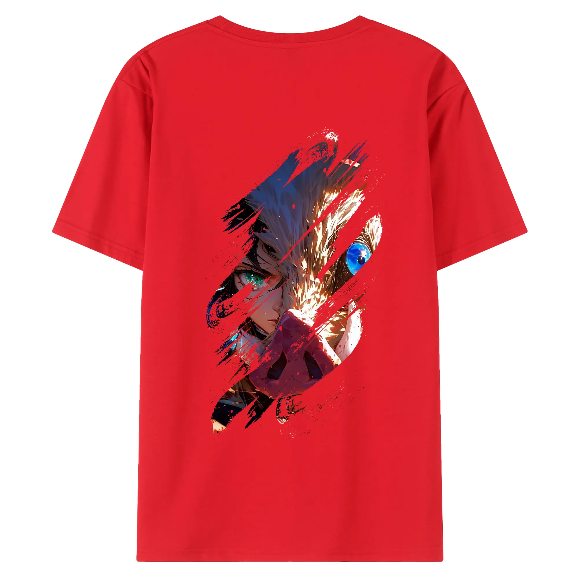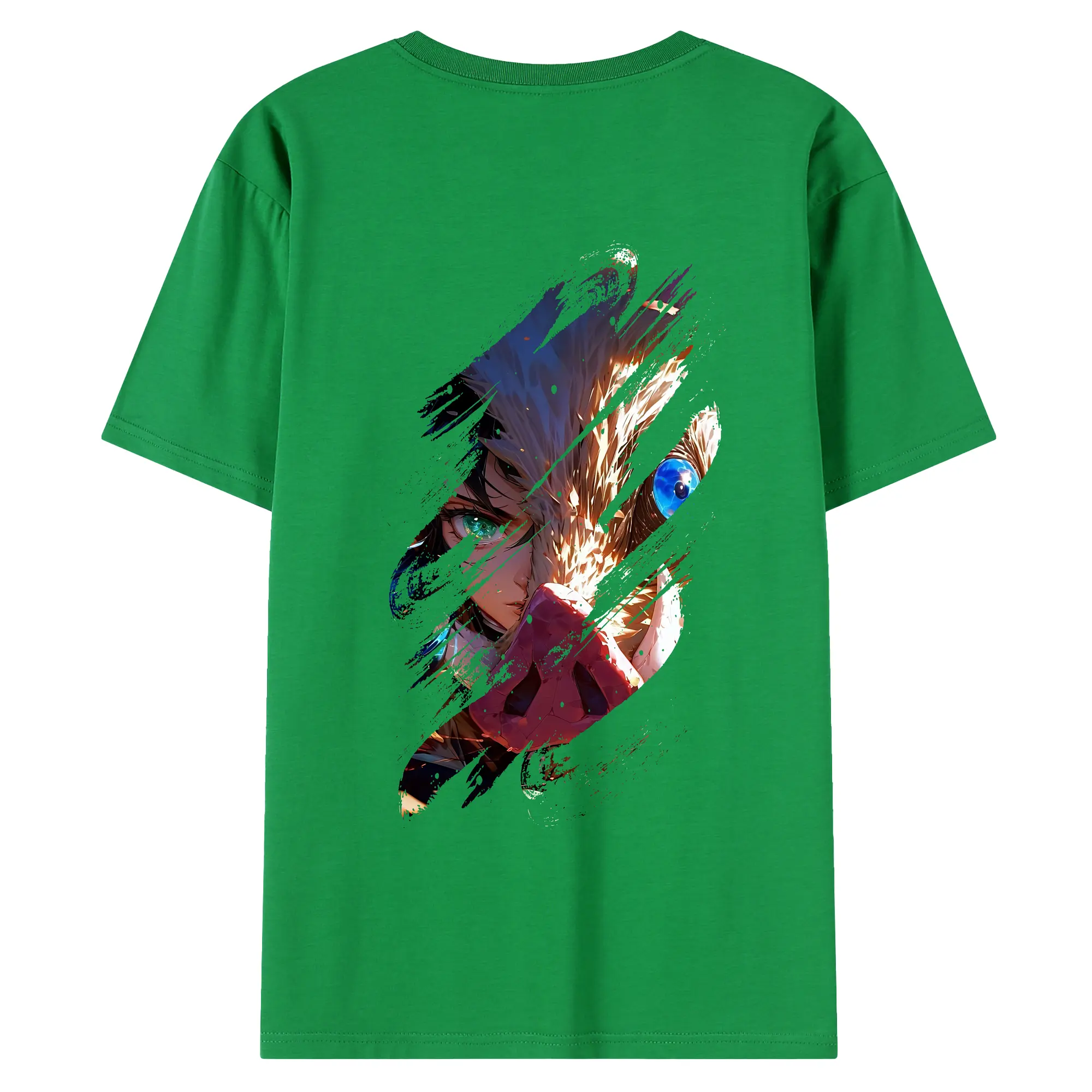 鬼滅の刃 グッズ,嘴平 伊之助 - 綿100% 半袖Tシャツ ・ フロントプリント ・ 快適 通気性 ・ 日常使い 散歩 スポーツ用