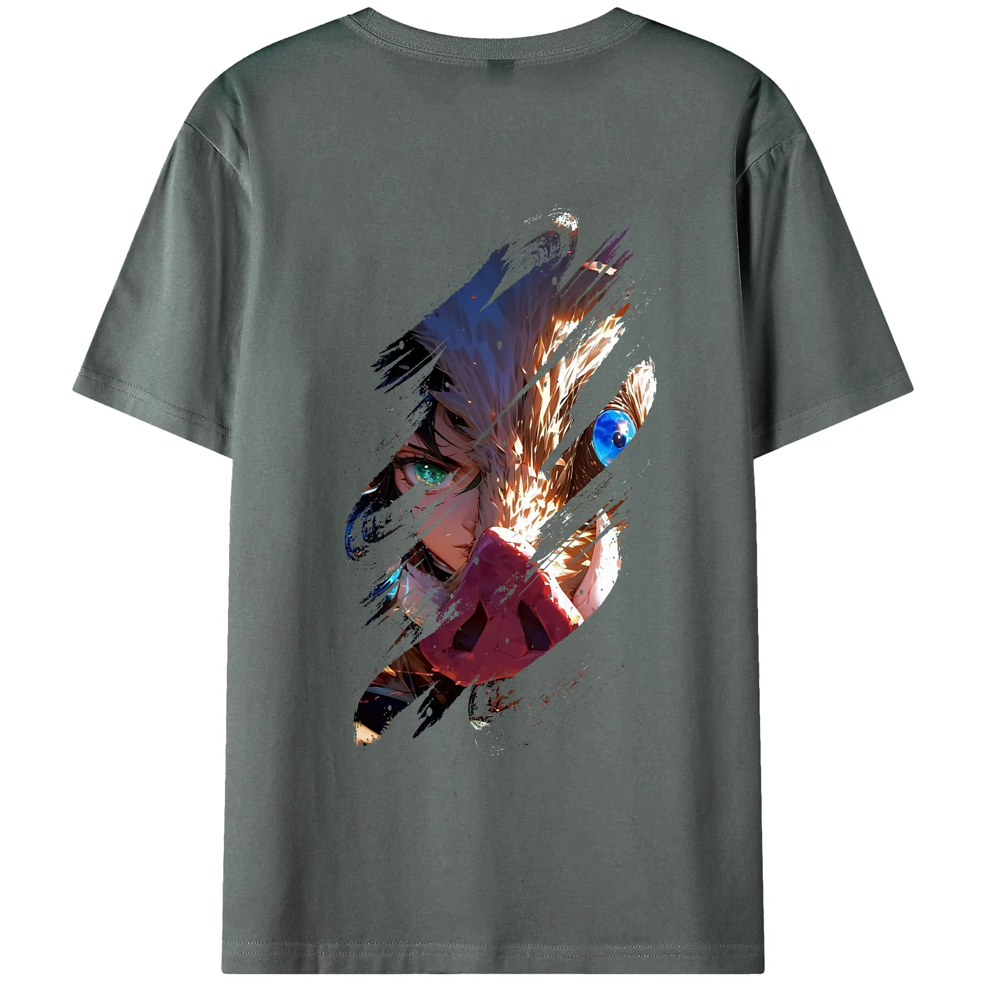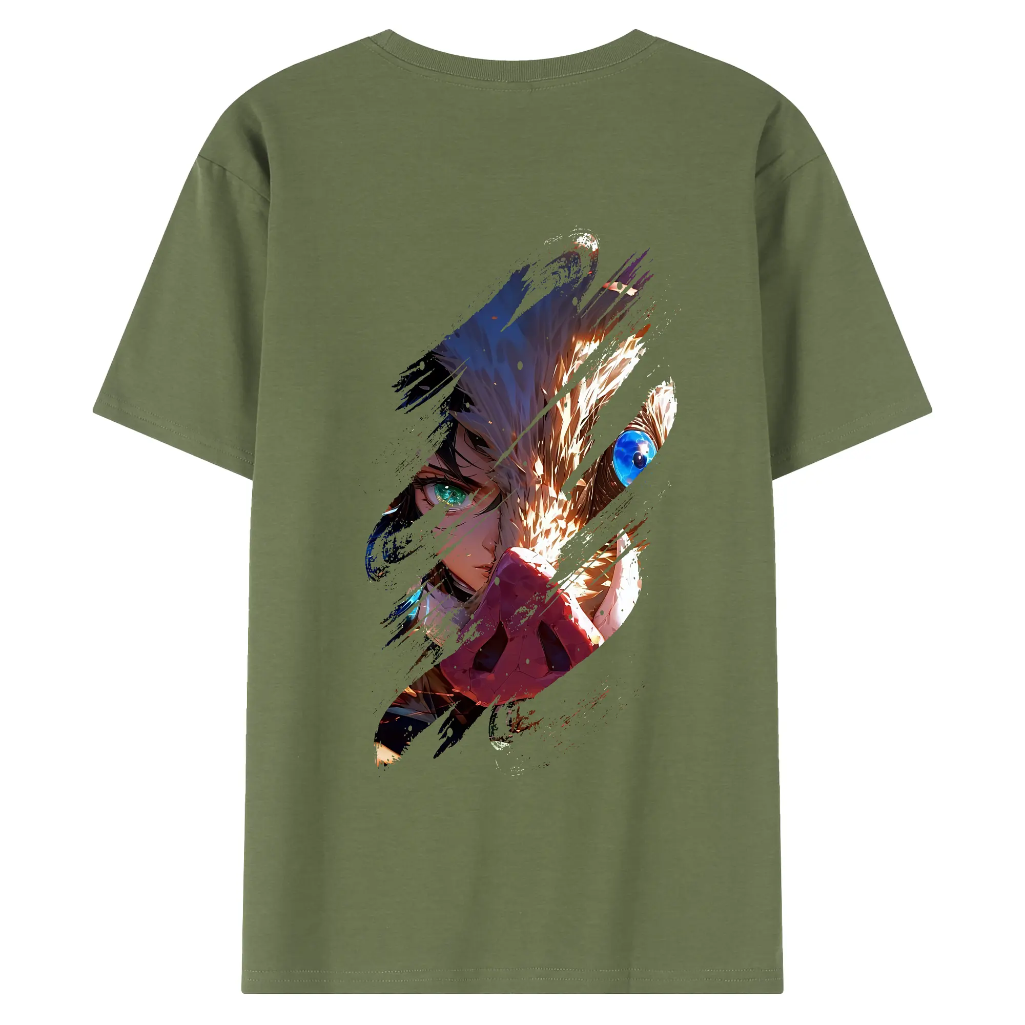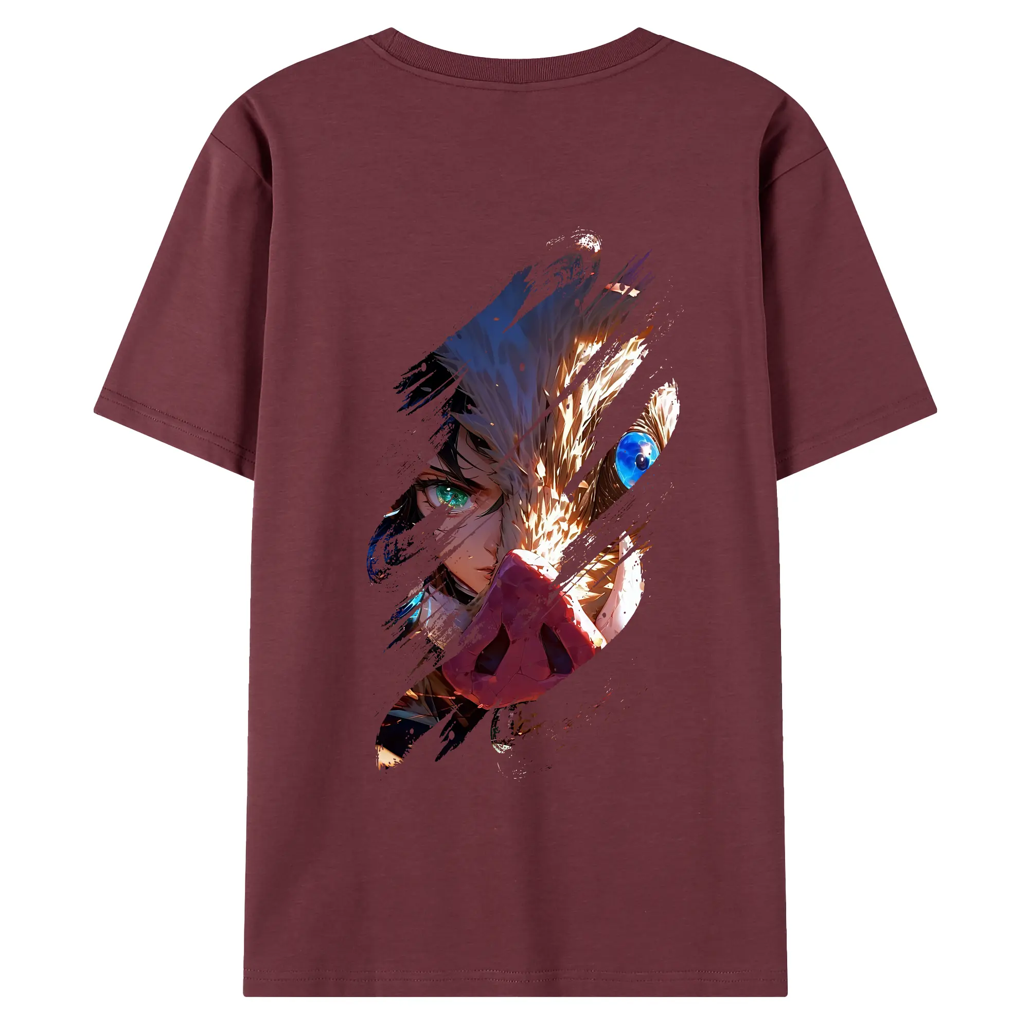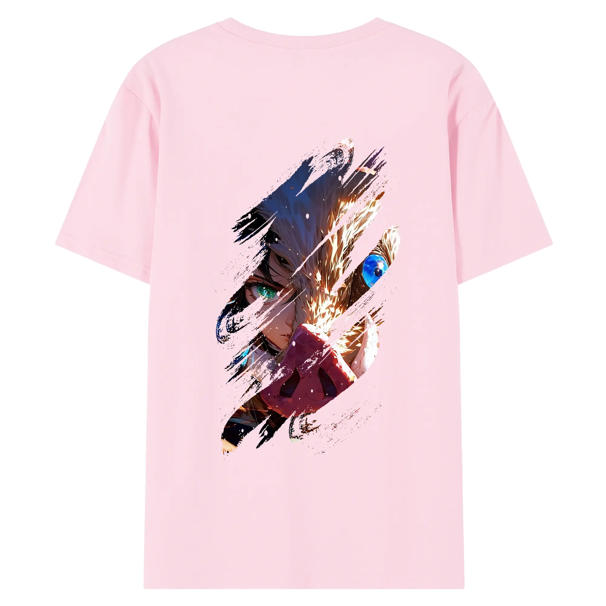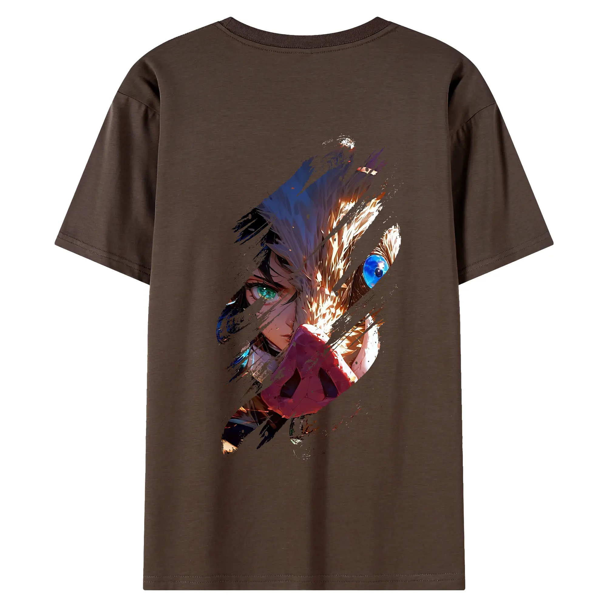 鬼滅の刃 グッズ,嘴平 伊之助 - 綿100% 半袖Tシャツ ・ フロントプリント ・ 快適 通気性 ・ 日常使い 散歩 スポーツ用