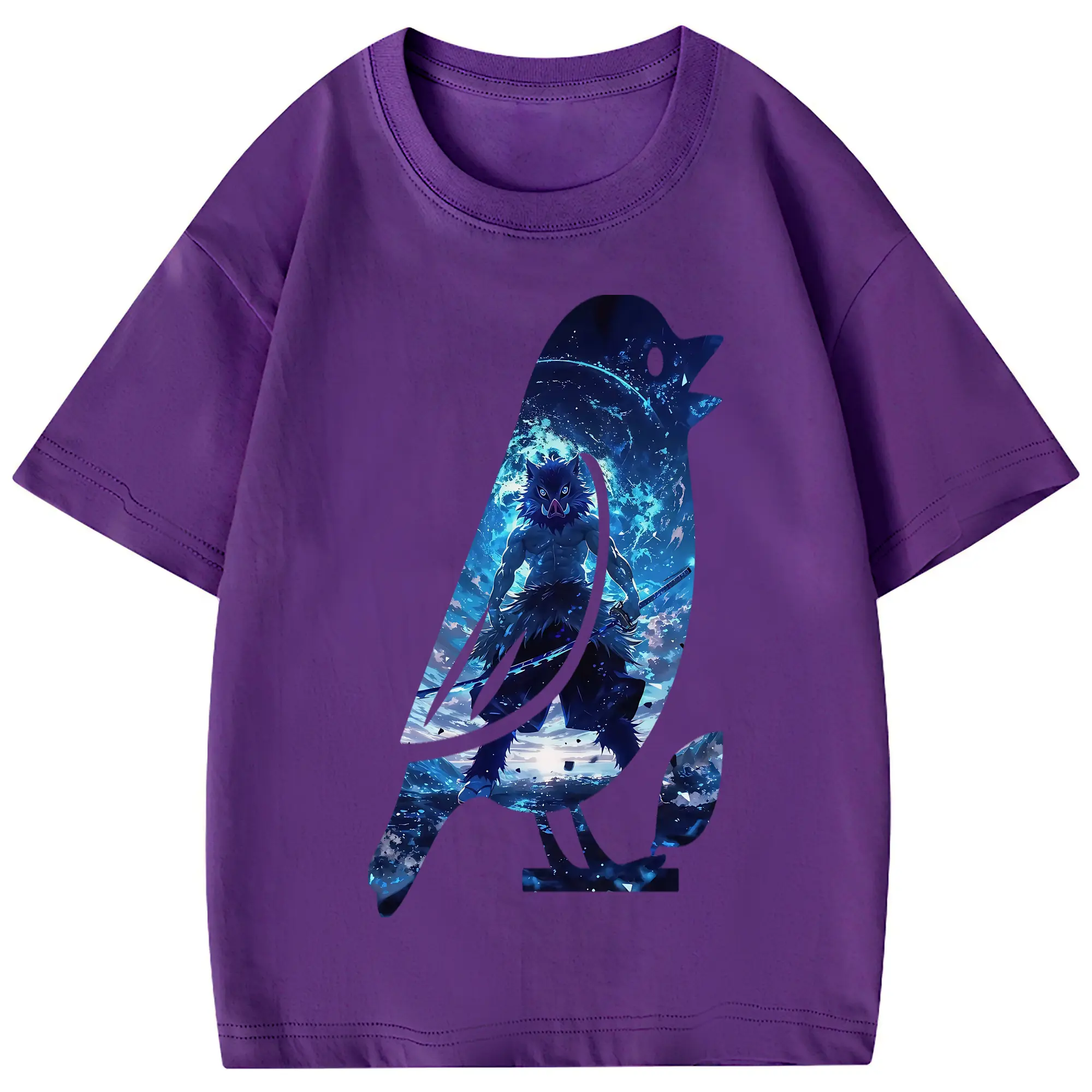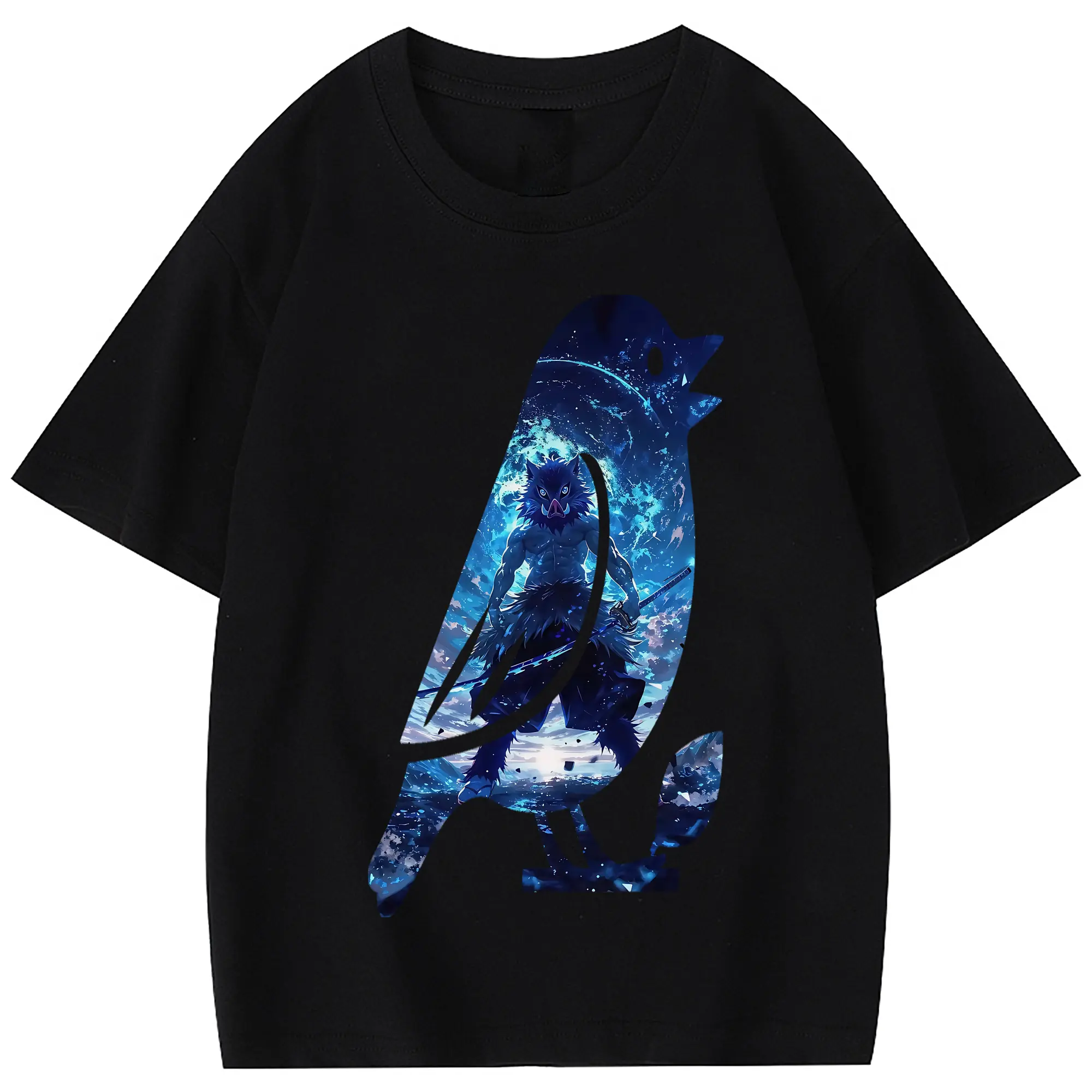 鬼滅の刃 グッズ,嘴平 伊之助 - 綿100% 半袖Tシャツ ・ フロントプリント ・ 快適 通気性 ・ 日常使い 散歩 スポーツ用