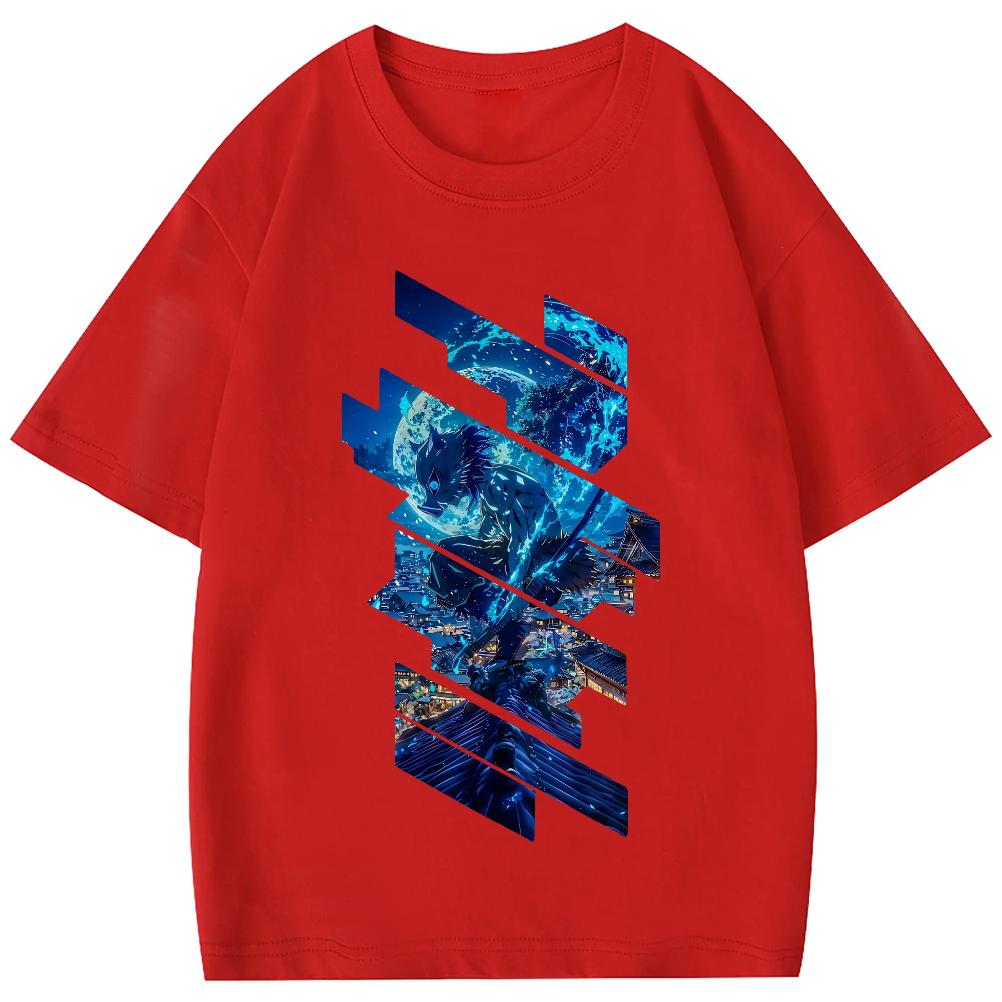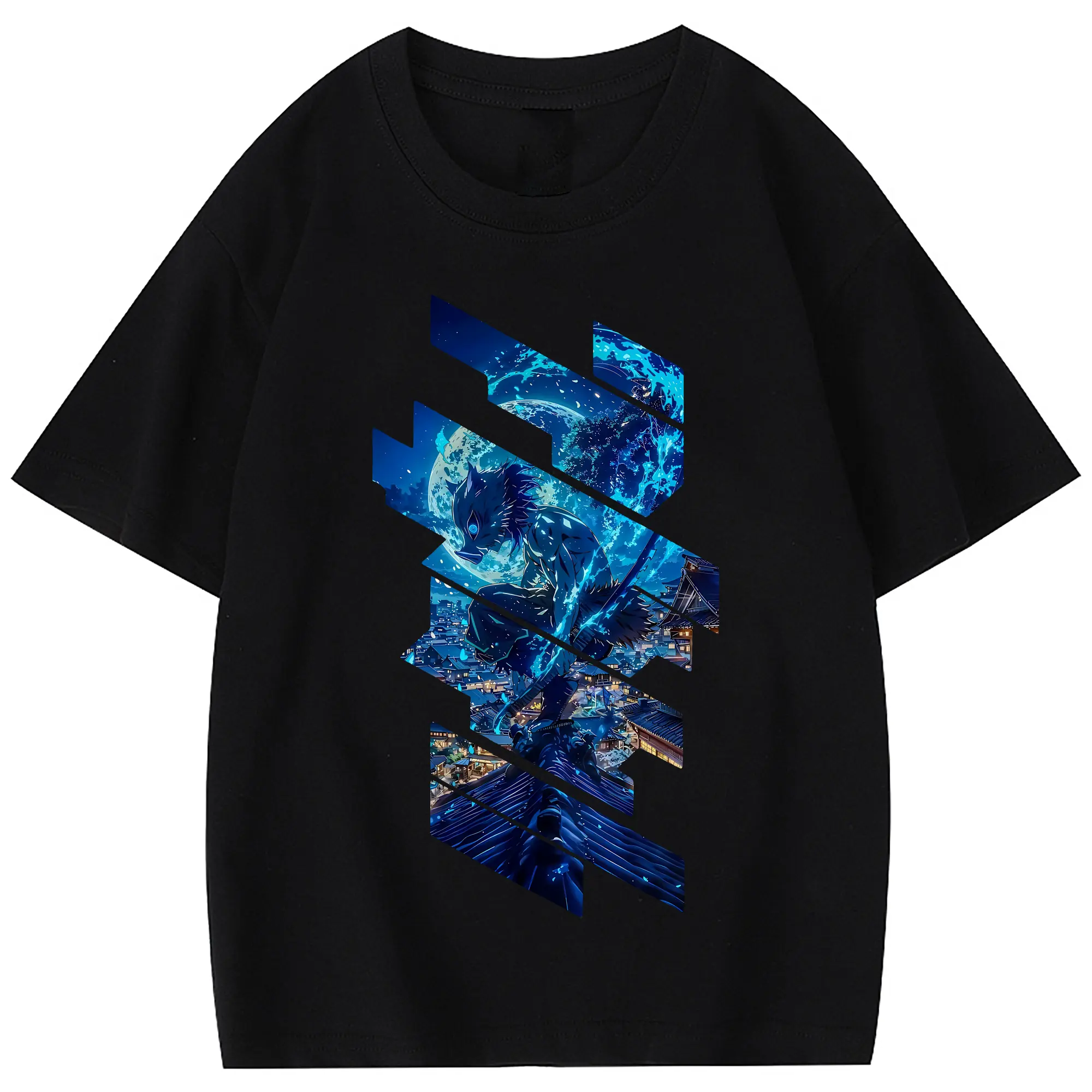 鬼滅の刃 グッズ,嘴平 伊之助 - 綿100% 半袖Tシャツ ・ フロントプリント ・ 快適 通気性 ・ 日常使い 散歩 スポーツ用