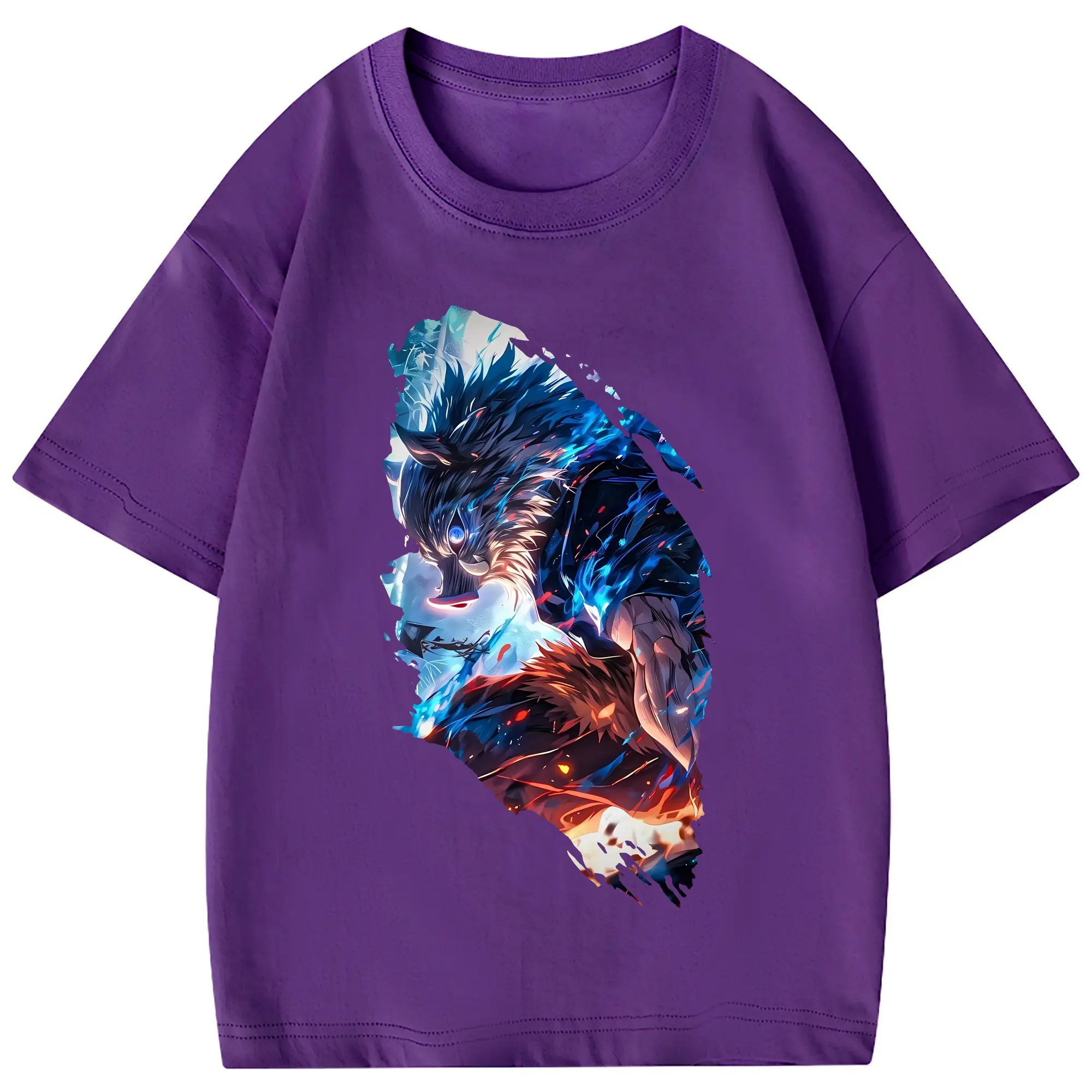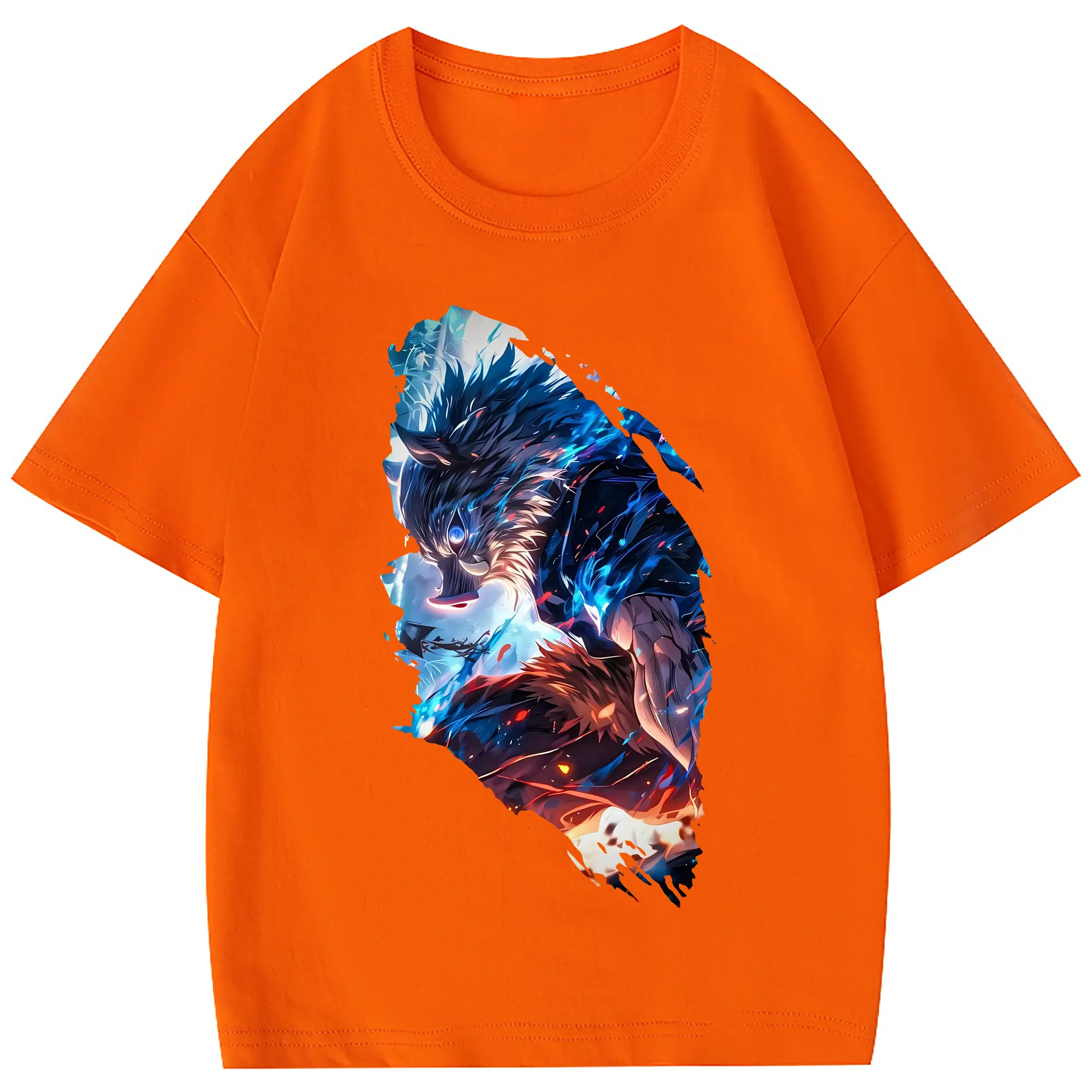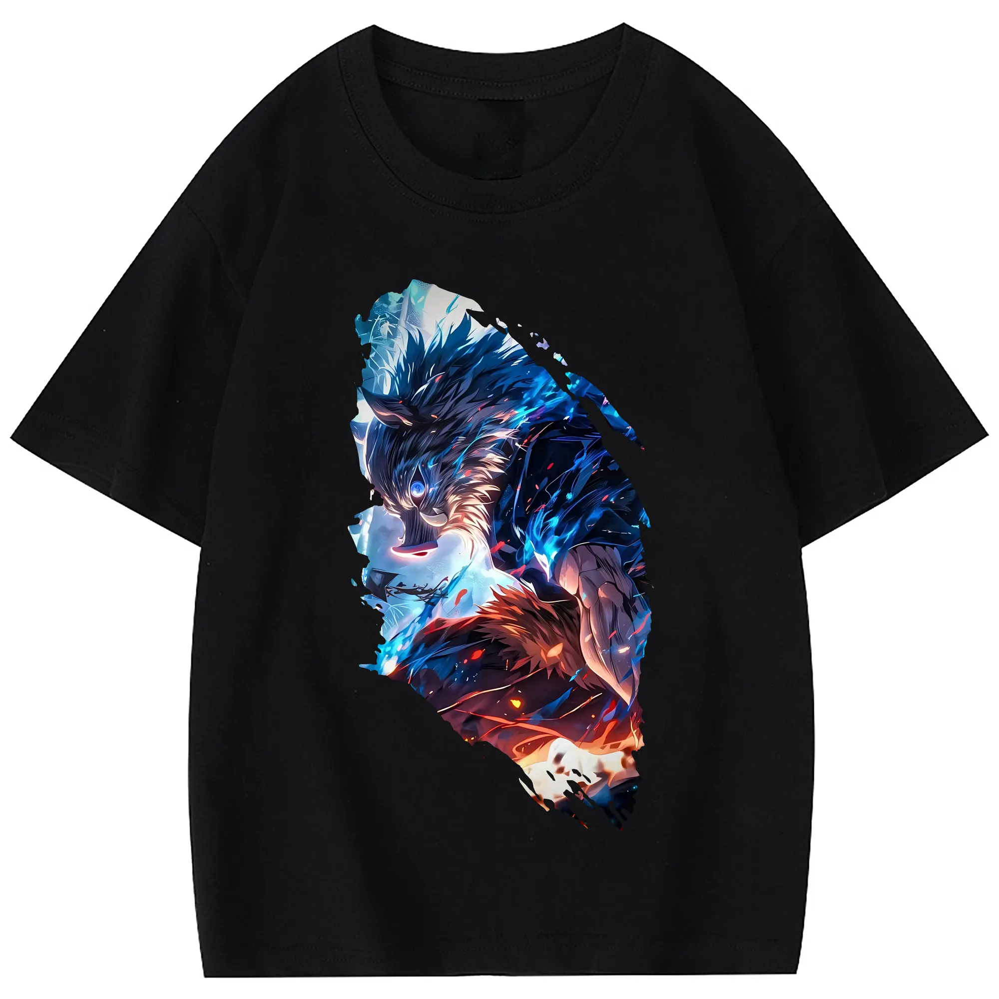 鬼滅の刃 グッズ,嘴平 伊之助 - 綿100% 半袖Tシャツ ・ フロントプリント ・ 快適 通気性 ・ 日常使い 散歩 スポーツ用