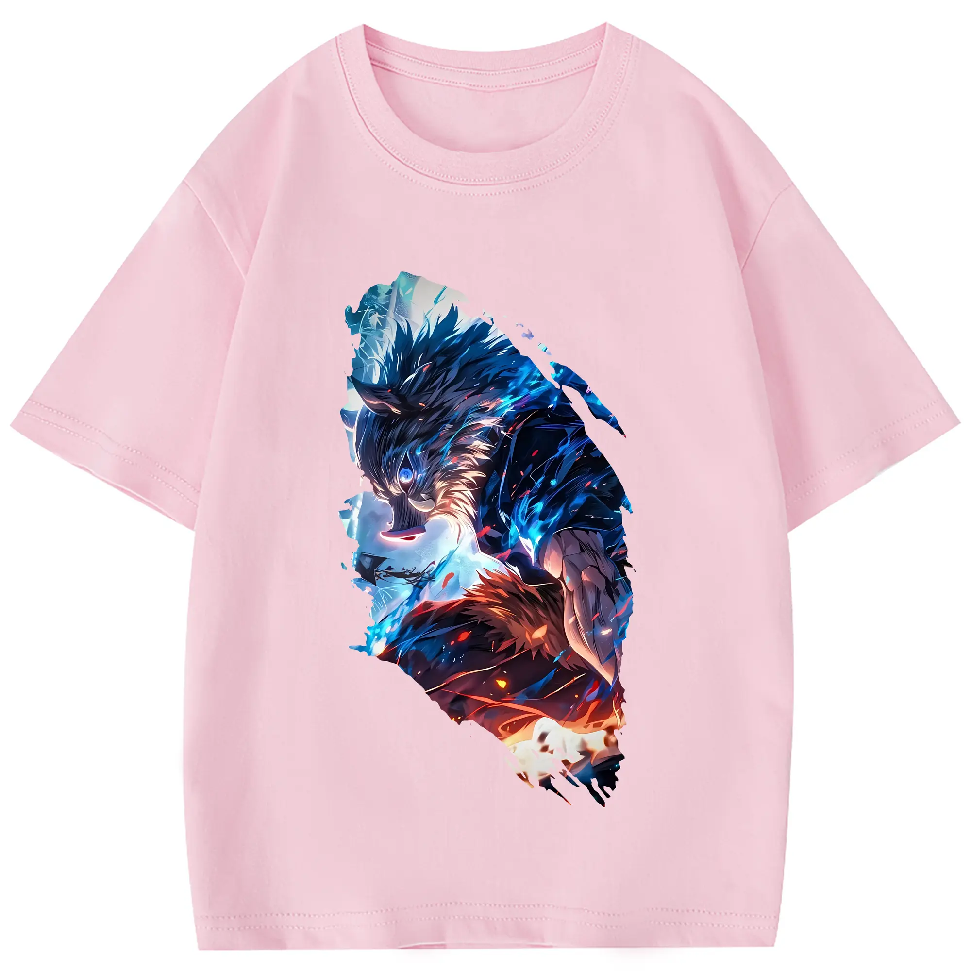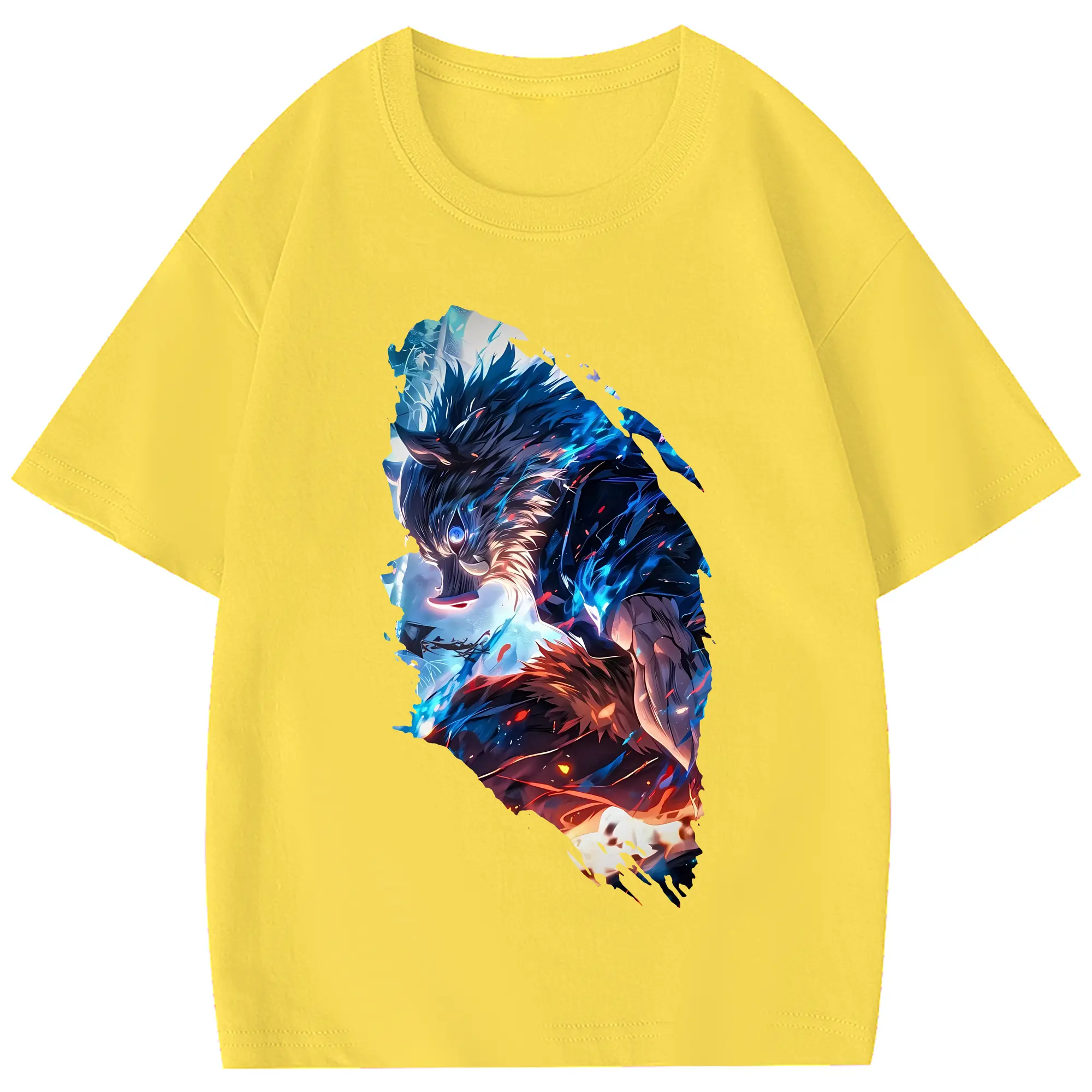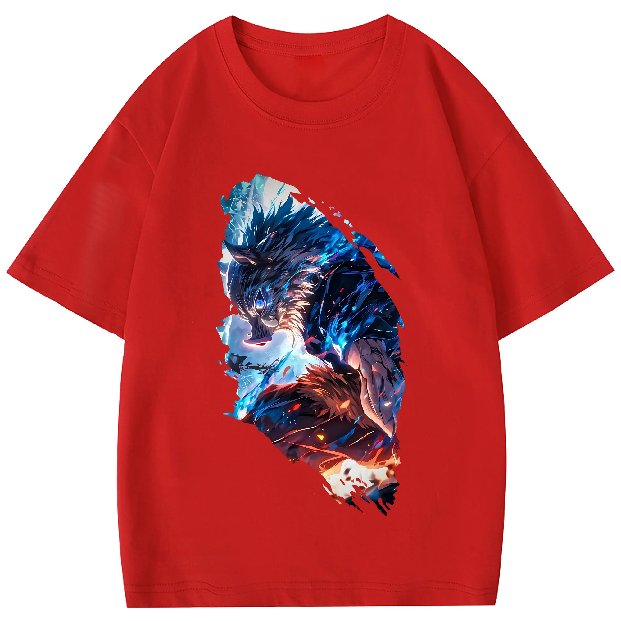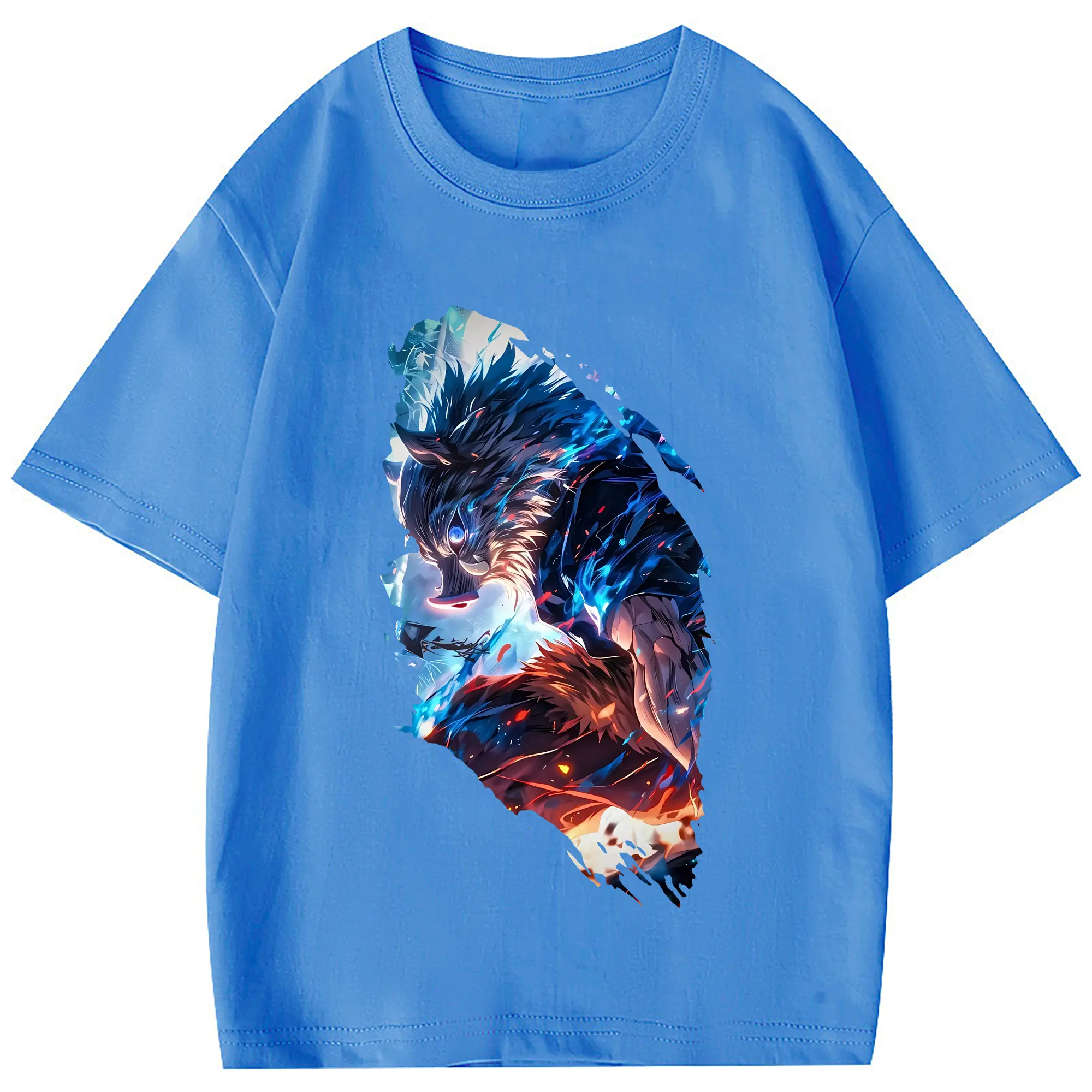 鬼滅の刃 グッズ,嘴平 伊之助 - 綿100% 半袖Tシャツ ・ フロントプリント ・ 快適 通気性 ・ 日常使い 散歩 スポーツ用