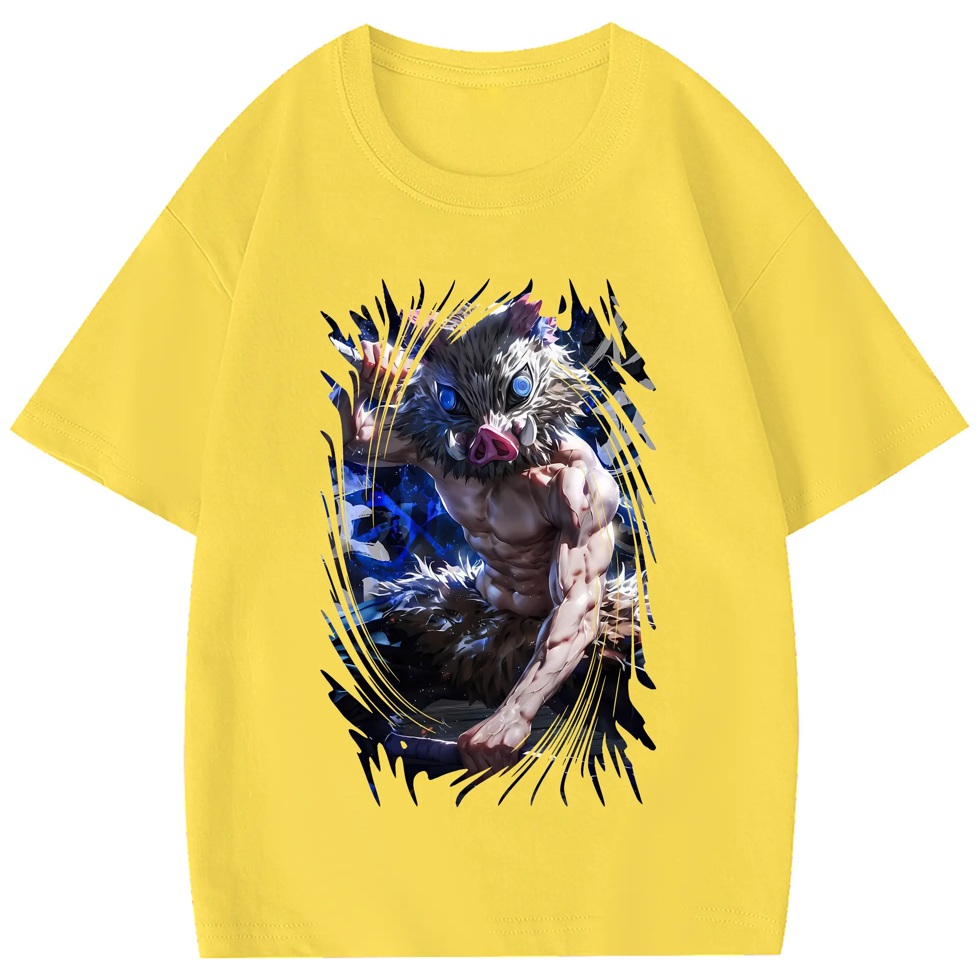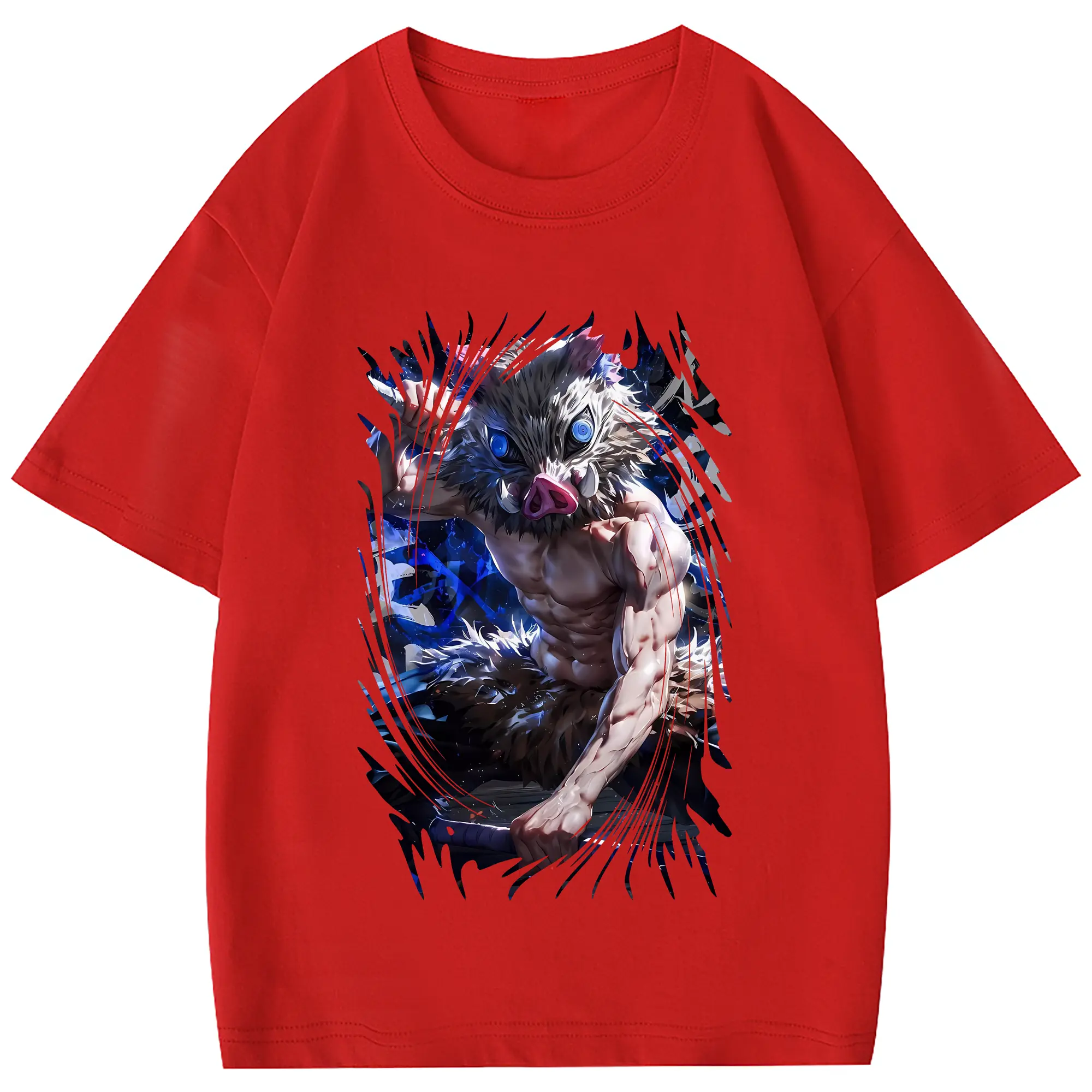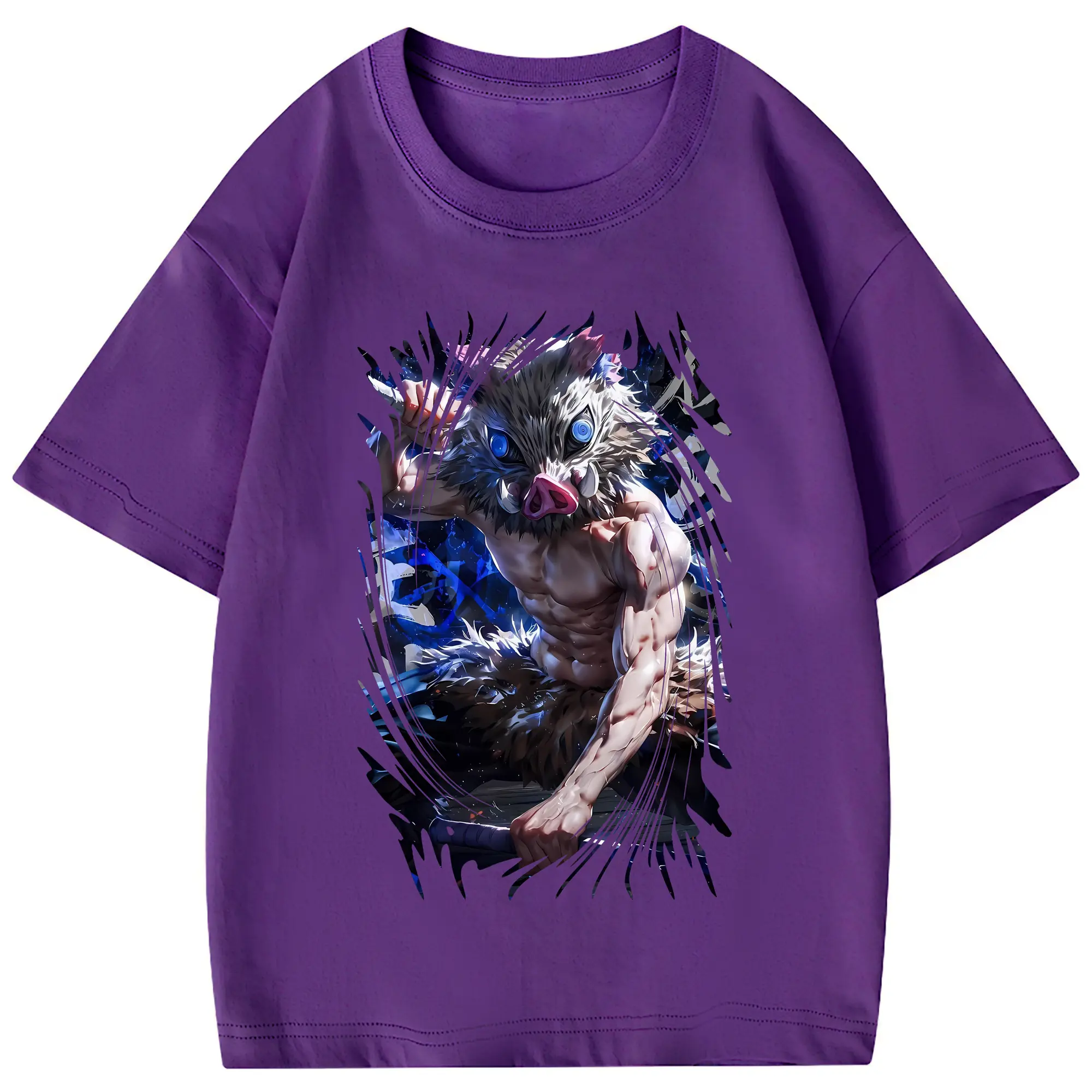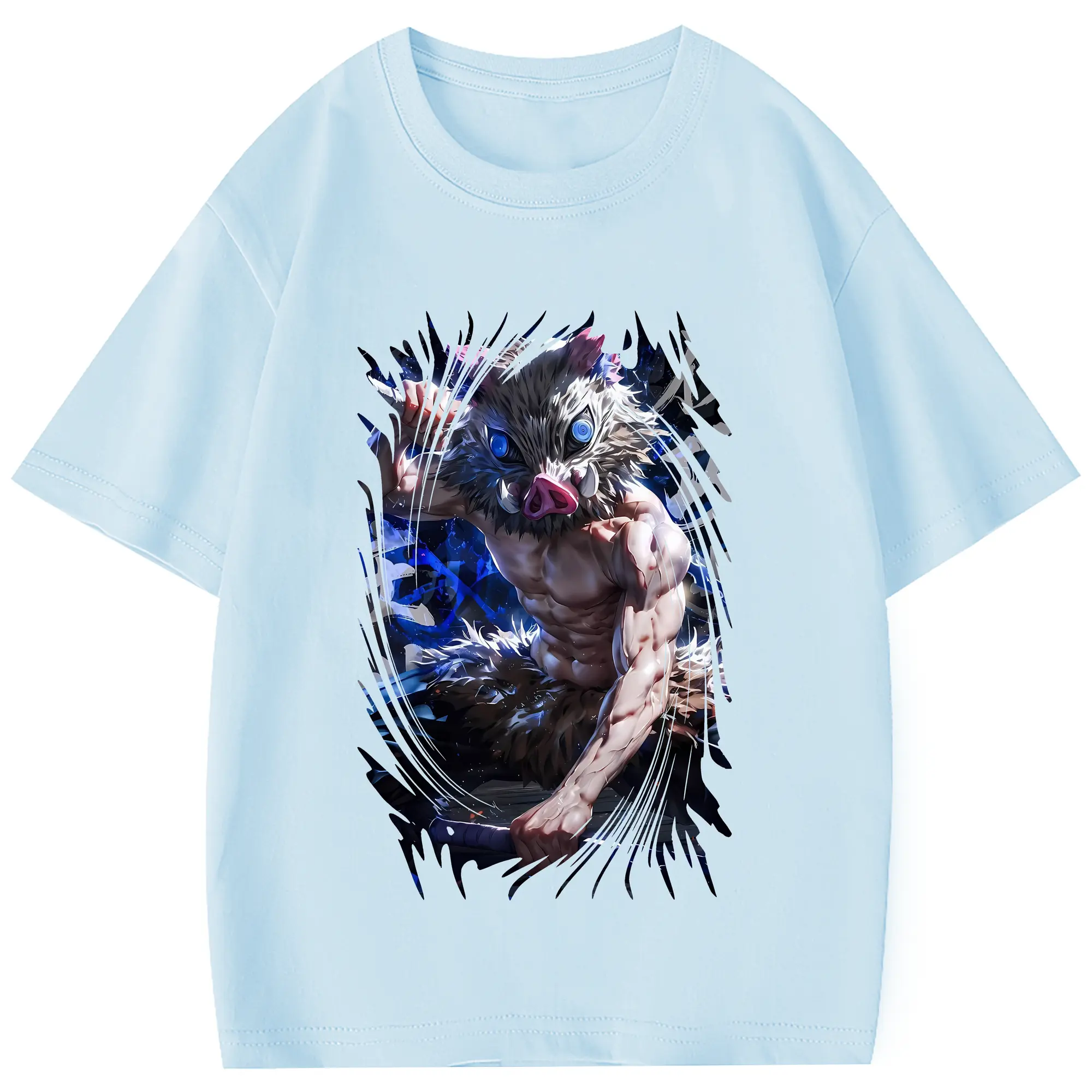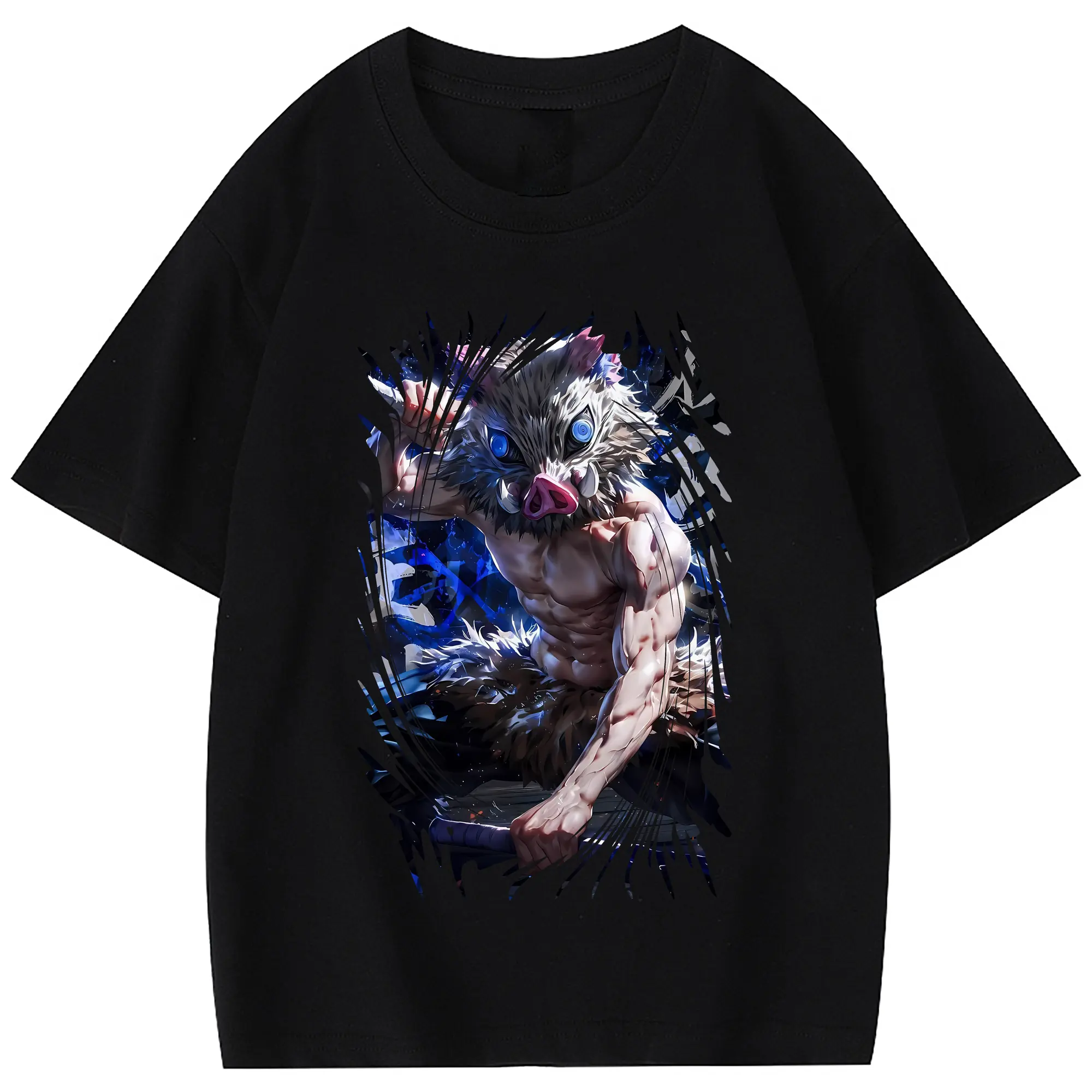 鬼滅の刃 グッズ,嘴平 伊之助 - 綿100% 半袖Tシャツ ・ フロントプリント ・ 快適 通気性 ・ 日常使い 散歩 スポーツ用