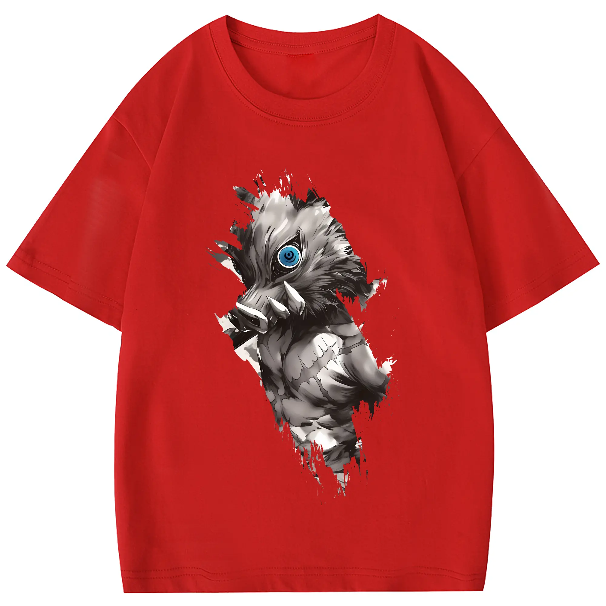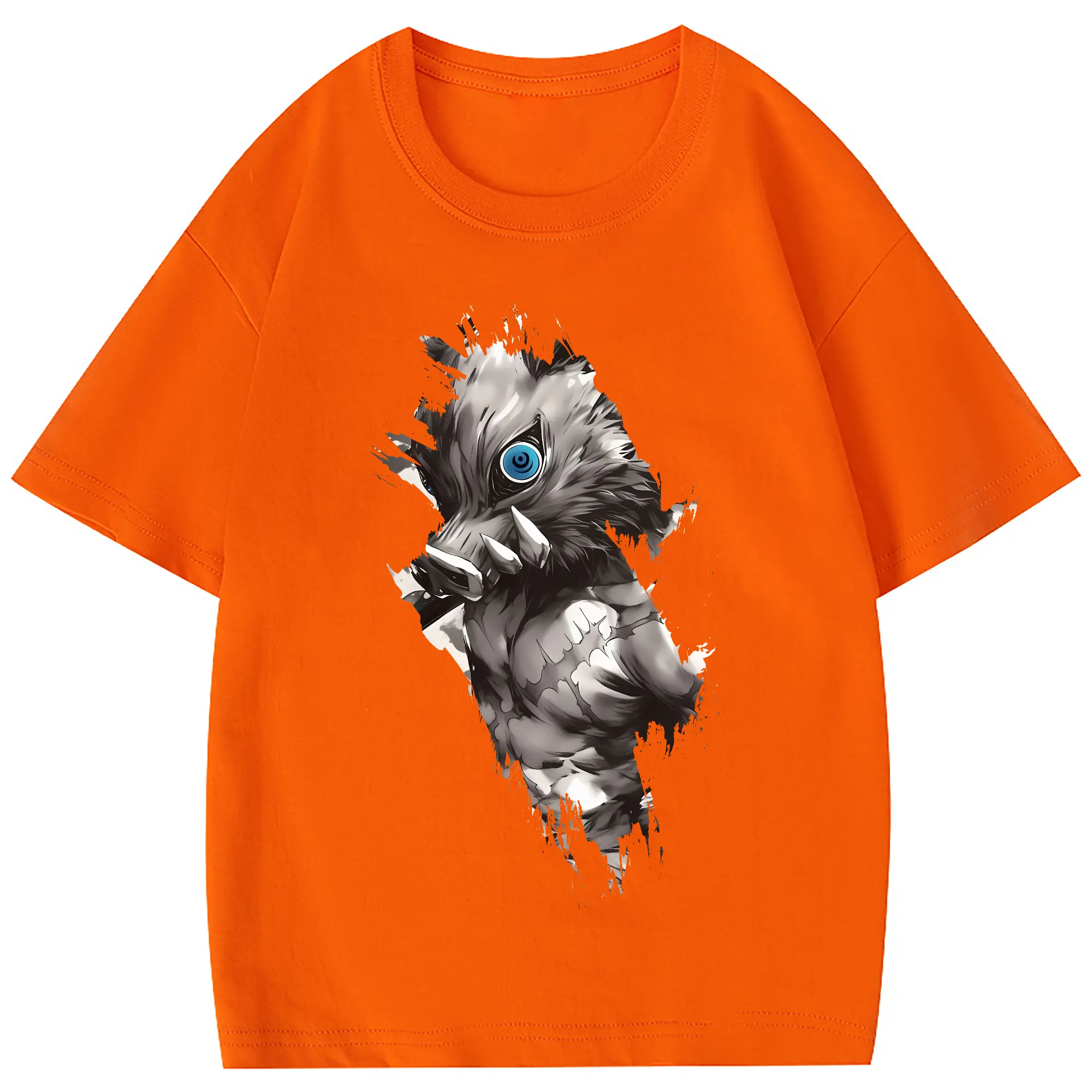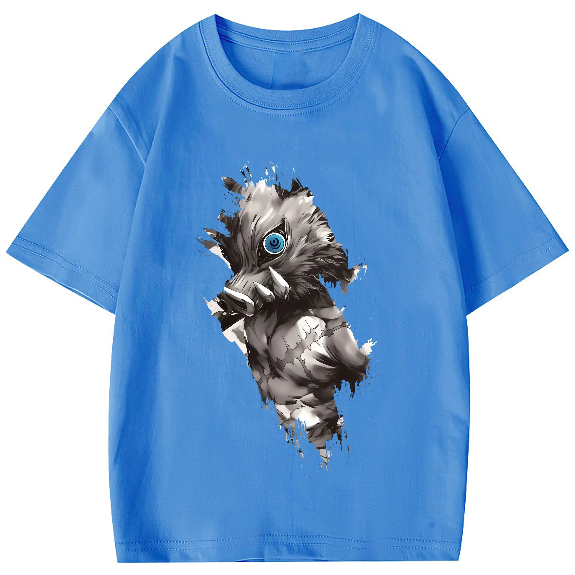 鬼滅の刃 グッズ,嘴平 伊之助 - 綿100% 半袖Tシャツ ・ フロントプリント ・ 快適 通気性 ・ 日常使い 散歩 スポーツ用