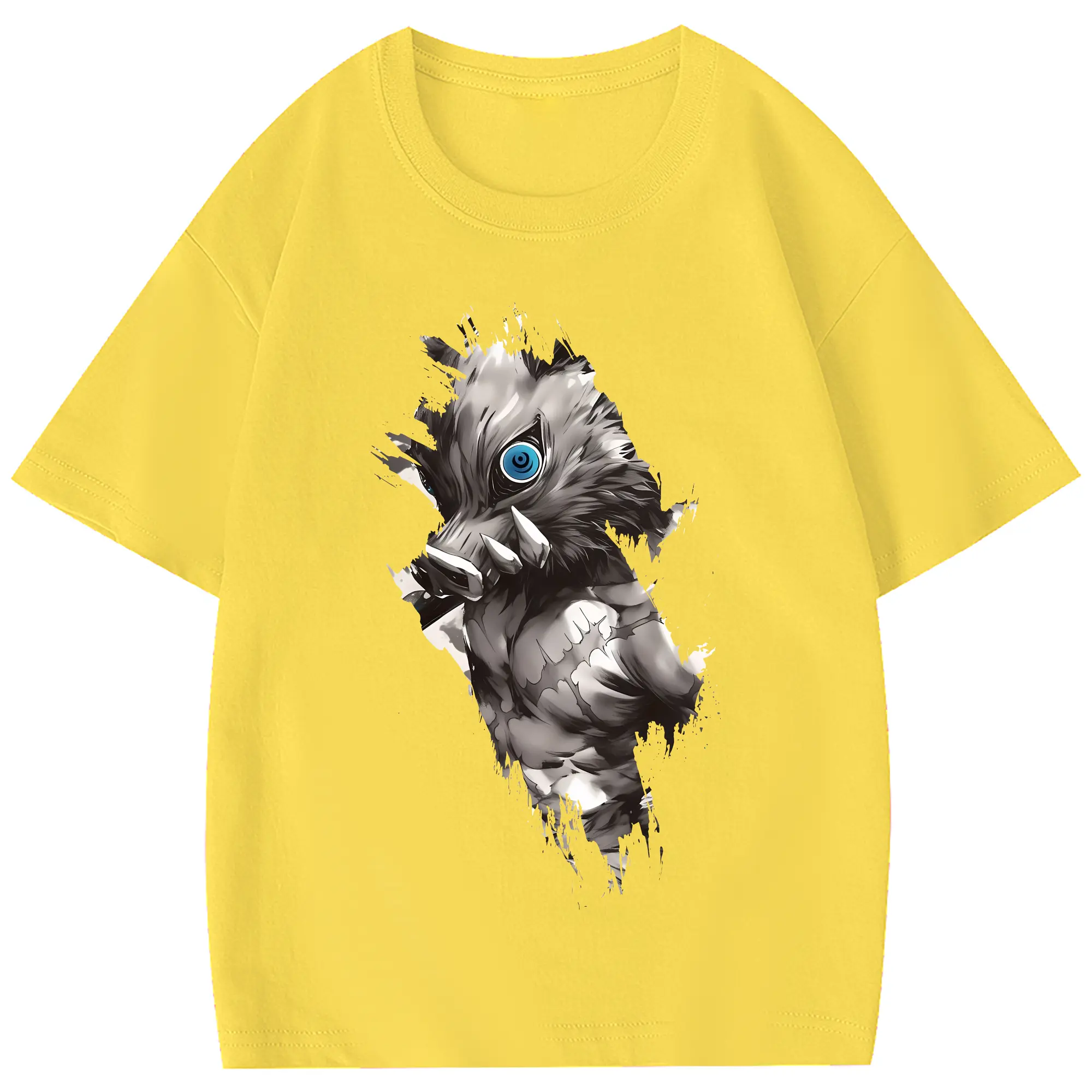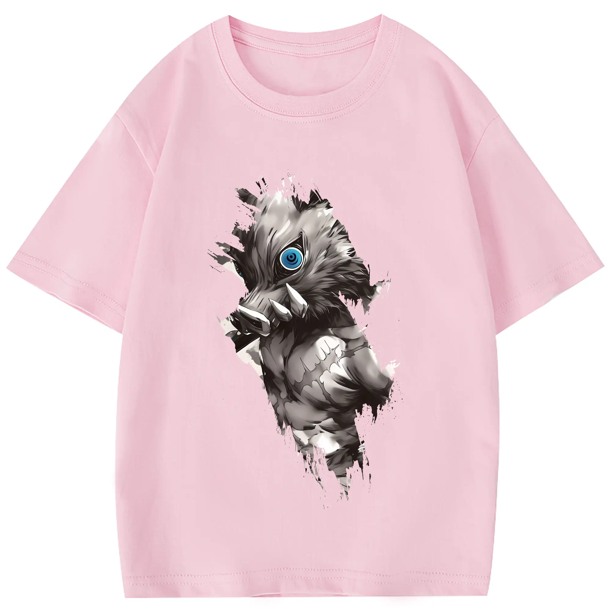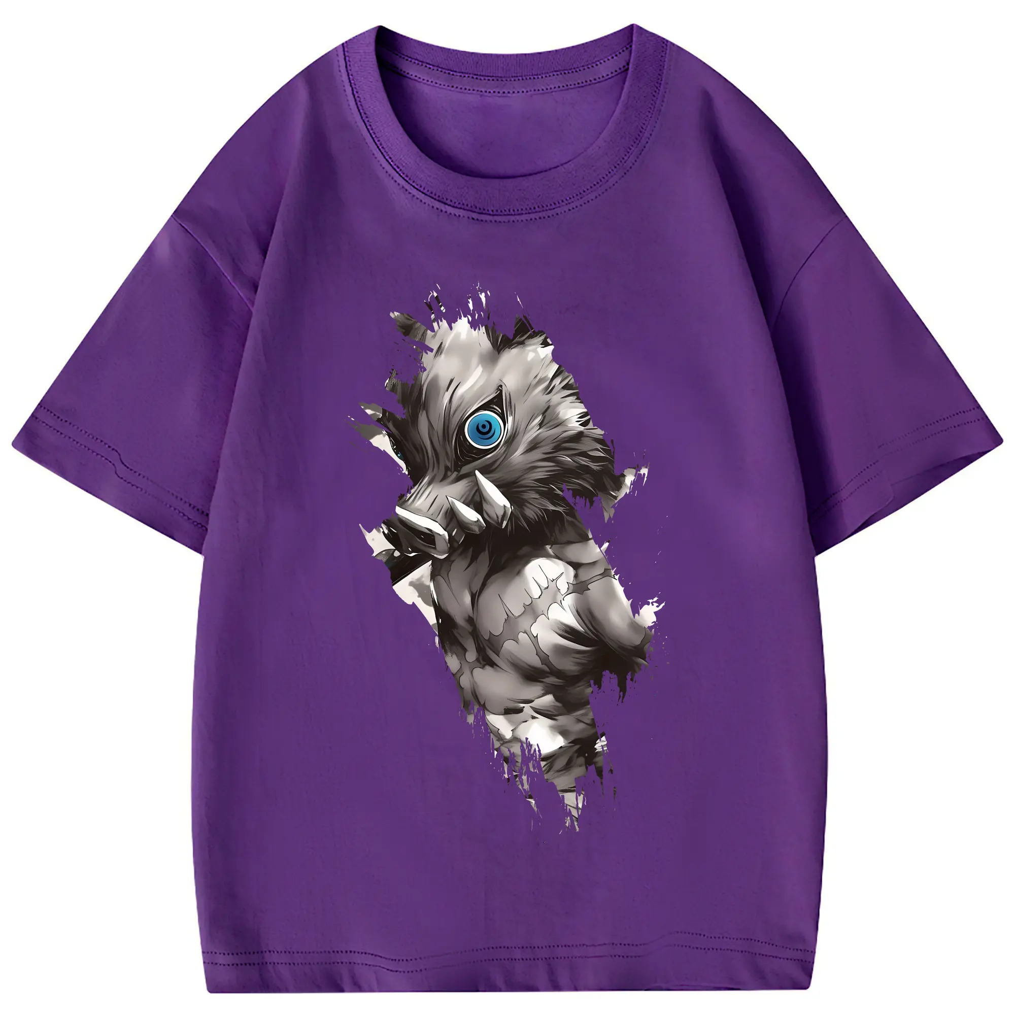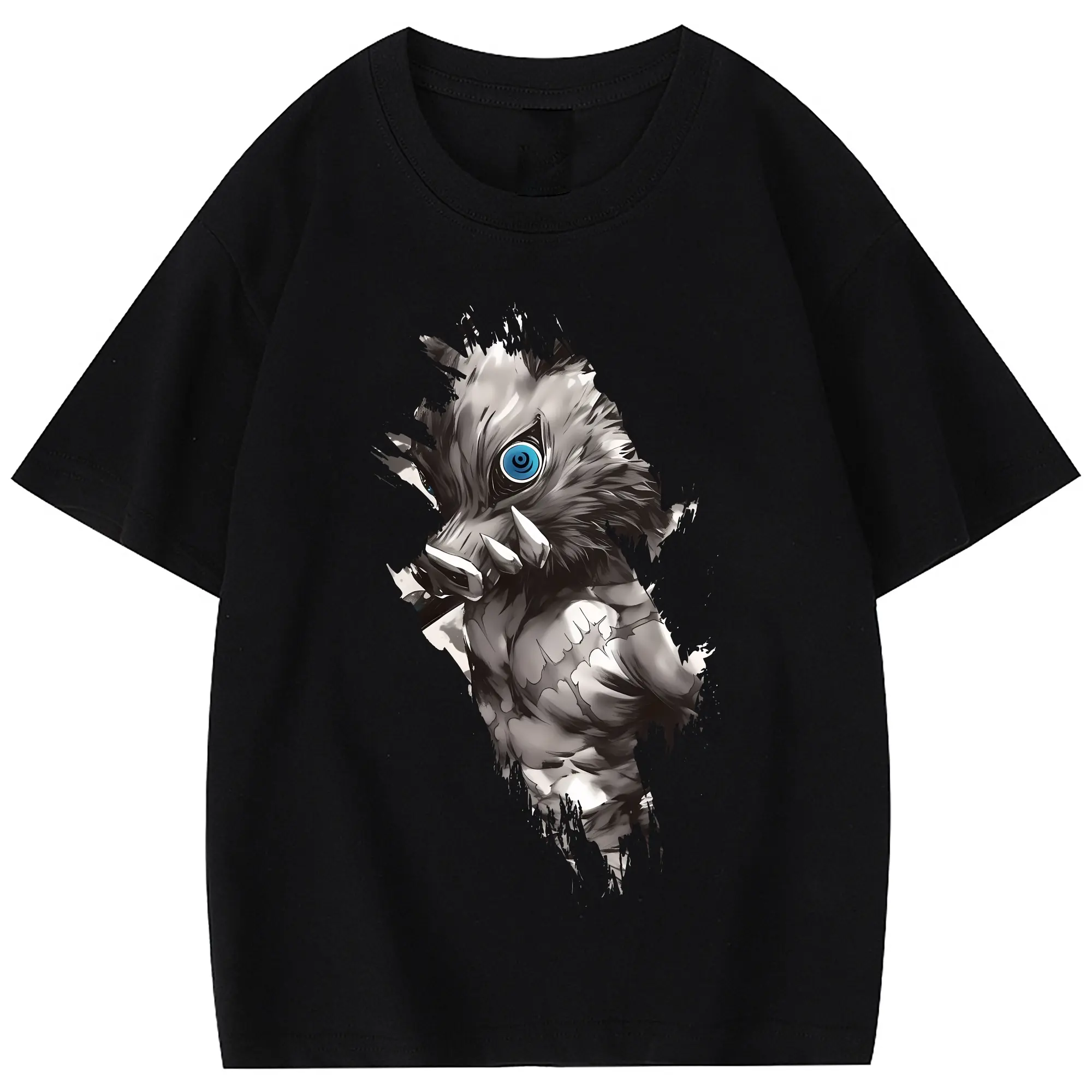 鬼滅の刃 グッズ,嘴平 伊之助 - 綿100% 半袖Tシャツ ・ フロントプリント ・ 快適 通気性 ・ 日常使い 散歩 スポーツ用