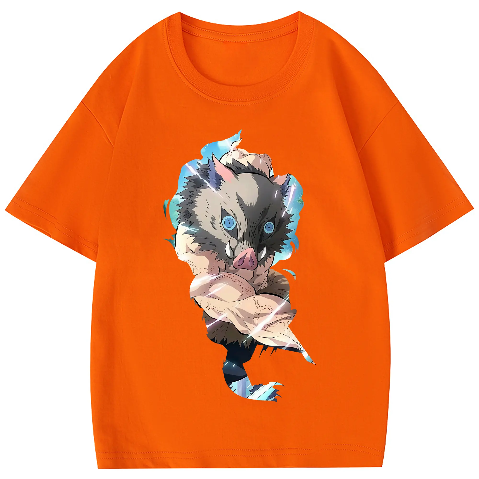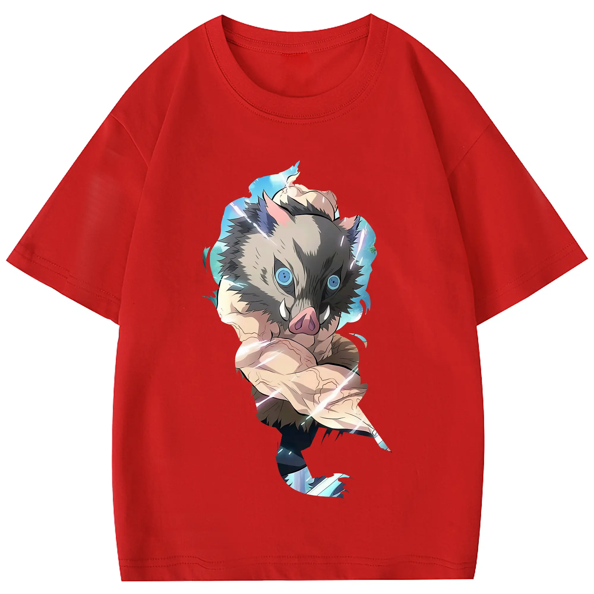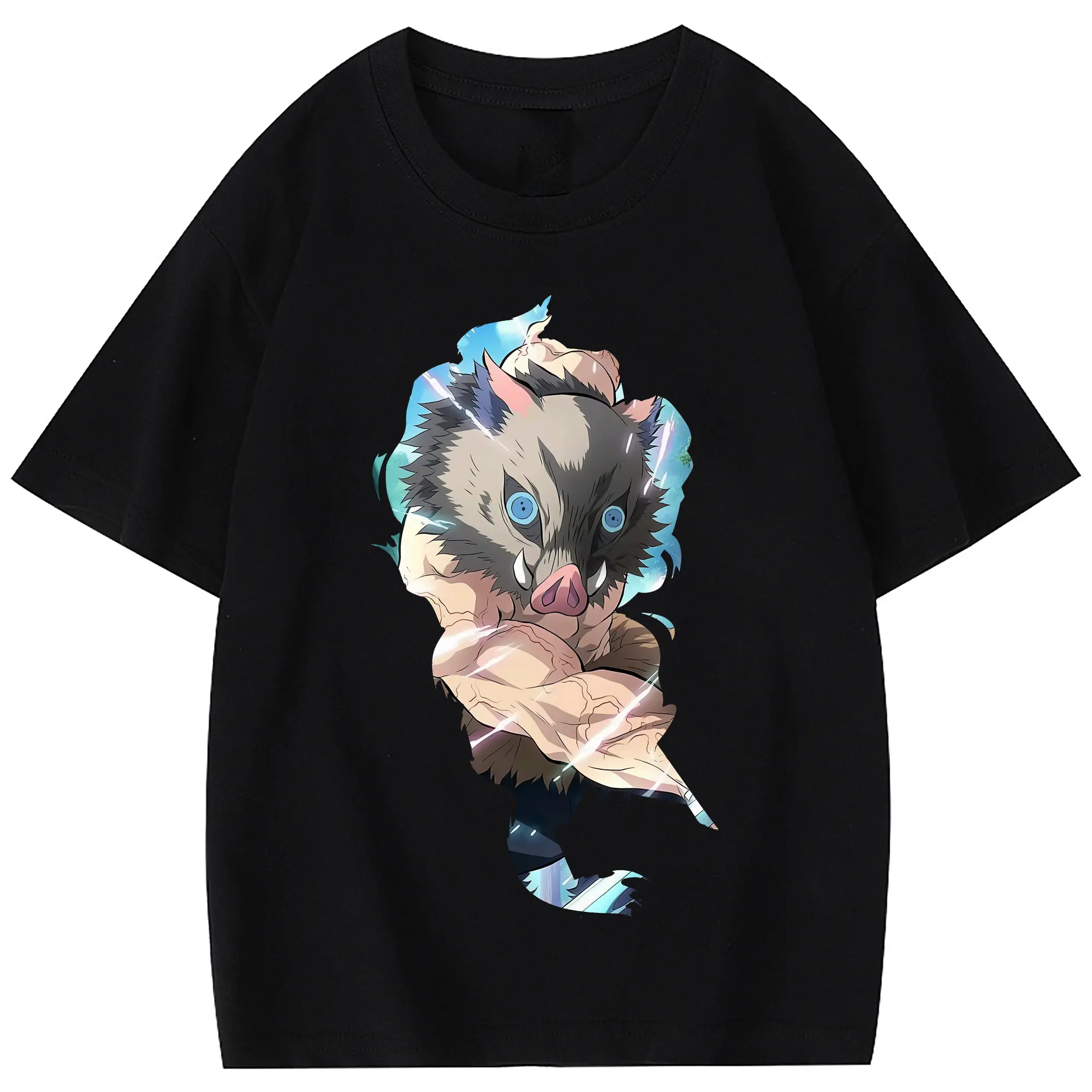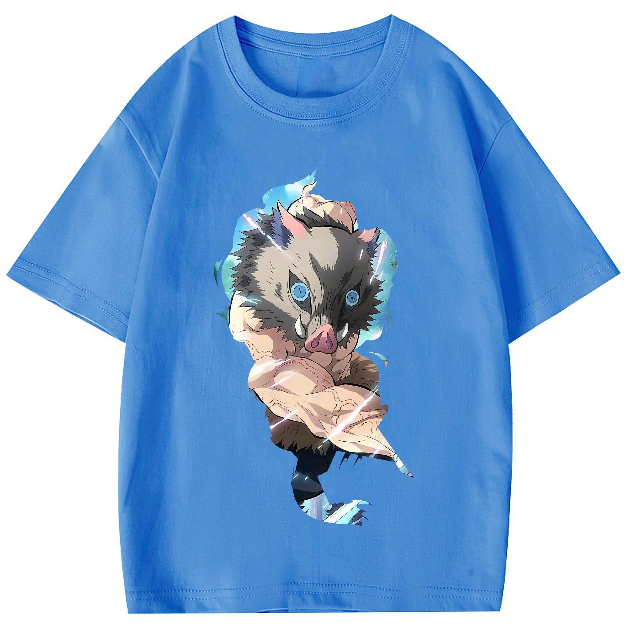 鬼滅の刃 グッズ,嘴平 伊之助 - 綿100% 半袖Tシャツ ・ フロントプリント ・ 快適 通気性 ・ 日常使い 散歩 スポーツ用