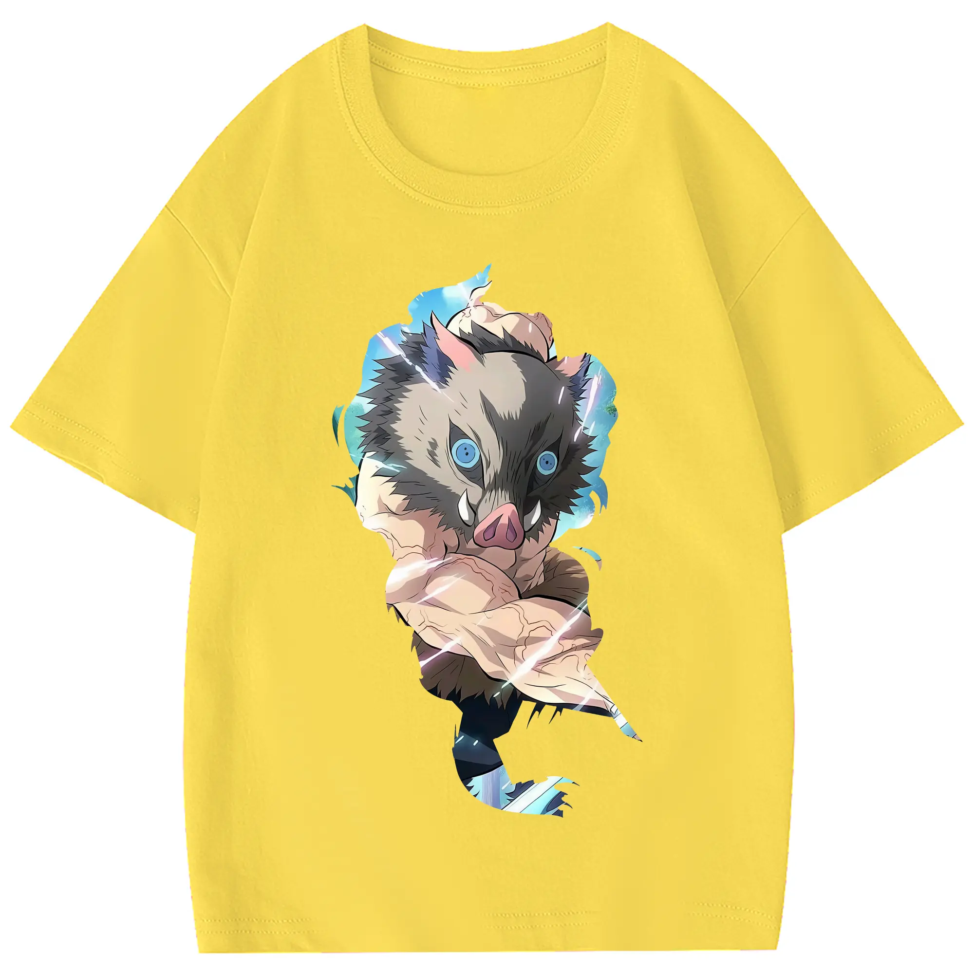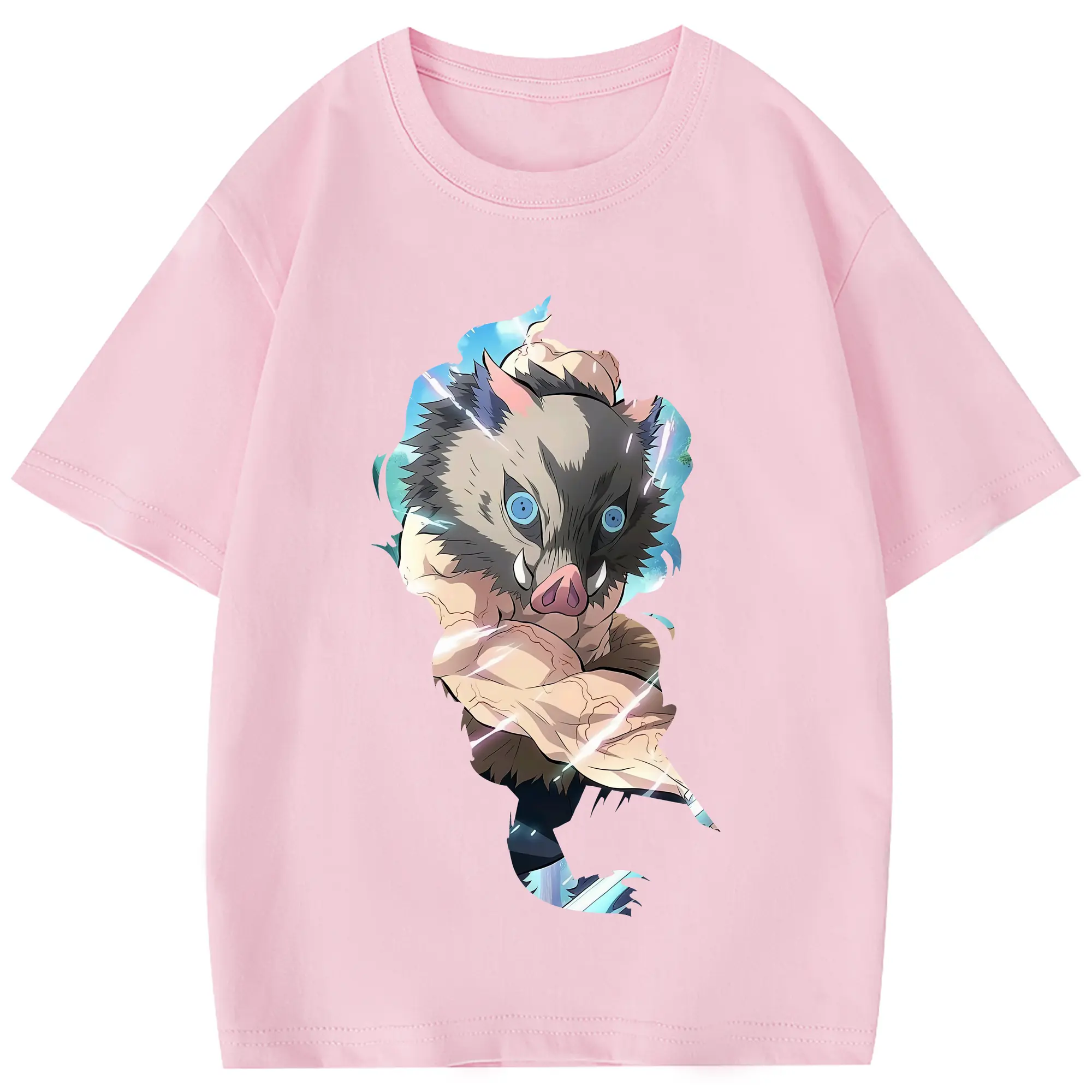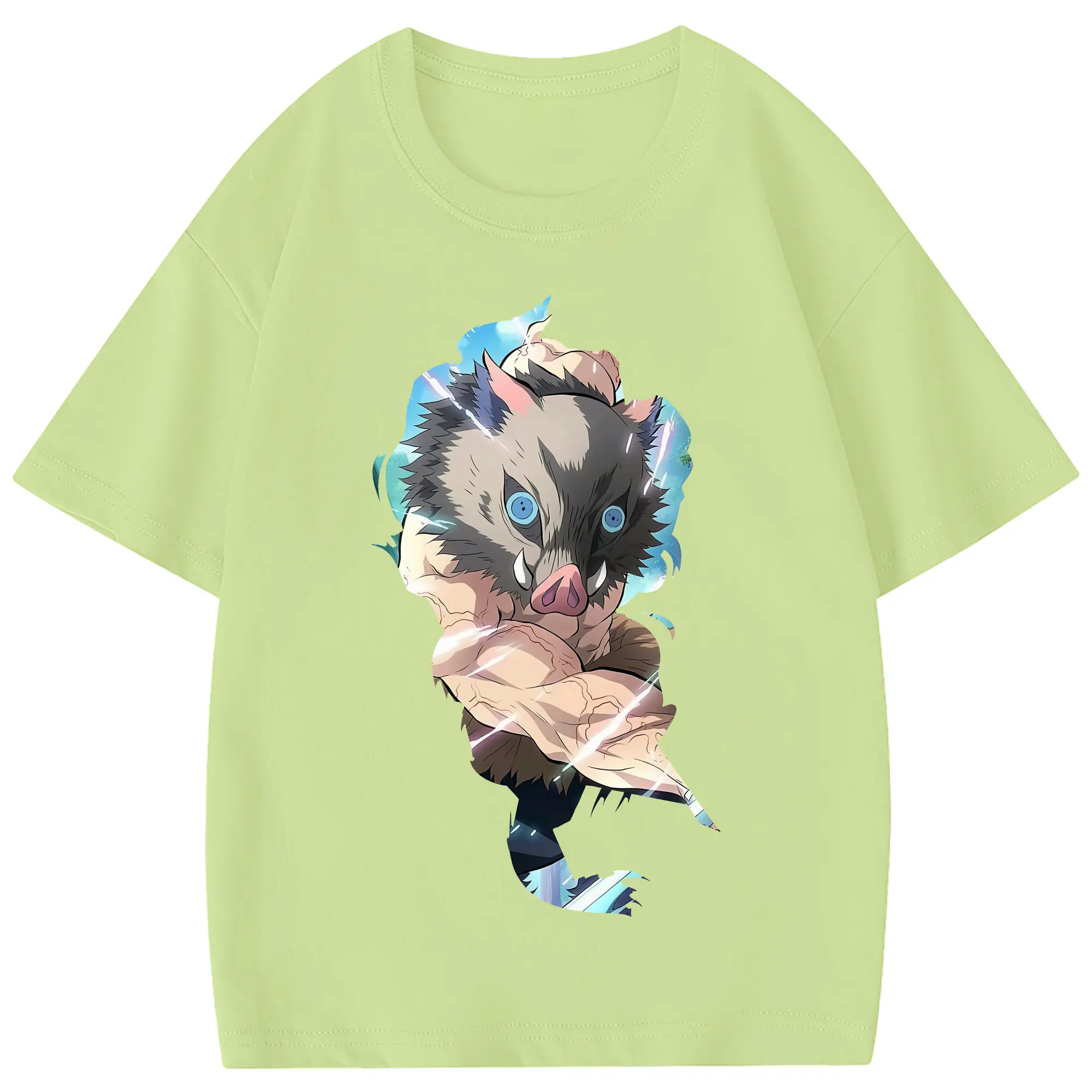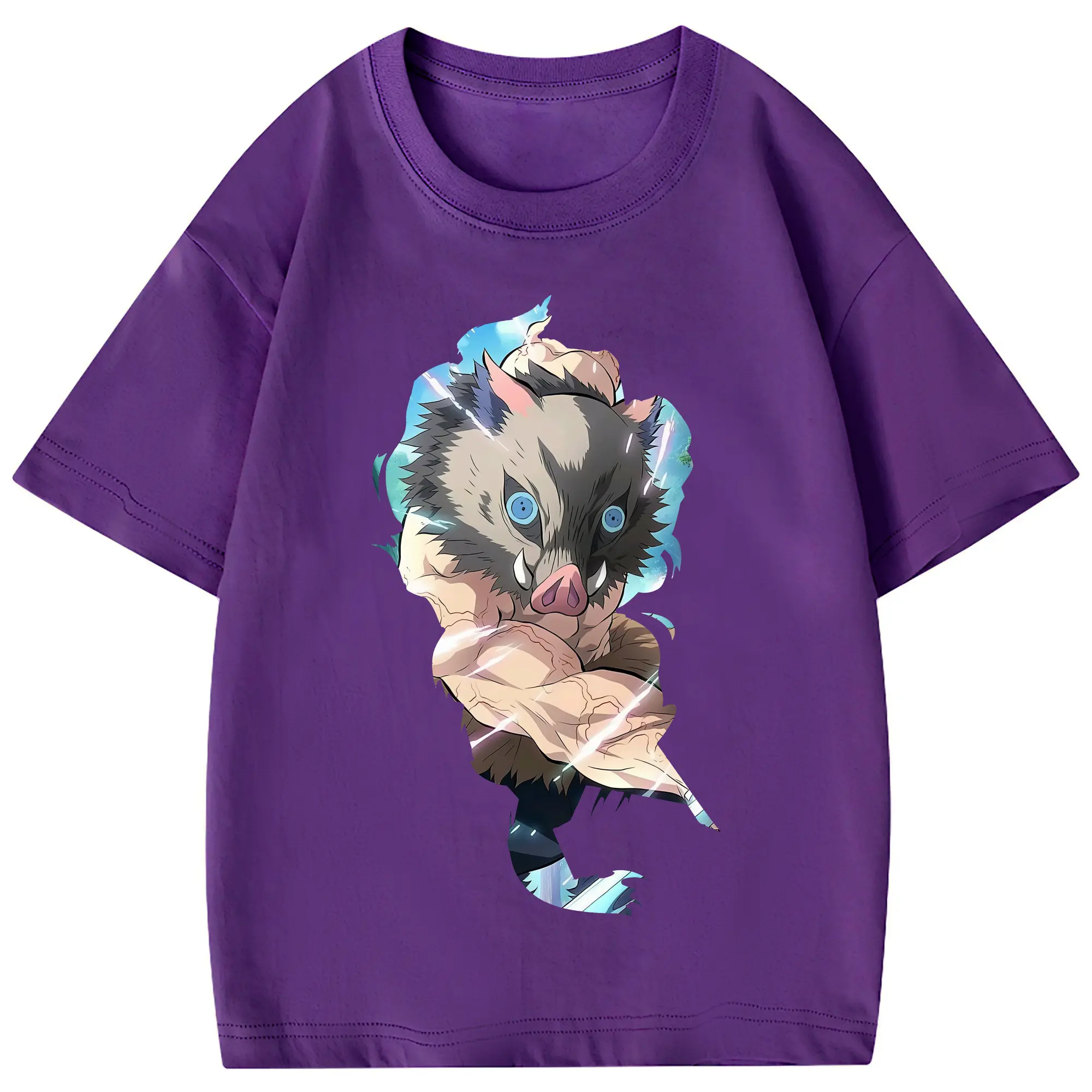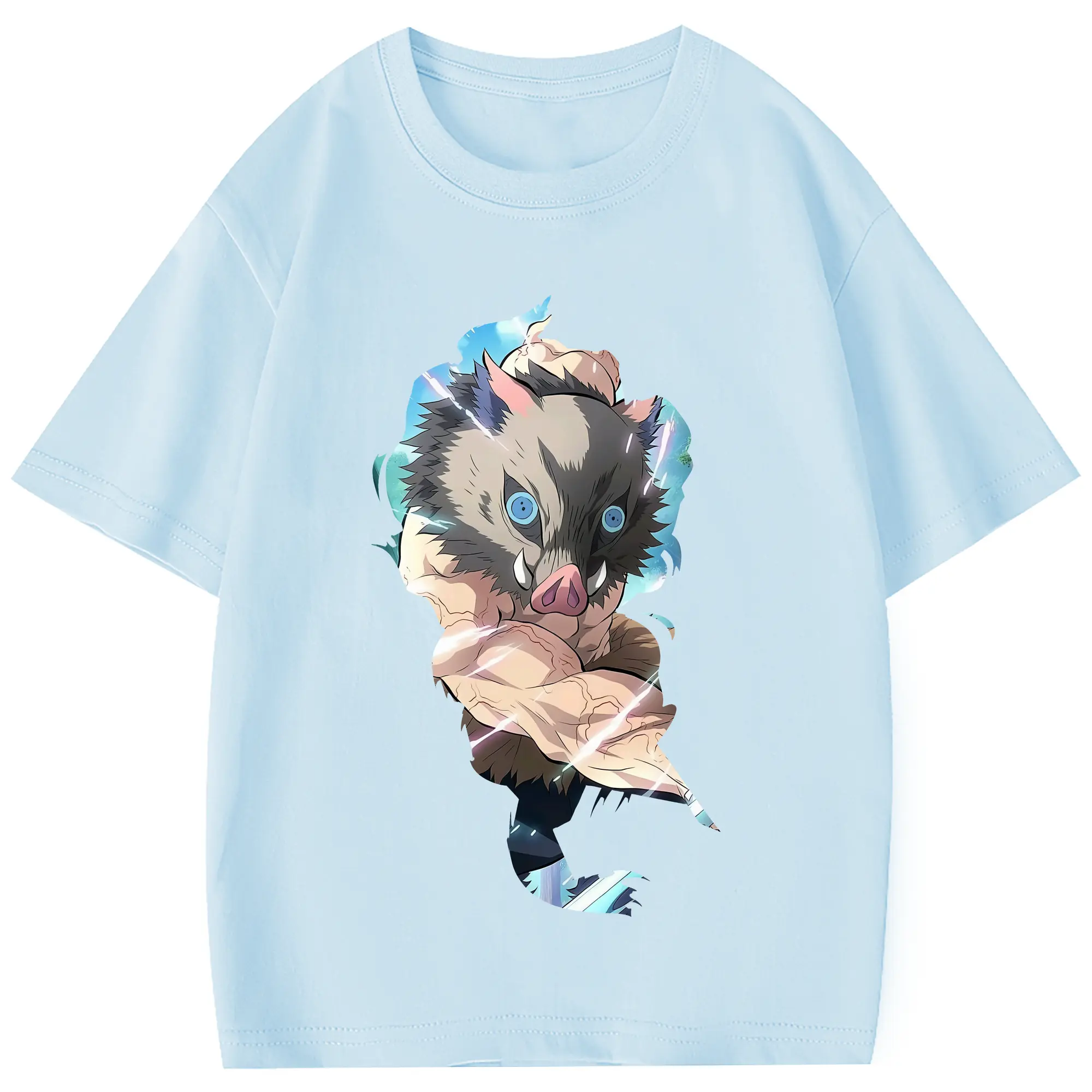 鬼滅の刃 グッズ,嘴平 伊之助 - 綿100% 半袖Tシャツ ・ フロントプリント ・ 快適 通気性 ・ 日常使い 散歩 スポーツ用