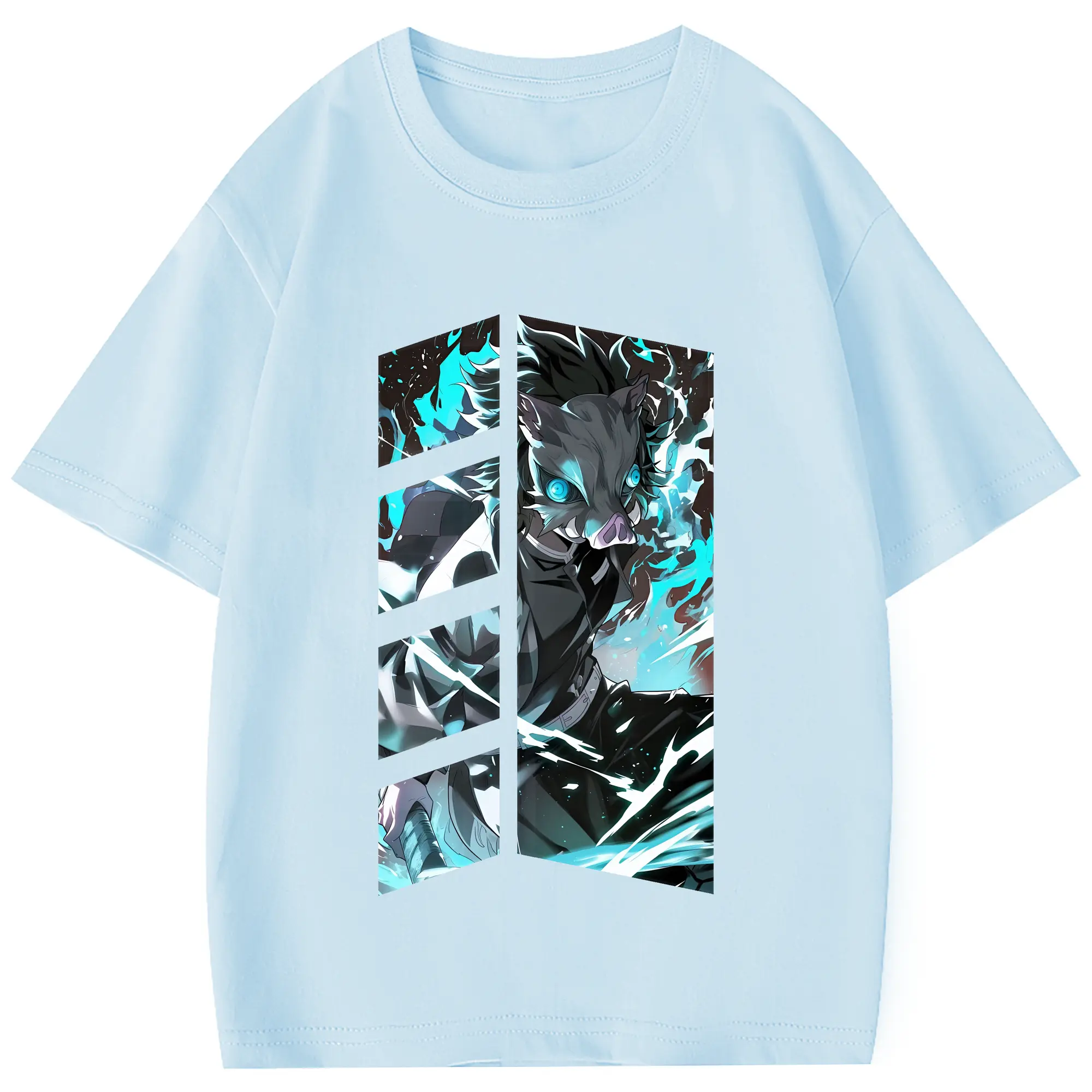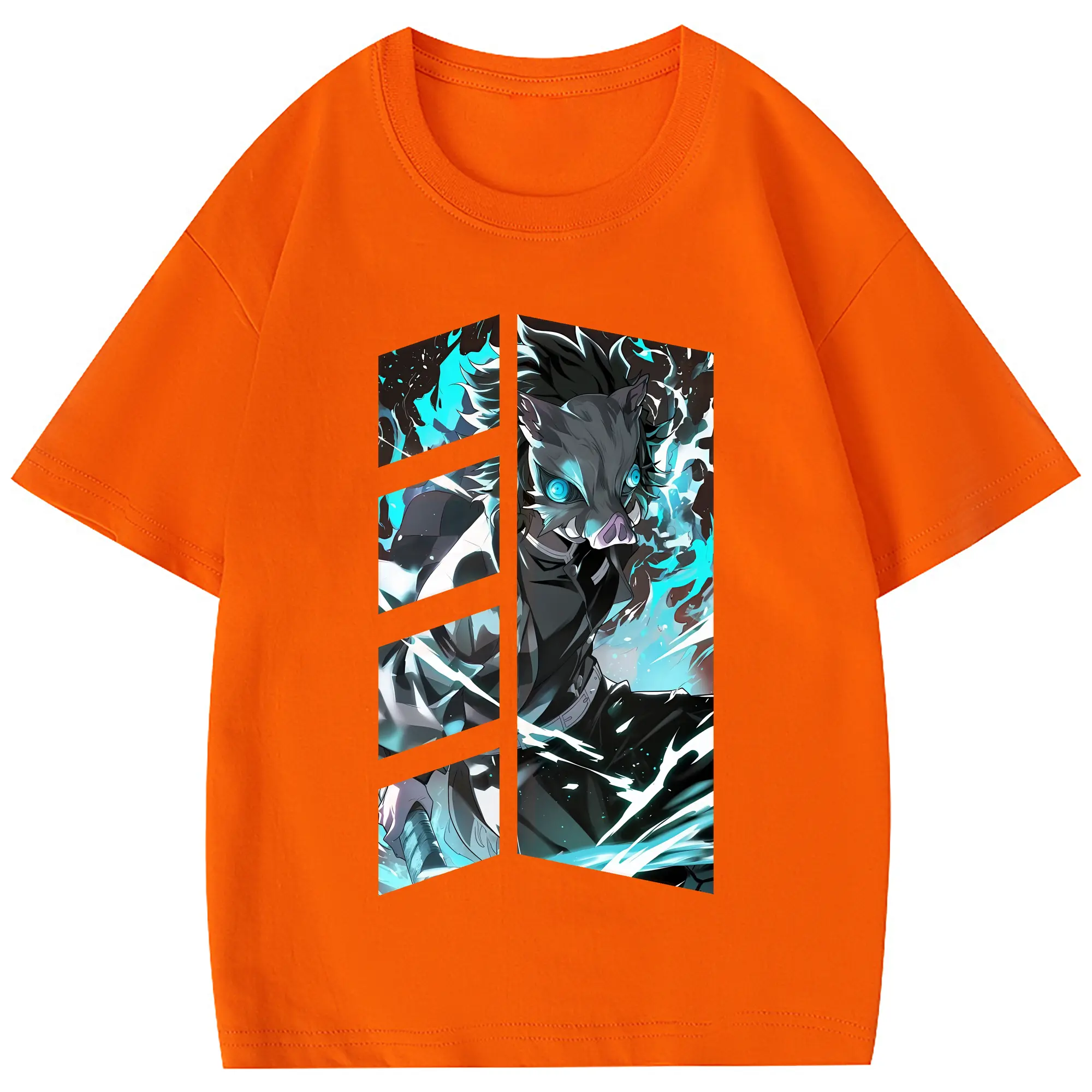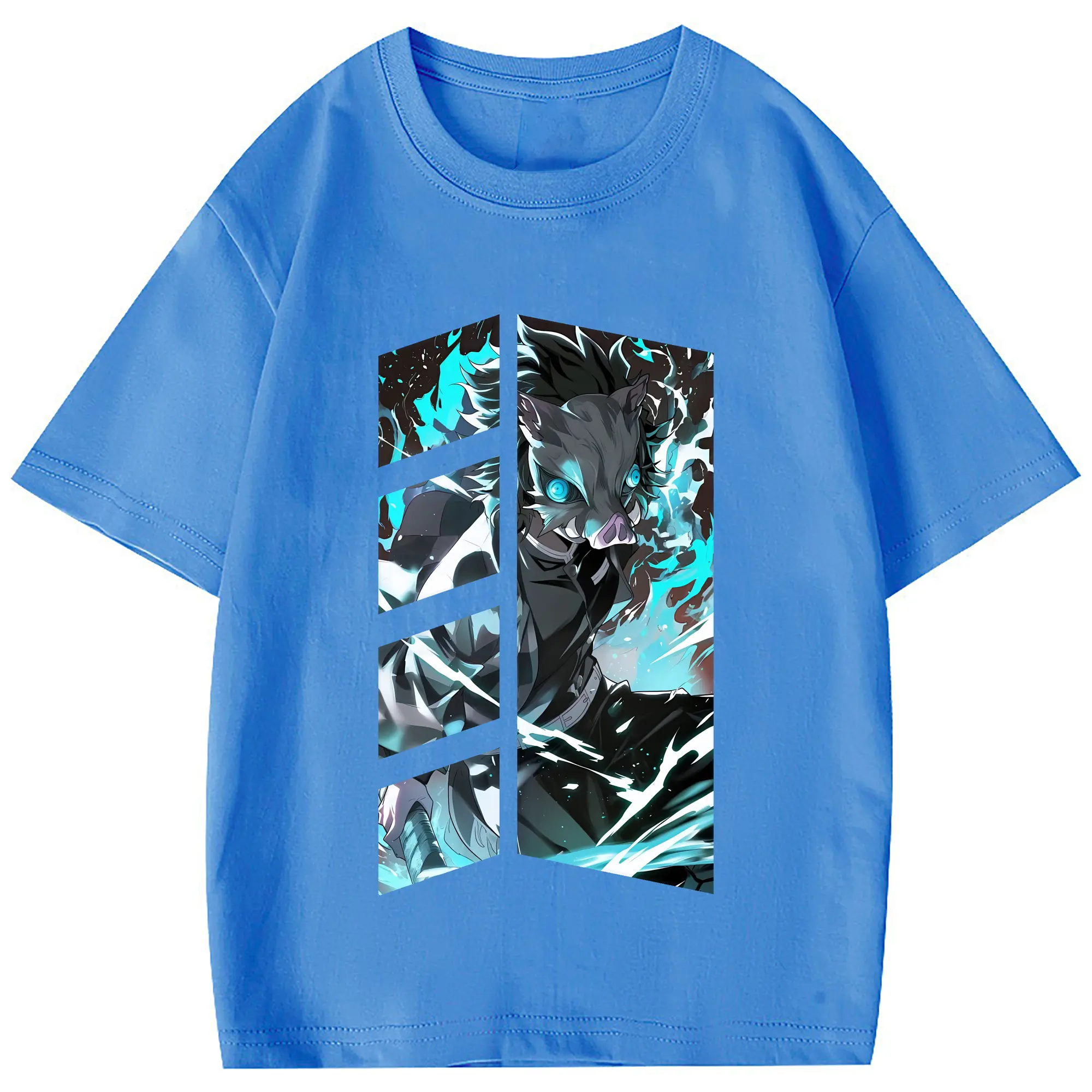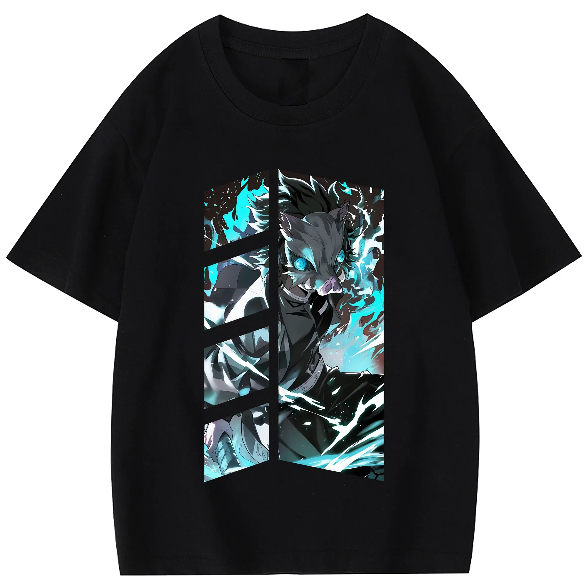 鬼滅の刃 グッズ,嘴平 伊之助 - 綿100% 半袖Tシャツ ・ フロントプリント ・ 快適 通気性 ・ 日常使い 散歩 スポーツ用
