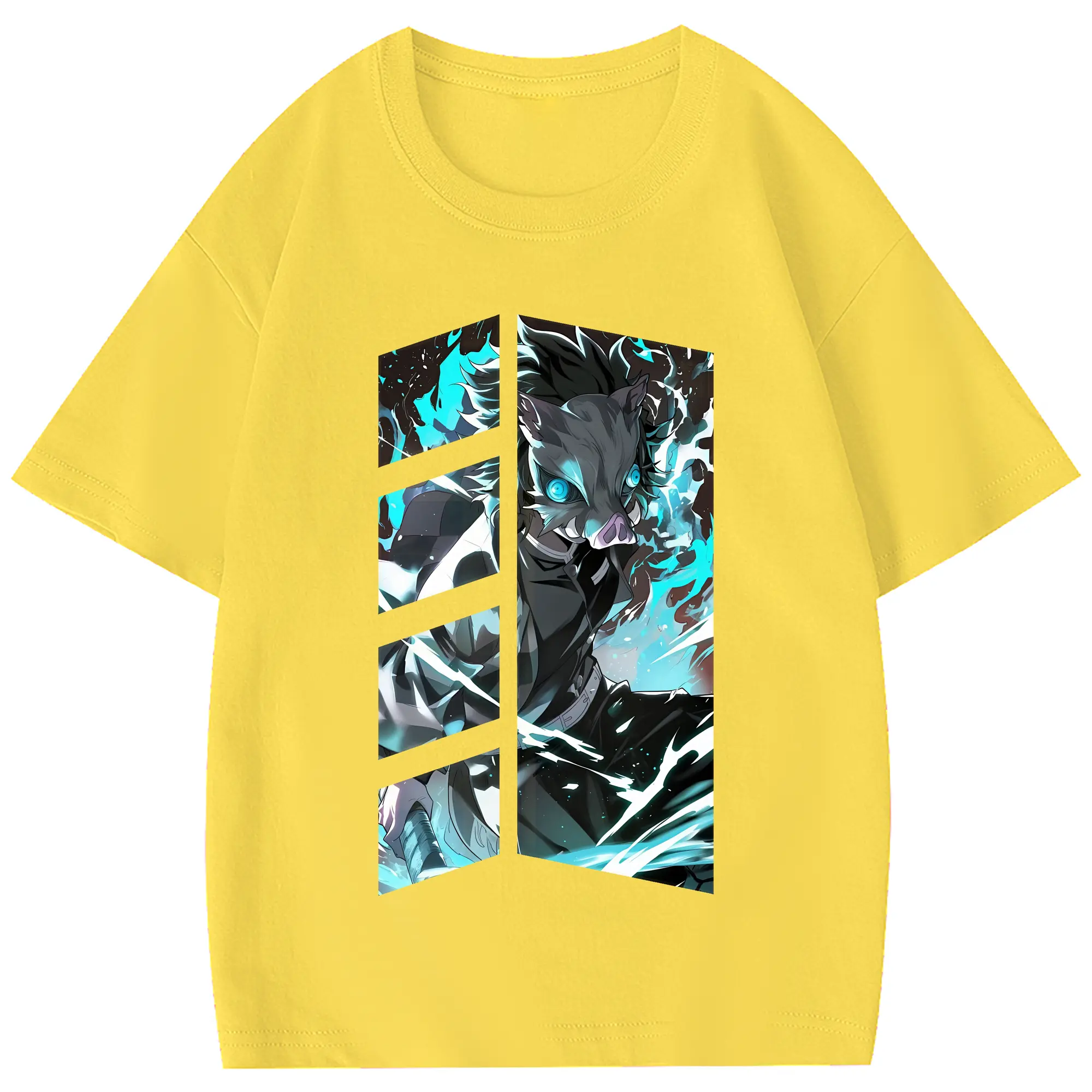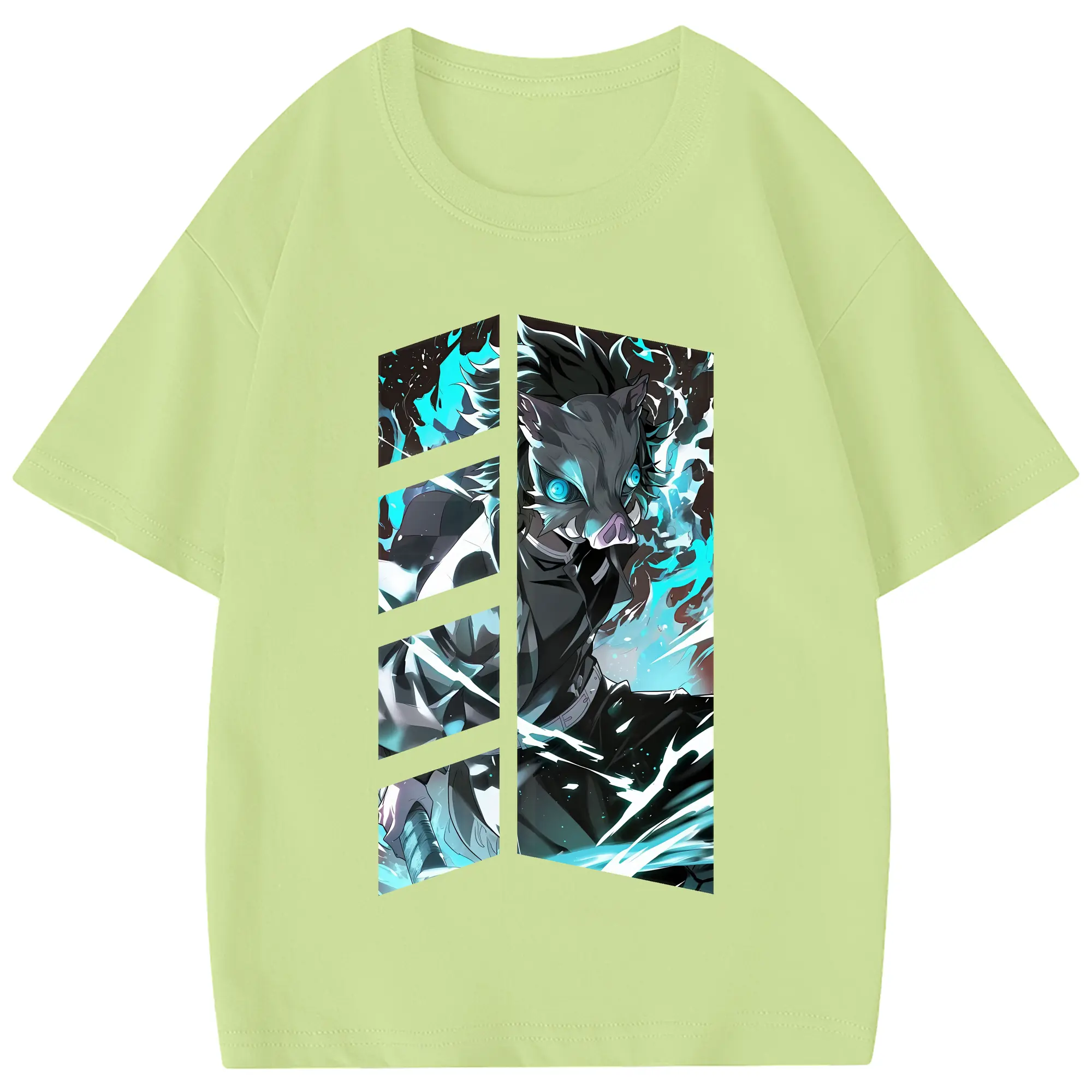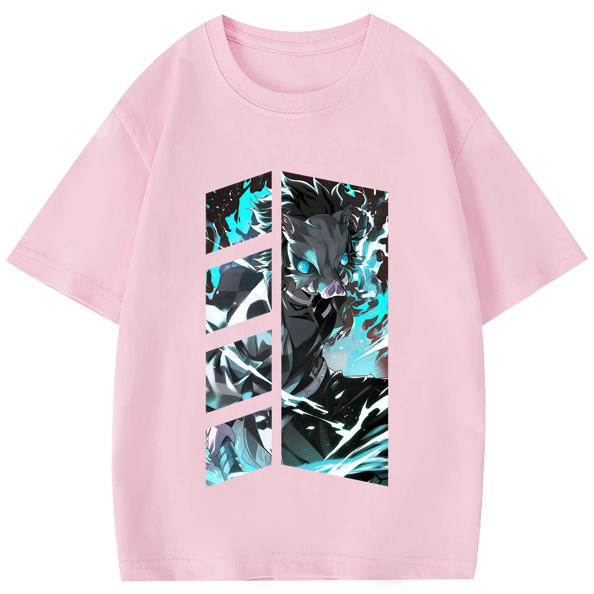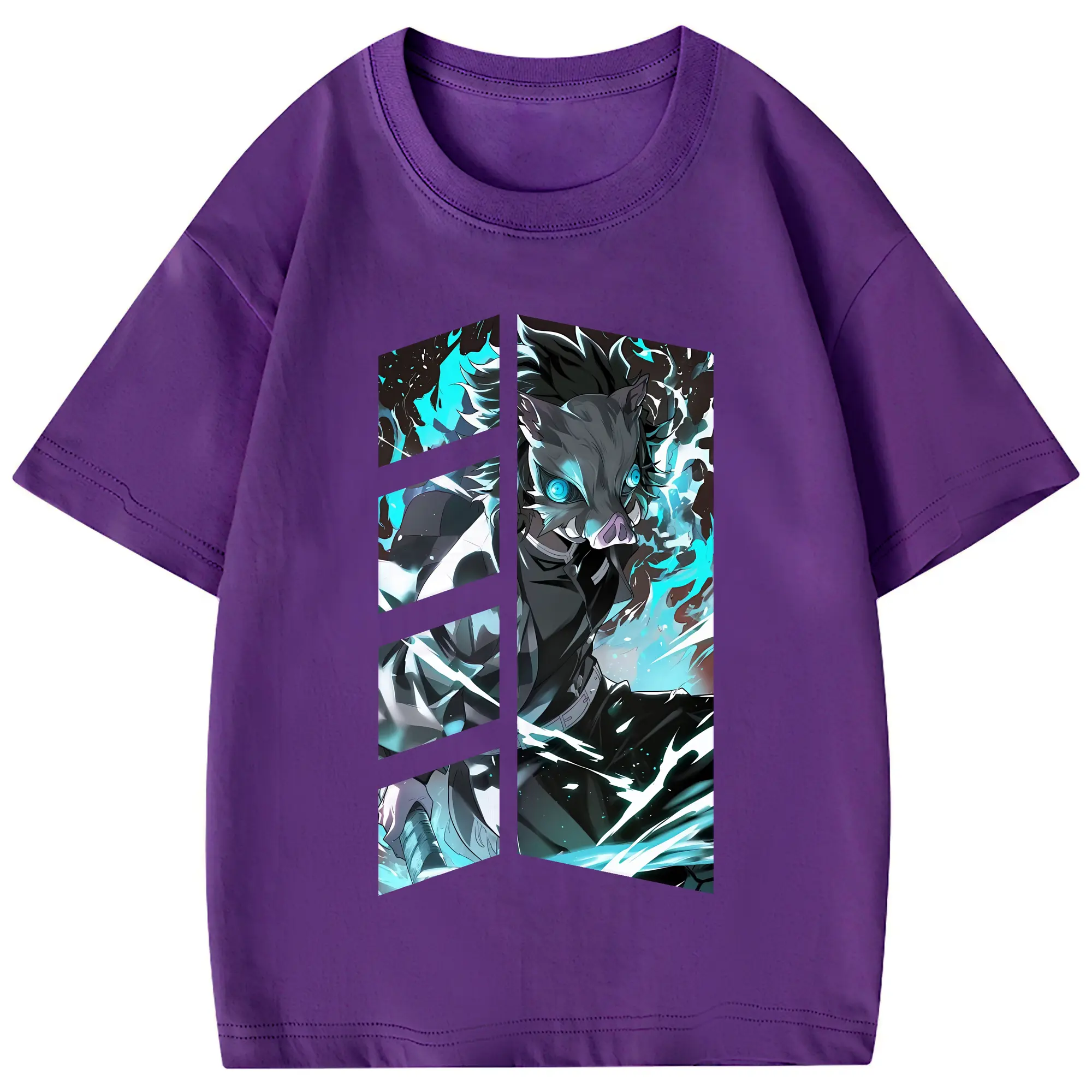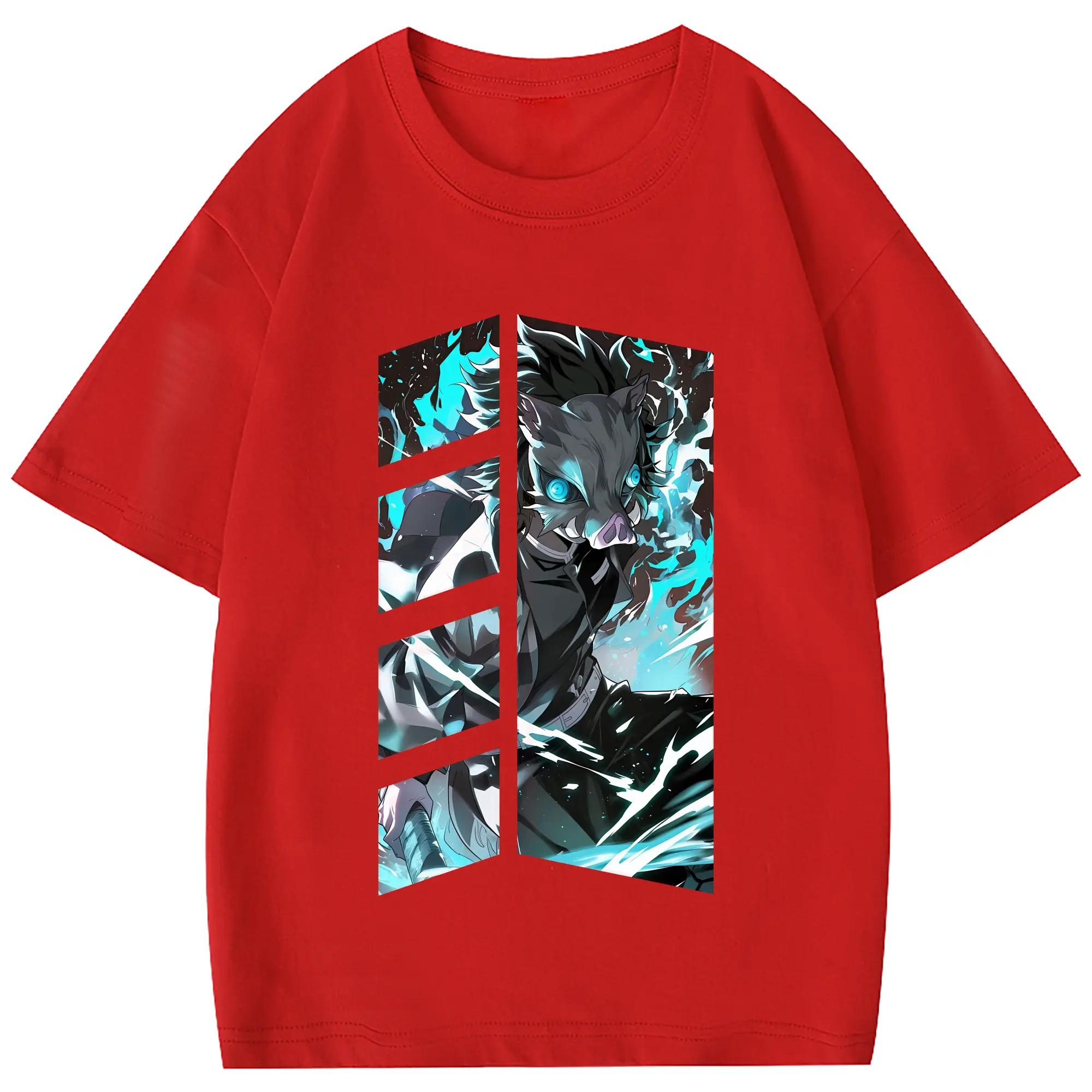 鬼滅の刃 グッズ,嘴平 伊之助 - 綿100% 半袖Tシャツ ・ フロントプリント ・ 快適 通気性 ・ 日常使い 散歩 スポーツ用