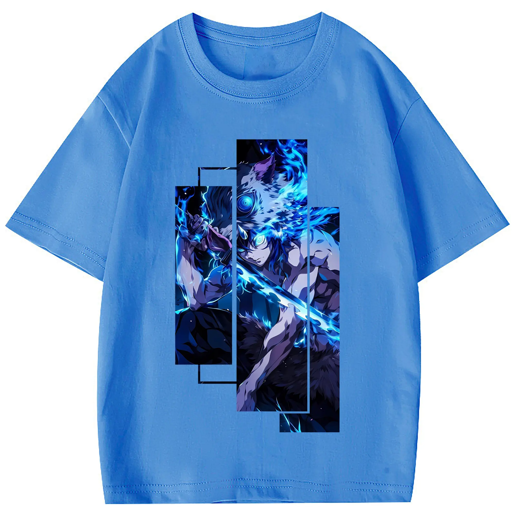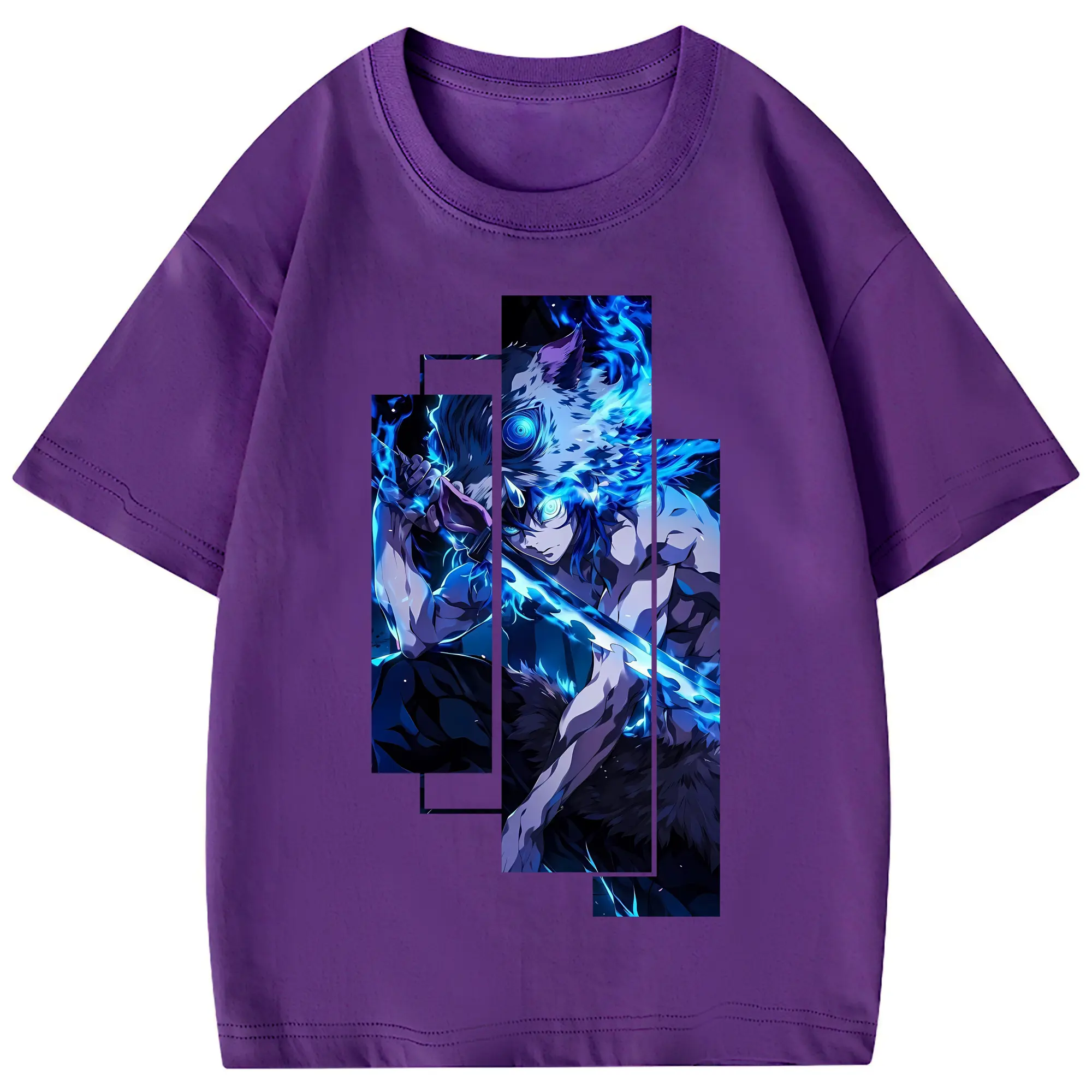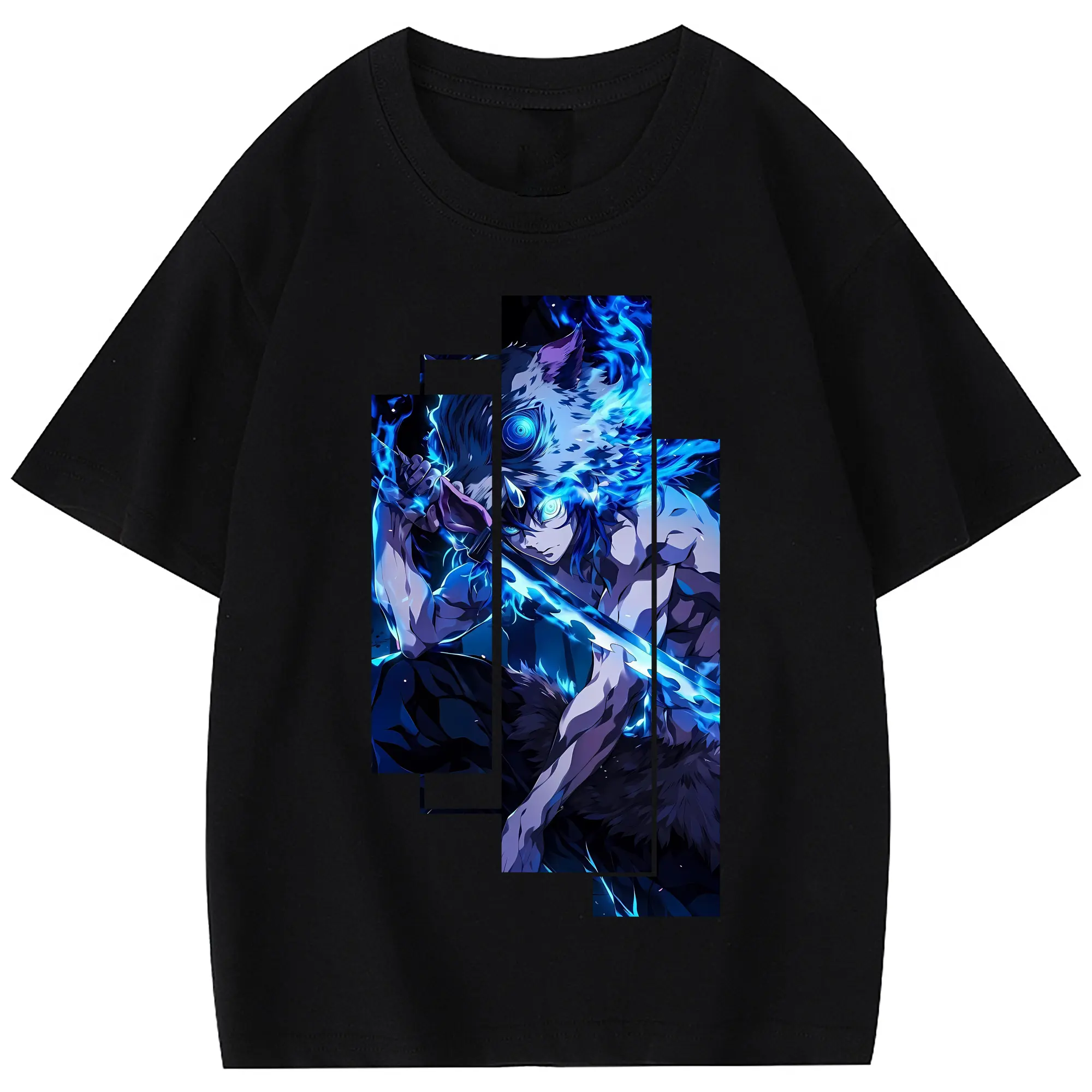 鬼滅の刃 グッズ,嘴平 伊之助 - 綿100% 半袖Tシャツ ・ フロントプリント ・ 快適 通気性 ・ 日常使い 散歩 スポーツ用