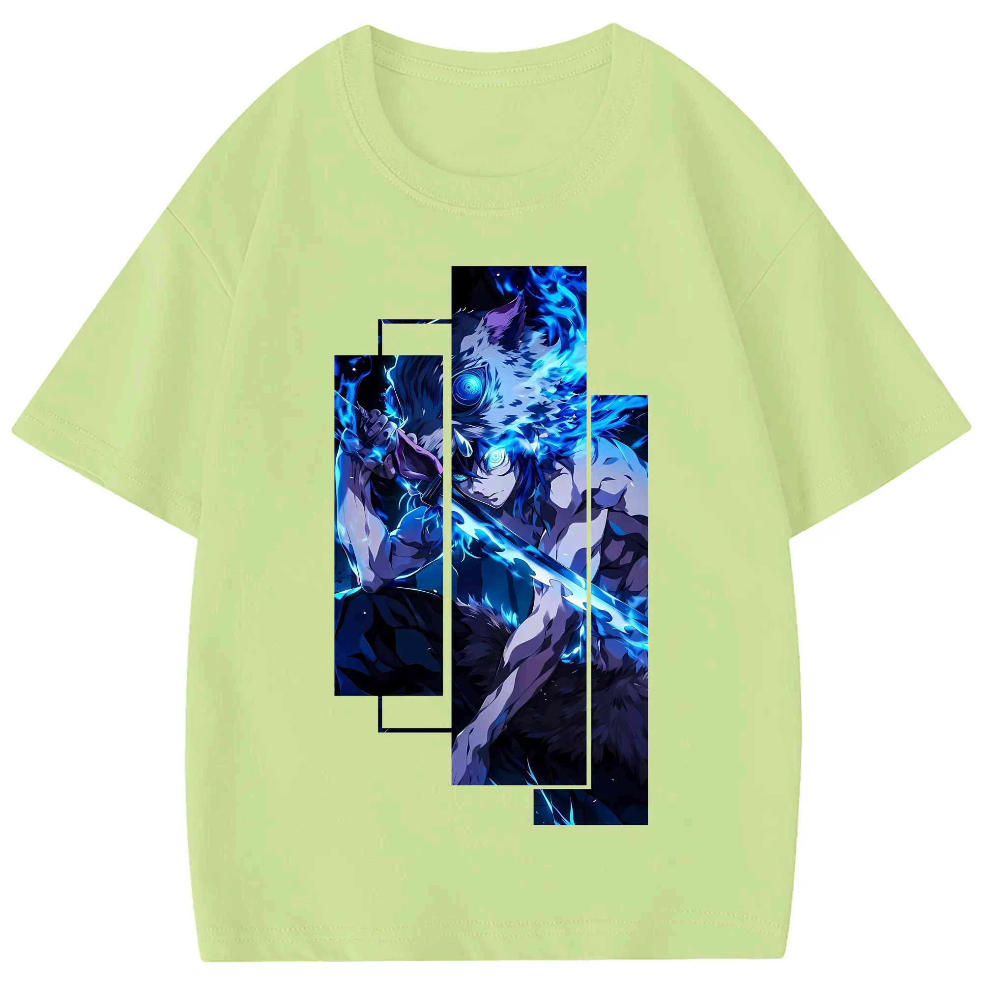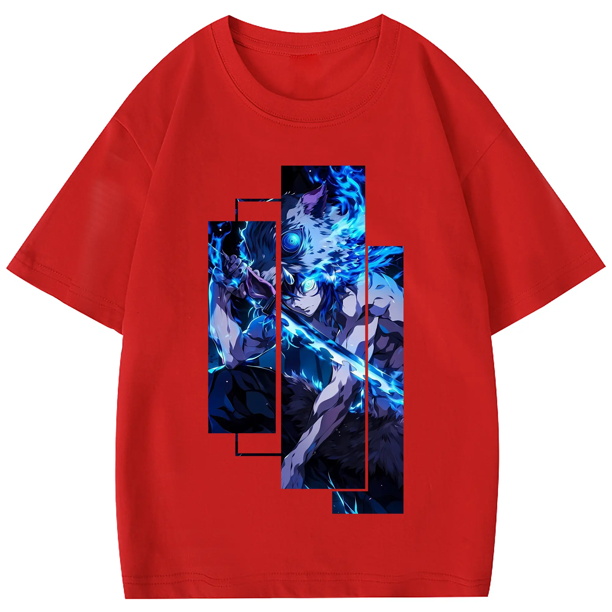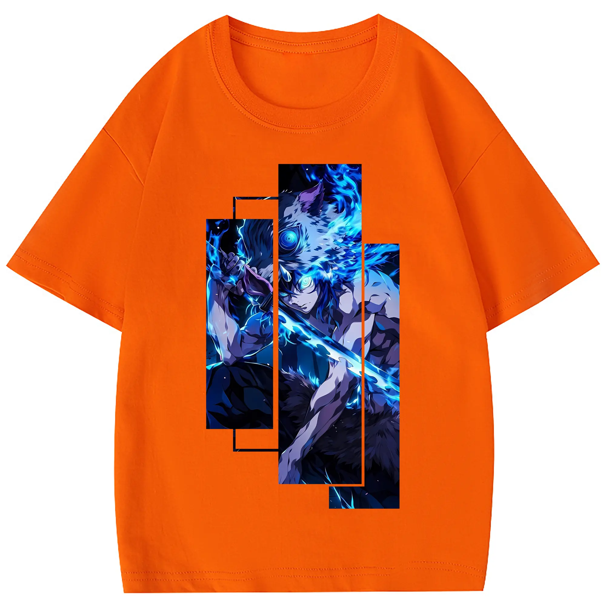 鬼滅の刃 グッズ,嘴平 伊之助 - 綿100% 半袖Tシャツ ・ フロントプリント ・ 快適 通気性 ・ 日常使い 散歩 スポーツ用