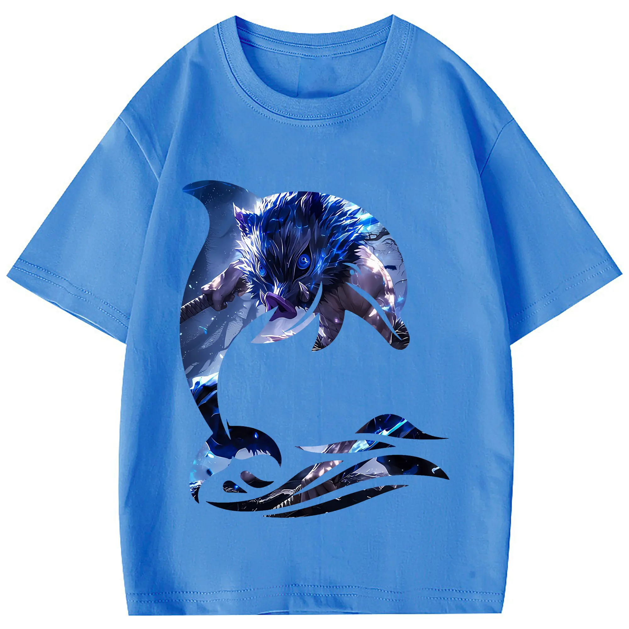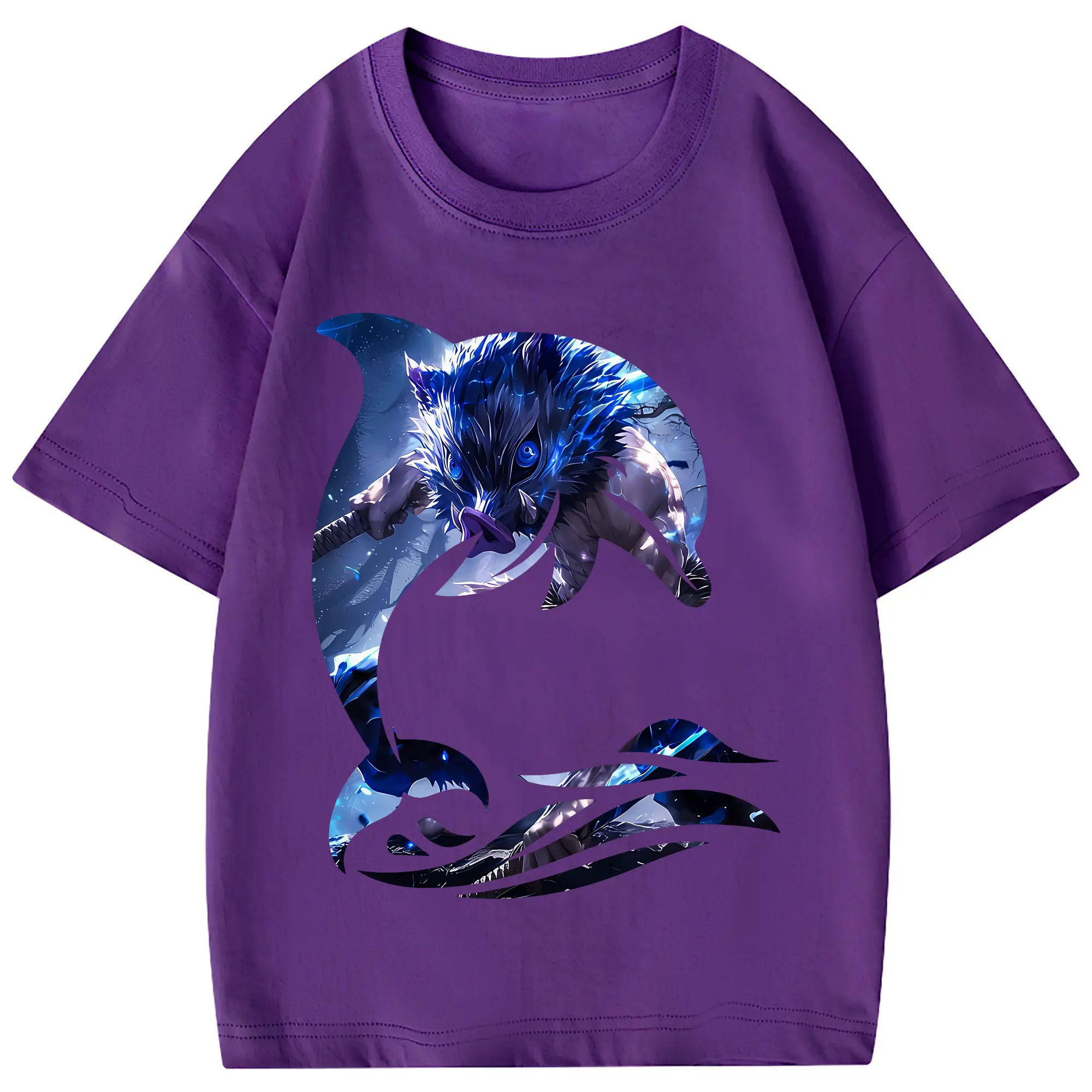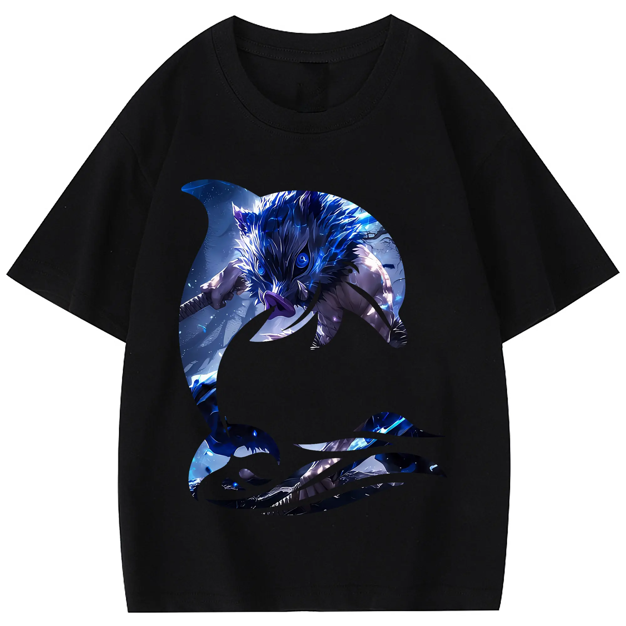 鬼滅の刃 グッズ,嘴平 伊之助 - 綿100% 半袖Tシャツ ・ フロントプリント ・ 快適 通気性 ・ 日常使い 散歩 スポーツ用