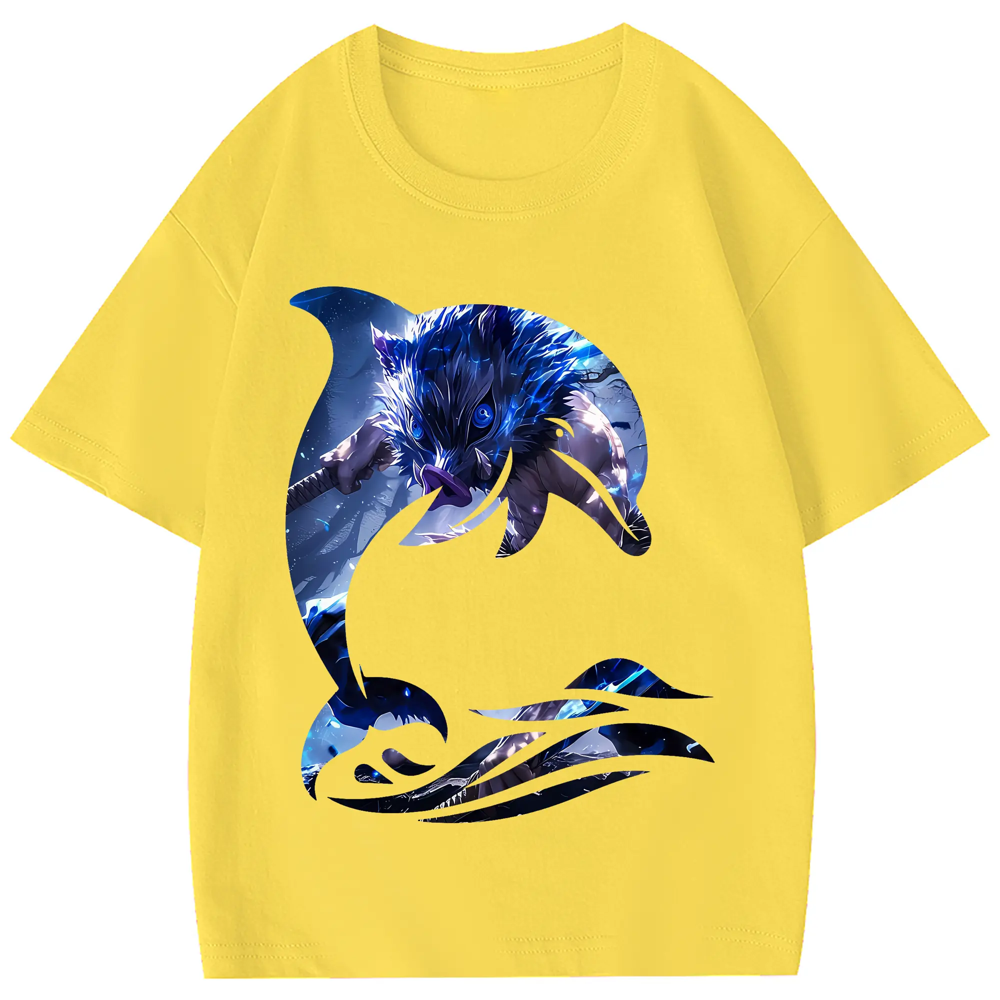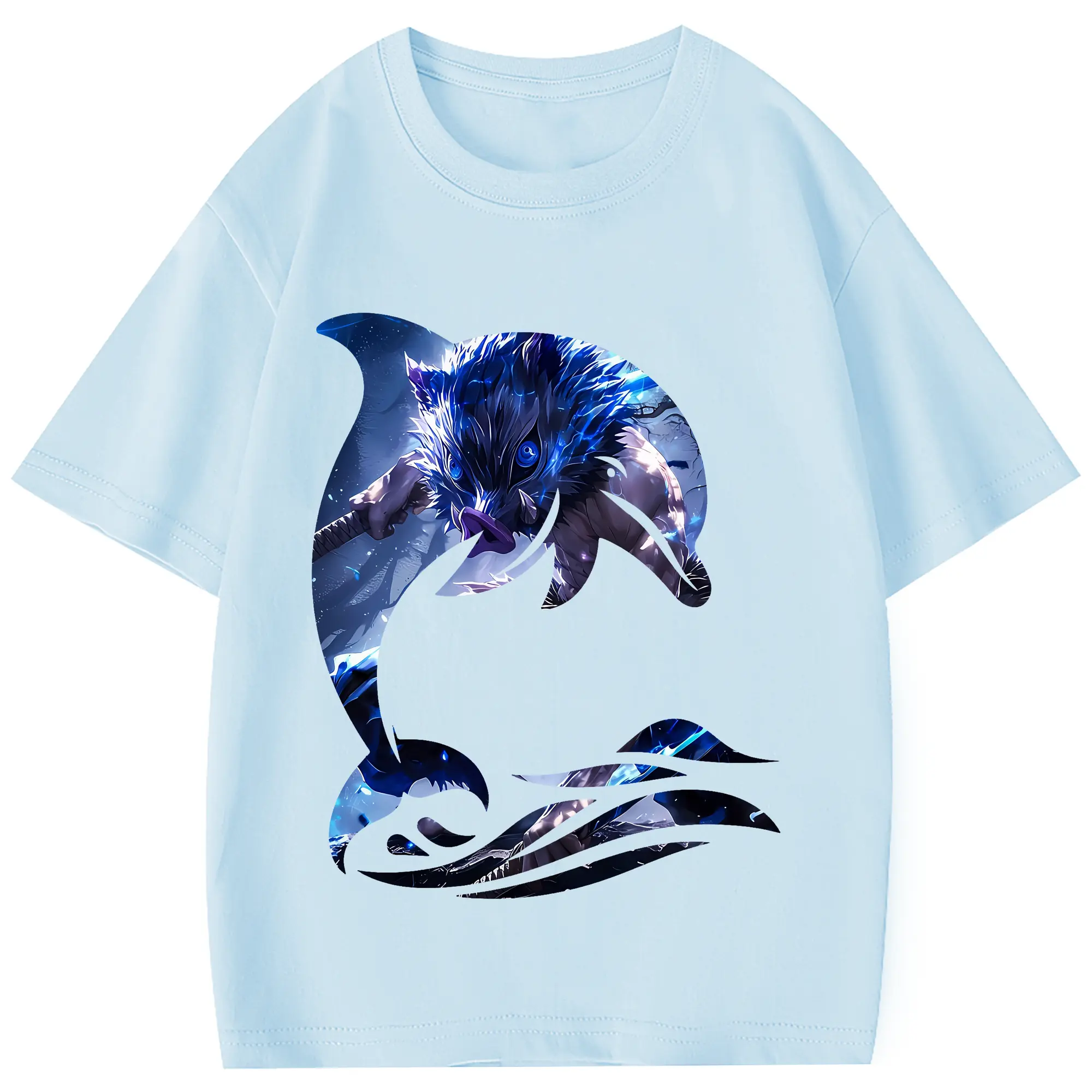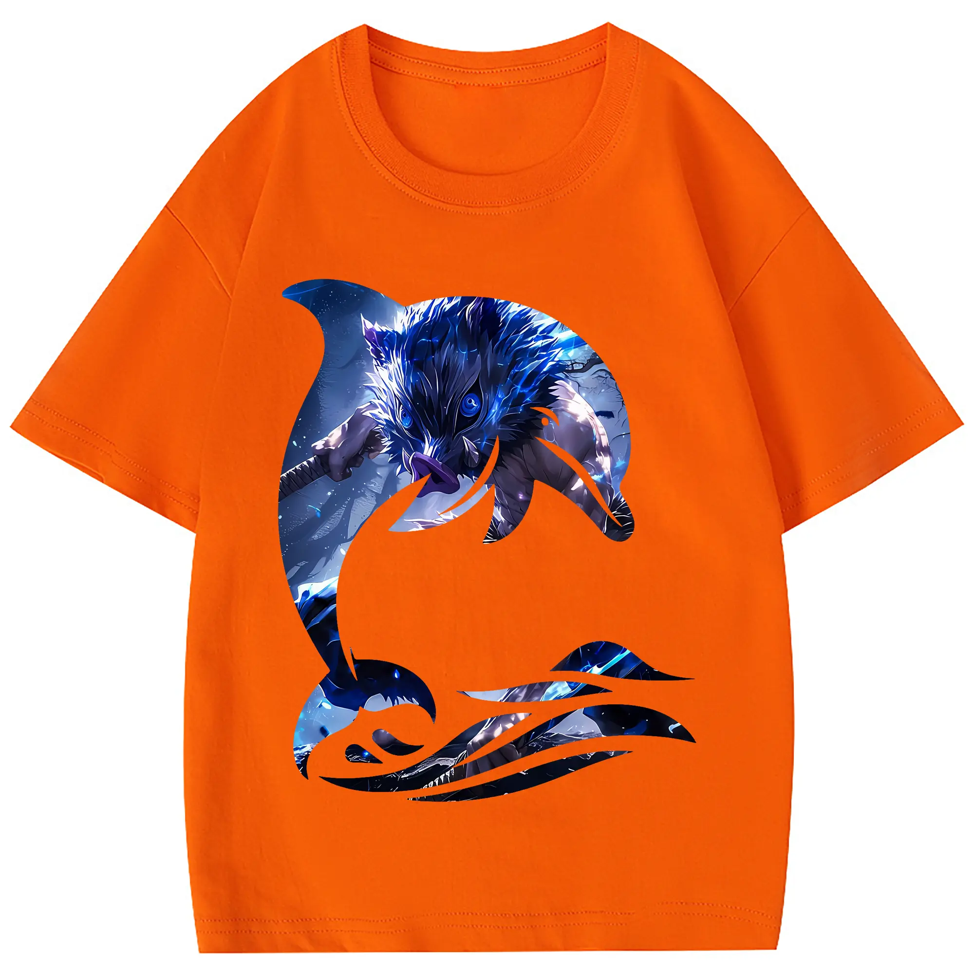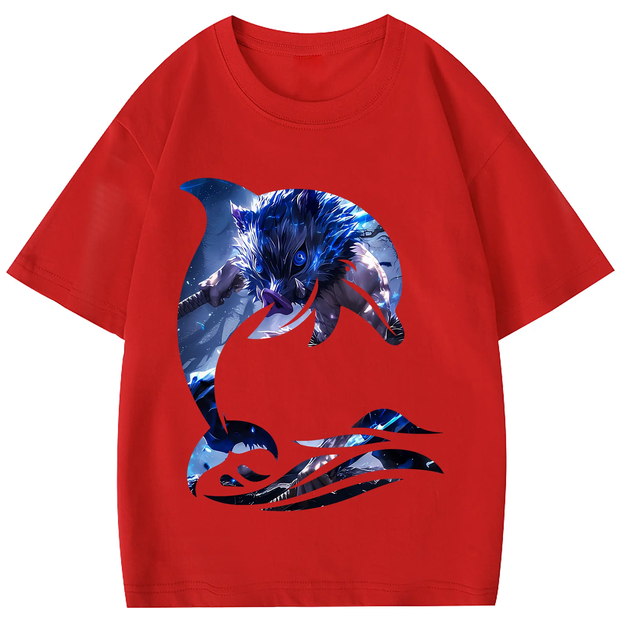 鬼滅の刃 グッズ,嘴平 伊之助 - 綿100% 半袖Tシャツ ・ フロントプリント ・ 快適 通気性 ・ 日常使い 散歩 スポーツ用